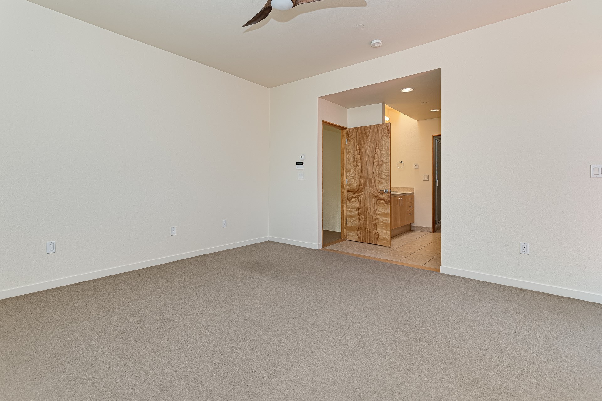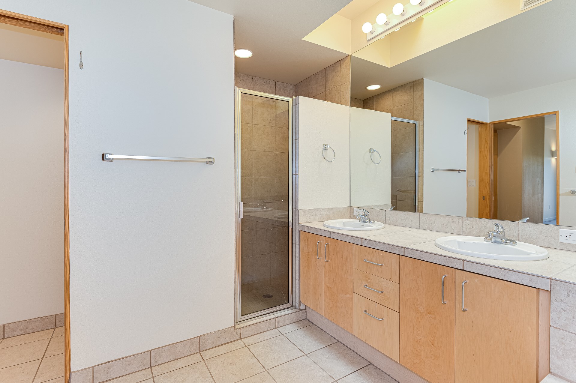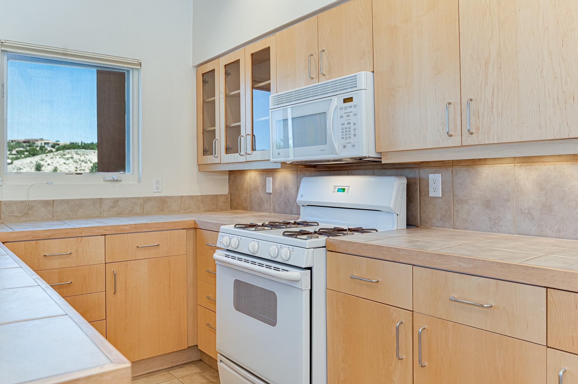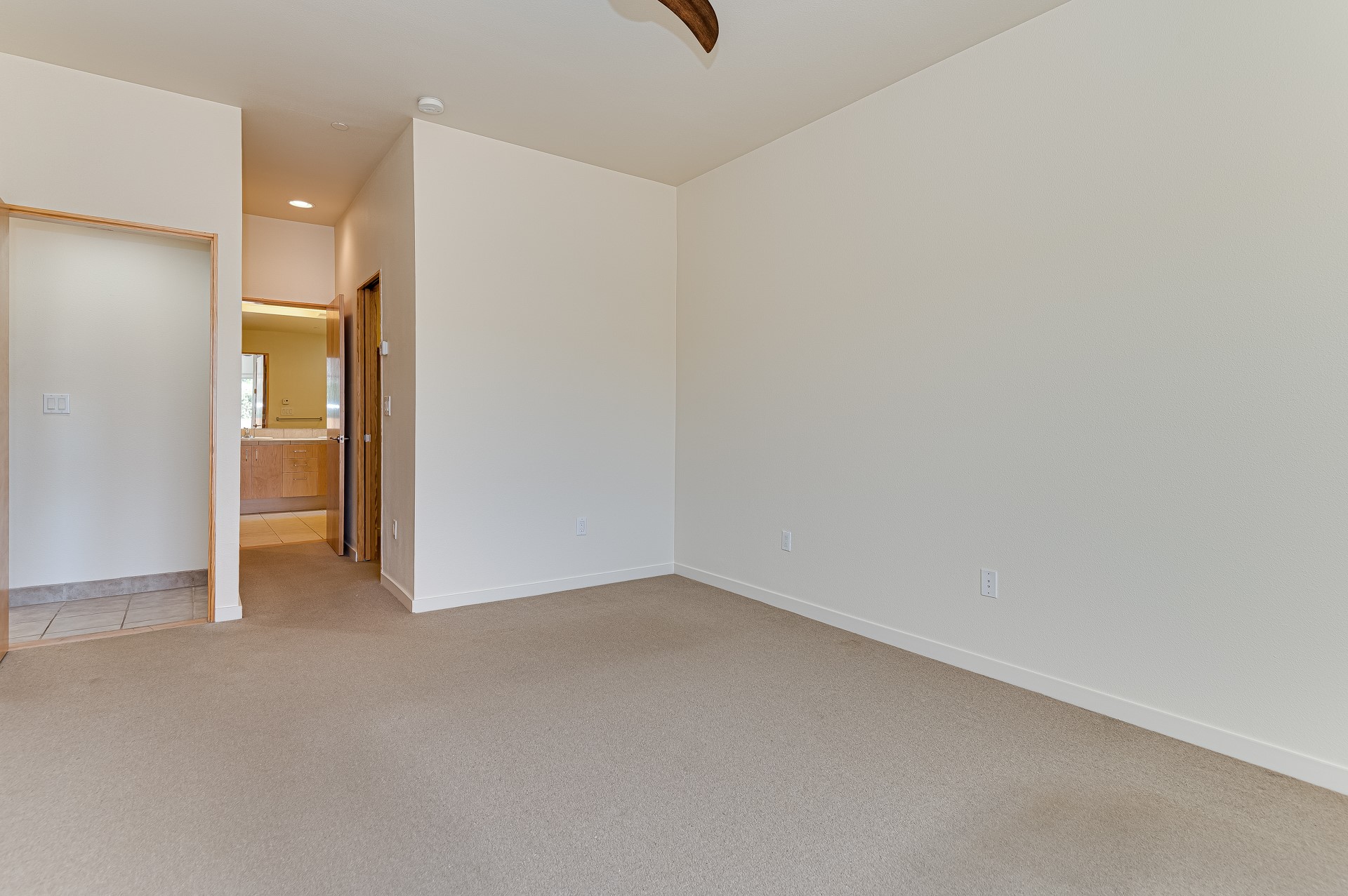 This home features one of the most popular floor plans built at Zocalo and is located in one of the most desirable areas, facing west over- looking the arroyo and hillside. This light filled home has two master suites one on the main floor and one upstairs with a balcony. Access the private patio off the living room or master bedroom. The dining room includes high ceilings with skylights, the living room and kitchen features a wood ceiling. A double-sided wood burning fireplace separates the dining room and living area. This home has a lot to offer including ground level living, ample storage and no wasted space. Located in the beautiful Zocalo Condominium complex designed by World renowned Mexican architect Ricardo Legorreta and located just minutes from downtown and all that Santa Fe offers in shopping, museums and services. Community amenities include two fitness facilities, a clubhouse, pool and spa.