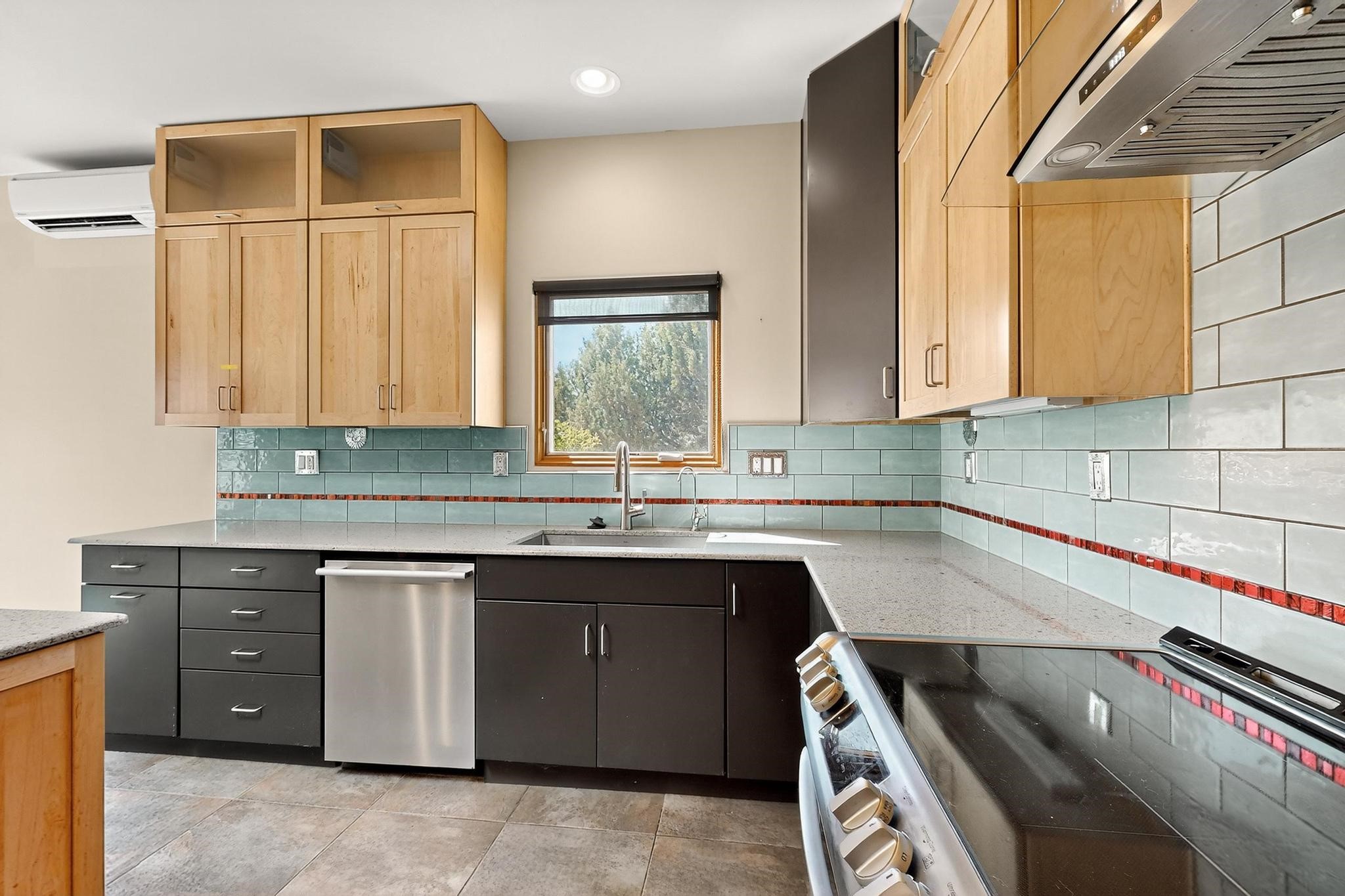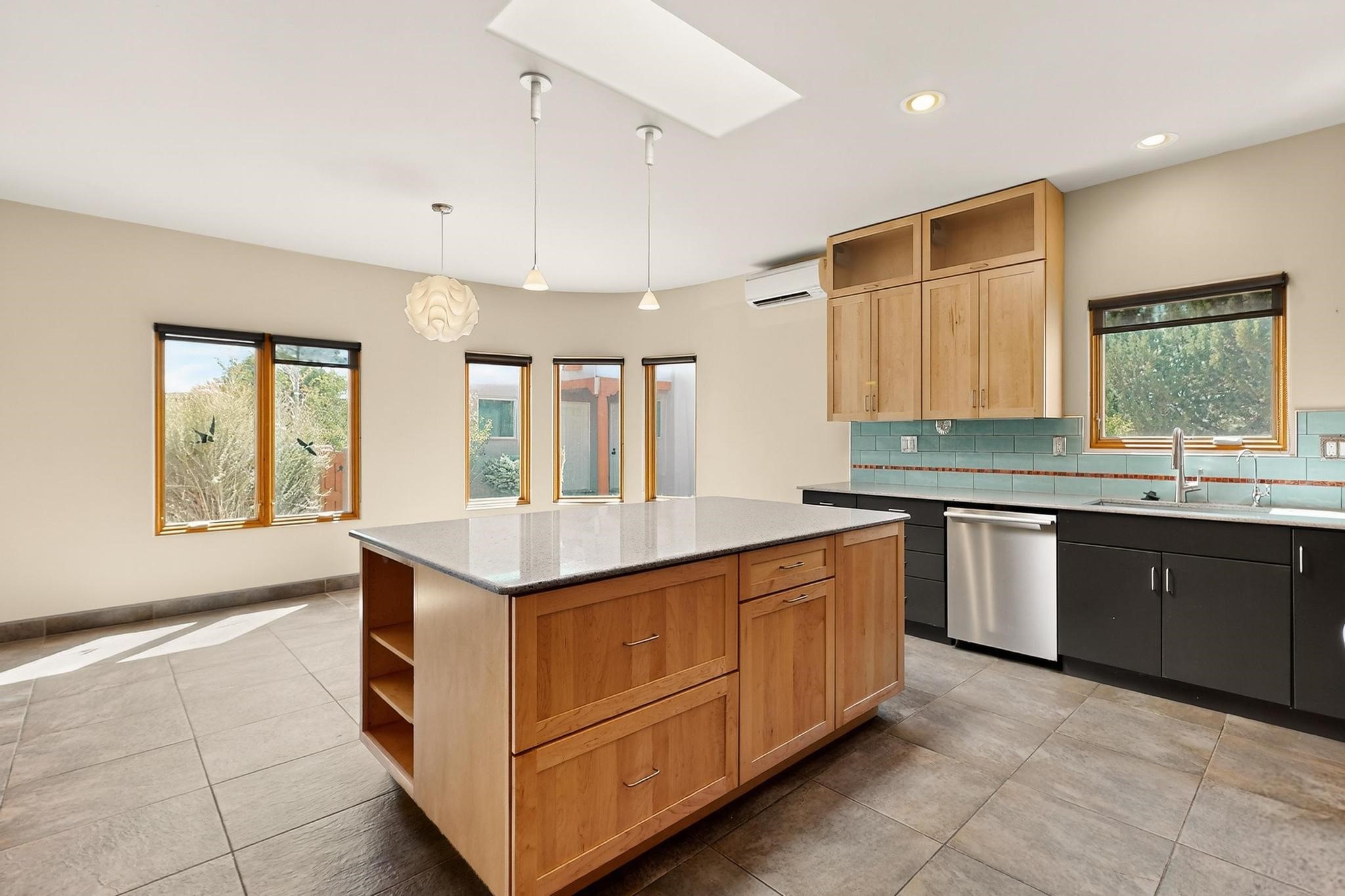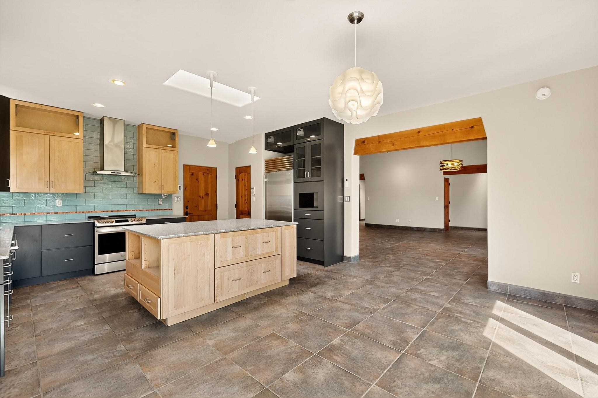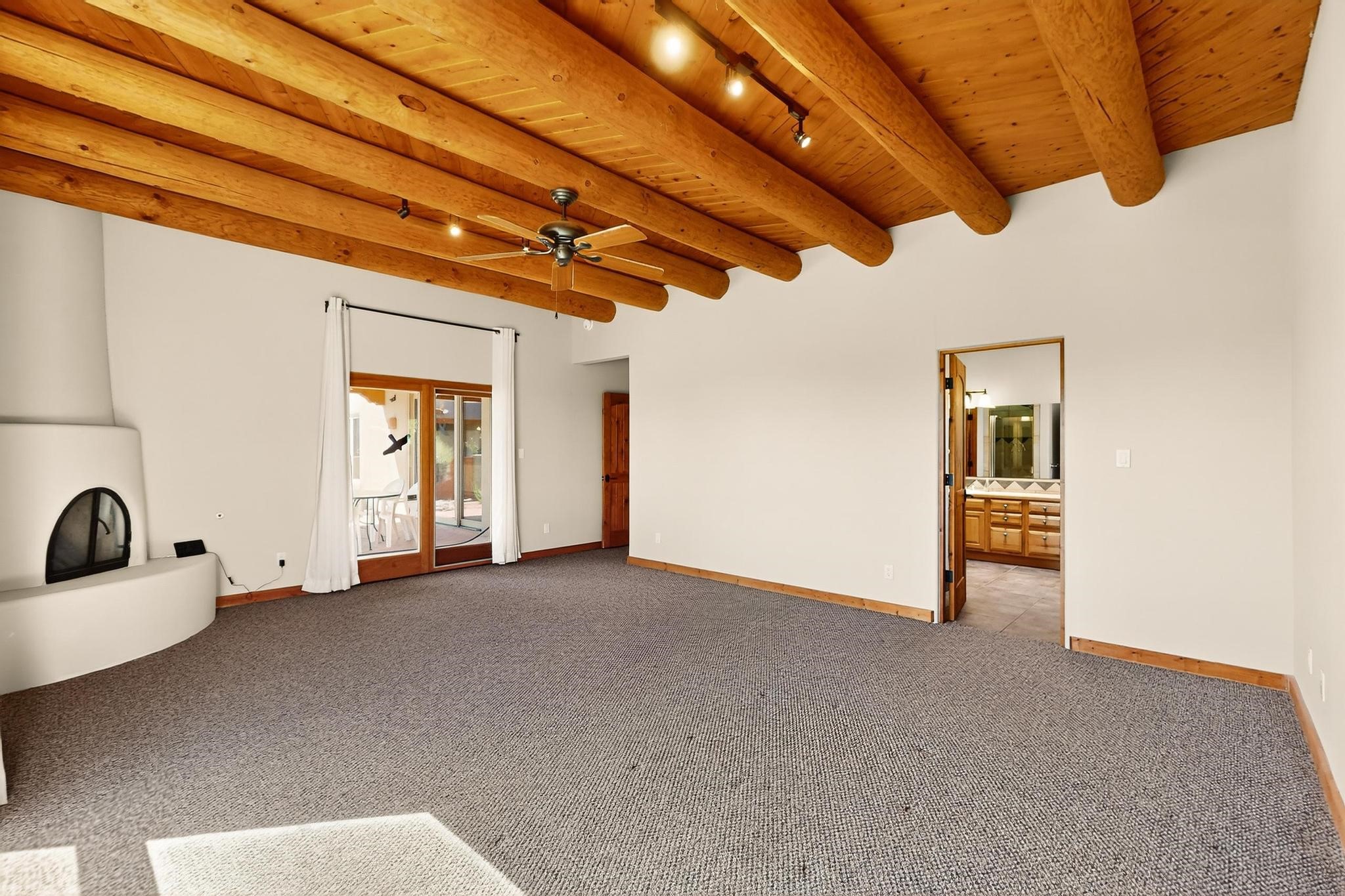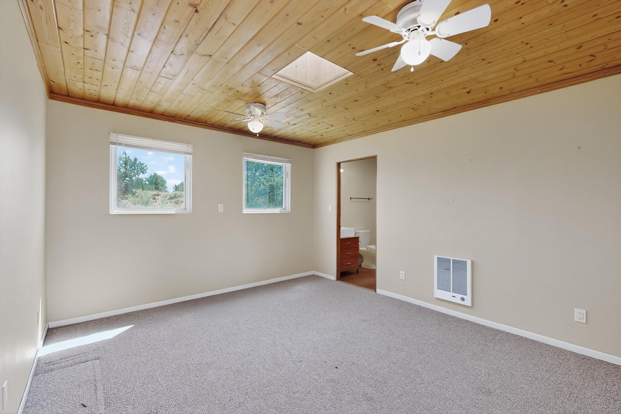 Priced to Sell! Potential multigenerational living. Expansive contemporary pueblo, split bedroom open plan design with high ceilings throughout. The main home includes a formal dining area, spacious great room with kiva fireplace, a large primary suite with kiva fireplace, large walk in closet and spa-like bathroom. Excellent separation from the two guest bedrooms and bath, plus a den/study. The kitchen has been remodeled including an induction range top, custom lighted cabinetry and pantry. The radiant heating is supplemented by 5 mini splits to keep a comfortable temperature summer and winter. There is a large heated storage room/workroom for hobbies and toys plus an oversized 2 car garage. Behind the home sits a detached 478 sq.ft. heated 2 room studio/guest with a 3/4 bathroom for extra guests/office or studio with a separate septic system. A lovely walled garden with a 3rd kiva fireplace for enjoyment plus a large portal for morning or evening outside entertainment. Enjoy the historic railway and rail trail bordering the back of your land. Plenty of guest parking with a paved driveway and easy access to Eldorado amenities, local shopping only minutes into Santa Fe.
