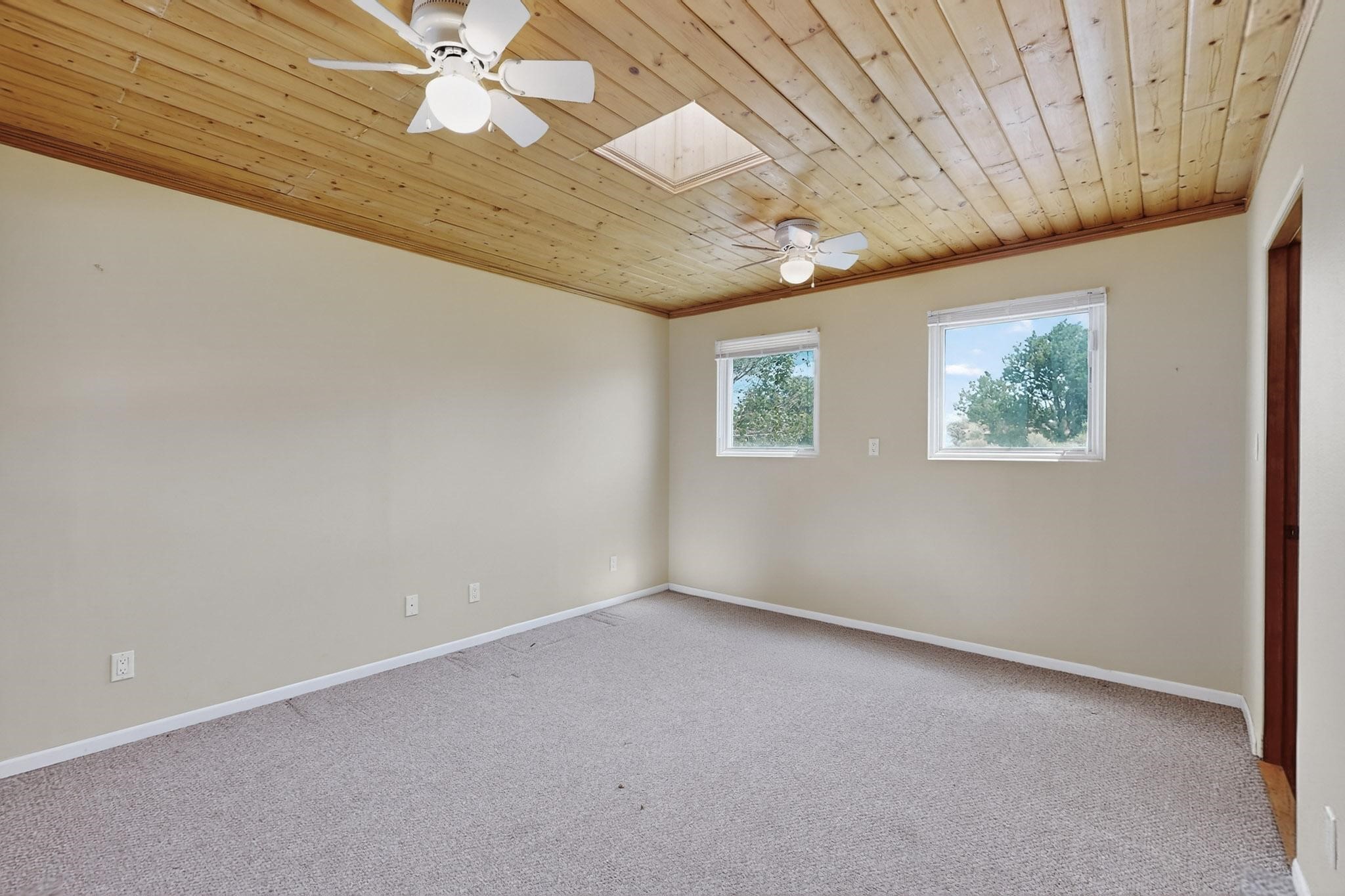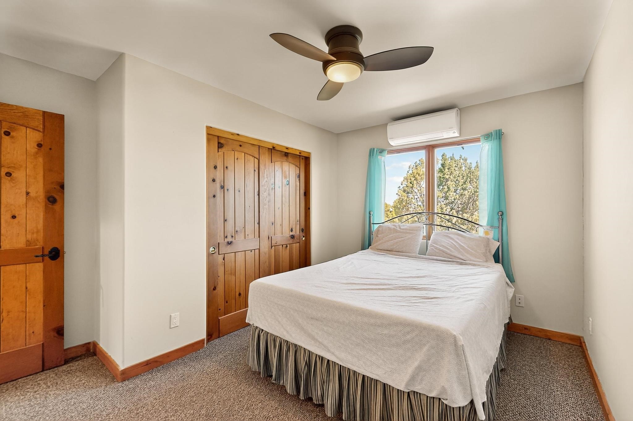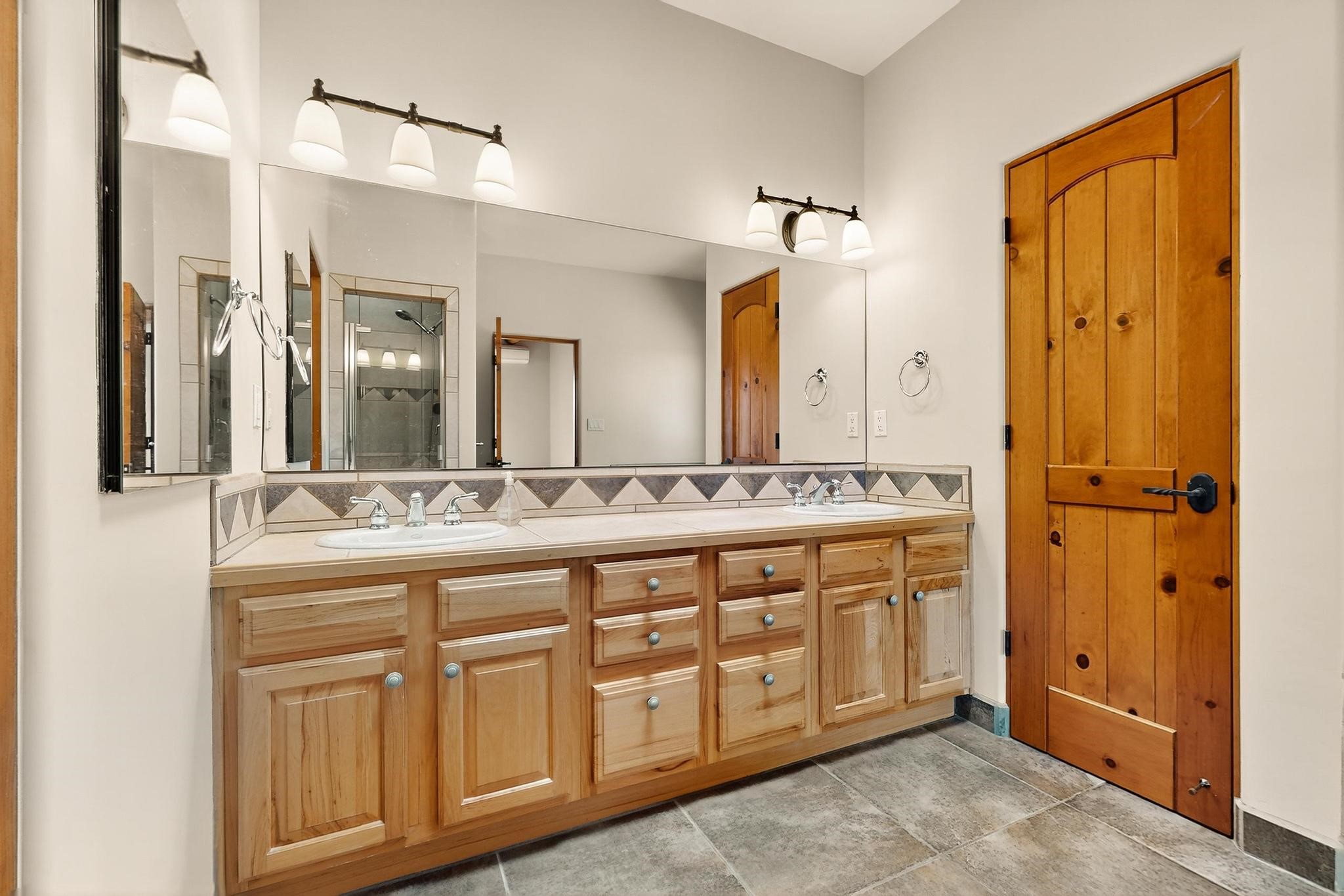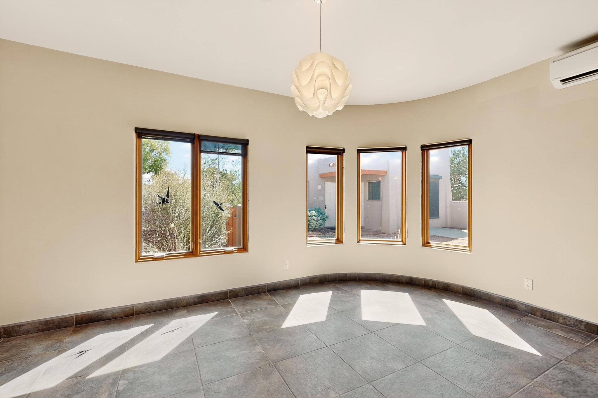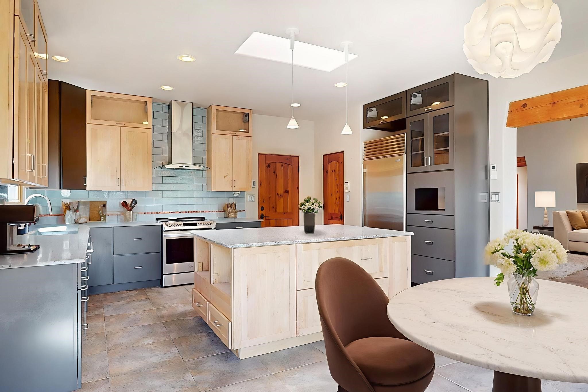 Priced to Sell! Potential multigenerational living. Expansive contemporary pueblo, split bedroom open plan design with high ceilings throughout. The main home includes a formal dining area, spacious great room with kiva fireplace, a large primary suite with kiva fireplace, large walk in closet and spa-like bathroom. Excellent separation from the two guest bedrooms and bath, plus a den/study. The kitchen has been remodeled including an induction range top, custom lighted cabinetry and pantry. The radiant heating is supplemented by 5 mini splits to keep a comfortable temperature summer and winter. There is a large heated storage room/workroom for hobbies and toys plus an oversized 2 car garage. Behind the home sits a detached 478 sq.ft. heated 2 room studio/guest with a 3/4 bathroom for extra guests/office or studio with a separate septic system. A lovely walled garden with a 3rd kiva fireplace for enjoyment plus a large portal for morning or evening outside entertainment. Enjoy the historic railway and rail trail bordering the back of your land. Plenty of guest parking with a paved driveway and easy access to Eldorado amenities, local shopping only minutes into Santa Fe.