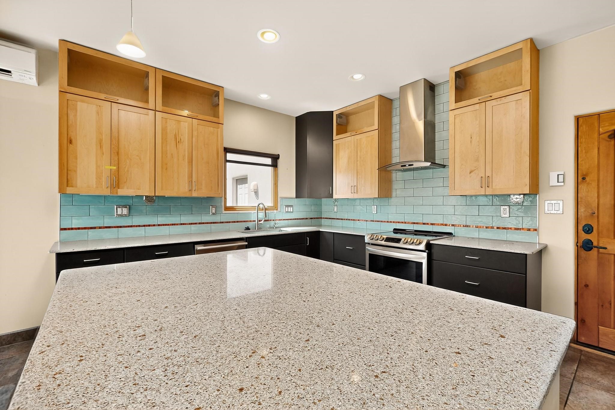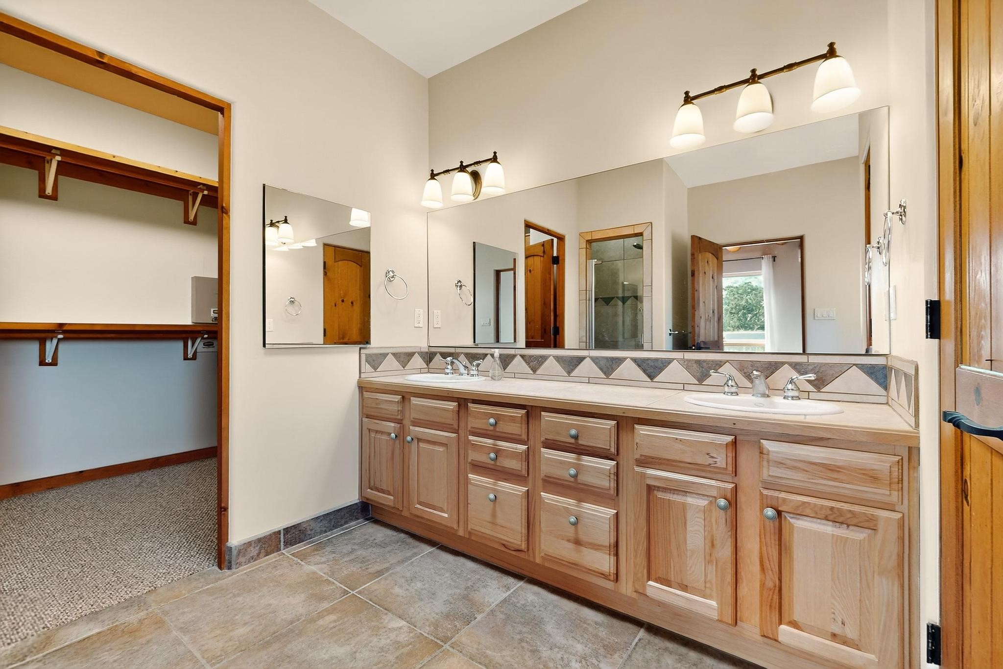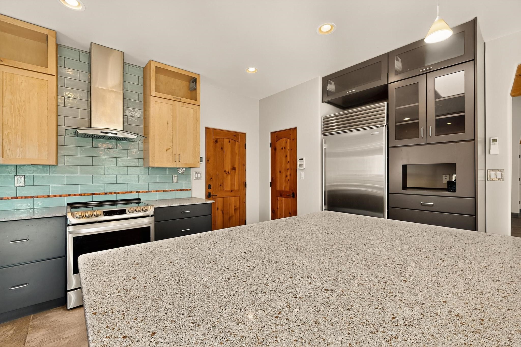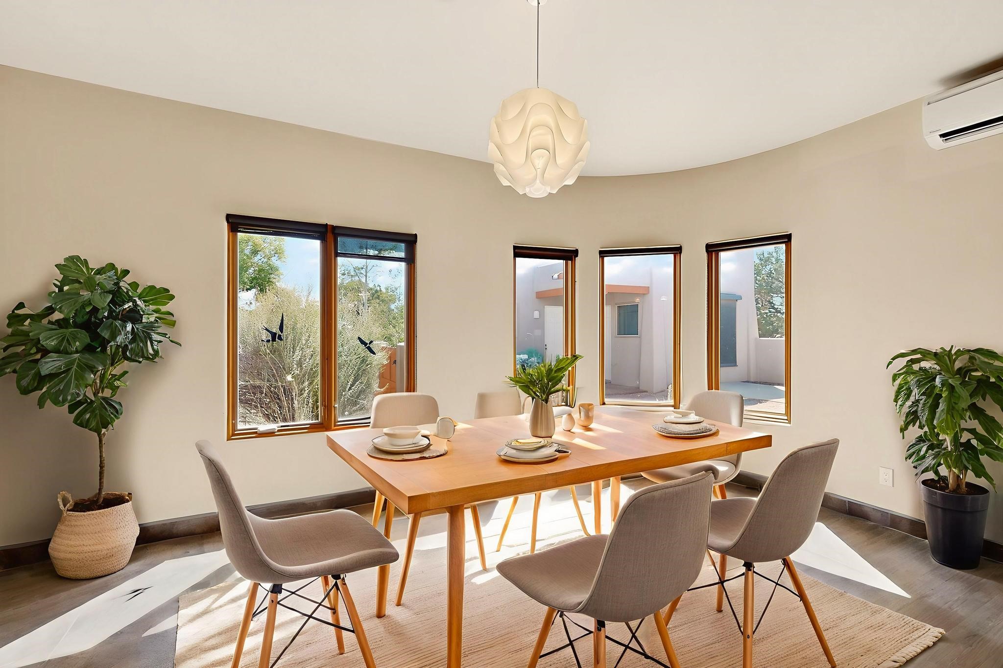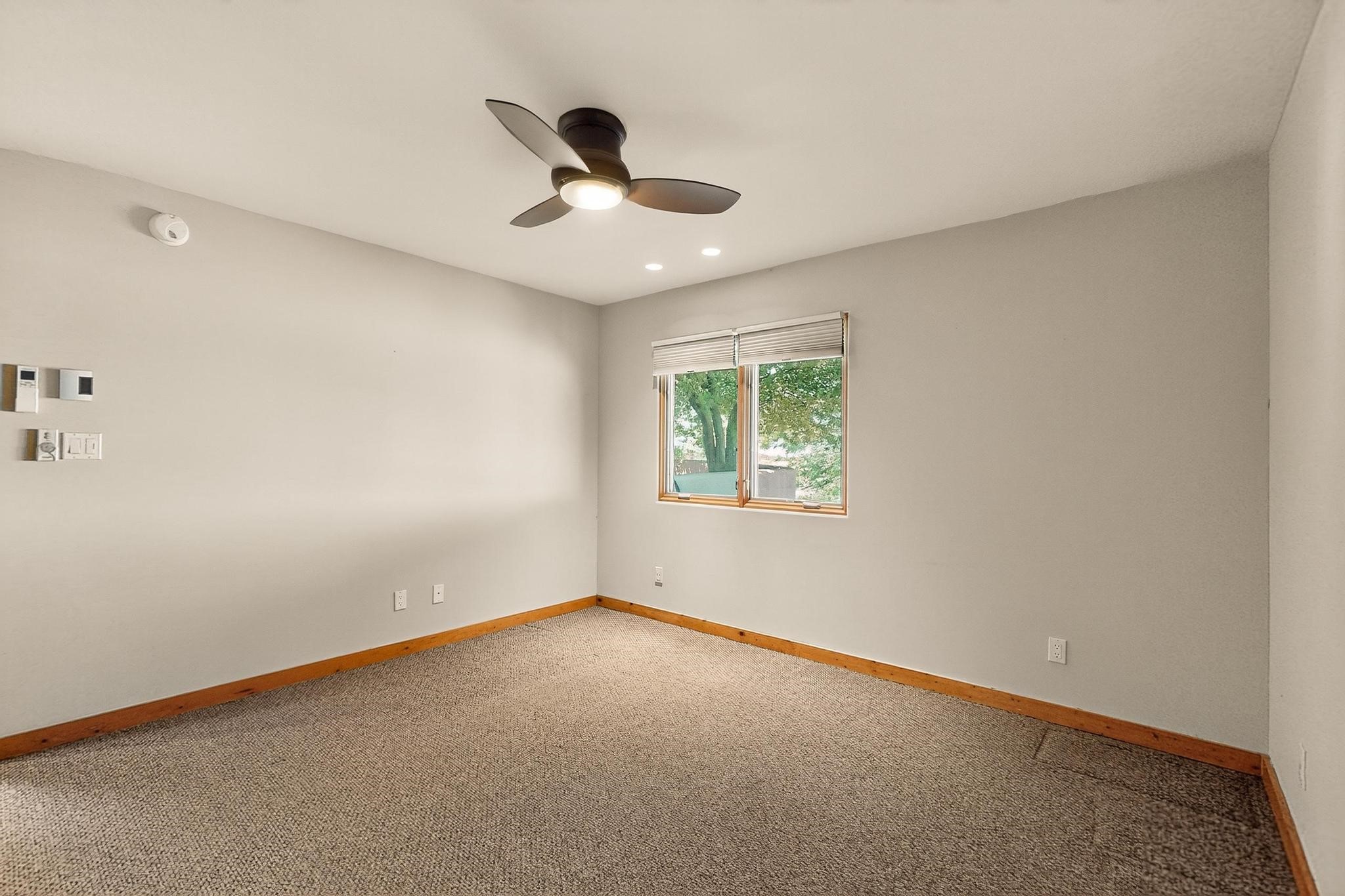 Priced to Sell! Potential multigenerational living. Expansive contemporary pueblo, split bedroom open plan design with high ceilings throughout. The main home includes a formal dining area, spacious great room with kiva fireplace, a large primary suite with kiva fireplace, large walk in closet and spa-like bathroom. Excellent separation from the two guest bedrooms and bath, plus a den/study. The kitchen has been remodeled including an induction range top, custom lighted cabinetry and pantry. The radiant heating is supplemented by 5 mini splits to keep a comfortable temperature summer and winter. There is a large heated storage room/workroom for hobbies and toys plus an oversized 2 car garage. Behind the home sits a detached 478 sq.ft. heated 2 room studio/guest with a 3/4 bathroom for extra guests/office or studio with a separate septic system. A lovely walled garden with a 3rd kiva fireplace for enjoyment plus a large portal for morning or evening outside entertainment. Enjoy the historic railway and rail trail bordering the back of your land. Plenty of guest parking with a paved driveway and easy access to Eldorado amenities, local shopping only minutes into Santa Fe.