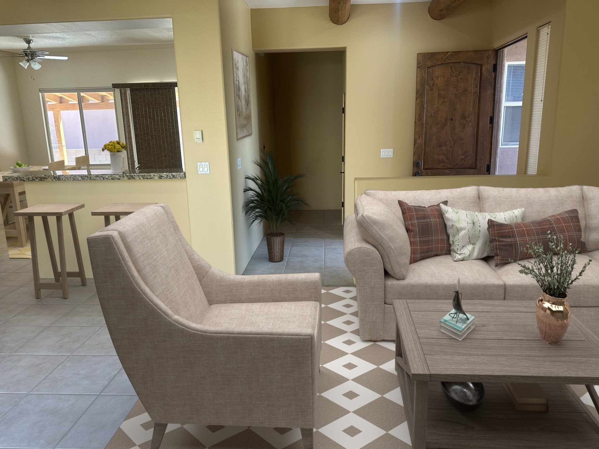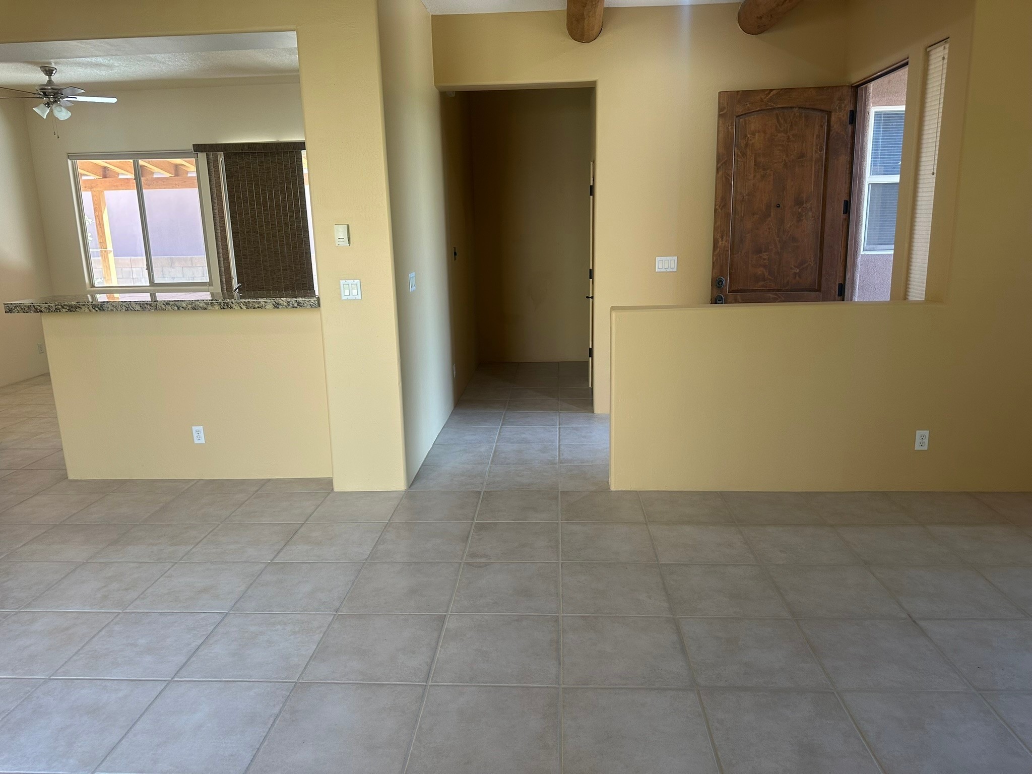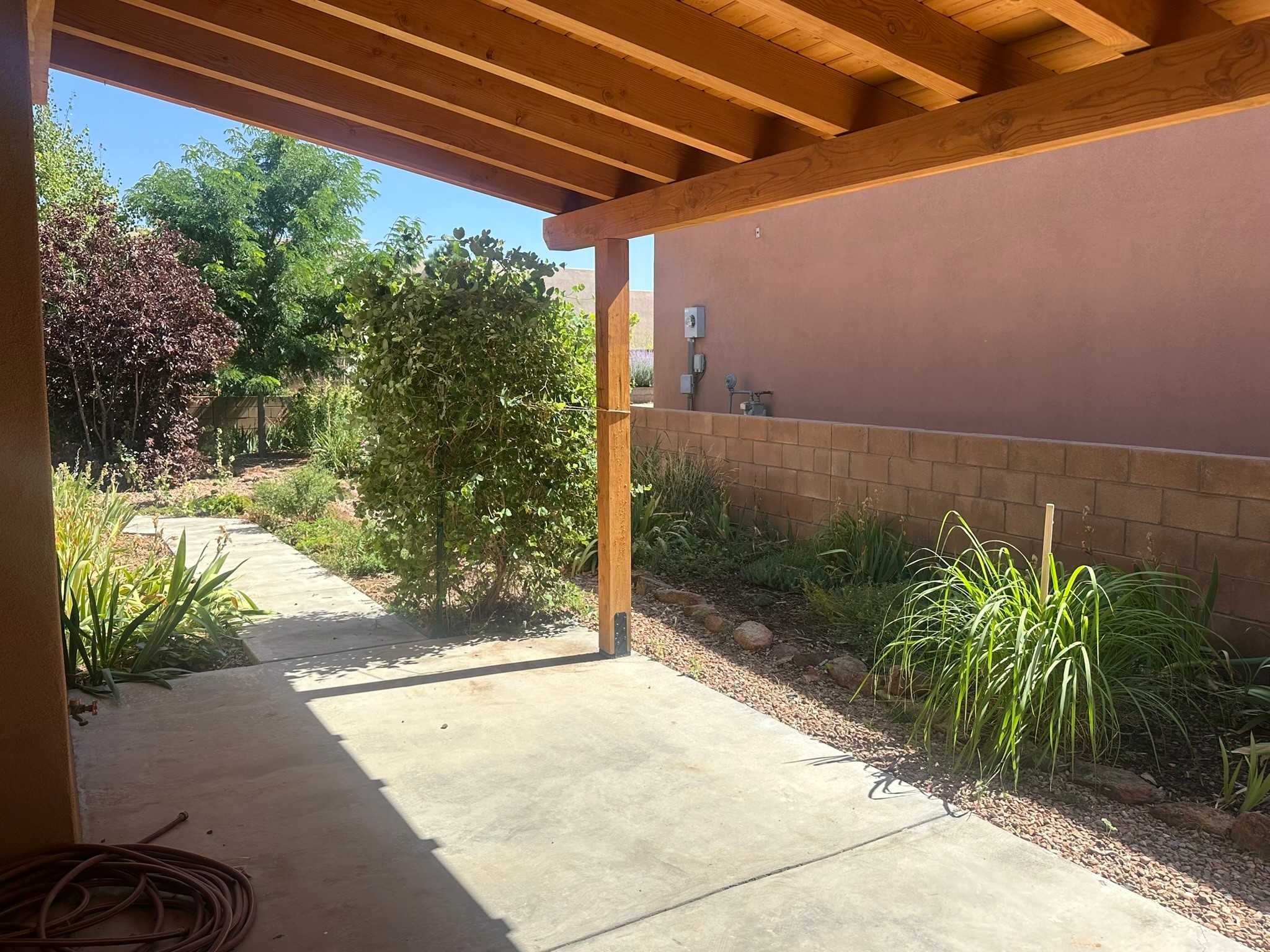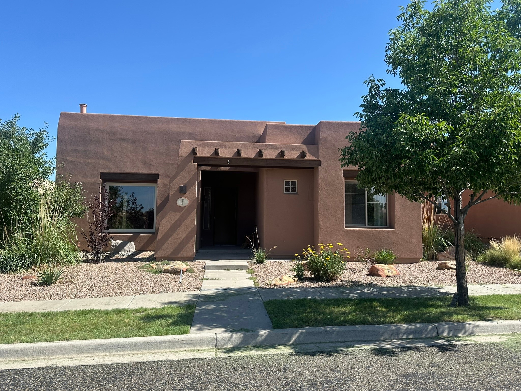 This beautifully designed Aspen floor plan offers effortless, single-level living--no steps, just seamless sophistication from room to room. Step inside to a sun-drenched, freshly painted living area adorned with a stunning new picture window and accented by warm wood ceiling beams. A gas fireplace serves as the elegant focal point, creating an inviting atmosphere for cozy evenings or stylish entertaining. The open-concept kitchen features granite countertops, ample pantry space, and a natural flow into the dining and living areas--perfect for everyday indulgence or hosting guests. With three generously sized bedrooms and two full baths, the intelligent split floor plan provides both privacy and comfort. The spacious primary suite offers direct access to a private, covered back patio, a large walk-in closet, and an en suite bath--making it a true retreat.Additional highlights include, a brand-new TPO roof (2025), some newly installed energy-efficient windows, radiant heat and a swamp cooler for year-round comfort, tall two-car garage for added storage and convenience, a well-maintained, landscaped yard with a flourishing blackberry bush--ideal for green thumbs, private back porch with a beautiful cover, perfect for outdoor relaxation, and a generous linen closet for practical storage solutions. Set against a backdrop of open space with direct access to serene trails, this home effortlessly blends everyday comfort with the natural beauty of its surroundings. Discover where thoughtful design, modern upgrades, and nature come together--your next chapter begins here.