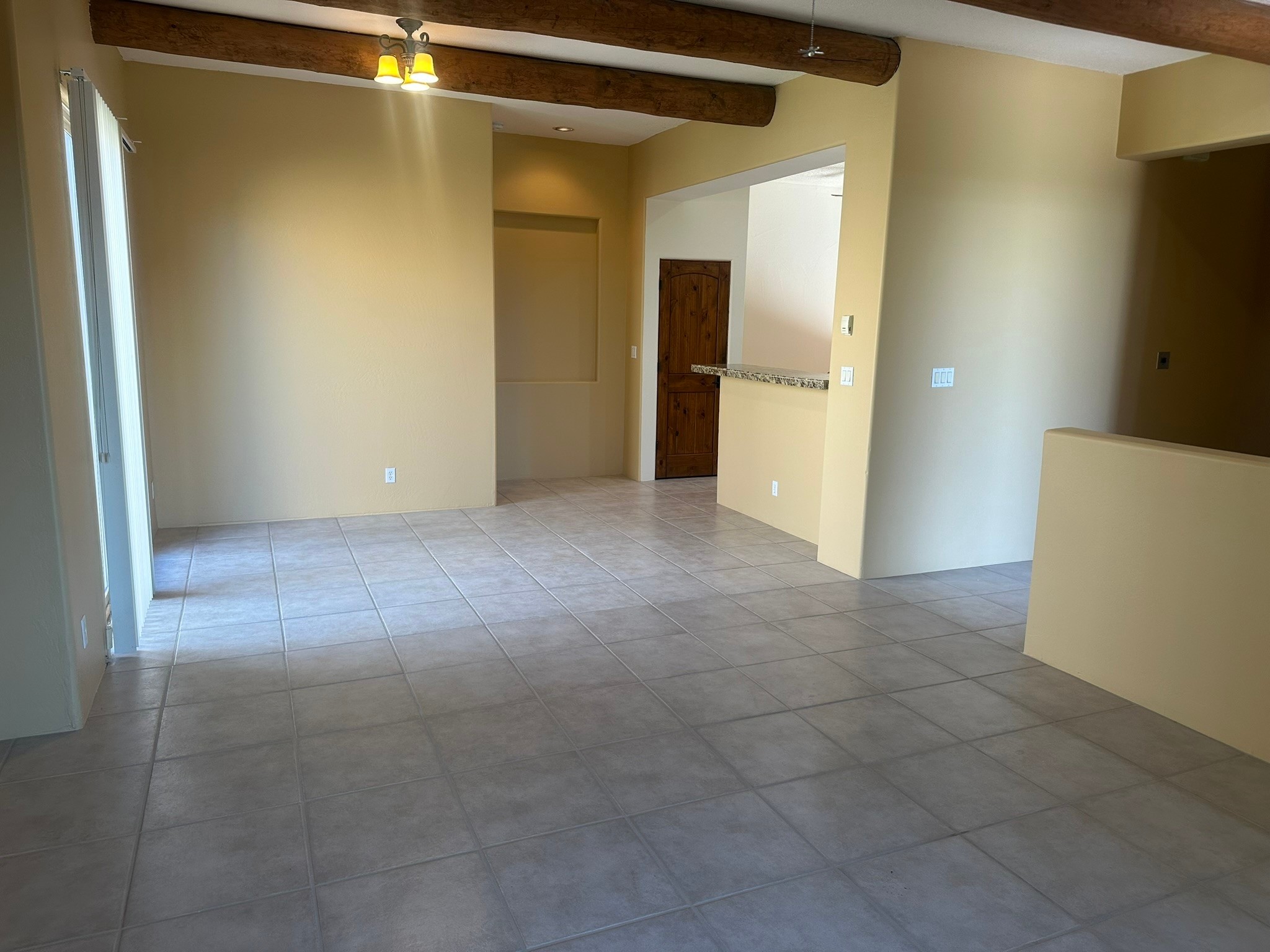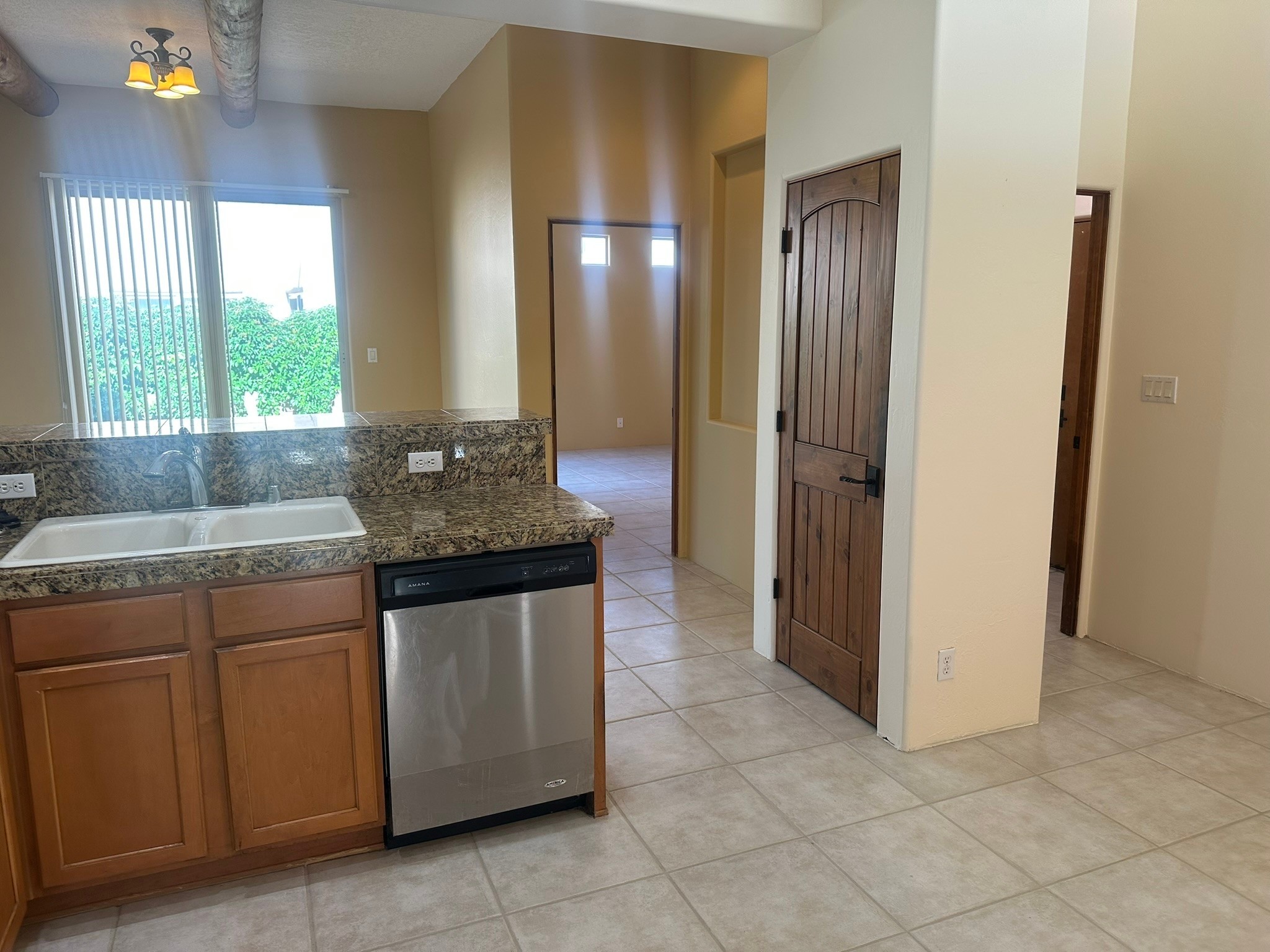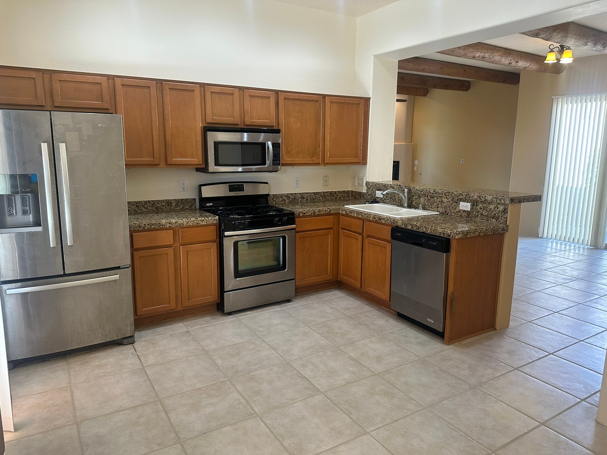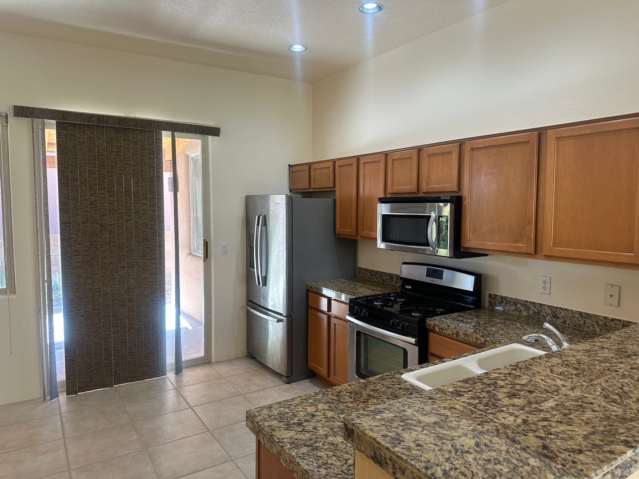 This beautifully designed Aspen floor plan offers effortless, single-level living--no steps, just seamless sophistication from room to room. Step inside to a sun-drenched, freshly painted living area adorned with a stunning new picture window and accented by warm wood ceiling beams. A gas fireplace serves as the elegant focal point, creating an inviting atmosphere for cozy evenings or stylish entertaining. The open-concept kitchen features granite countertops, ample pantry space, and a natural flow into the dining and living areas--perfect for everyday indulgence or hosting guests. With three generously sized bedrooms and two full baths, the intelligent split floor plan provides both privacy and comfort. The spacious primary suite offers direct access to a private, covered back patio, a large walk-in closet, and an en suite bath--making it a true retreat.Additional highlights include, a brand-new TPO roof (2025), some newly installed energy-efficient windows, radiant heat and a swamp cooler for year-round comfort, tall two-car garage for added storage and convenience, a well-maintained, landscaped yard with a flourishing blackberry bush--ideal for green thumbs, private back porch with a beautiful cover, perfect for outdoor relaxation, and a generous linen closet for practical storage solutions. Set against a backdrop of open space with direct access to serene trails, this home effortlessly blends everyday comfort with the natural beauty of its surroundings. Discover where thoughtful design, modern upgrades, and nature come together--your next chapter begins here.