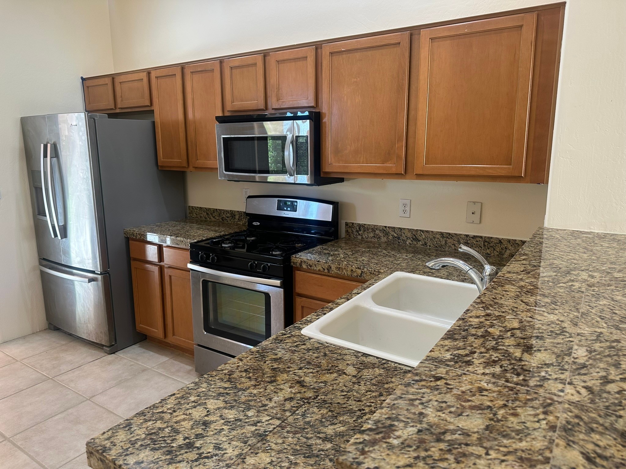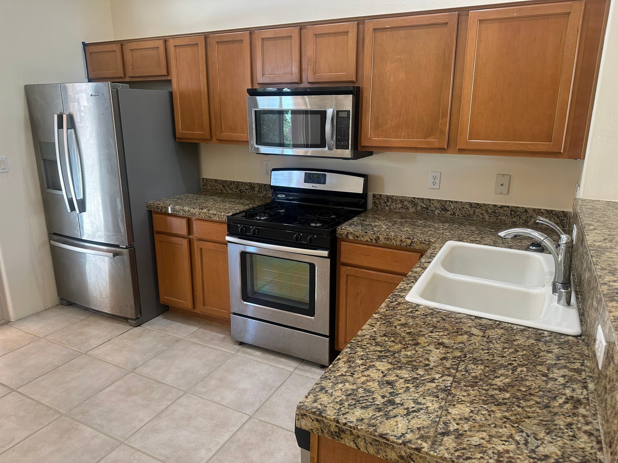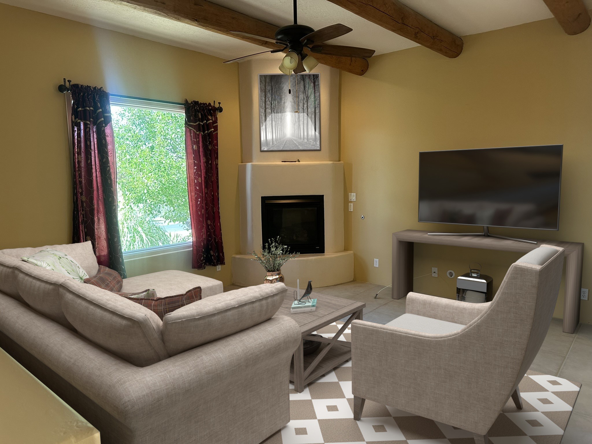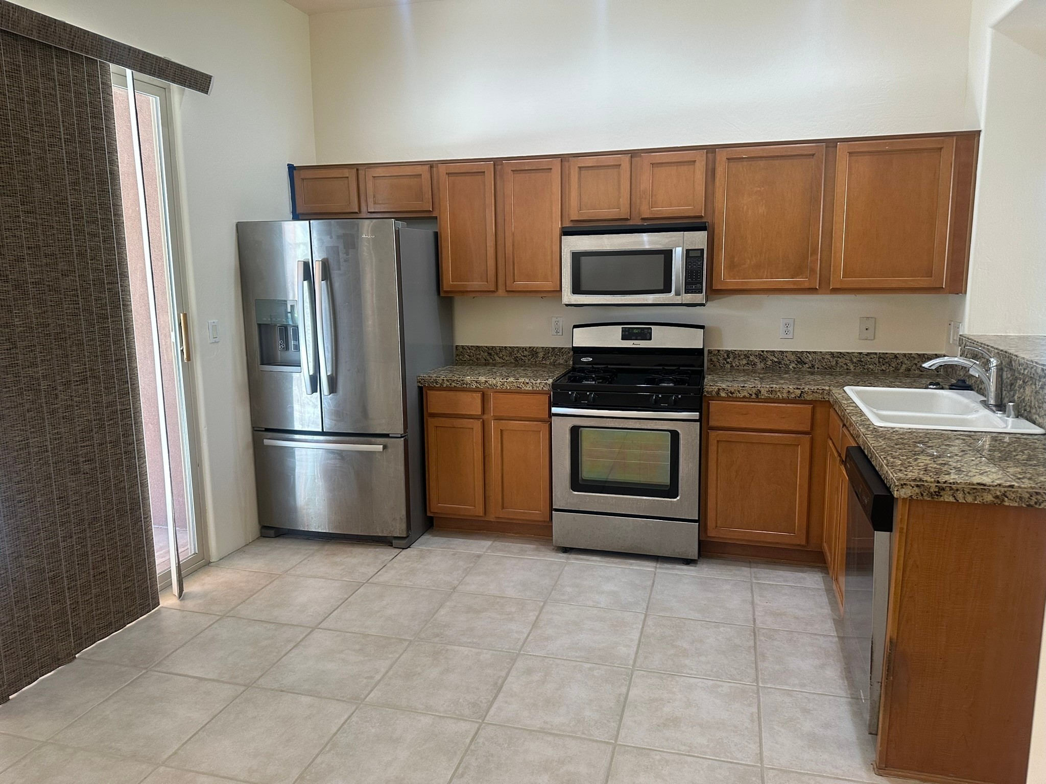 This beautifully designed Aspen floor plan offers effortless, single-level living--no steps, just seamless sophistication from room to room. Step inside to a sun-drenched, freshly painted living area adorned with a stunning new picture window and accented by warm wood ceiling beams. A gas fireplace serves as the elegant focal point, creating an inviting atmosphere for cozy evenings or stylish entertaining. The open-concept kitchen features granite countertops, ample pantry space, and a natural flow into the dining and living areas--perfect for everyday indulgence or hosting guests. With three generously sized bedrooms and two full baths, the intelligent split floor plan provides both privacy and comfort. The spacious primary suite offers direct access to a private, covered back patio, a large walk-in closet, and an en suite bath--making it a true retreat.Additional highlights include, a brand-new TPO roof (2025), some newly installed energy-efficient windows, radiant heat and a swamp cooler for year-round comfort, tall two-car garage for added storage and convenience, a well-maintained, landscaped yard with a flourishing blackberry bush--ideal for green thumbs, private back porch with a beautiful cover, perfect for outdoor relaxation, and a generous linen closet for practical storage solutions. Set against a backdrop of open space with direct access to serene trails, this home effortlessly blends everyday comfort with the natural beauty of its surroundings. Discover where thoughtful design, modern upgrades, and nature come together--your next chapter begins here.
