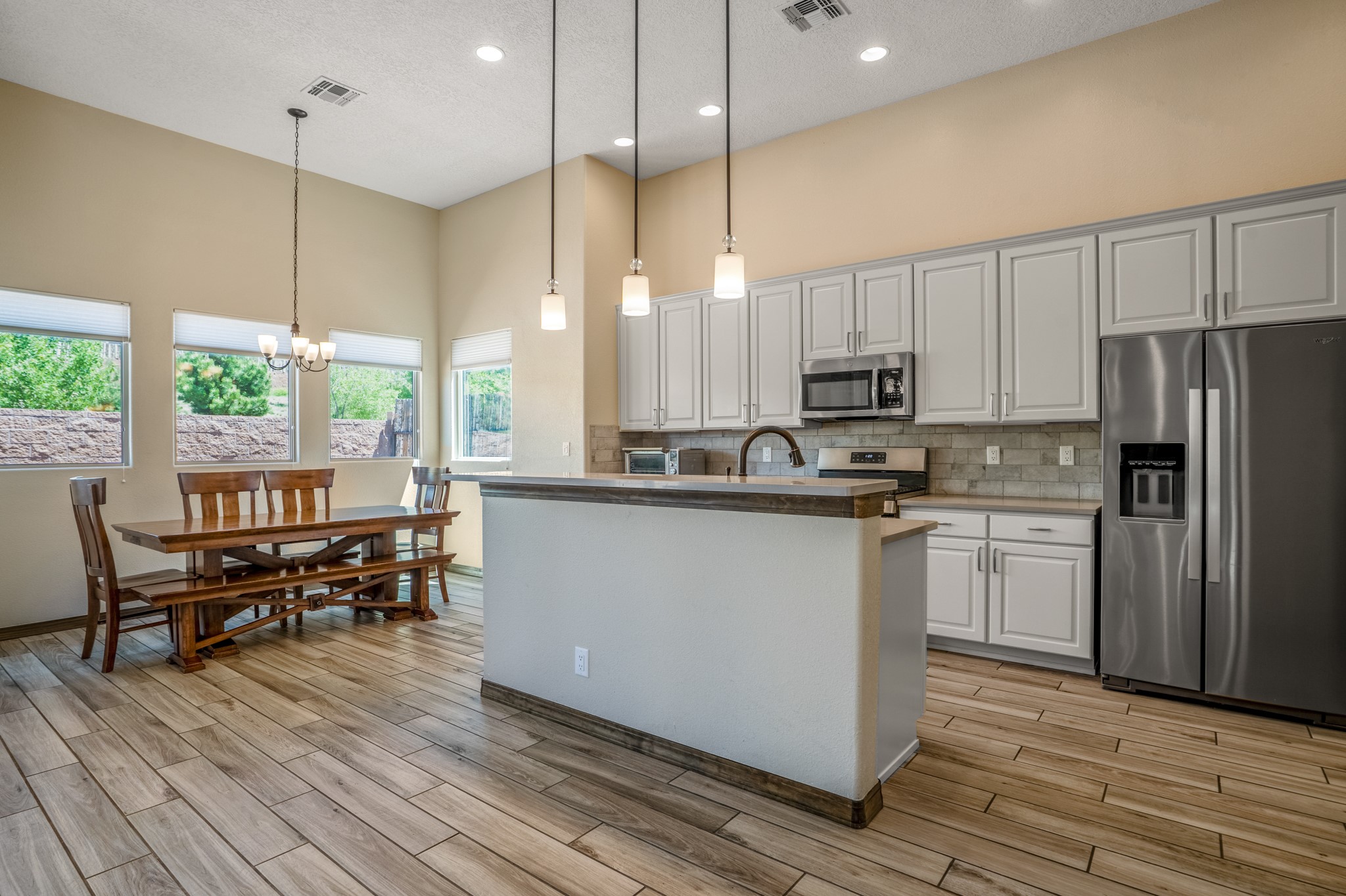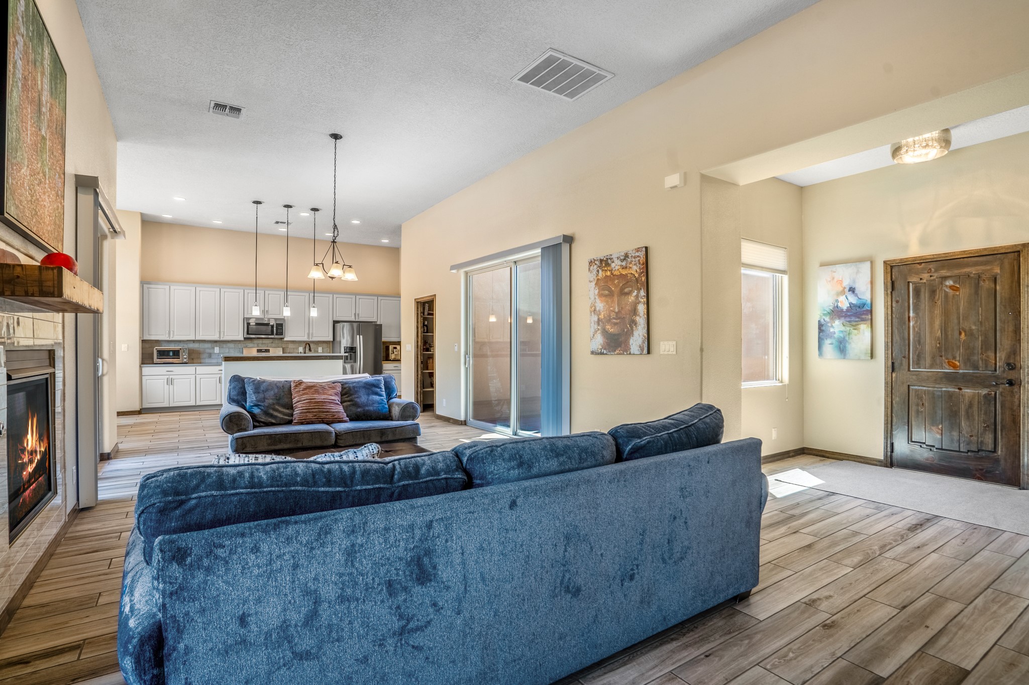 READY TO MOVE IN! Experience modern living in this beautiful La Pradera home! An open floor plan with high ceilings welcomes you into a space designed for comfort and style. The stunning kitchen, complete with a walk-in pantry, white cabinetry, granite countertops, and stainless steel appliances, is the true heart of the home, flowing effortlessly into the living and dining areas. Relax by the sleek gas fireplace or enjoy the refrigerated air on warm summer nights. Another bonus is the Kinetico water softener system. This home offers multiple outdoor spaces, including a charming interior courtyard. The primary suite is your private retreat with a luxurious bath featuring a separate tub and shower, plus a large walk-in closet. The three-car garage includes a durable epoxy floor, and the private backyard backs up to open space, offering the perfect setting for entertaining. This is a home you won't want to miss!