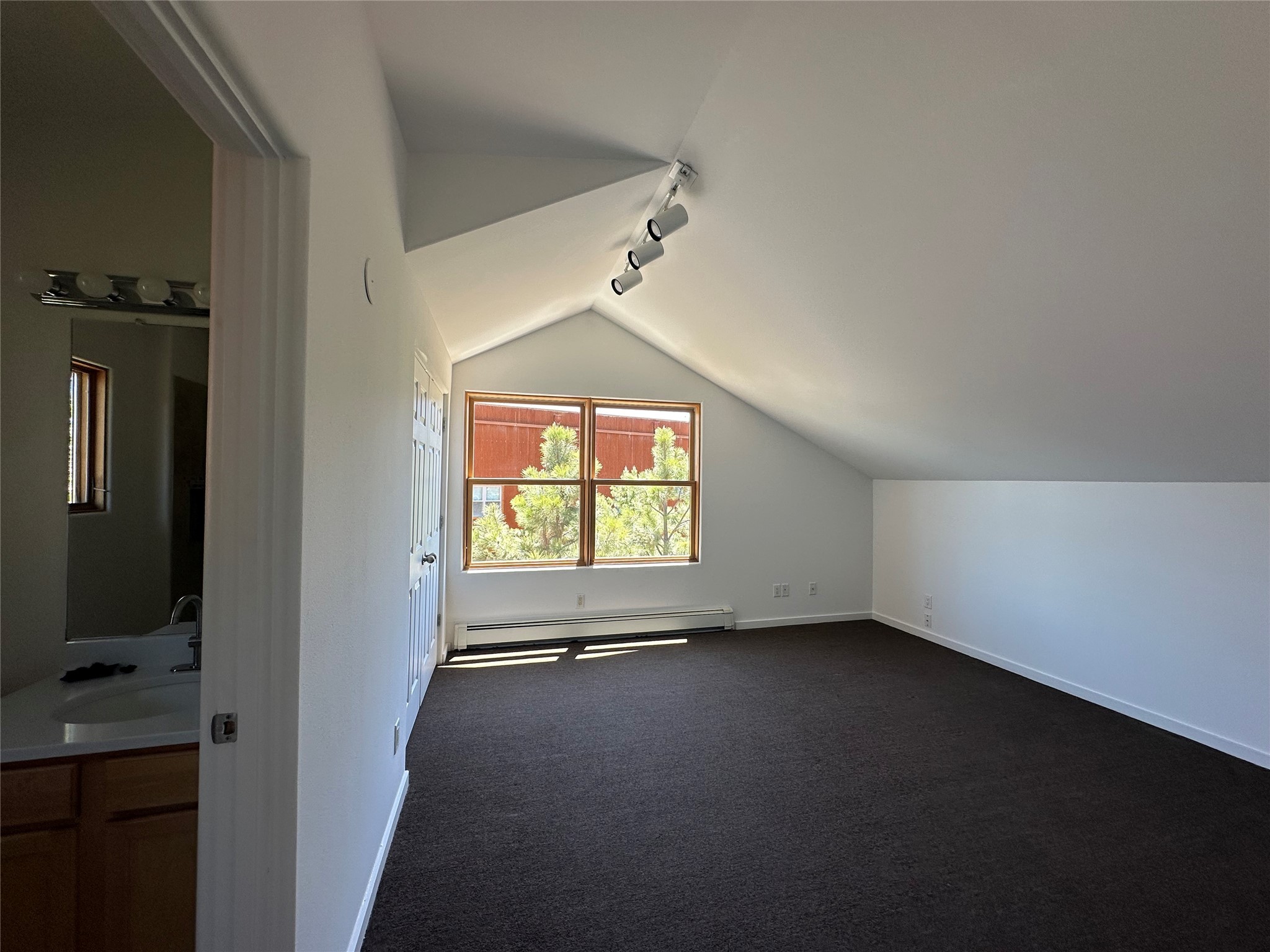 Nestled in one of the most walkable and bike-friendly neighborhoods in town, this beautifully designed 2-bedroom, 2-bathroom home with a spacious loft sits on a generously sized lot surrounded by mature trees. Just a short stroll to local favorites like Bread Shop, OZU, and Iconik Coffee Roasters, you'll love the convenience of living close to Santa Fe's best. The main home offers approximately 1,500 square feet of living space, featuring a pitched roof, radiant heat floors, abundant natural light, and soaring ceilings that create an open, airy feel. There's plenty of room to garden, entertain, or simply relax outdoors under the trees. An attached 823+/- square foot casita provides additional flexibility -- ideal for guests, rental income, or a workspace. The casita is currently rented but can be delivered vacant depending on your needs. A detached two-car garage adds storage and parking. A versatile property in a prime location.