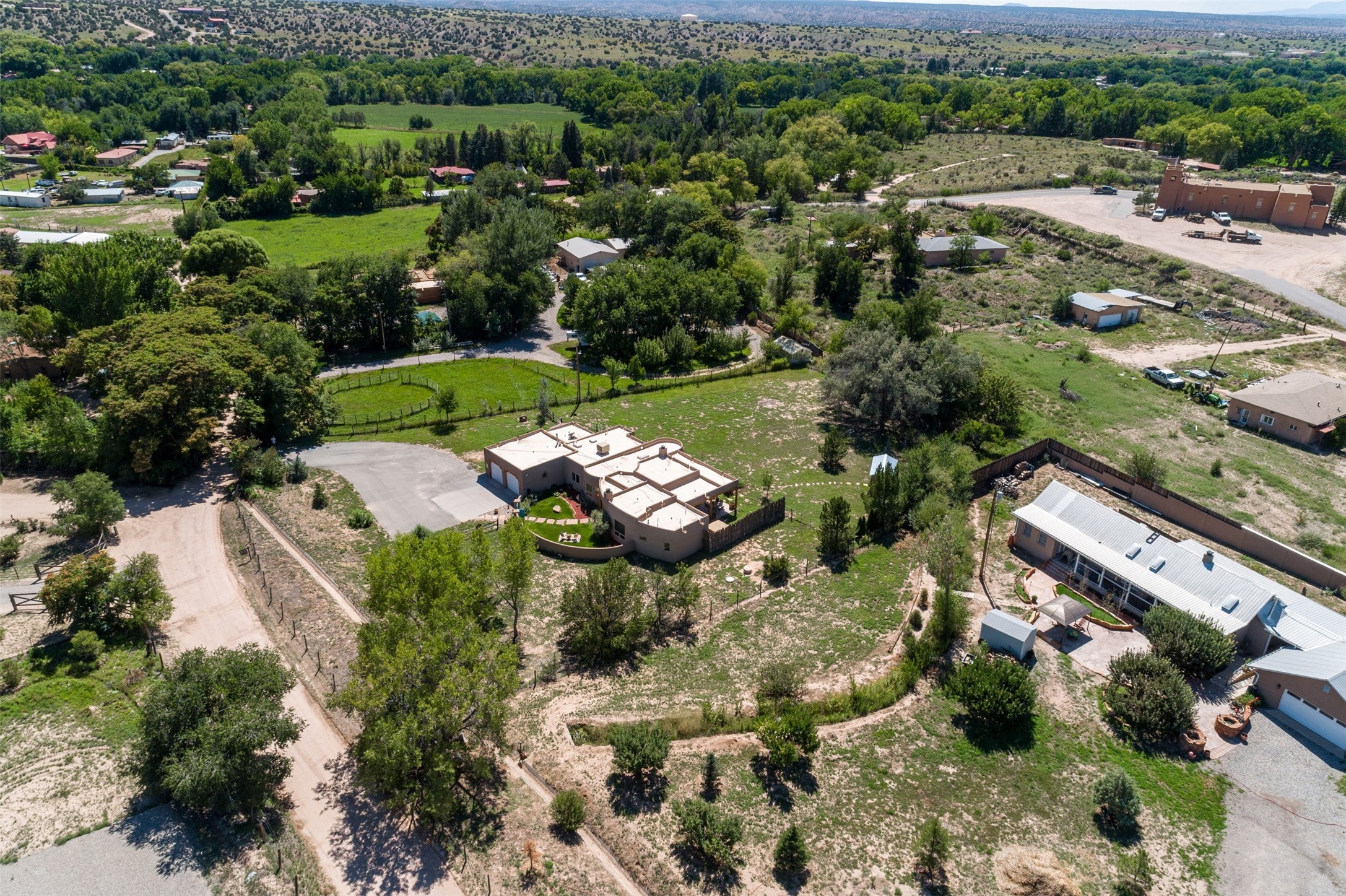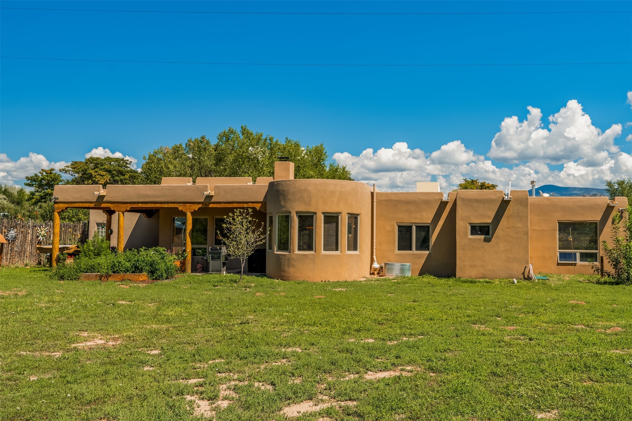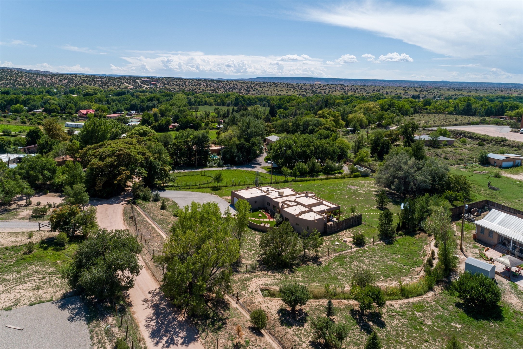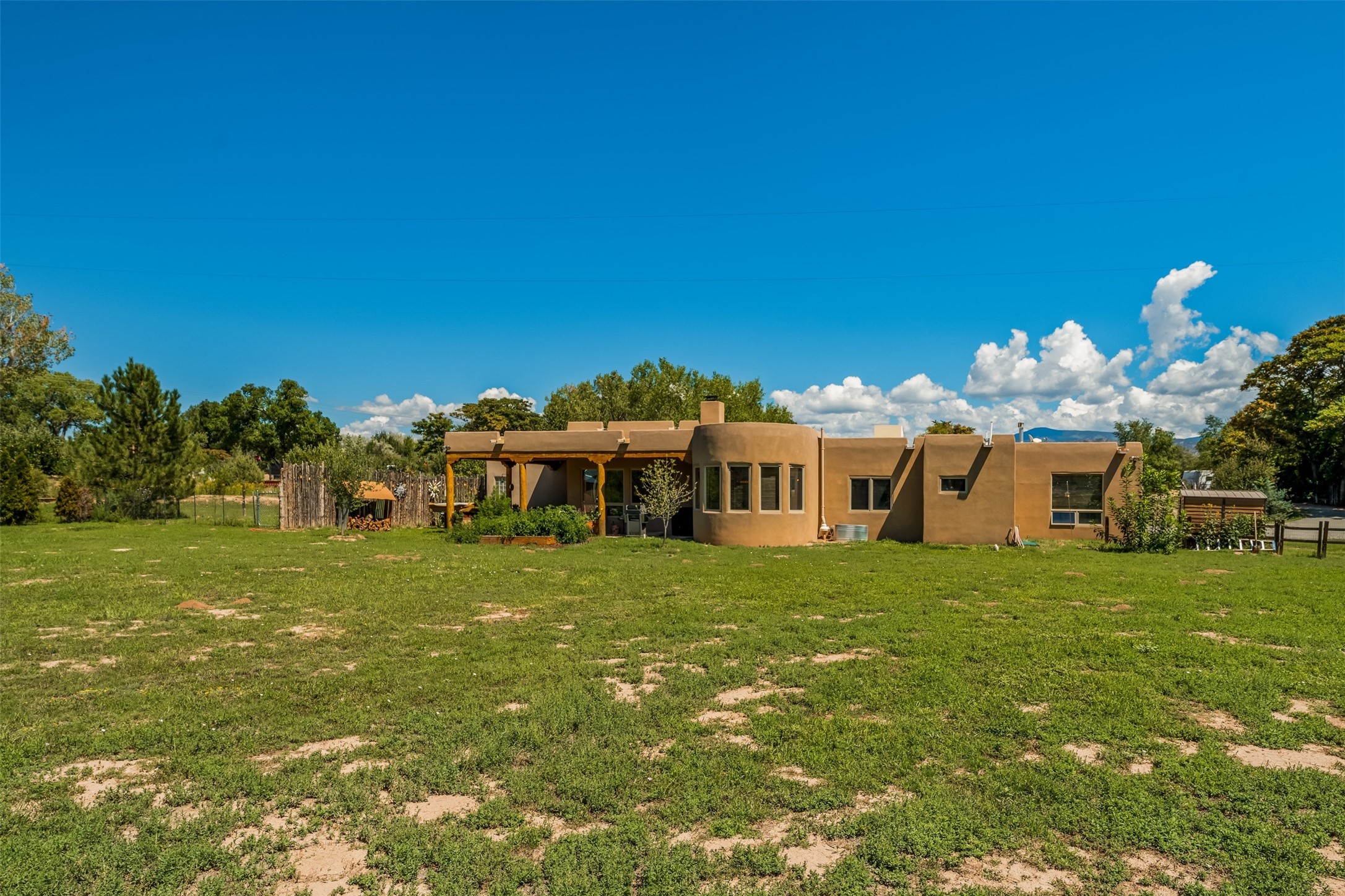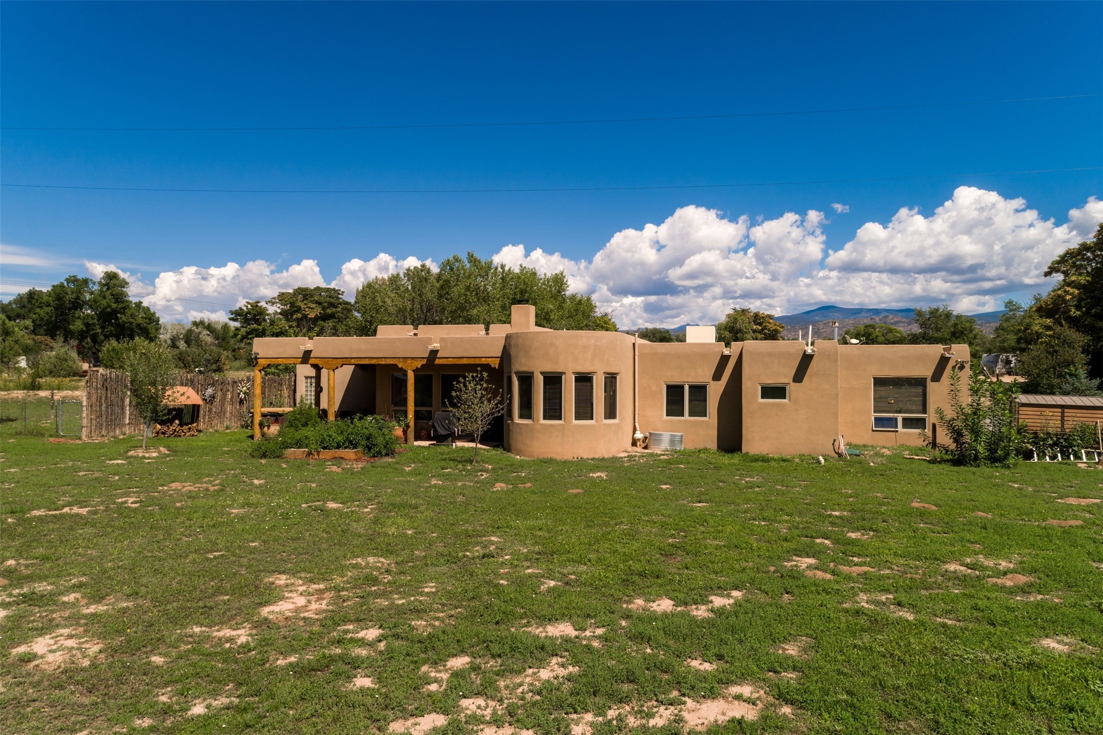 Refined Nambe Retreat with Premium Upgrades, Acreage & Iconic ViewsDiscover this exceptional Nambe property--now further elevated with thoughtful, high-end improvements that complement its natural charm and timeless Southwestern design. Nestled on over an acre of flat, lush land with a private well and acequia water rights, this home offers a lifestyle of comfort, beauty, and self-sufficiency.The property has been extensively upgraded to enhance both aesthetics and function, including a new professionally paved driveway, expanded water filtration with a reverse osmosis system, hot tub, and other improvements designed for long-term ease and enjoyment. Every enhancement reflects pride of ownership and investment in quality living. Step into the walled courtyard with mature landscaping and fruit trees, where sweeping mountain views and the iconic Sacred Heart Church create an unforgettable backdrop. Inside, the home is filled with natural light from skylights, smooth plaster walls, and charming Santa Fe architectural details like rounded walls and two traditional kiva fireplaces.The spacious, split-bedroom layout includes a luxurious primary suite featuring a soaking tub, walk-in closet, and direct access to the expansive wraparound portal--perfect for entertaining or relaxing outdoors in every season. The kitchen is a culinary highlight, boasting granite countertops, premium appliances, and a wall of windows that frame the surrounding beauty.A private guest wing offers flexibility with a bonus room ideal as a studio, office, or additional bedroom. Recent system upgrades also include a newer furnace, leach field, a 2022 roof with transferable warranty, and a pre-inspected structure for added peace of mind.With unparalleled views, water access, and a list of substantial enhancements, this move-in-ready home offers a rare blend of rural tranquility and refined living in one of Northern New Mexico's most scenic enclaves.