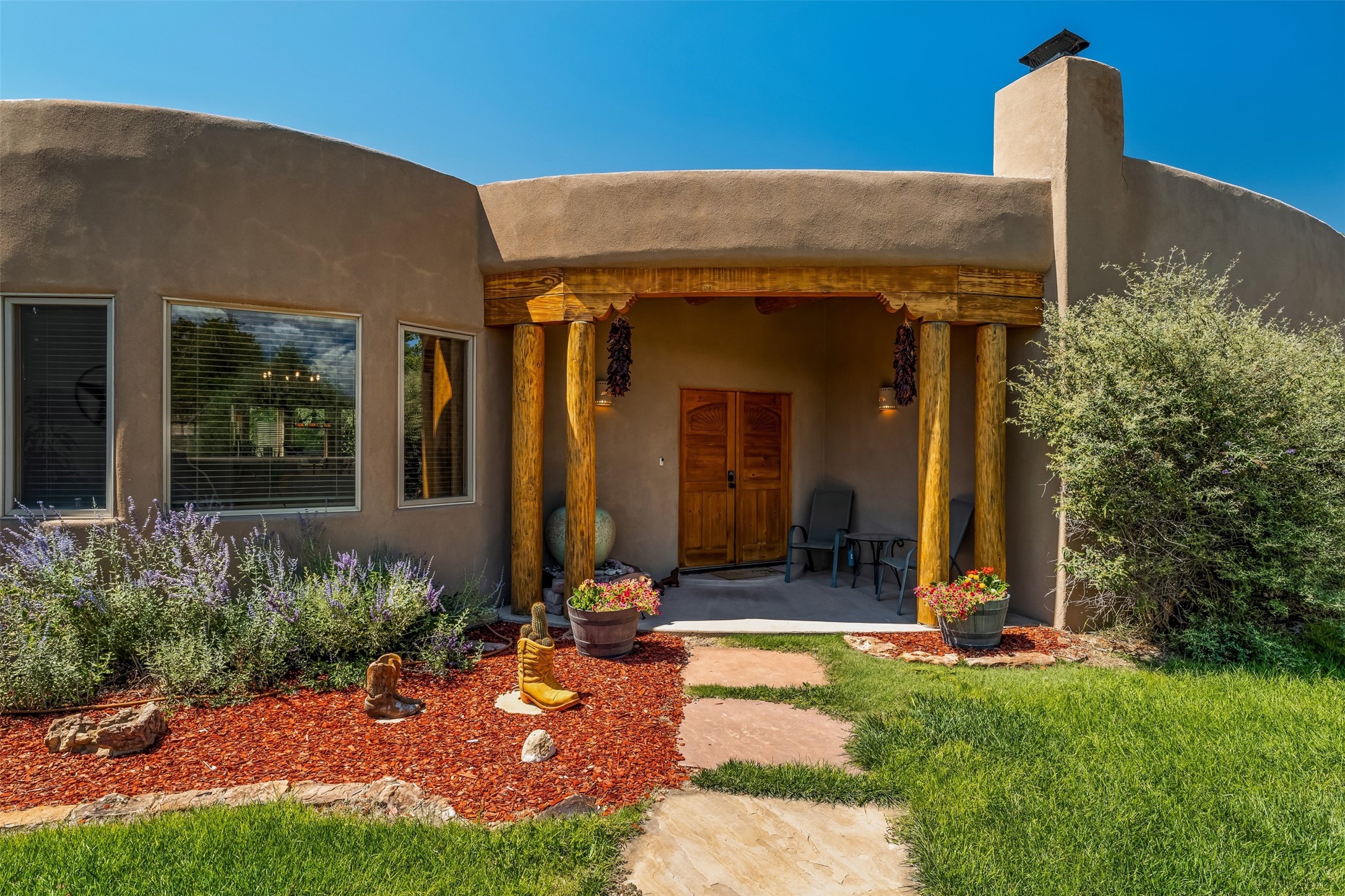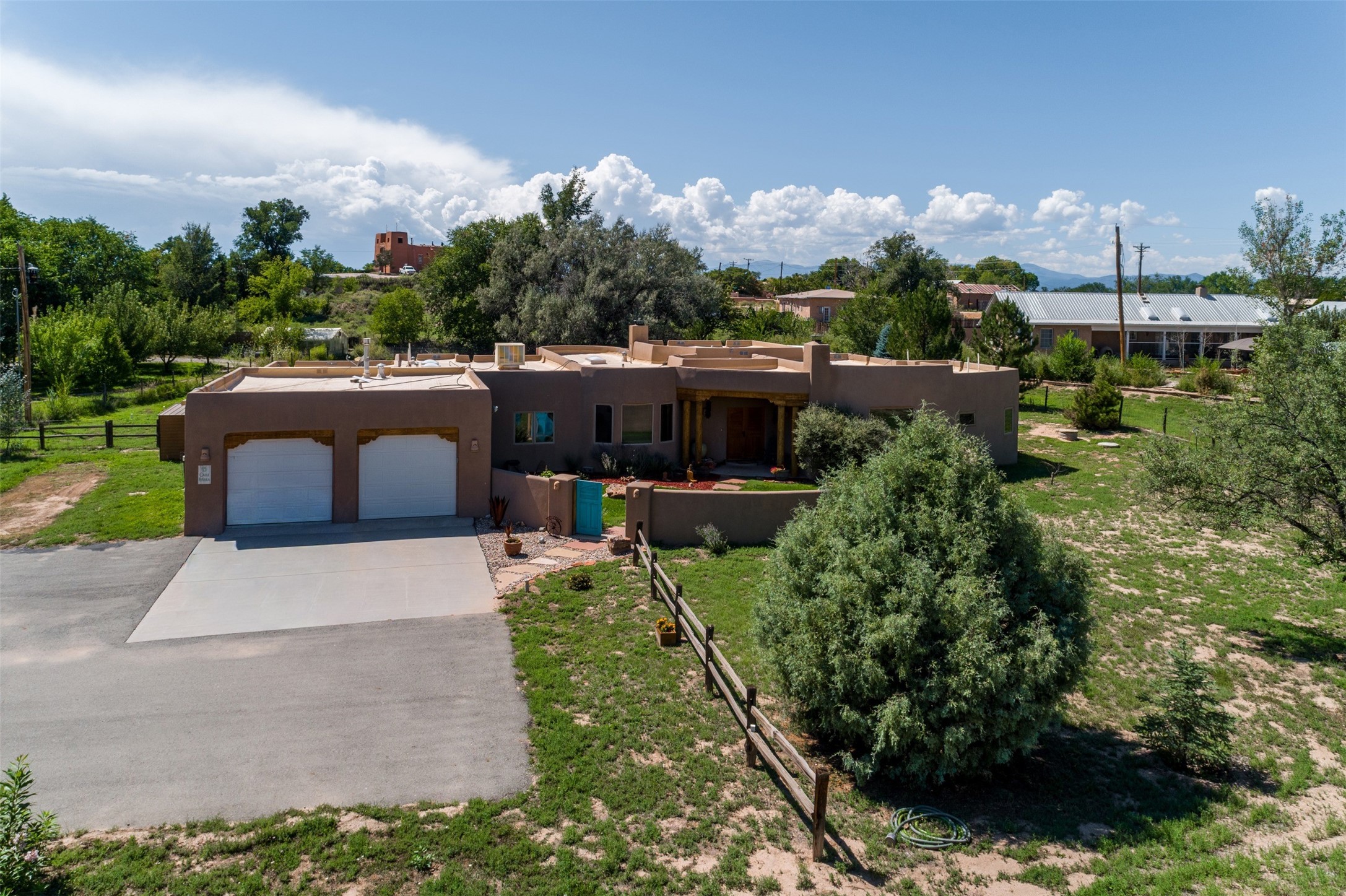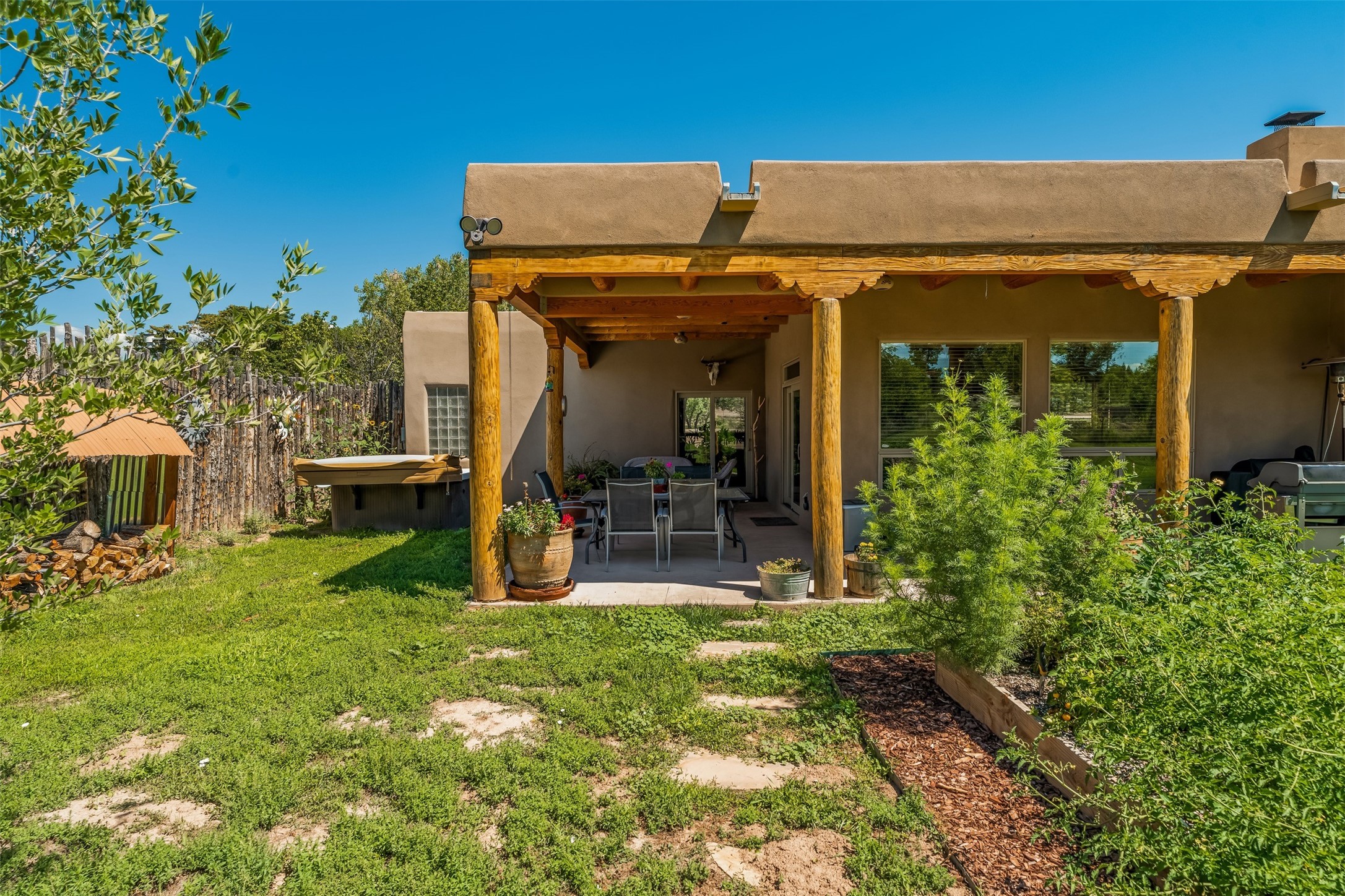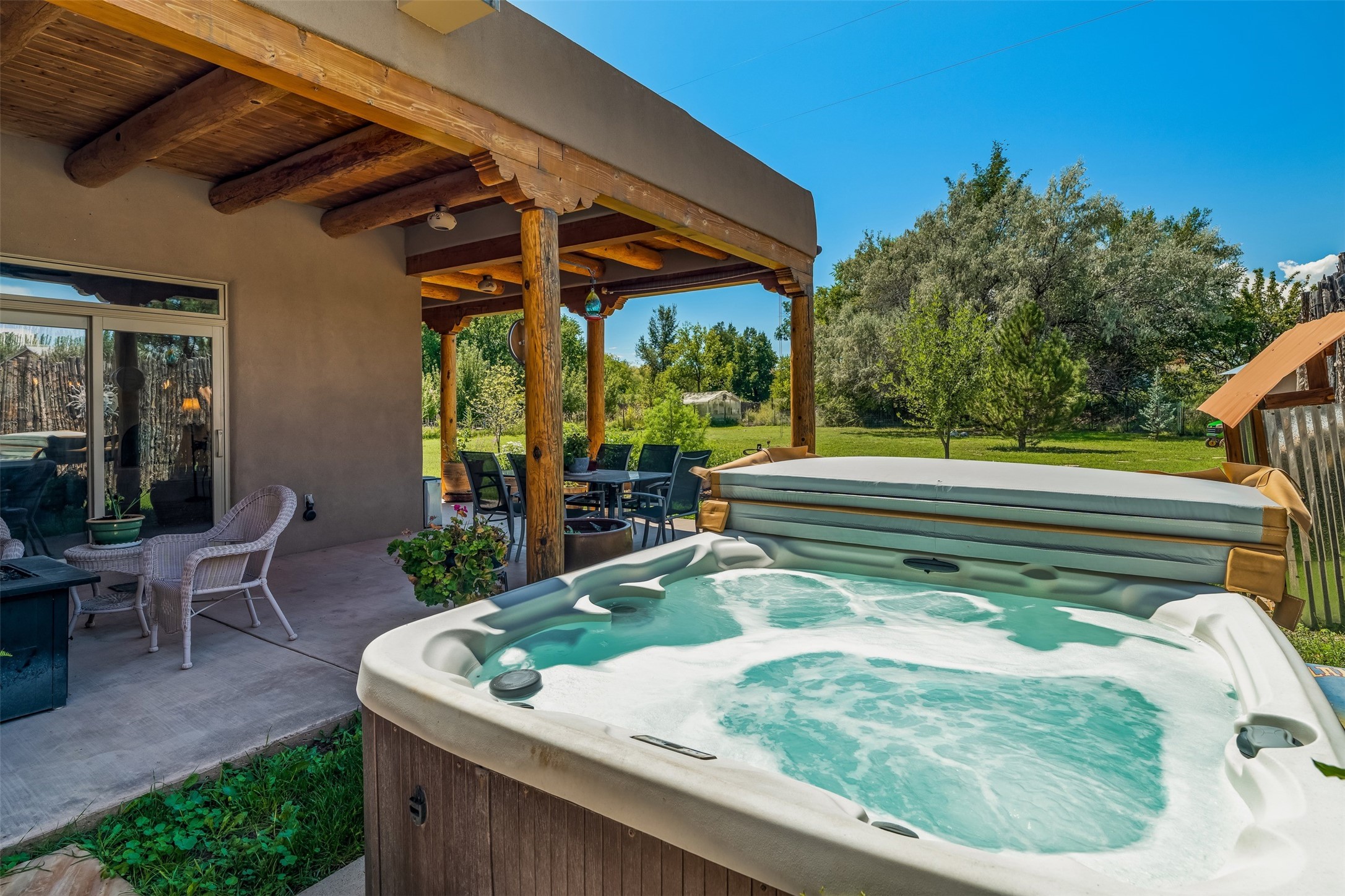 Refined Nambe Retreat with Premium Upgrades, Acreage & Iconic ViewsDiscover this exceptional Nambe property--now further elevated with thoughtful, high-end improvements that complement its natural charm and timeless Southwestern design. Nestled on over an acre of flat, lush land with a private well and acequia water rights, this home offers a lifestyle of comfort, beauty, and self-sufficiency.The property has been extensively upgraded to enhance both aesthetics and function, including a new professionally paved driveway, expanded water filtration with a reverse osmosis system, hot tub, and other improvements designed for long-term ease and enjoyment. Every enhancement reflects pride of ownership and investment in quality living. Step into the walled courtyard with mature landscaping and fruit trees, where sweeping mountain views and the iconic Sacred Heart Church create an unforgettable backdrop. Inside, the home is filled with natural light from skylights, smooth plaster walls, and charming Santa Fe architectural details like rounded walls and two traditional kiva fireplaces.The spacious, split-bedroom layout includes a luxurious primary suite featuring a soaking tub, walk-in closet, and direct access to the expansive wraparound portal--perfect for entertaining or relaxing outdoors in every season. The kitchen is a culinary highlight, boasting granite countertops, premium appliances, and a wall of windows that frame the surrounding beauty.A private guest wing offers flexibility with a bonus room ideal as a studio, office, or additional bedroom. Recent system upgrades also include a newer furnace, leach field, a 2022 roof with transferable warranty, and a pre-inspected structure for added peace of mind.With unparalleled views, water access, and a list of substantial enhancements, this move-in-ready home offers a rare blend of rural tranquility and refined living in one of Northern New Mexico's most scenic enclaves.