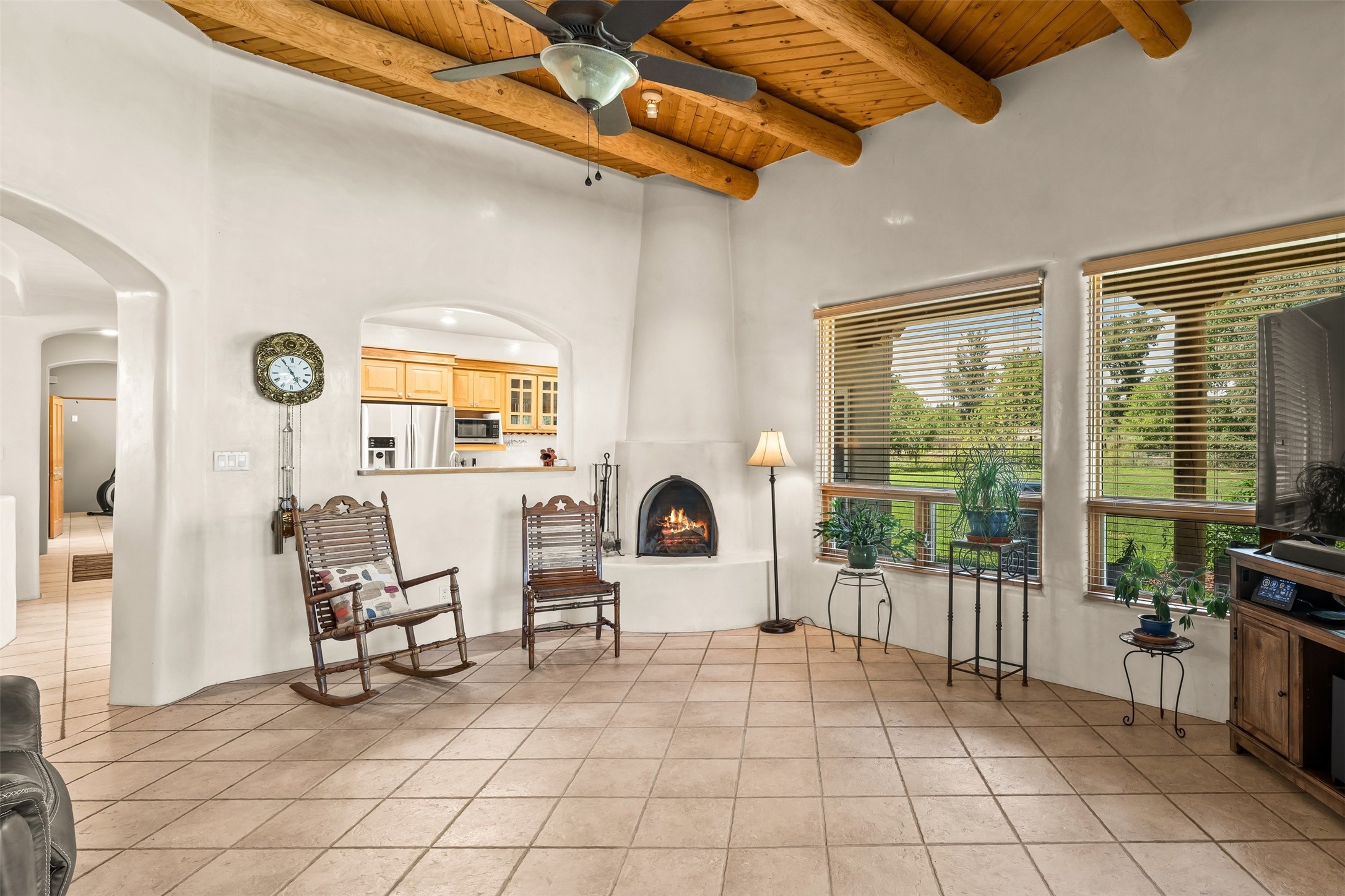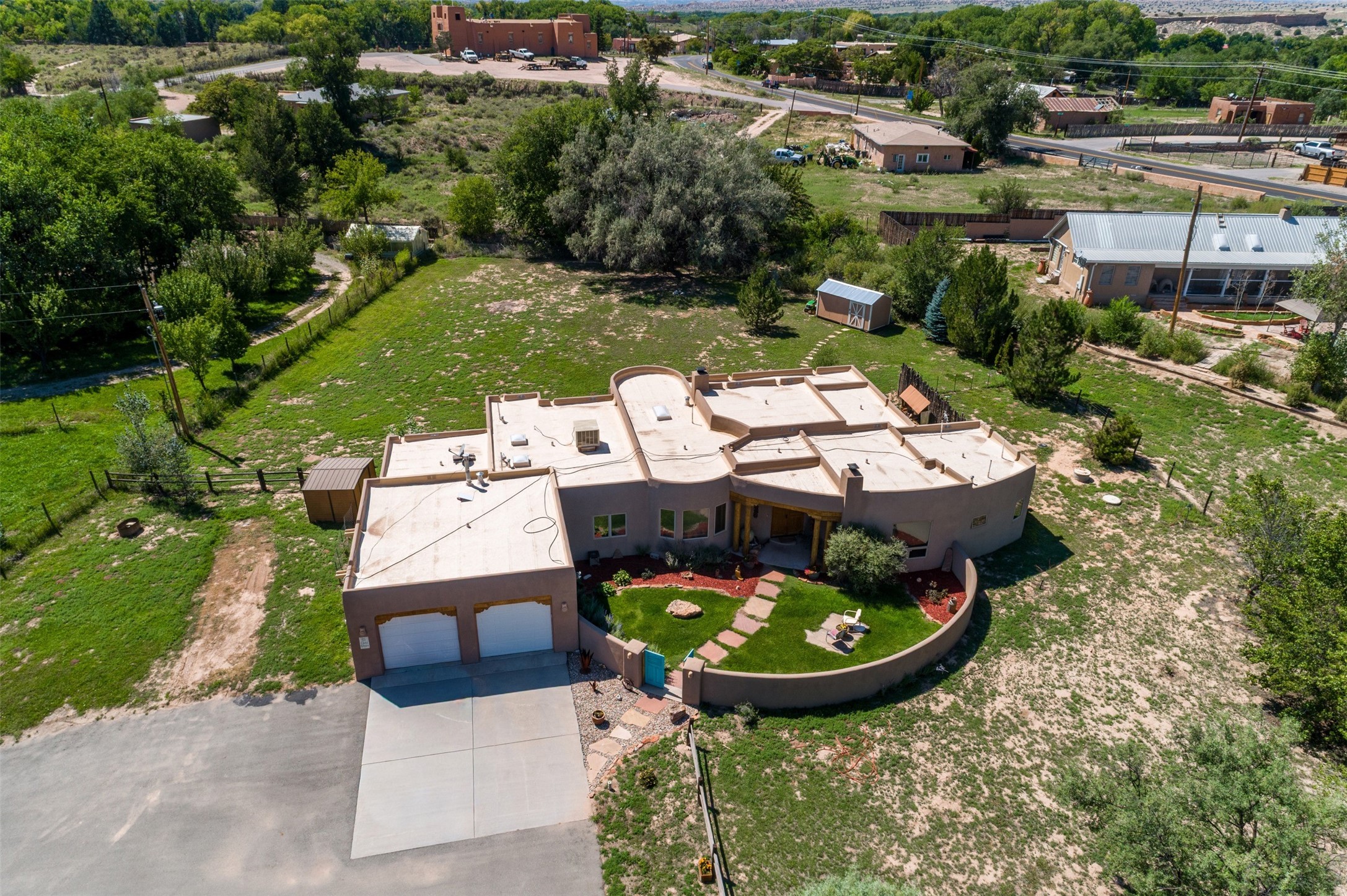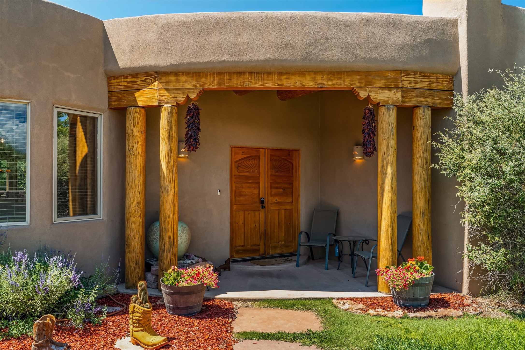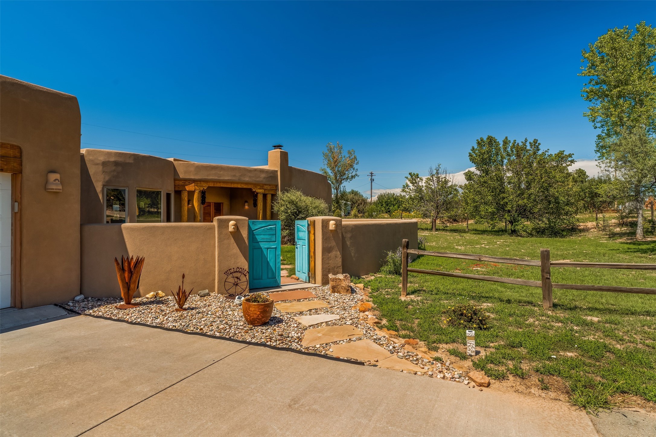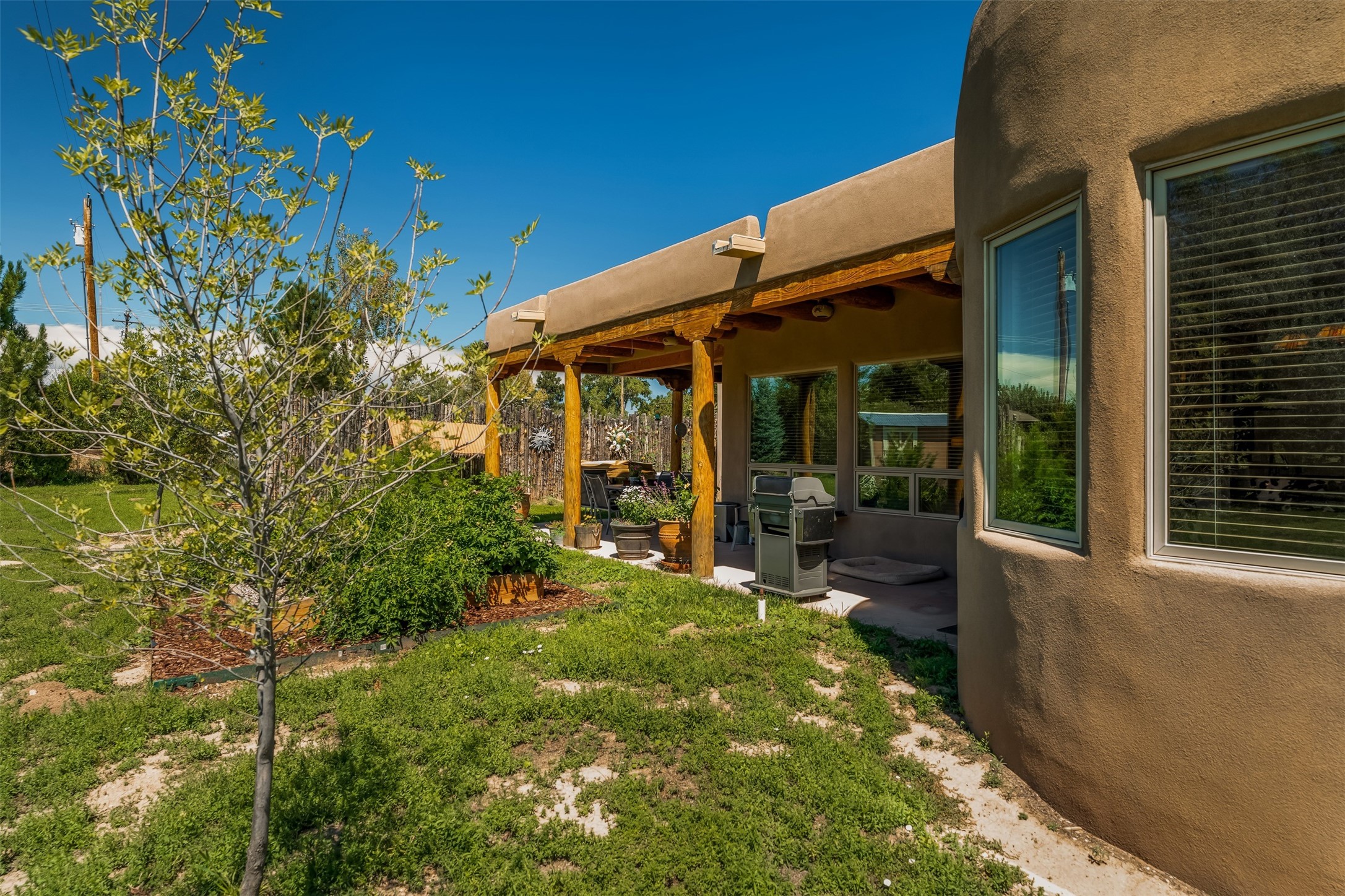 Refined Nambe Retreat with Premium Upgrades, Acreage & Iconic ViewsDiscover this exceptional Nambe property--now further elevated with thoughtful, high-end improvements that complement its natural charm and timeless Southwestern design. Nestled on over an acre of flat, lush land with a private well and acequia water rights, this home offers a lifestyle of comfort, beauty, and self-sufficiency.The property has been extensively upgraded to enhance both aesthetics and function, including a new professionally paved driveway, expanded water filtration with a reverse osmosis system, hot tub, and other improvements designed for long-term ease and enjoyment. Every enhancement reflects pride of ownership and investment in quality living. Step into the walled courtyard with mature landscaping and fruit trees, where sweeping mountain views and the iconic Sacred Heart Church create an unforgettable backdrop. Inside, the home is filled with natural light from skylights, smooth plaster walls, and charming Santa Fe architectural details like rounded walls and two traditional kiva fireplaces.The spacious, split-bedroom layout includes a luxurious primary suite featuring a soaking tub, walk-in closet, and direct access to the expansive wraparound portal--perfect for entertaining or relaxing outdoors in every season. The kitchen is a culinary highlight, boasting granite countertops, premium appliances, and a wall of windows that frame the surrounding beauty.A private guest wing offers flexibility with a bonus room ideal as a studio, office, or additional bedroom. Recent system upgrades also include a newer furnace, leach field, a 2022 roof with transferable warranty, and a pre-inspected structure for added peace of mind.With unparalleled views, water access, and a list of substantial enhancements, this move-in-ready home offers a rare blend of rural tranquility and refined living in one of Northern New Mexico's most scenic enclaves.