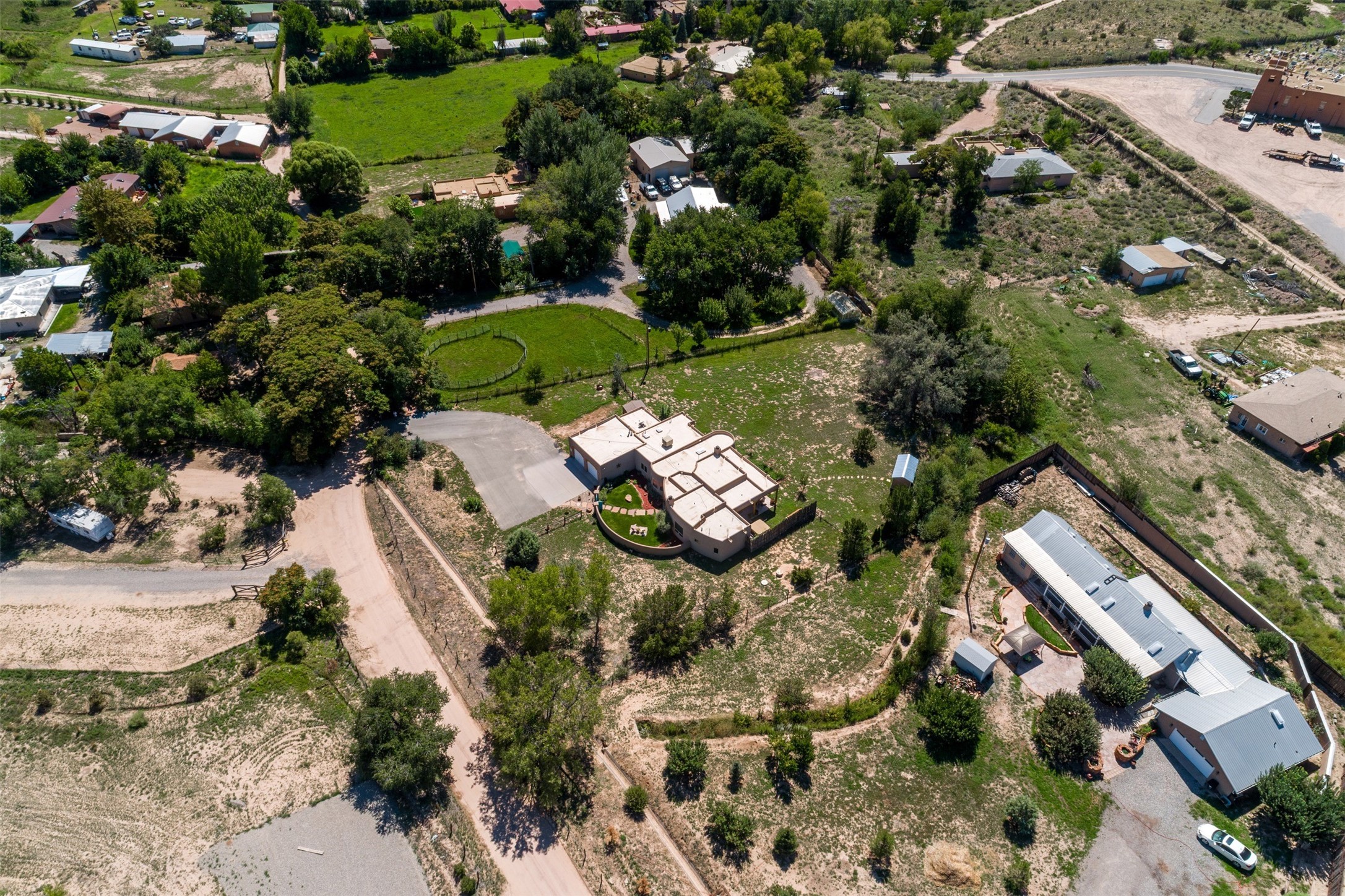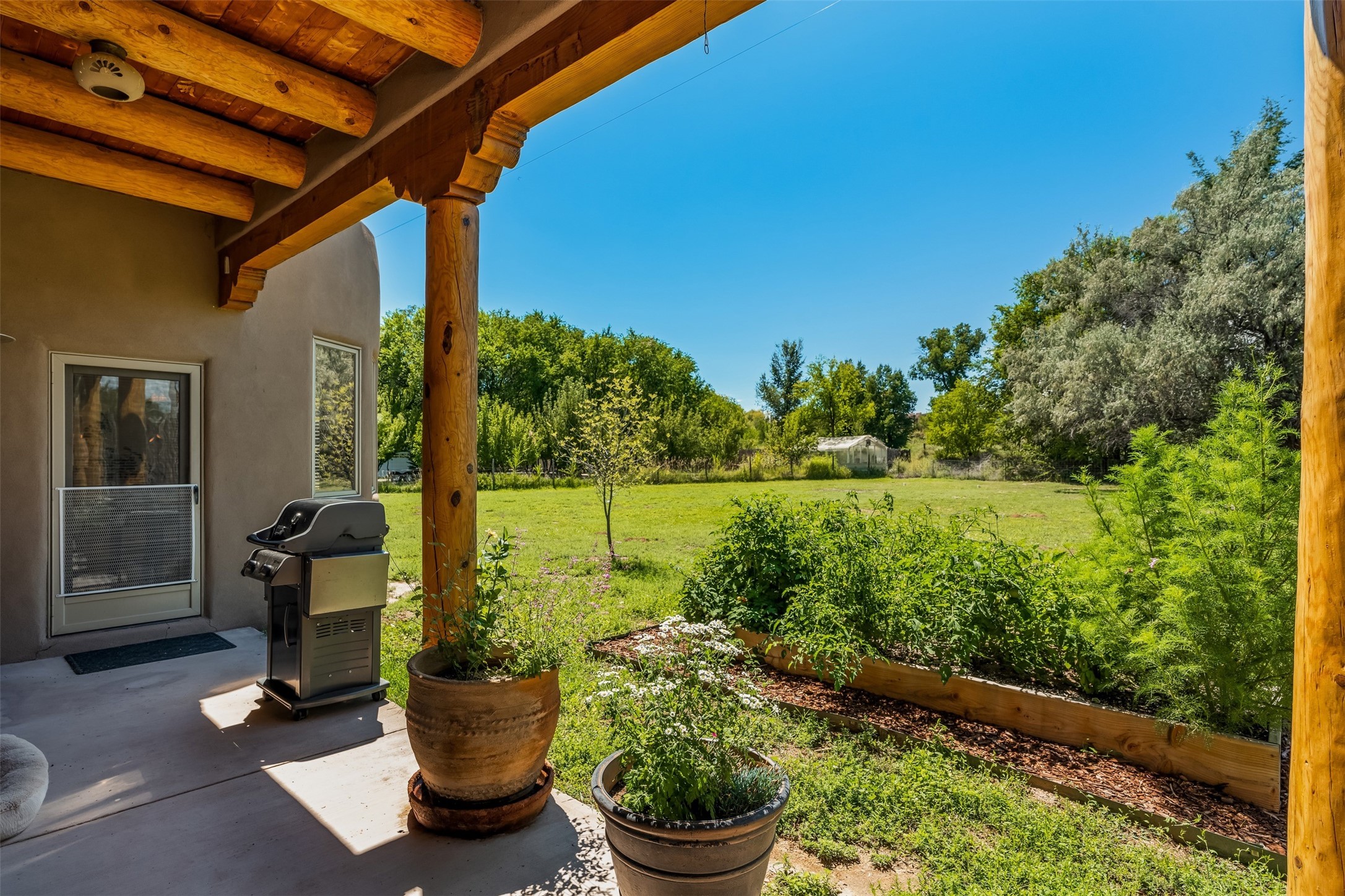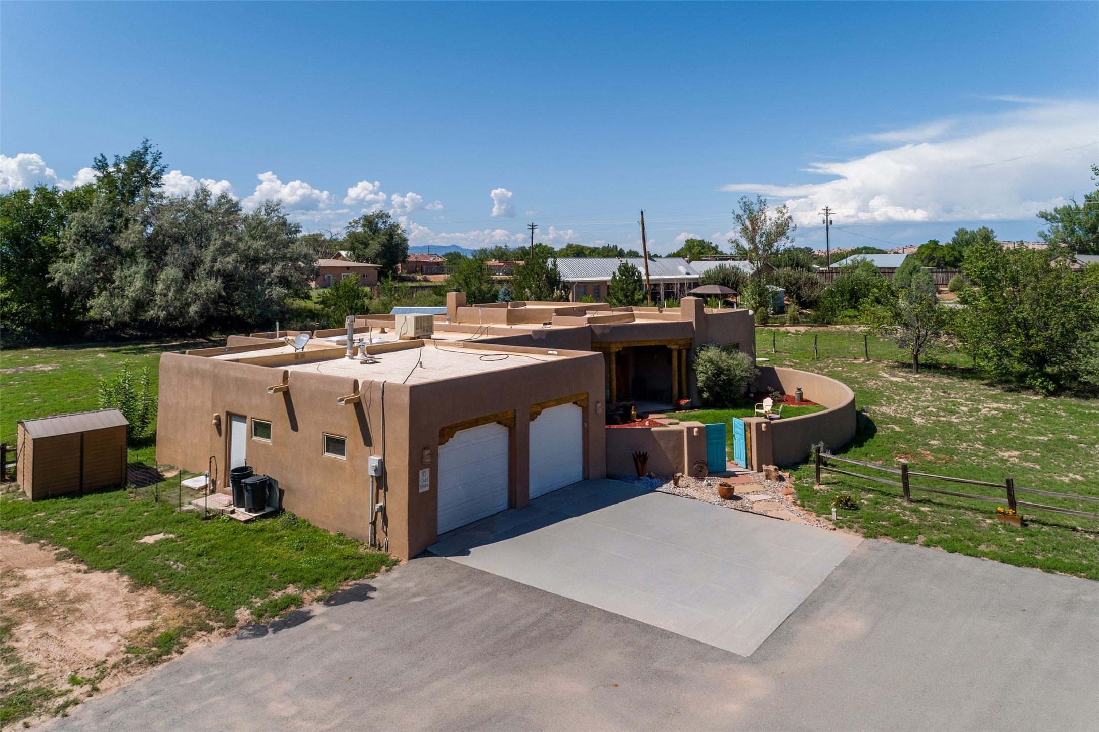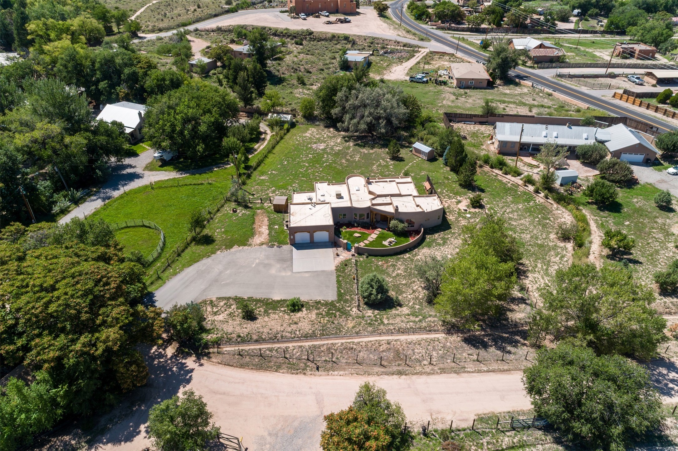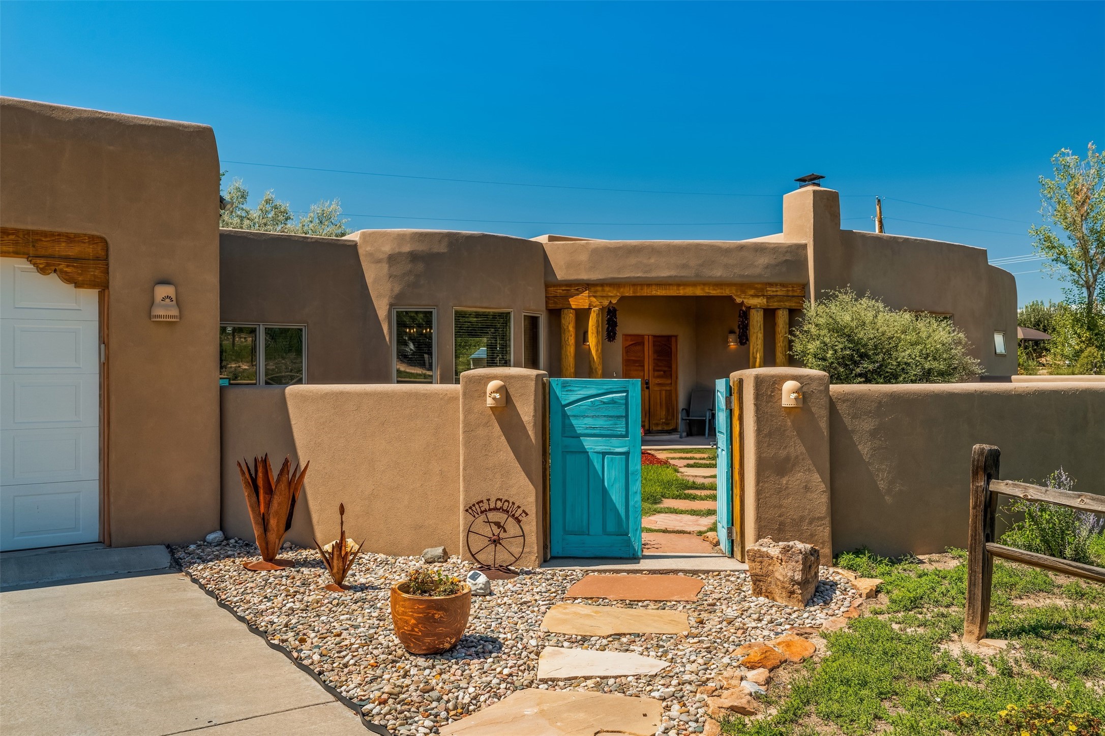 Refined Nambe Retreat with Premium Upgrades, Acreage & Iconic ViewsDiscover this exceptional Nambe property--now further elevated with thoughtful, high-end improvements that complement its natural charm and timeless Southwestern design. Nestled on over an acre of flat, lush land with a private well and acequia water rights, this home offers a lifestyle of comfort, beauty, and self-sufficiency.The property has been extensively upgraded to enhance both aesthetics and function, including a new professionally paved driveway, expanded water filtration with a reverse osmosis system, hot tub, and other improvements designed for long-term ease and enjoyment. Every enhancement reflects pride of ownership and investment in quality living. Step into the walled courtyard with mature landscaping and fruit trees, where sweeping mountain views and the iconic Sacred Heart Church create an unforgettable backdrop. Inside, the home is filled with natural light from skylights, smooth plaster walls, and charming Santa Fe architectural details like rounded walls and two traditional kiva fireplaces.The spacious, split-bedroom layout includes a luxurious primary suite featuring a soaking tub, walk-in closet, and direct access to the expansive wraparound portal--perfect for entertaining or relaxing outdoors in every season. The kitchen is a culinary highlight, boasting granite countertops, premium appliances, and a wall of windows that frame the surrounding beauty.A private guest wing offers flexibility with a bonus room ideal as a studio, office, or additional bedroom. Recent system upgrades also include a newer furnace, leach field, a 2022 roof with transferable warranty, and a pre-inspected structure for added peace of mind.With unparalleled views, water access, and a list of substantial enhancements, this move-in-ready home offers a rare blend of rural tranquility and refined living in one of Northern New Mexico's most scenic enclaves.