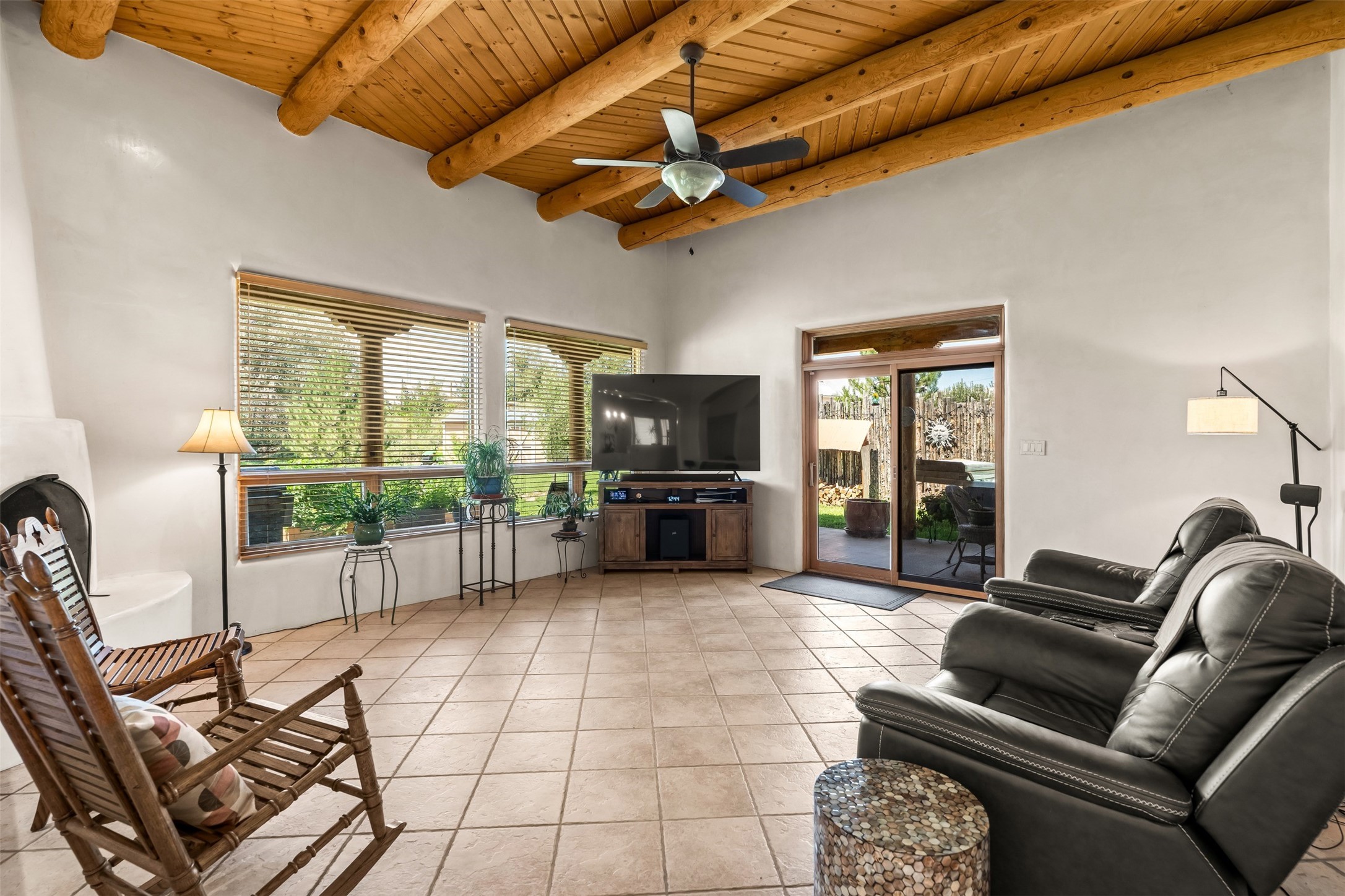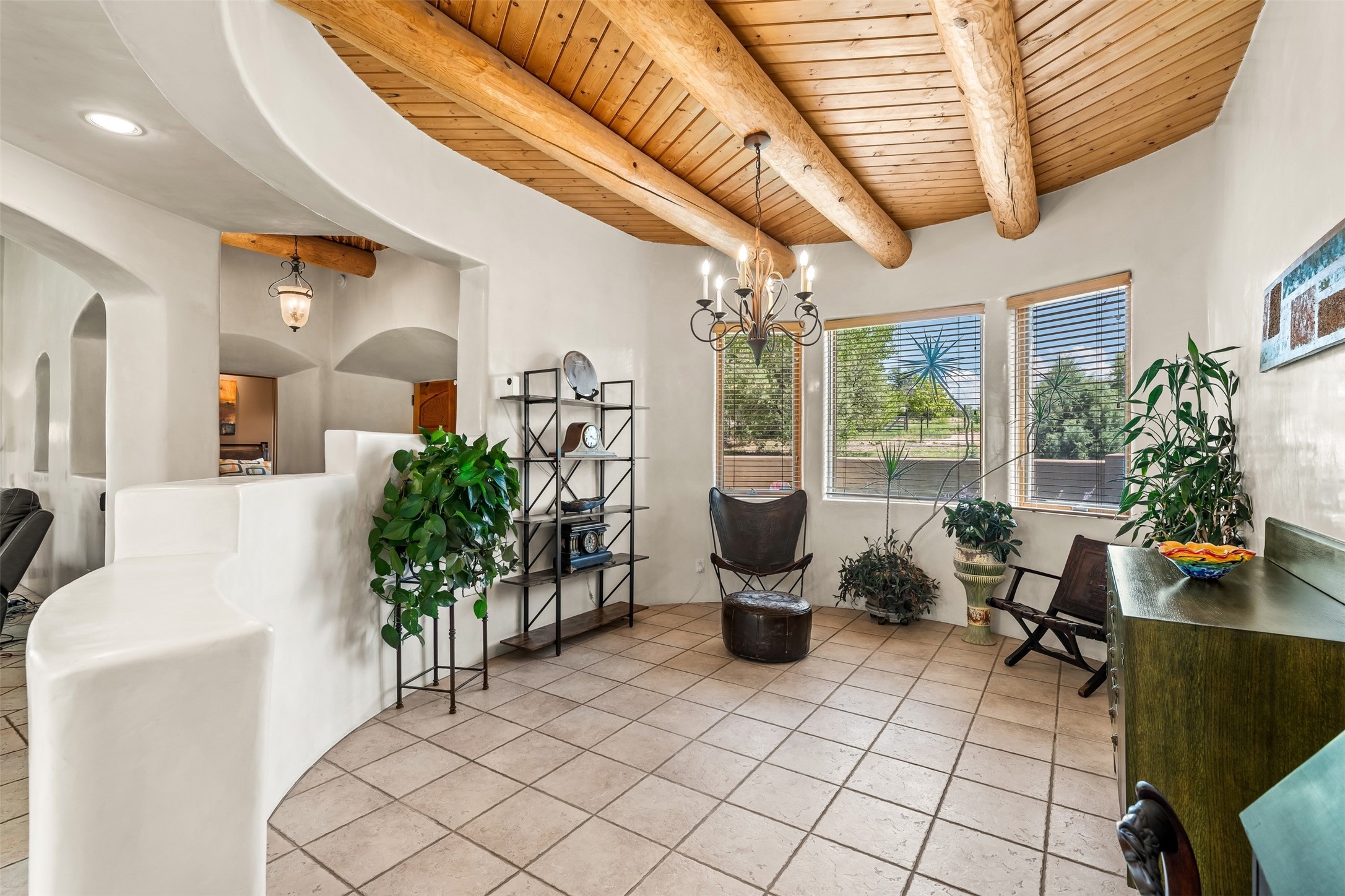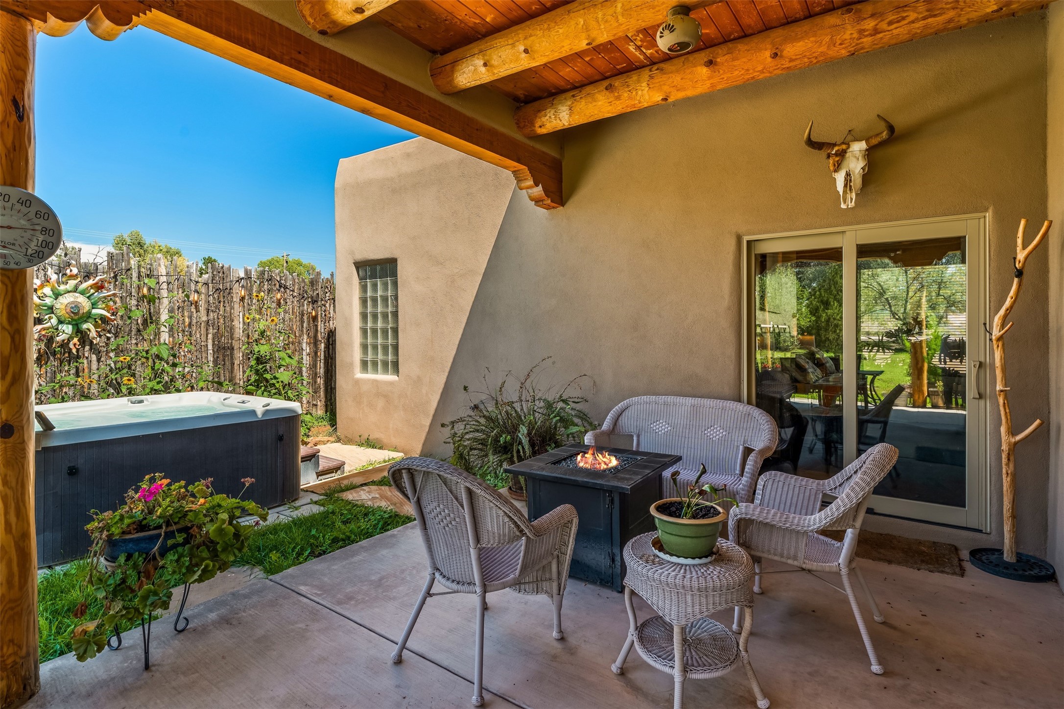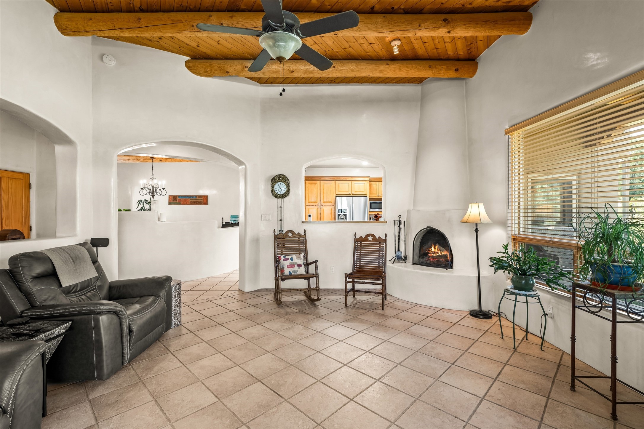 Refined Nambe Retreat with Premium Upgrades, Acreage & Iconic ViewsDiscover this exceptional Nambe property--now further elevated with thoughtful, high-end improvements that complement its natural charm and timeless Southwestern design. Nestled on over an acre of flat, lush land with a private well and acequia water rights, this home offers a lifestyle of comfort, beauty, and self-sufficiency.The property has been extensively upgraded to enhance both aesthetics and function, including a new professionally paved driveway, expanded water filtration with a reverse osmosis system, hot tub, and other improvements designed for long-term ease and enjoyment. Every enhancement reflects pride of ownership and investment in quality living. Step into the walled courtyard with mature landscaping and fruit trees, where sweeping mountain views and the iconic Sacred Heart Church create an unforgettable backdrop. Inside, the home is filled with natural light from skylights, smooth plaster walls, and charming Santa Fe architectural details like rounded walls and two traditional kiva fireplaces.The spacious, split-bedroom layout includes a luxurious primary suite featuring a soaking tub, walk-in closet, and direct access to the expansive wraparound portal--perfect for entertaining or relaxing outdoors in every season. The kitchen is a culinary highlight, boasting granite countertops, premium appliances, and a wall of windows that frame the surrounding beauty.A private guest wing offers flexibility with a bonus room ideal as a studio, office, or additional bedroom. Recent system upgrades also include a newer furnace, leach field, a 2022 roof with transferable warranty, and a pre-inspected structure for added peace of mind.With unparalleled views, water access, and a list of substantial enhancements, this move-in-ready home offers a rare blend of rural tranquility and refined living in one of Northern New Mexico's most scenic enclaves.