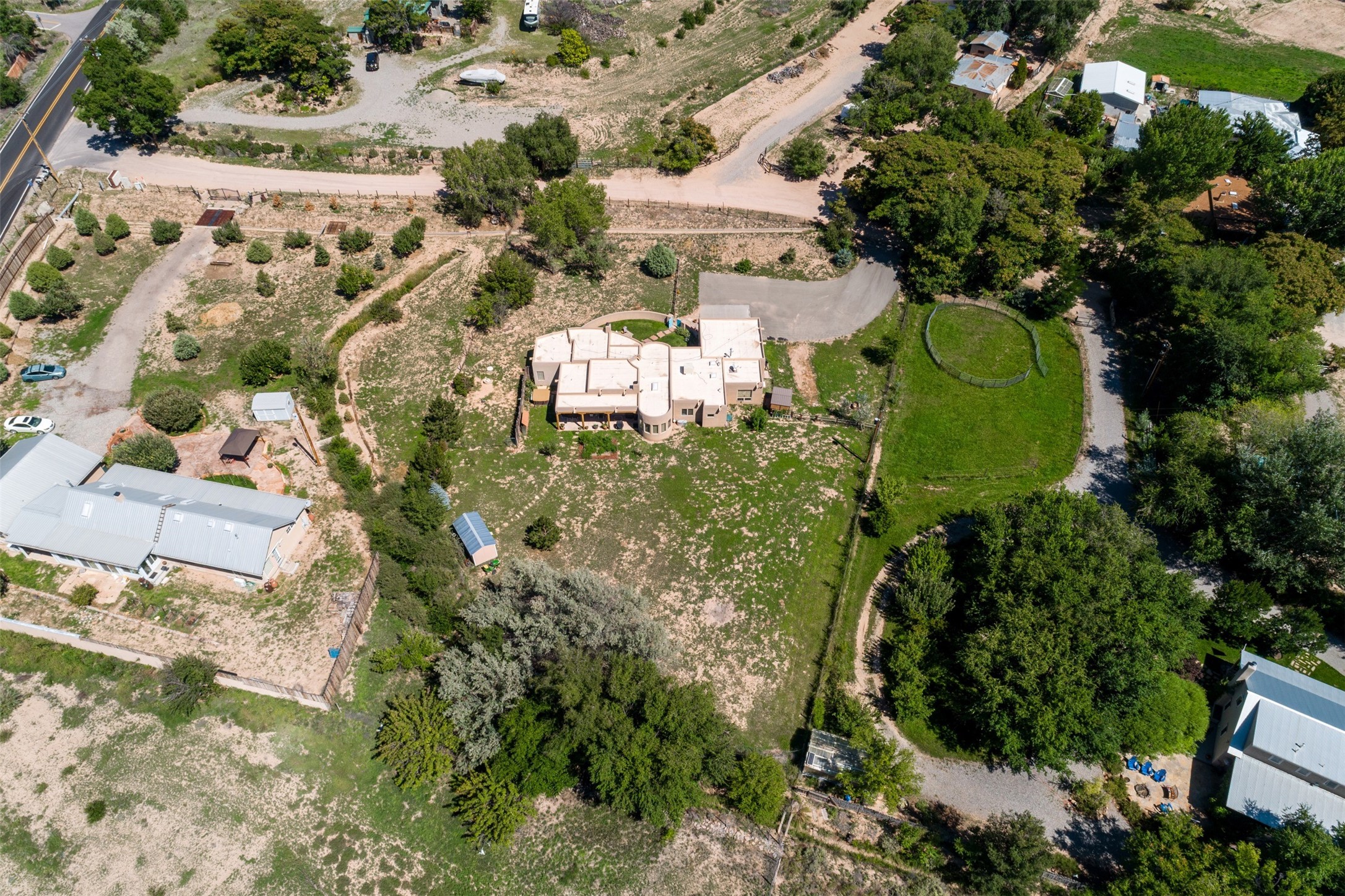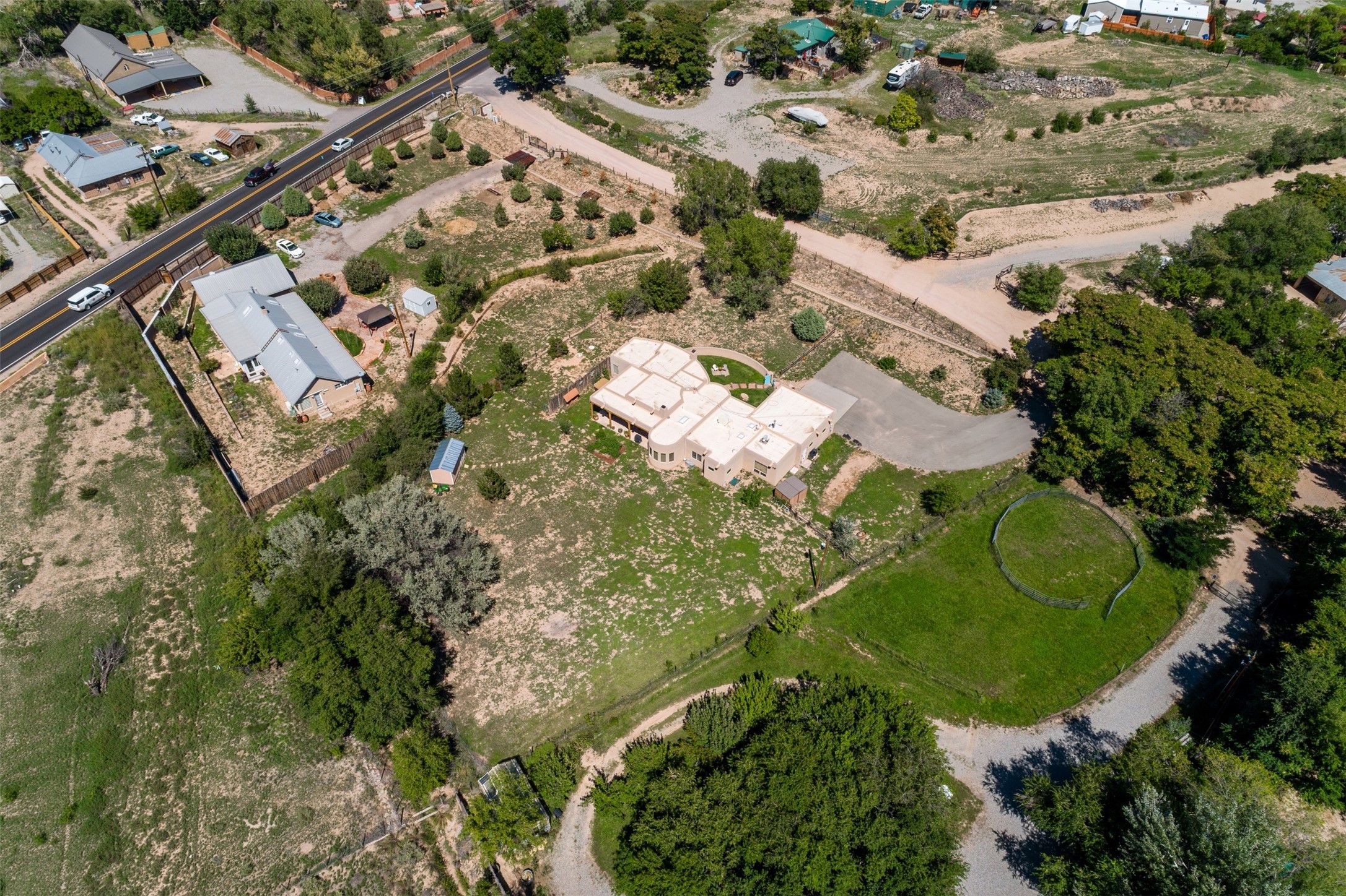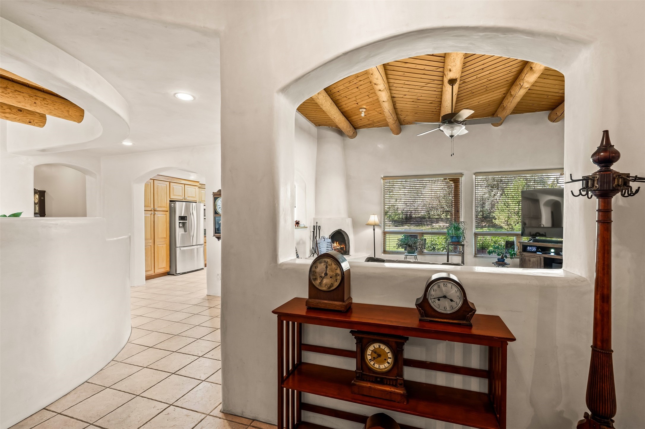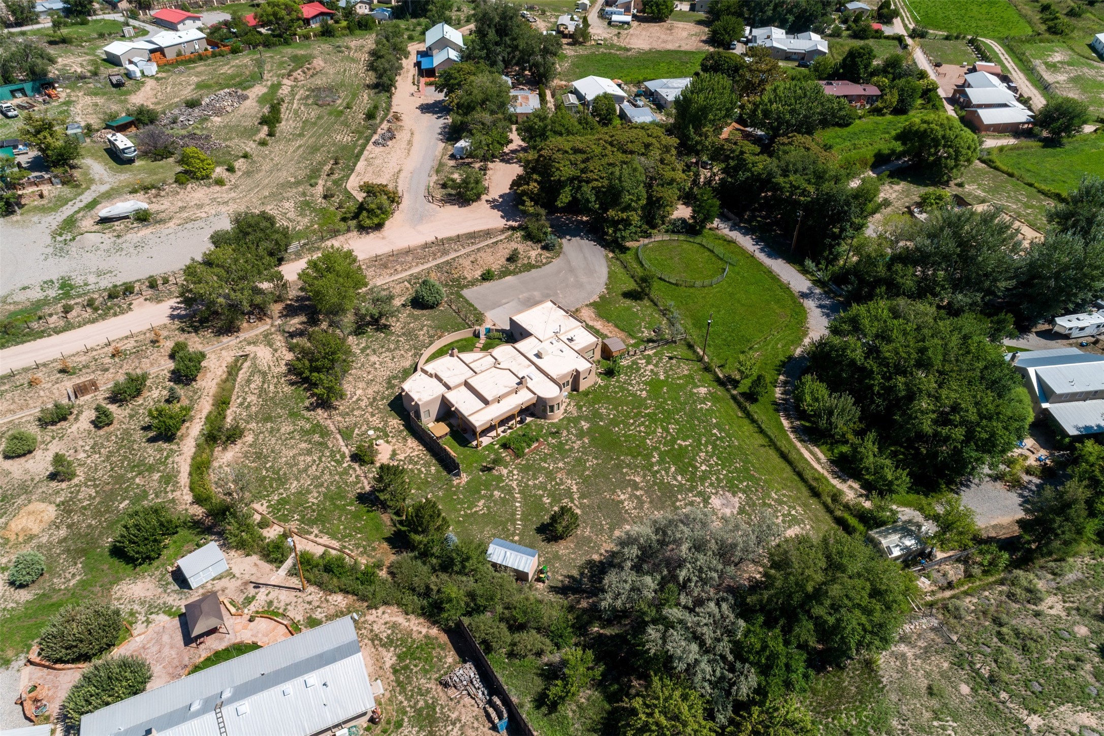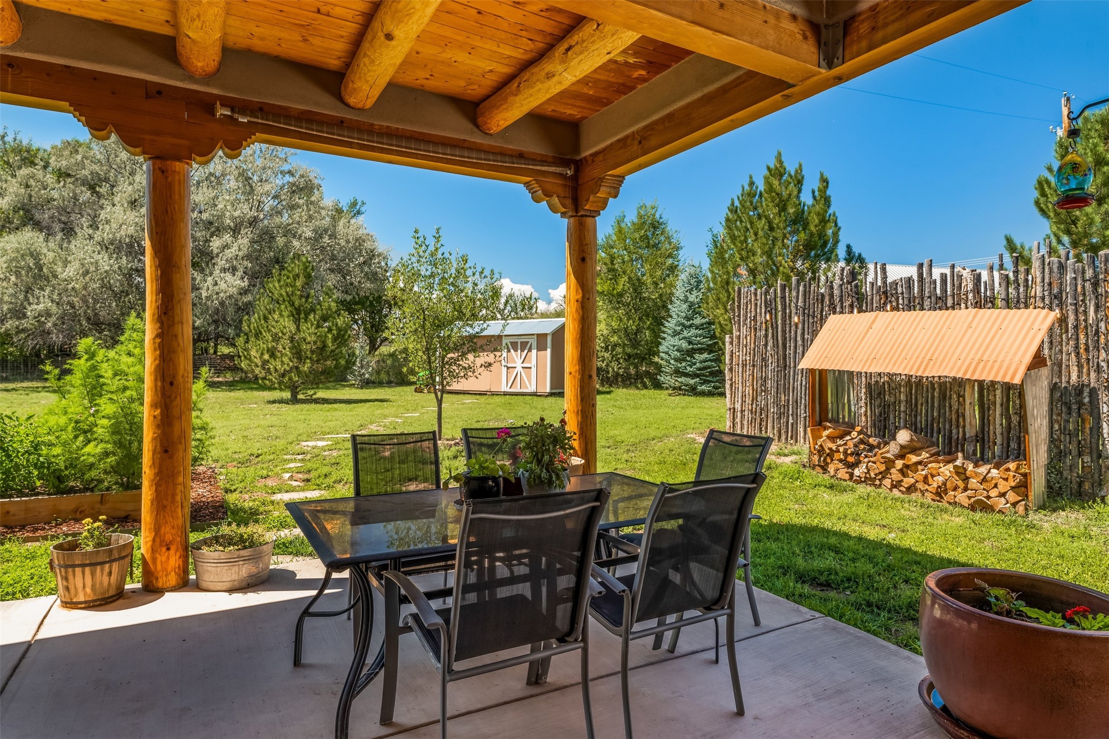 Refined Nambe Retreat with Premium Upgrades, Acreage & Iconic ViewsDiscover this exceptional Nambe property--now further elevated with thoughtful, high-end improvements that complement its natural charm and timeless Southwestern design. Nestled on over an acre of flat, lush land with a private well and acequia water rights, this home offers a lifestyle of comfort, beauty, and self-sufficiency.The property has been extensively upgraded to enhance both aesthetics and function, including a new professionally paved driveway, expanded water filtration with a reverse osmosis system, hot tub, and other improvements designed for long-term ease and enjoyment. Every enhancement reflects pride of ownership and investment in quality living. Step into the walled courtyard with mature landscaping and fruit trees, where sweeping mountain views and the iconic Sacred Heart Church create an unforgettable backdrop. Inside, the home is filled with natural light from skylights, smooth plaster walls, and charming Santa Fe architectural details like rounded walls and two traditional kiva fireplaces.The spacious, split-bedroom layout includes a luxurious primary suite featuring a soaking tub, walk-in closet, and direct access to the expansive wraparound portal--perfect for entertaining or relaxing outdoors in every season. The kitchen is a culinary highlight, boasting granite countertops, premium appliances, and a wall of windows that frame the surrounding beauty.A private guest wing offers flexibility with a bonus room ideal as a studio, office, or additional bedroom. Recent system upgrades also include a newer furnace, leach field, a 2022 roof with transferable warranty, and a pre-inspected structure for added peace of mind.With unparalleled views, water access, and a list of substantial enhancements, this move-in-ready home offers a rare blend of rural tranquility and refined living in one of Northern New Mexico's most scenic enclaves.