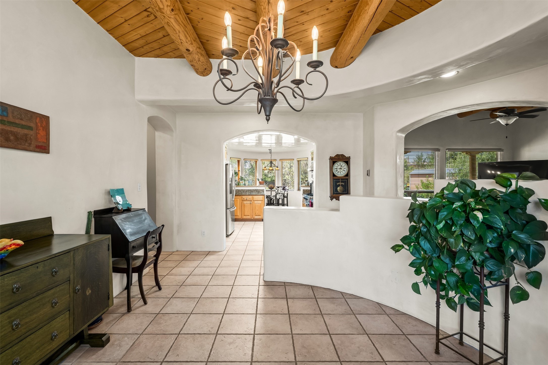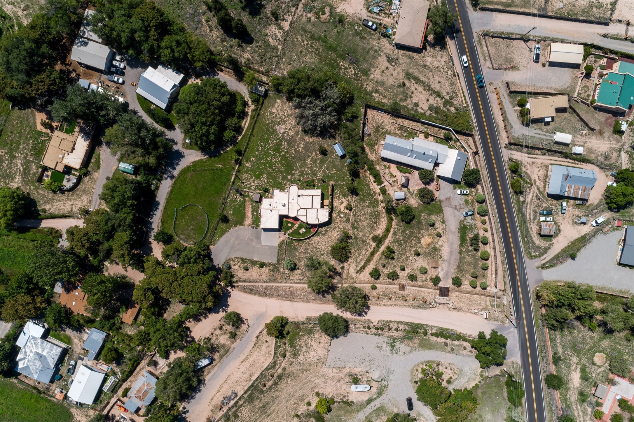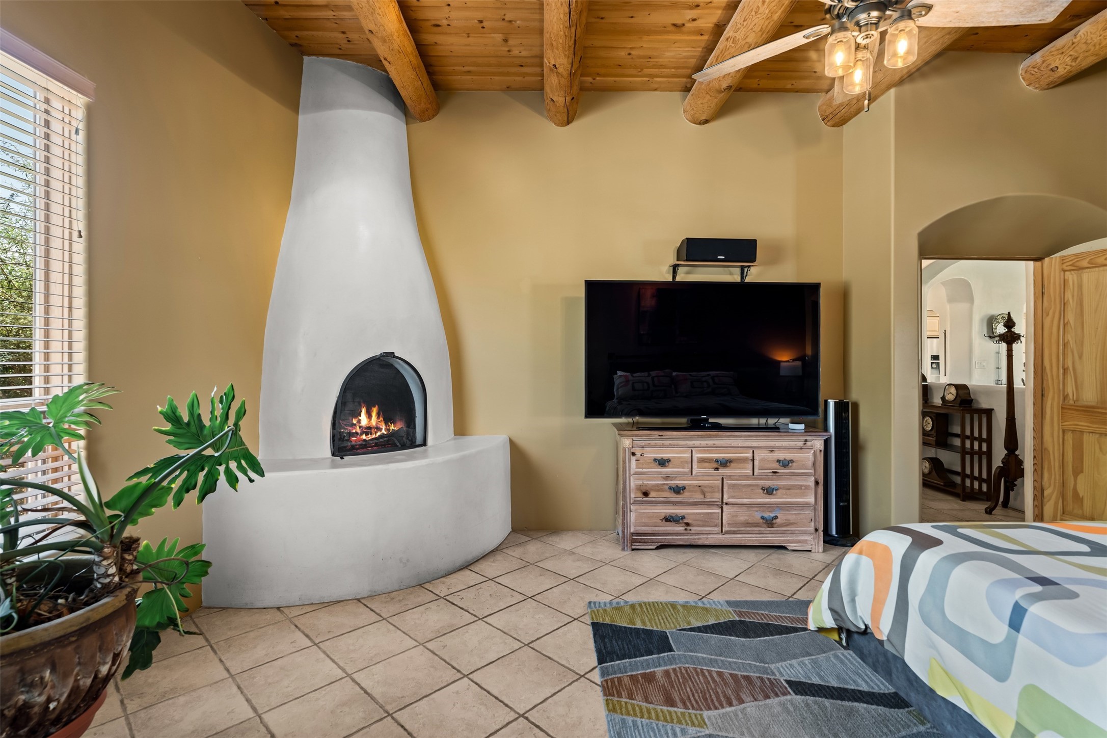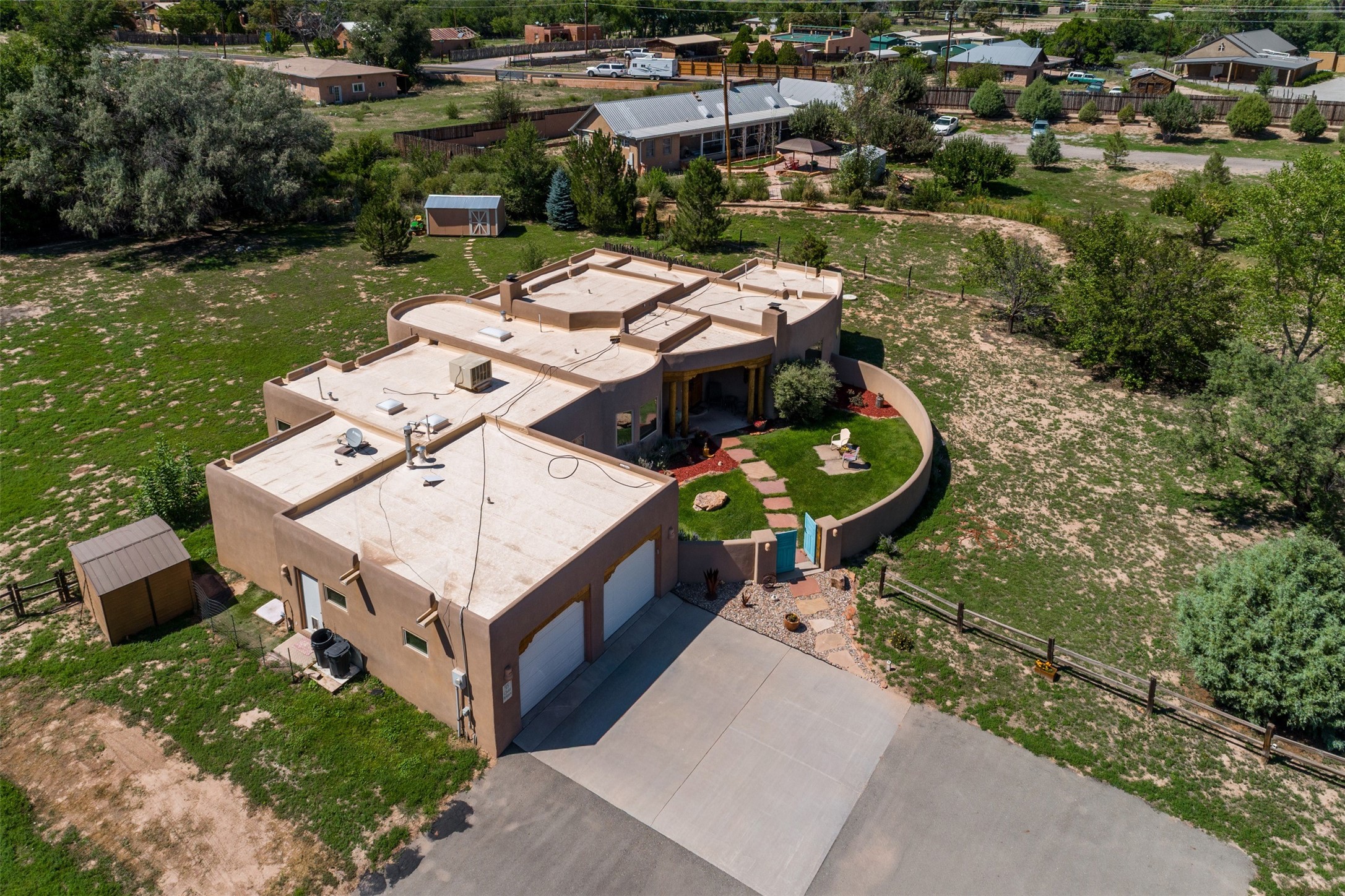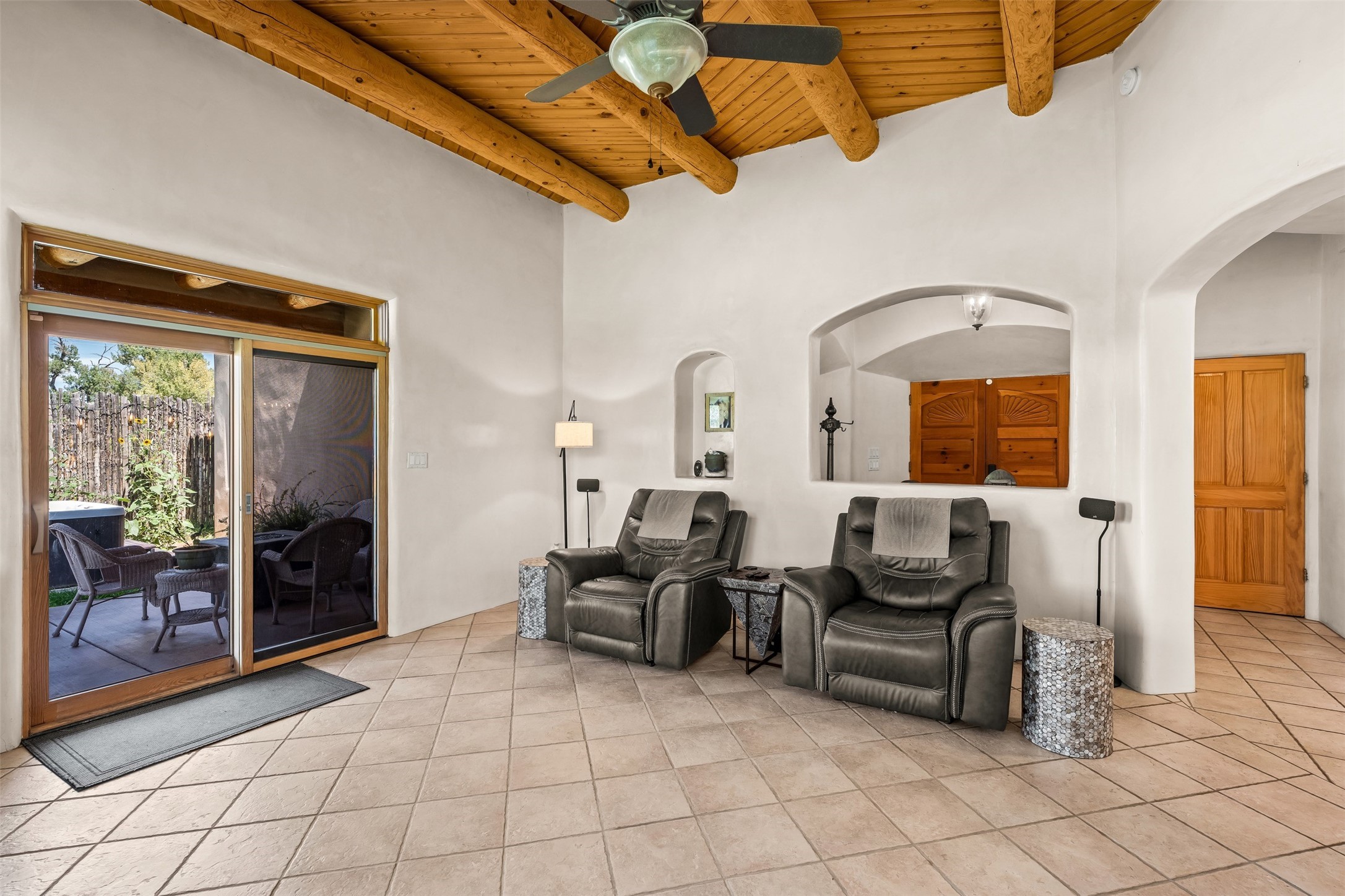Refined Nambe Retreat with Premium Upgrades, Acreage & Iconic ViewsDiscover this exceptional Nambe property--now further elevated with thoughtful, high-end improvements that complement its natural charm and timeless Southwestern design. Nestled on over an acre of flat, lush land with a private well and acequia water rights, this home offers a lifestyle of comfort, beauty, and self-sufficiency.The property has been extensively upgraded to enhance both aesthetics and function, including a new professionally paved driveway, expanded water filtration with a reverse osmosis system, hot tub, and other improvements designed for long-term ease and enjoyment. Every enhancement reflects pride of ownership and investment in quality living. Step into the walled courtyard with mature landscaping and fruit trees, where sweeping mountain views and the iconic Sacred Heart Church create an unforgettable backdrop. Inside, the home is filled with natural light from skylights, smooth plaster walls, and charming Santa Fe architectural details like rounded walls and two traditional kiva fireplaces.The spacious, split-bedroom layout includes a luxurious primary suite featuring a soaking tub, walk-in closet, and direct access to the expansive wraparound portal--perfect for entertaining or relaxing outdoors in every season. The kitchen is a culinary highlight, boasting granite countertops, premium appliances, and a wall of windows that frame the surrounding beauty.A private guest wing offers flexibility with a bonus room ideal as a studio, office, or additional bedroom. Recent system upgrades also include a newer furnace, leach field, a 2022 roof with transferable warranty, and a pre-inspected structure for added peace of mind.With unparalleled views, water access, and a list of substantial enhancements, this move-in-ready home offers a rare blend of rural tranquility and refined living in one of Northern New Mexico's most scenic enclaves.