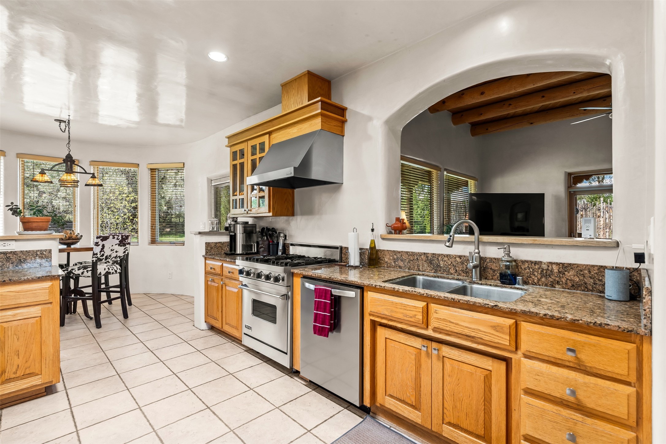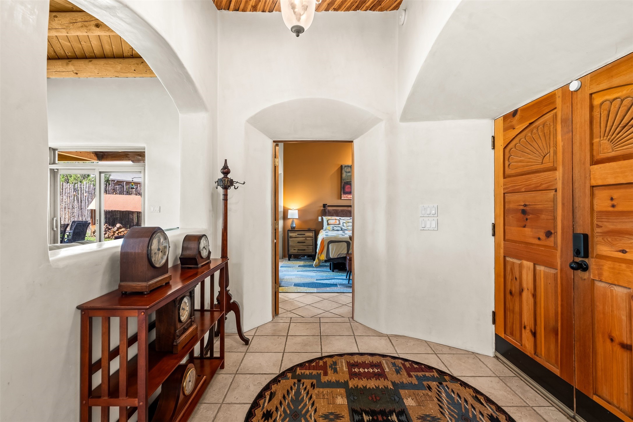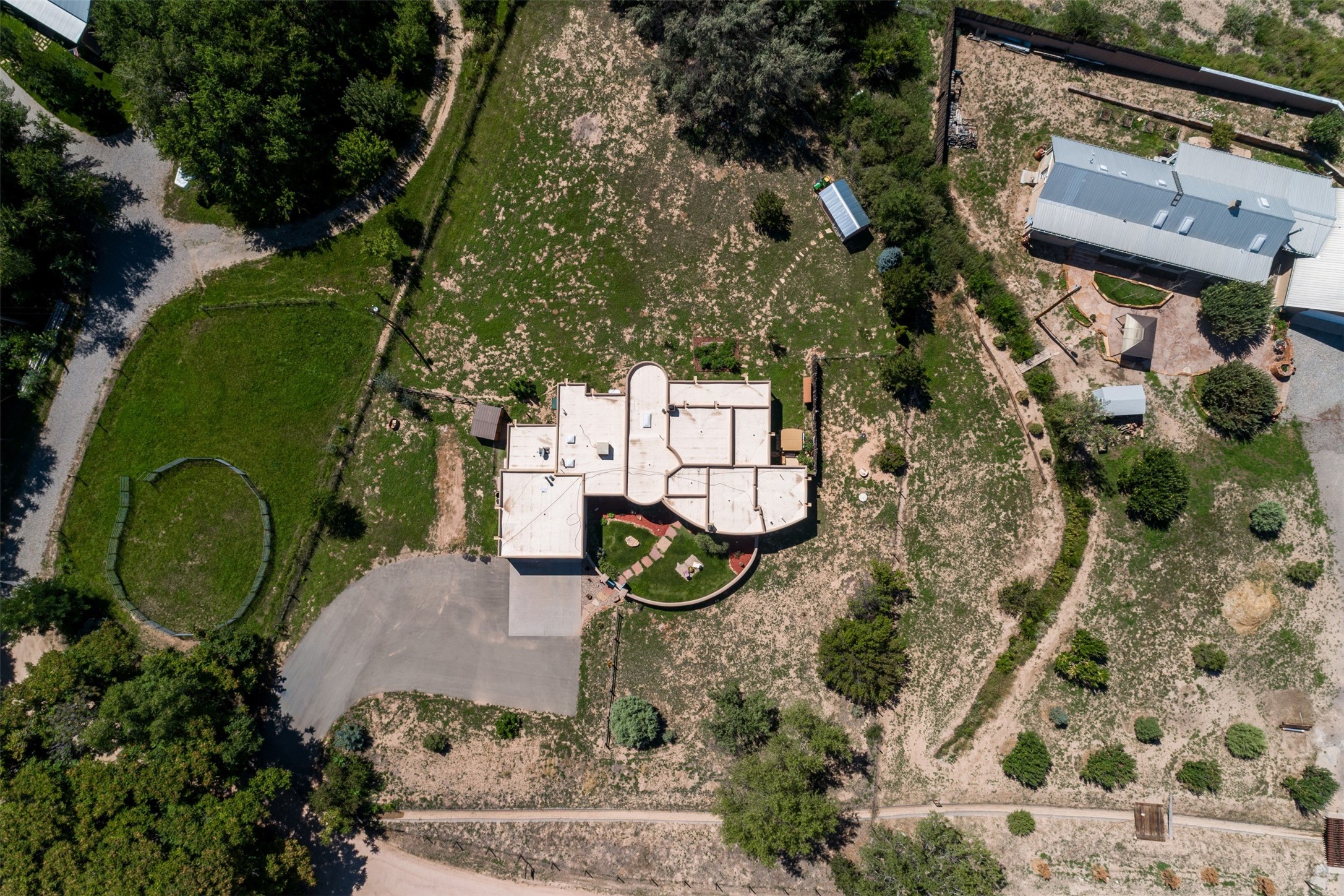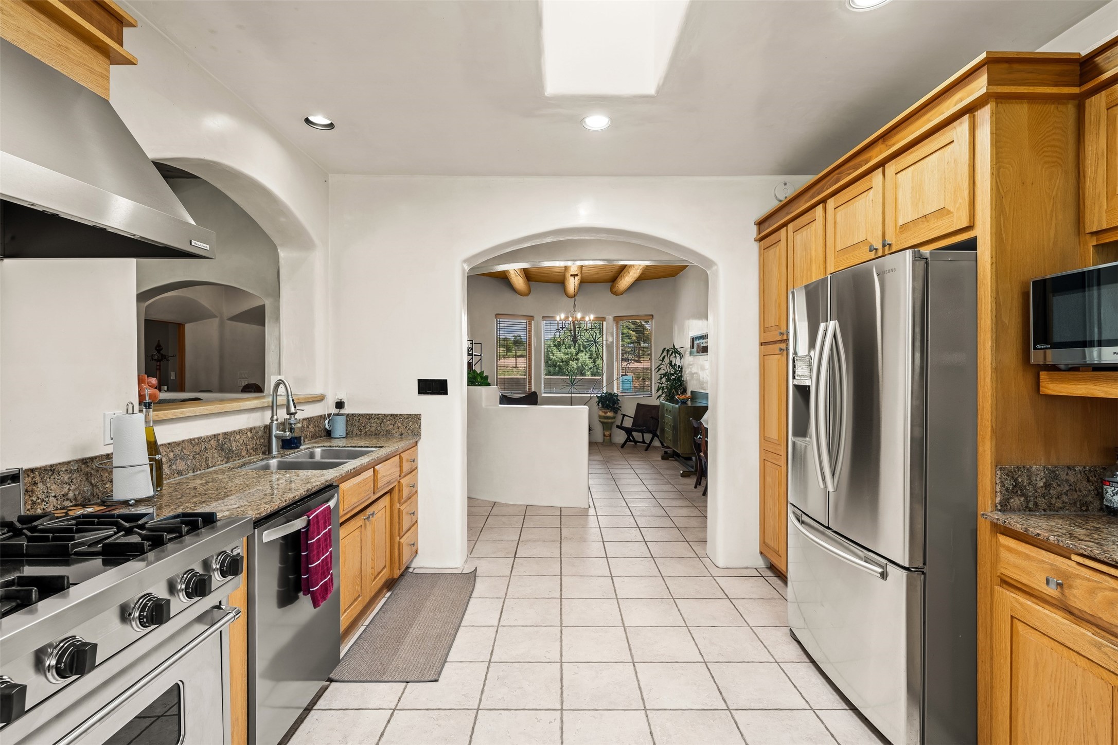 Refined Nambe Retreat with Premium Upgrades, Acreage & Iconic ViewsDiscover this exceptional Nambe property--now further elevated with thoughtful, high-end improvements that complement its natural charm and timeless Southwestern design. Nestled on over an acre of flat, lush land with a private well and acequia water rights, this home offers a lifestyle of comfort, beauty, and self-sufficiency.The property has been extensively upgraded to enhance both aesthetics and function, including a new professionally paved driveway, expanded water filtration with a reverse osmosis system, hot tub, and other improvements designed for long-term ease and enjoyment. Every enhancement reflects pride of ownership and investment in quality living. Step into the walled courtyard with mature landscaping and fruit trees, where sweeping mountain views and the iconic Sacred Heart Church create an unforgettable backdrop. Inside, the home is filled with natural light from skylights, smooth plaster walls, and charming Santa Fe architectural details like rounded walls and two traditional kiva fireplaces.The spacious, split-bedroom layout includes a luxurious primary suite featuring a soaking tub, walk-in closet, and direct access to the expansive wraparound portal--perfect for entertaining or relaxing outdoors in every season. The kitchen is a culinary highlight, boasting granite countertops, premium appliances, and a wall of windows that frame the surrounding beauty.A private guest wing offers flexibility with a bonus room ideal as a studio, office, or additional bedroom. Recent system upgrades also include a newer furnace, leach field, a 2022 roof with transferable warranty, and a pre-inspected structure for added peace of mind.With unparalleled views, water access, and a list of substantial enhancements, this move-in-ready home offers a rare blend of rural tranquility and refined living in one of Northern New Mexico's most scenic enclaves.