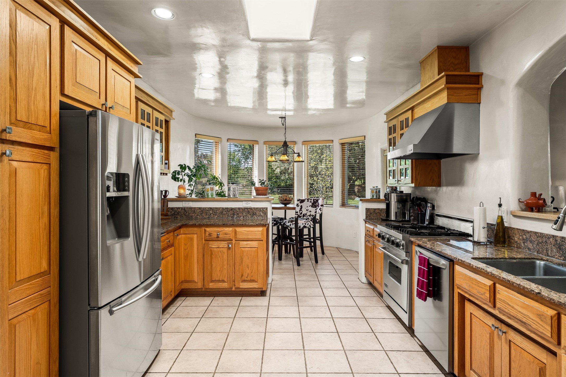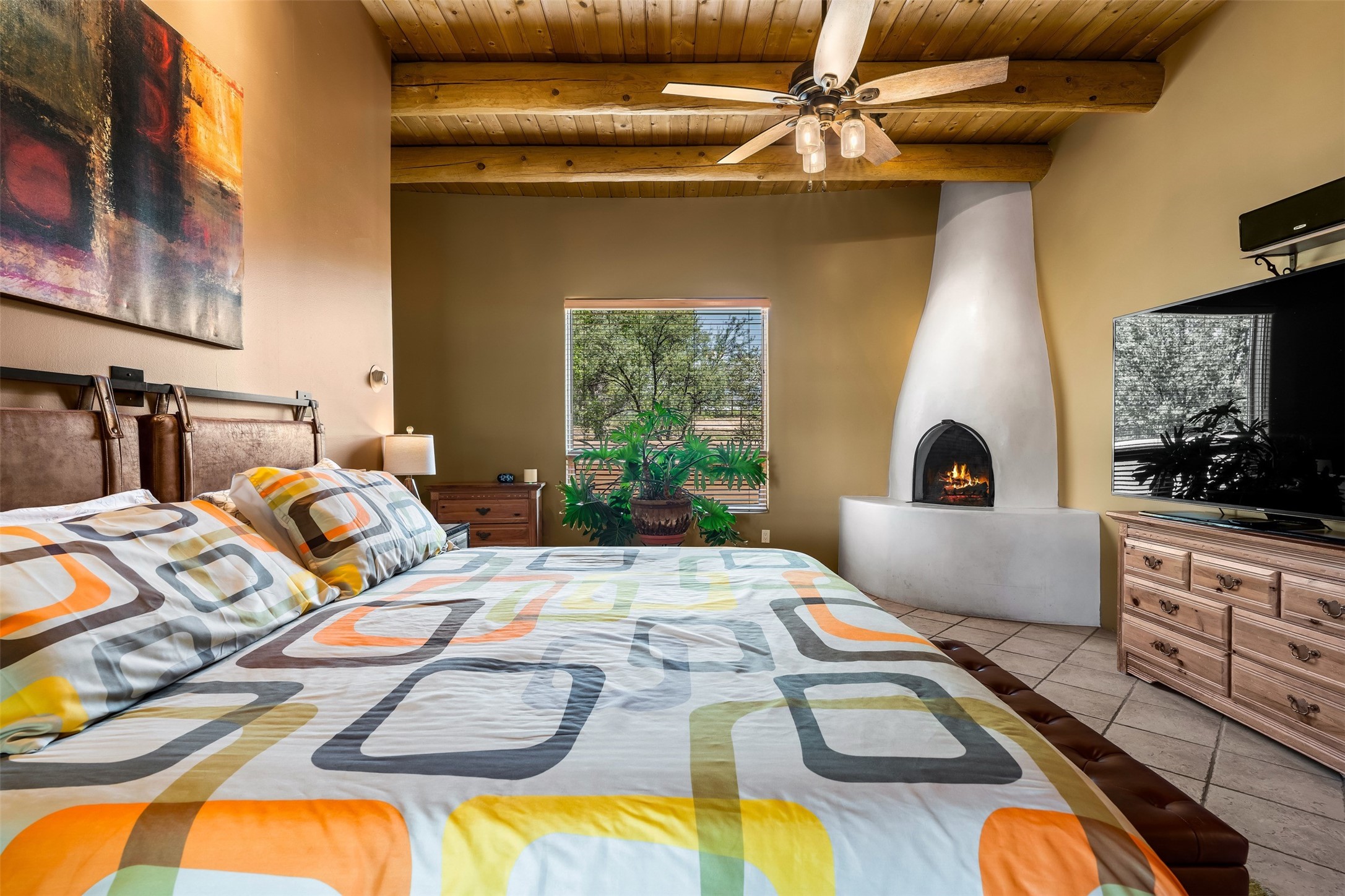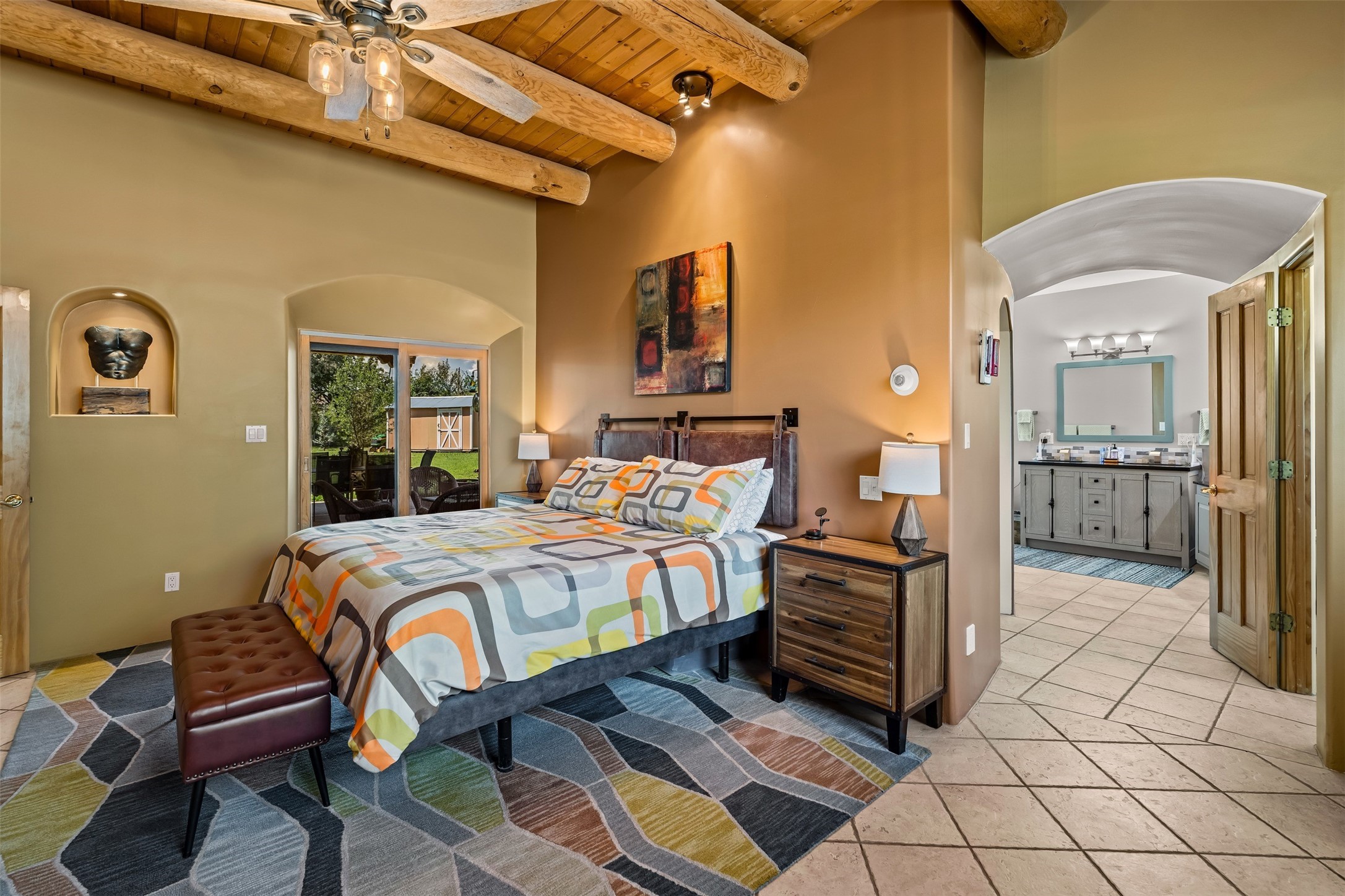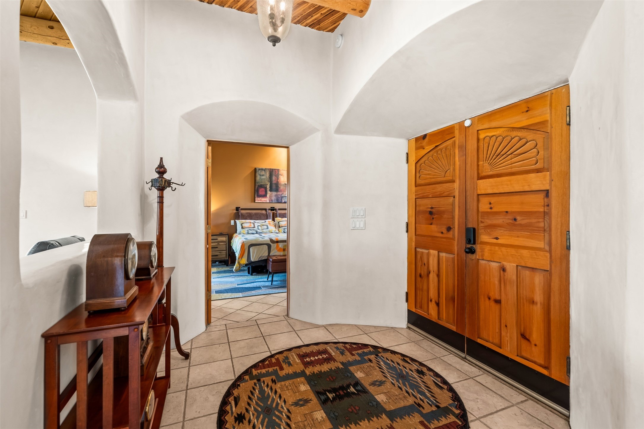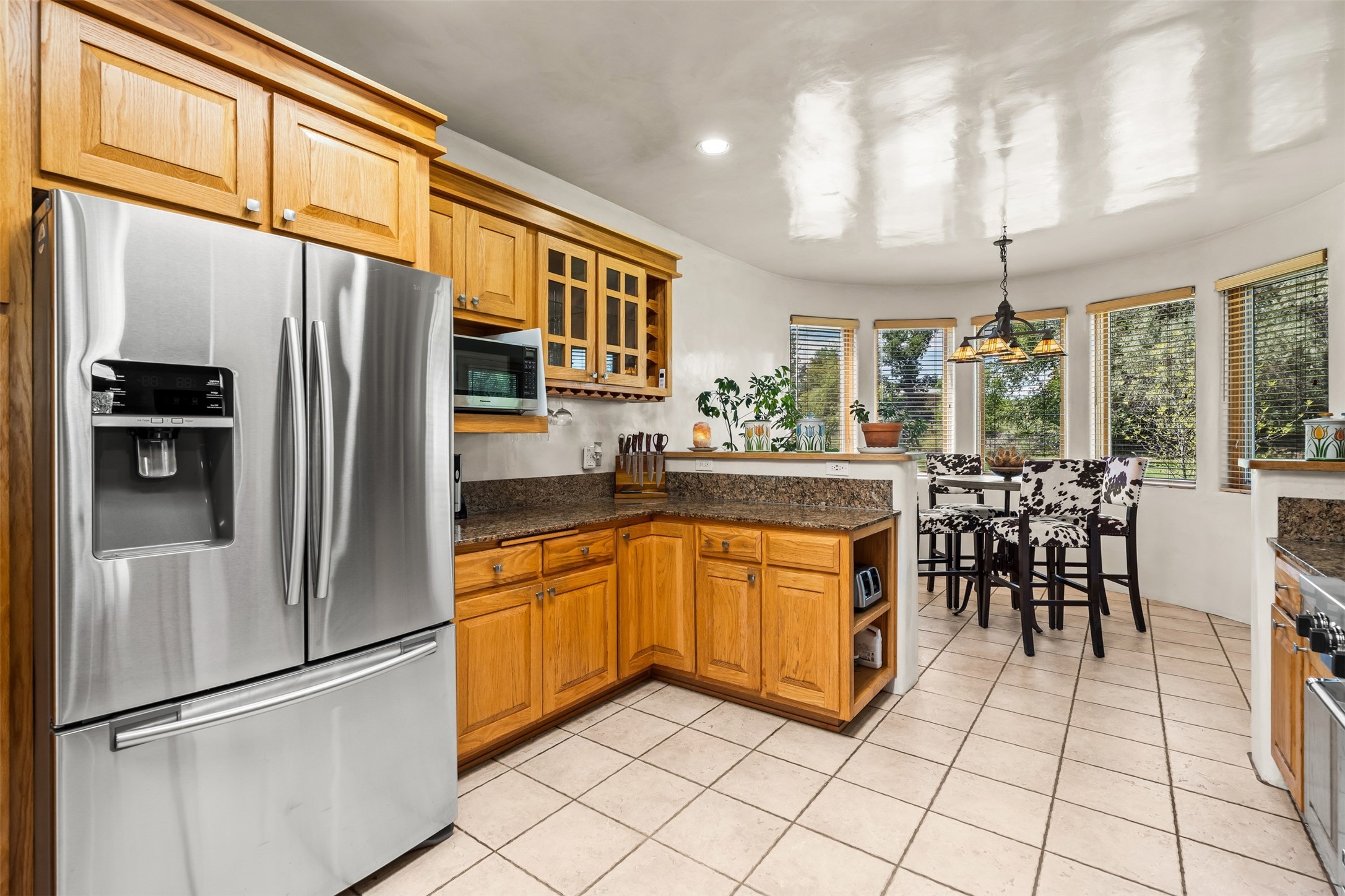 Refined Nambe Retreat with Premium Upgrades, Acreage & Iconic ViewsDiscover this exceptional Nambe property--now further elevated with thoughtful, high-end improvements that complement its natural charm and timeless Southwestern design. Nestled on over an acre of flat, lush land with a private well and acequia water rights, this home offers a lifestyle of comfort, beauty, and self-sufficiency.The property has been extensively upgraded to enhance both aesthetics and function, including a new professionally paved driveway, expanded water filtration with a reverse osmosis system, hot tub, and other improvements designed for long-term ease and enjoyment. Every enhancement reflects pride of ownership and investment in quality living. Step into the walled courtyard with mature landscaping and fruit trees, where sweeping mountain views and the iconic Sacred Heart Church create an unforgettable backdrop. Inside, the home is filled with natural light from skylights, smooth plaster walls, and charming Santa Fe architectural details like rounded walls and two traditional kiva fireplaces.The spacious, split-bedroom layout includes a luxurious primary suite featuring a soaking tub, walk-in closet, and direct access to the expansive wraparound portal--perfect for entertaining or relaxing outdoors in every season. The kitchen is a culinary highlight, boasting granite countertops, premium appliances, and a wall of windows that frame the surrounding beauty.A private guest wing offers flexibility with a bonus room ideal as a studio, office, or additional bedroom. Recent system upgrades also include a newer furnace, leach field, a 2022 roof with transferable warranty, and a pre-inspected structure for added peace of mind.With unparalleled views, water access, and a list of substantial enhancements, this move-in-ready home offers a rare blend of rural tranquility and refined living in one of Northern New Mexico's most scenic enclaves.