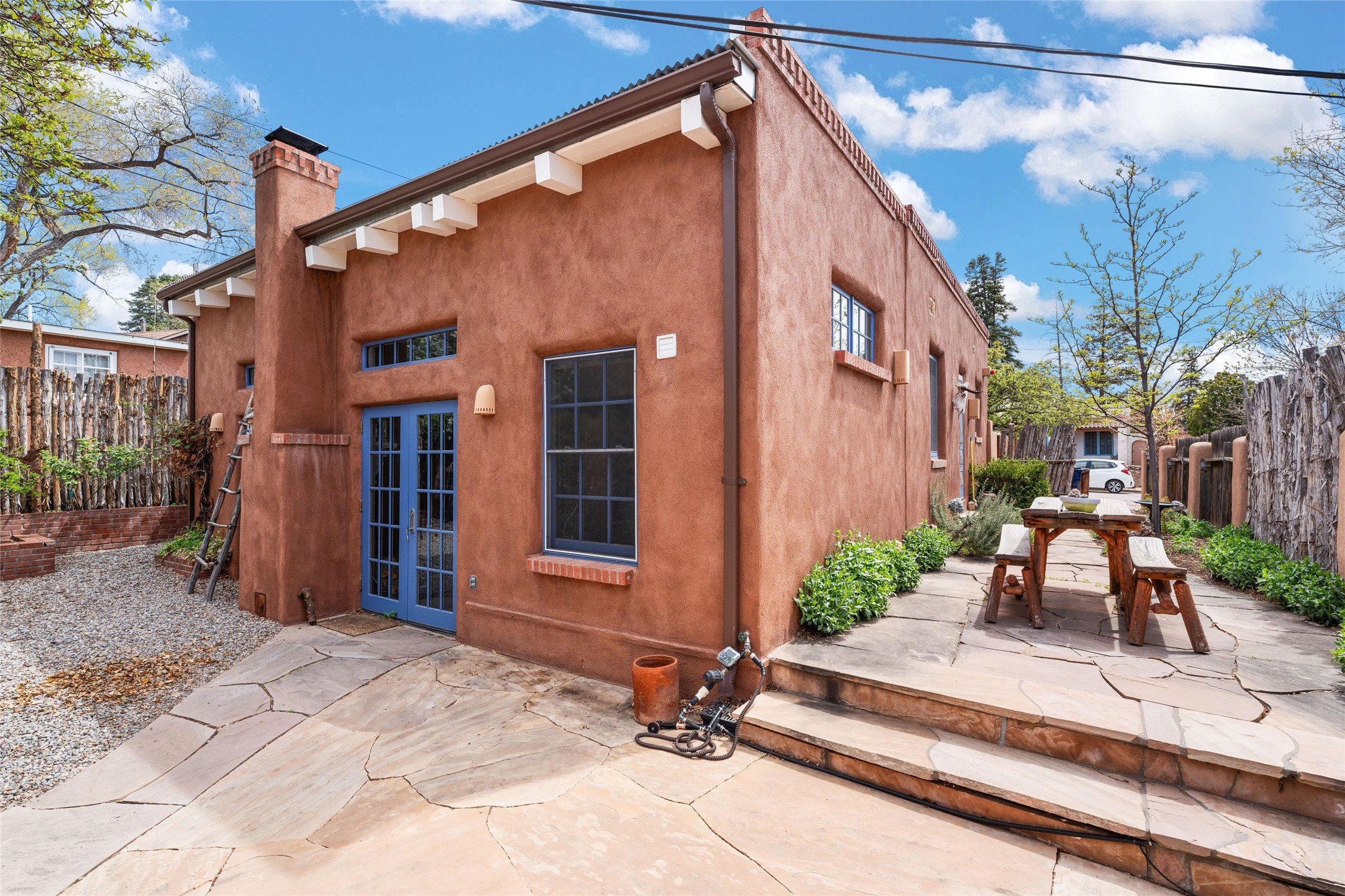 Perfect downtown pied--terre located in the heart of Santa Fe's South Capitol neighborhood. This residence combines classic architecture with modern amenities, creating an inviting atmosphere in a sought-after area. With 1,273 square feet, the main house features a thoughtfully designed layout that includes two spacious bedrooms and two bathrooms. The separate dining room offers an ideal space for gatherings, while the primary suite is a true highlight, complete with its own fireplace and French doors that open to a picturesque courtyard. Culinary enthusiasts will appreciate the well-appointed kitchen, which features a Wolf range and a built-in refrigerator. The charm extends beyond the main house with a detached guesthouse, offering 390 square feet of additional living space. This cozy retreat includes a kitchenette and a full bath, perfect for hosting visitors or enjoying personal time. Outside, the private courtyard showcases lush landscaping, featuring fruit trees that invites relaxation. It serves as a serene escape, ideal for unwinding amidst nature's beauty. An extra bonus is a basement with a washer/dryer and additional storage space. Off street parking for one car. Conveniently positioned in Santa Fe's Historic District, this property is just a stone's throw away from notable attractions, including the Roundhouse, Whole Foods, the Railyard, the Farmers Market, and the lively Santa Fe Plaza.