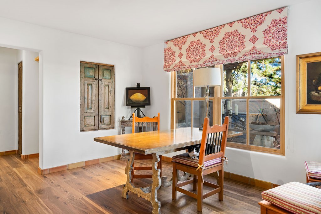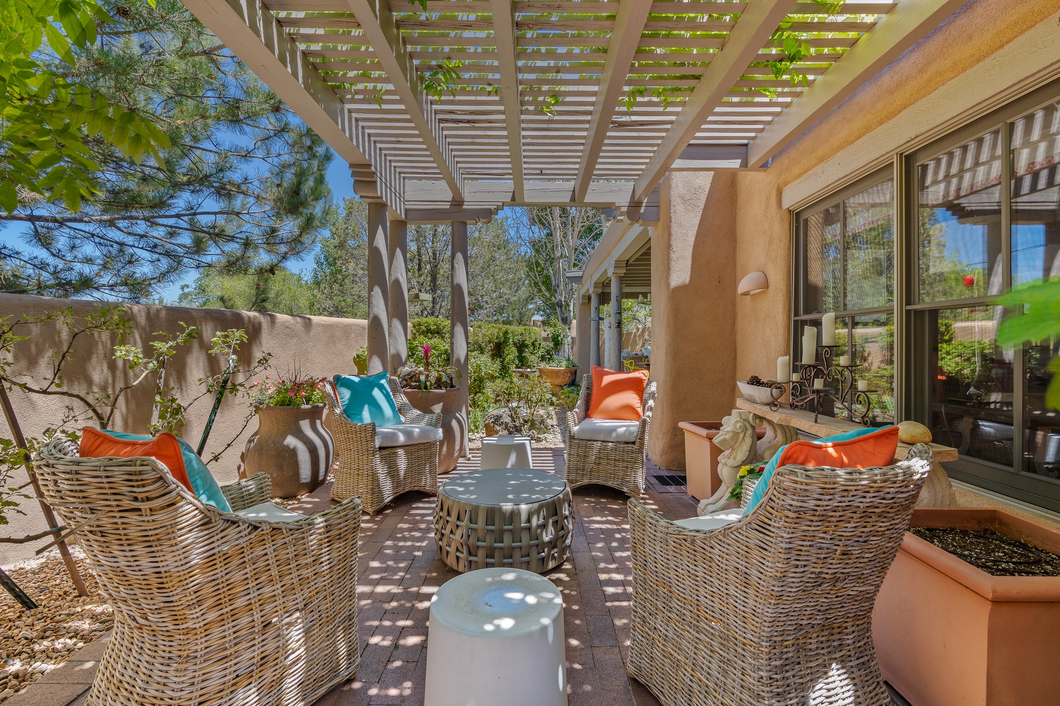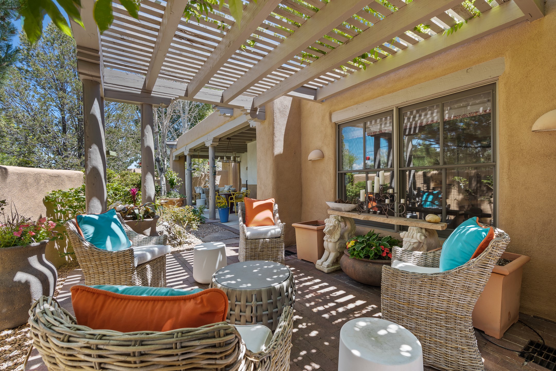 Cradled in one of Quail Run's most desirable locations, this exceptional residence offers the sought-after Pinon C floor plan with a distinctive European flair. Featuring two bedrooms, an office, and stunning decorative details, this home exudes timeless elegance reminiscent of Parisian style. Beautifully designed tilework and thoughtfully curated architectural build-outs create a warm and inviting ambiance. The home boasts enchanting outdoor spaces, including a serene front courtyard and a lush backyard oasis adorned with mature aspenTrees. Experience the perfect blend of sophistication and comfort in this truly unique property.