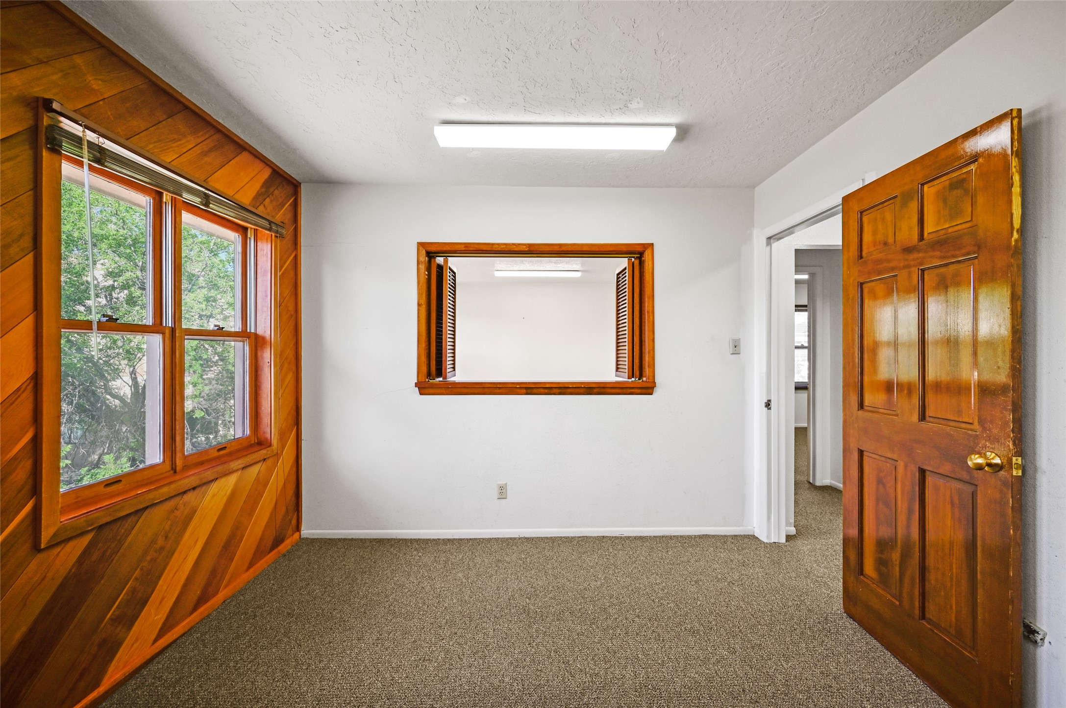 Desirable two-story office condo for sale in the Saint Francis Professional Center (Clock Tower). The space features four windowed offices, one with a charming kiva fireplace and two with built-in bookcases. It also includes a private restroom, a spacious waiting/reception area with ample storage, and newly installed commercial-grade carpet throughout. Conveniently located just off South St. Francis Drive, the property offers easy access to I-25, restaurants, and shopping. Condo dues are approximately $573 quarterly. A great opportunity for a small business or satellite office.
