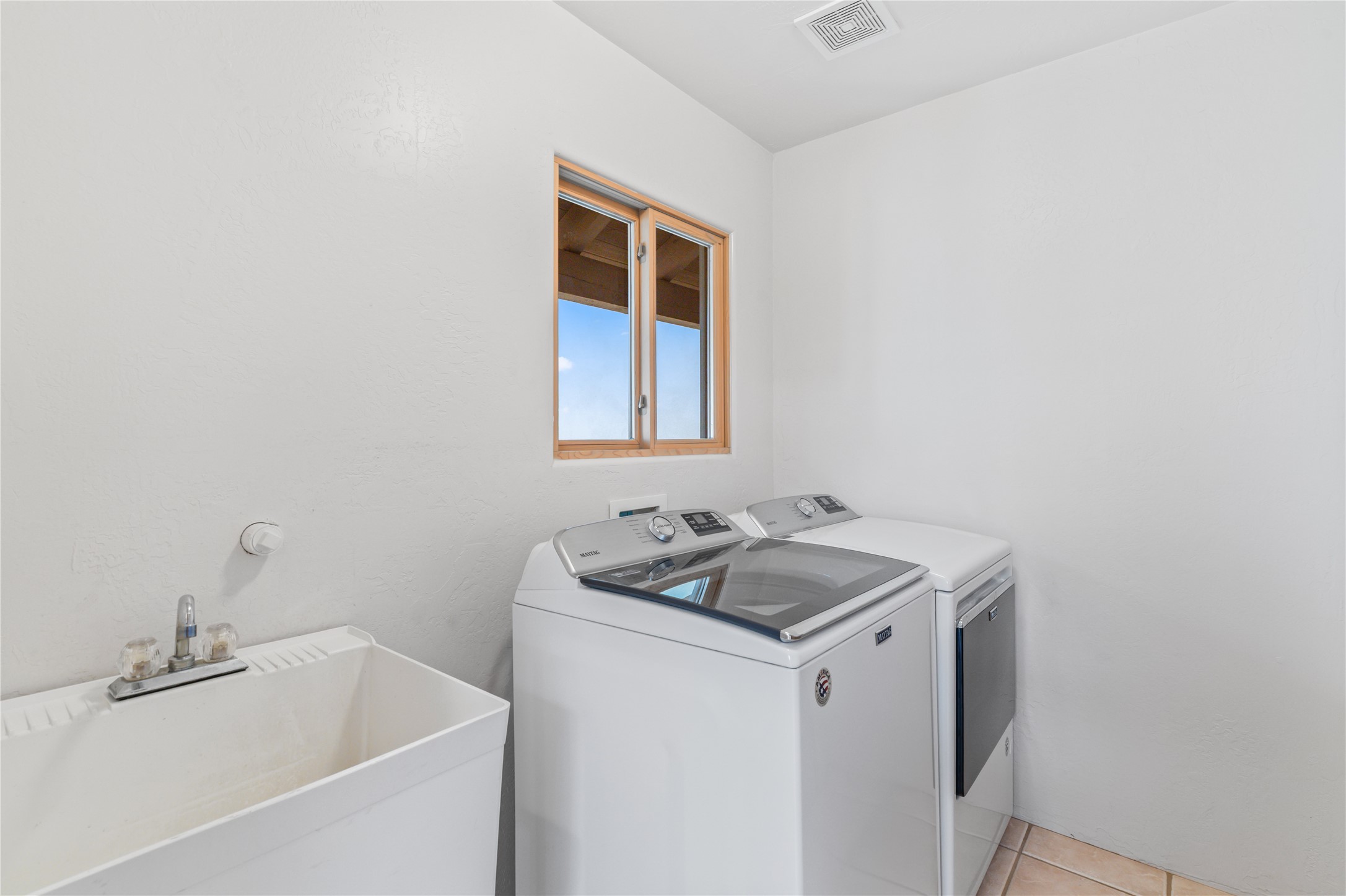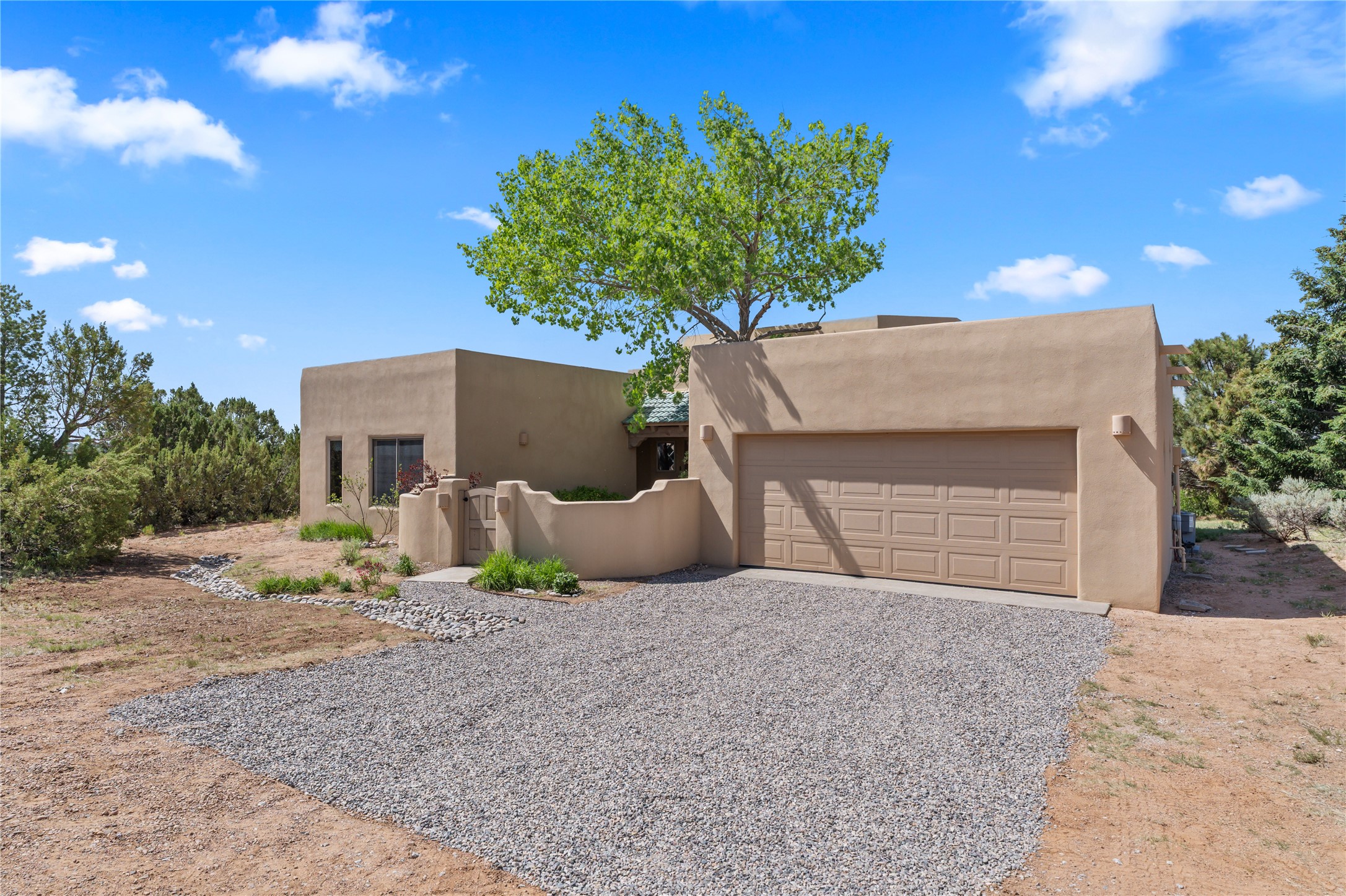FIRST TIME ON THE MARKET! Gorgeous custom one-owner home sited high on a cul-de-sac for wonderful mountain views. Beautiful great room with sculpted handmade kiva fireplace and 14' cedar plank ceilings. Brand new stainless appliances including range, refrigerator, dishwasher, washer, dryer, microwave and kitchen sink. Kitchen opens to dining and living room with an island for an extra work area. Spacious pantry. Primary suite has exterior access, jetted tub, separate shower, double sinks and walk-in closet. Forced air heating and refrigerated air. Backs up to open space. PRIVATE WELL. This home has ample storage. Water heater and HVAC new in 2022. South-facing windows have UV coating to protect furniture. NO STEPS. NO CARPET. NO KITEC. NO WATER BILL. Property has been pre-inspected and most repairs completed. Report available on request.