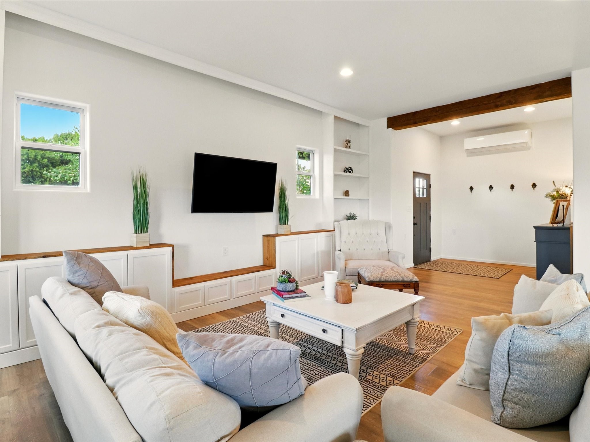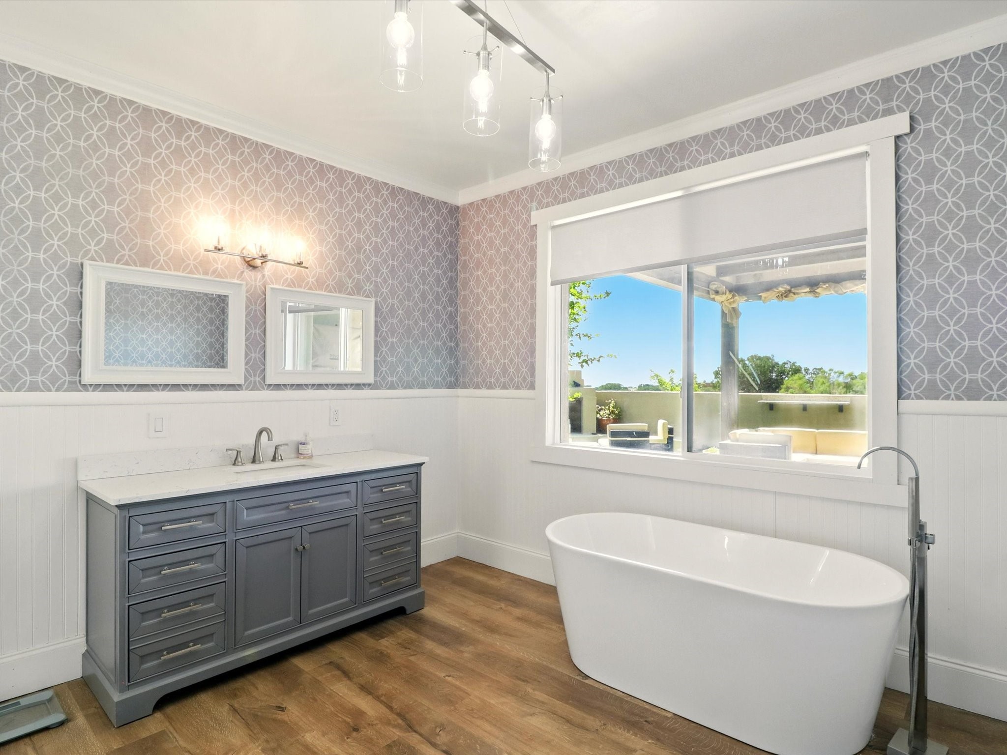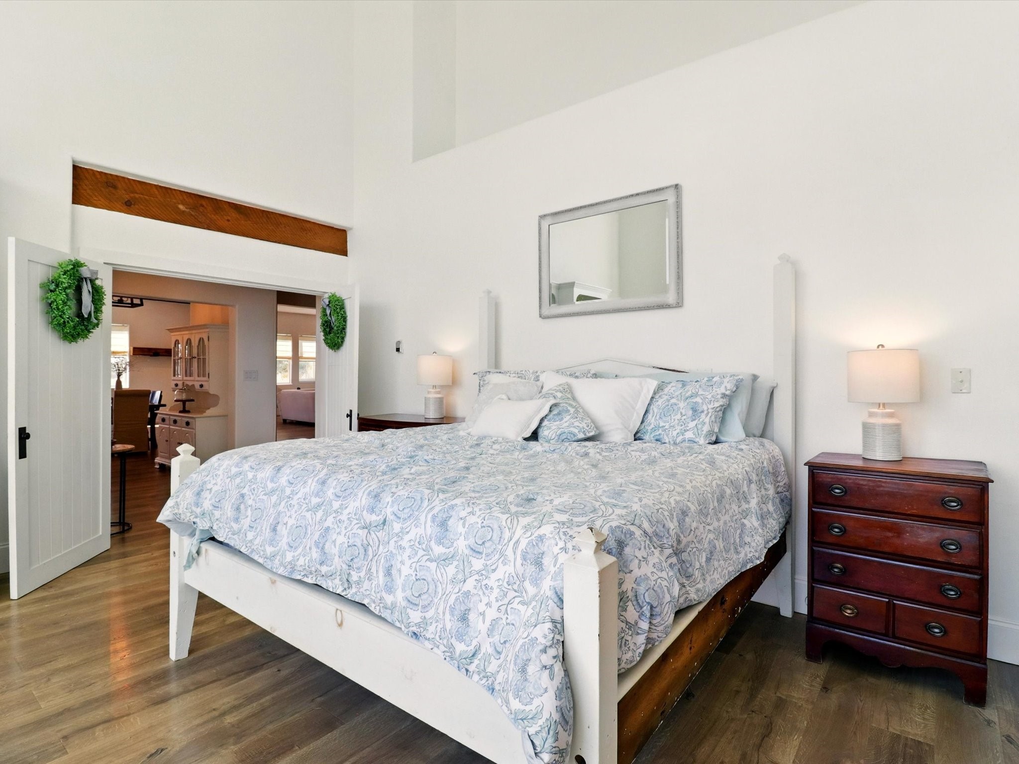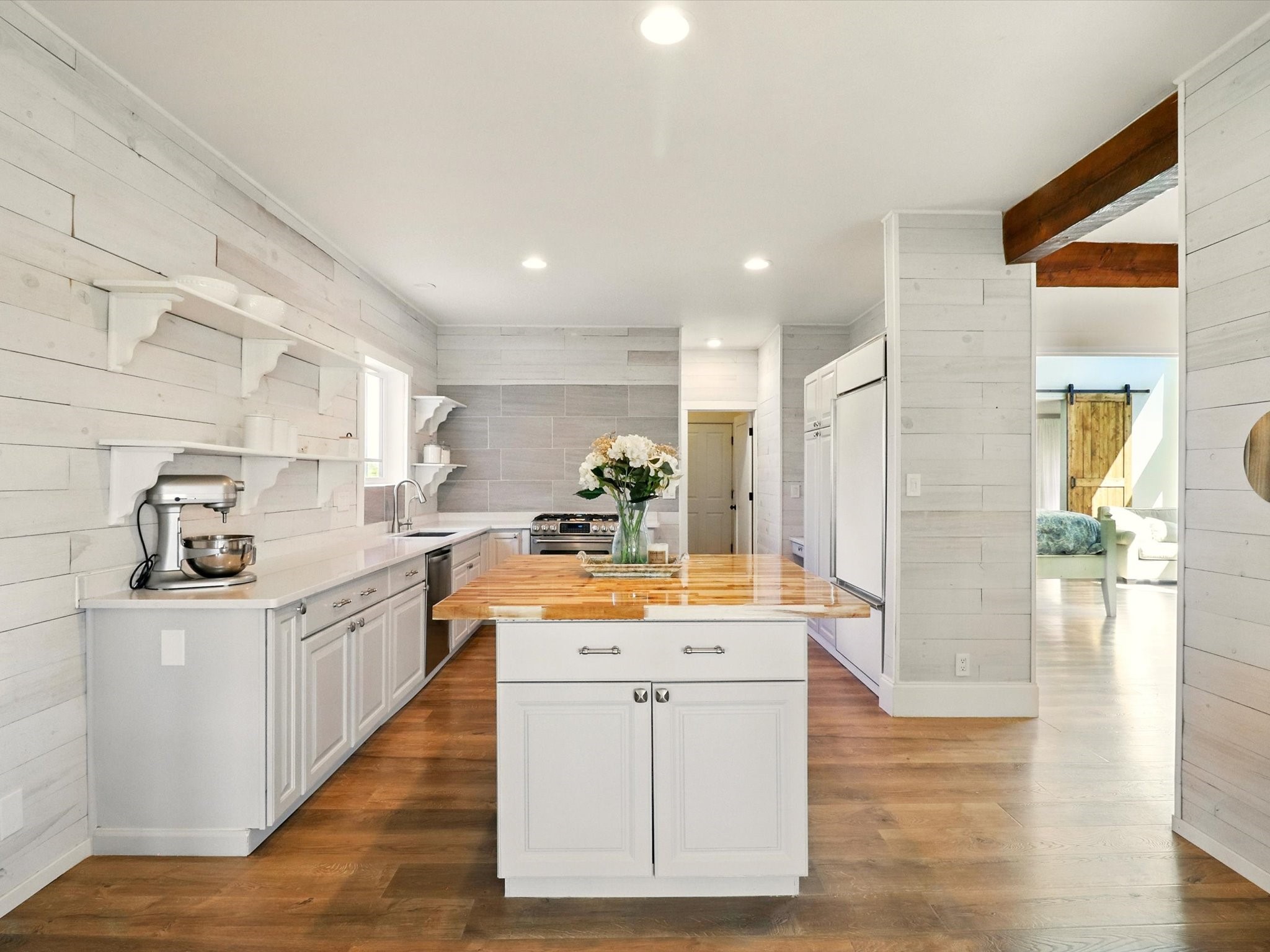 Experience breathtaking views surrounding this exceptional property located on just over 4 acres of pristine high desert landscape. This stunning home blends the timeless charm of Pueblo-style architecture with the inviting touches of modern farmhouse design including an expansive 1,000 square foot addition completed in 2020. The versatile floor plan is anchored by a beautifully updated gourmet kitchen featuring a Sub-Zero refrigerator and custom finishes with ample workspace, and a seamless flow for entertaining. On the main floor you will find that the primary bedroom showcases soaring ceilings with a picturesque view and private access to the outdoor courtyard. Complete with an oversized closet area and beautifully renovated bathroom that is perfect for soaking in the bathtub while taking in the view from the large picture window right above. The second floor consists of two bedrooms, a bonus room and two bathrooms. The balcony off the ensuite bedroom is ideal for soaking in the mountains and serene sunsets. Step outside to enjoy the covered portal and cozy up by the outdoor wood-burning fireplace. Fruit trees dot the landscape, adding character and a touch of sweetness to your retreat. Backed by peaceful green space and only minutes from the Galisteo Basin preserve, Santa Fe Rail Trail, this property offers the perfect blend of tranquility, access to nature and refined living. Do not miss this rare opportunity to own a home that truly captures the spirit and beauty of New Mexico.Pre-listing inspection report is available.