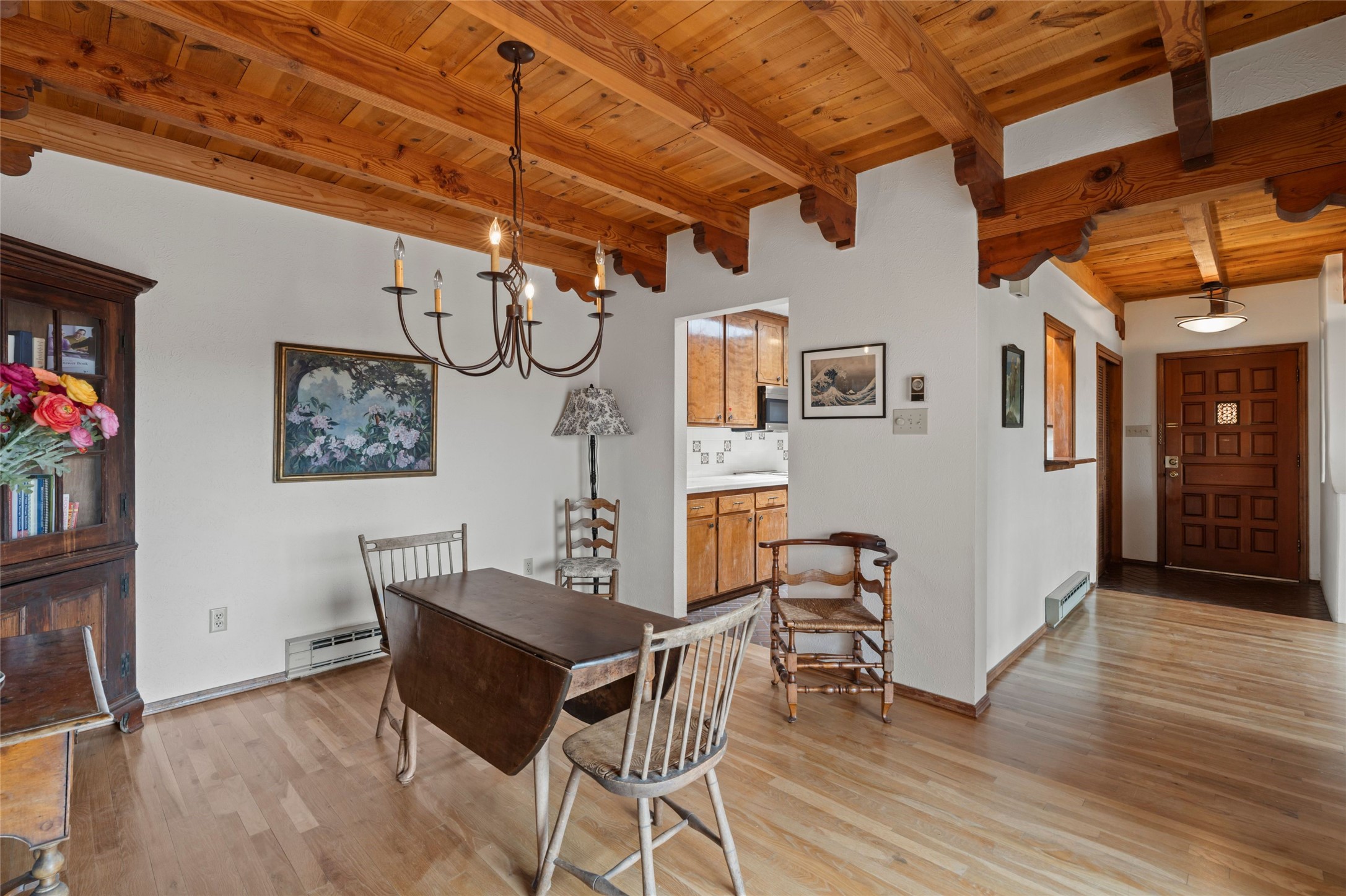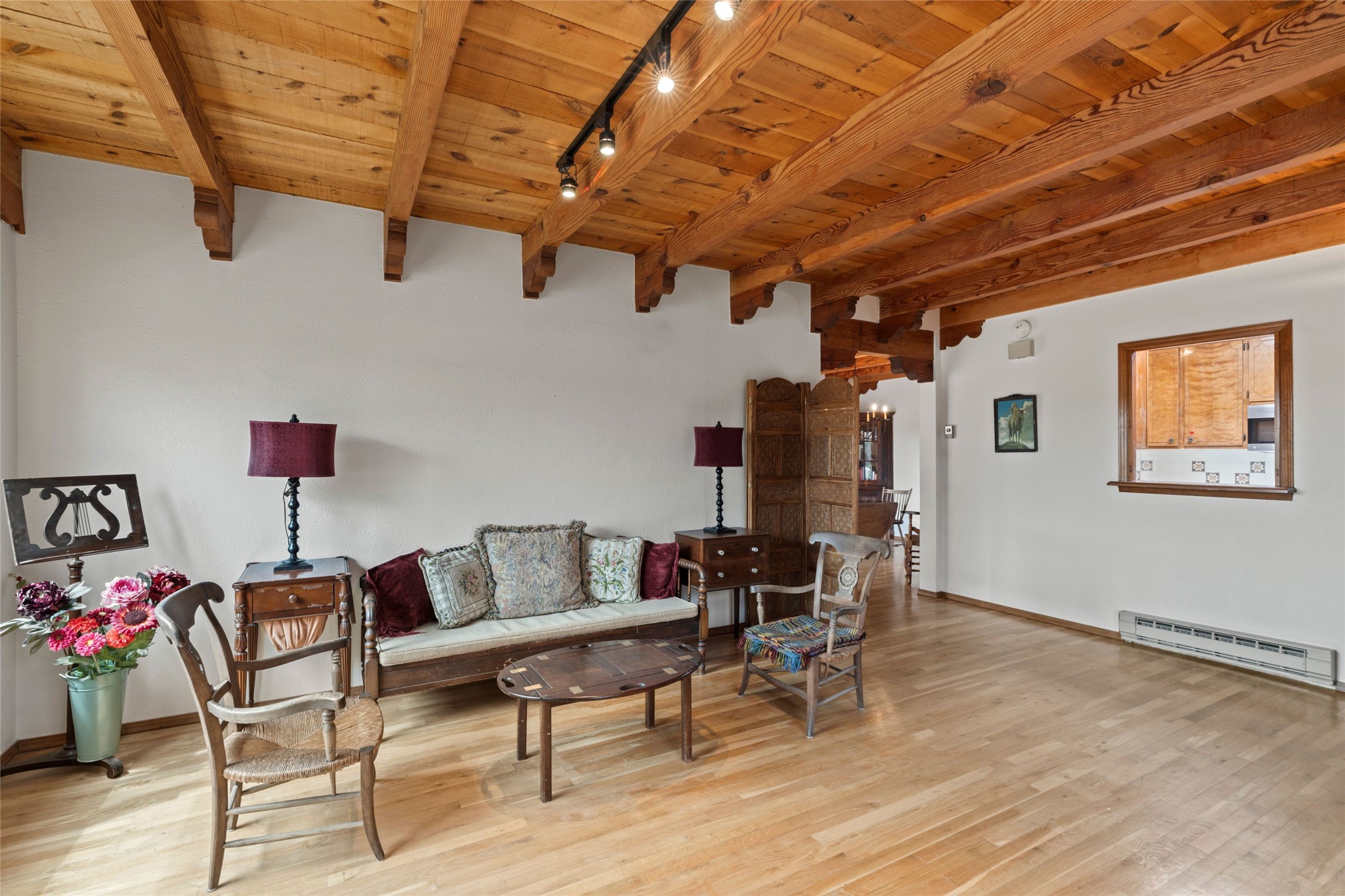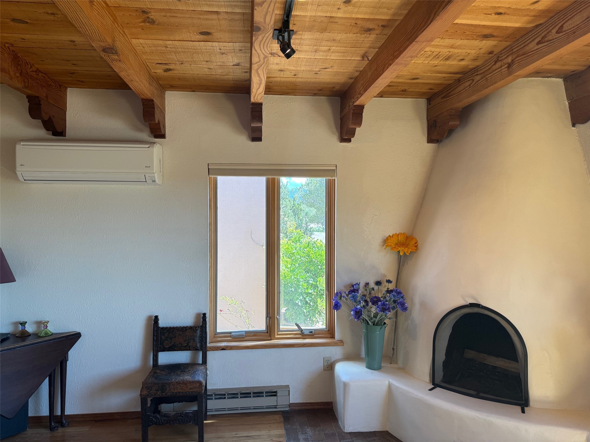 Nestled in a serene enclave with views of Sun and Moon Mountain, this charming 2-bedroom, 2-bath townhouse radiates timeless charm with wood floors, rustic ceiling beams, and authentic Southwestern character throughout.Located in the heart of Santa Fe in the Wood-Gormley School district, you're minutes from the historic Plaza, Museum Hill, and neighborhood cafes. The attached two-car garage provides convenient parking and storage, while mini-splits ensure year-round comfort.Complete with two wood-burning Kiva fireplaces and an attached 2-car garage offering ample storage, this home is a rare gem where charm meets functionality. Whether you're sipping coffee on the patio at sunrise or enjoying a sunset glow on the mountains, this is where desert beauty and refined living come together.