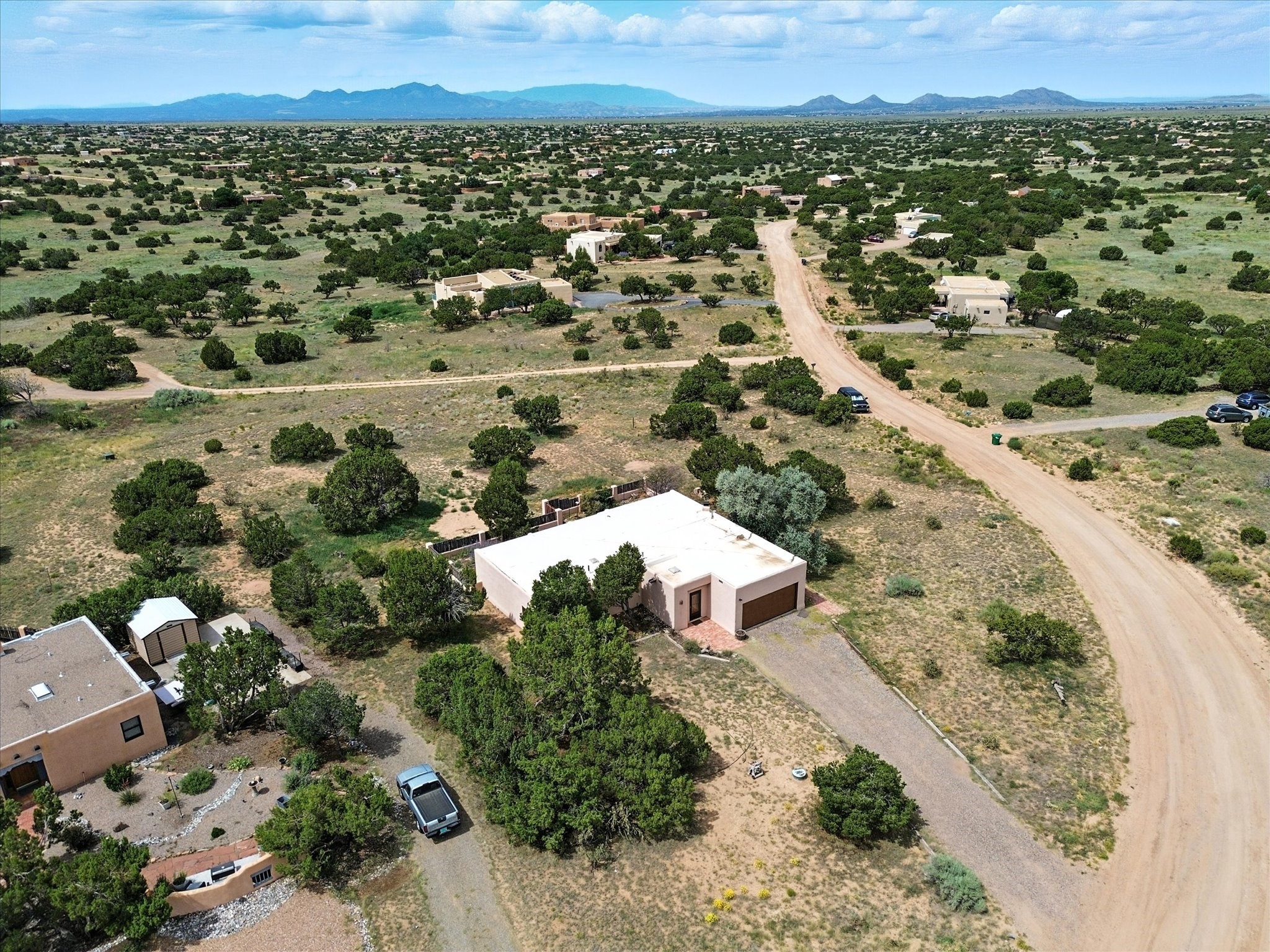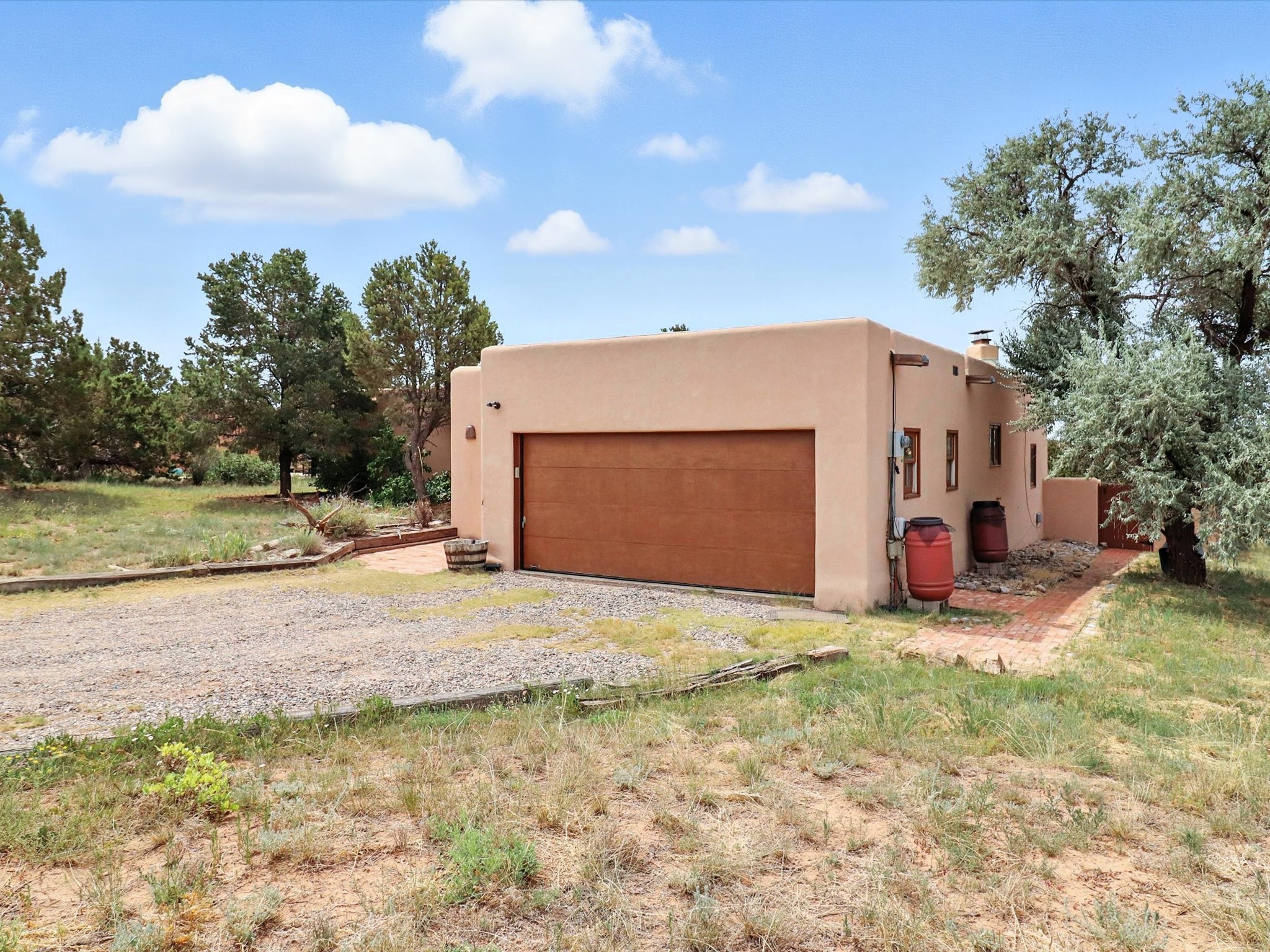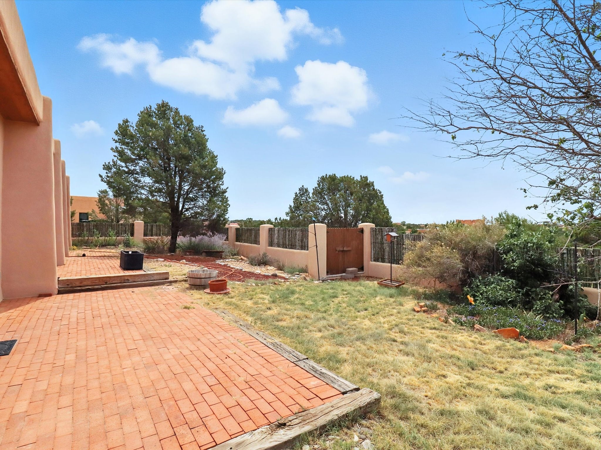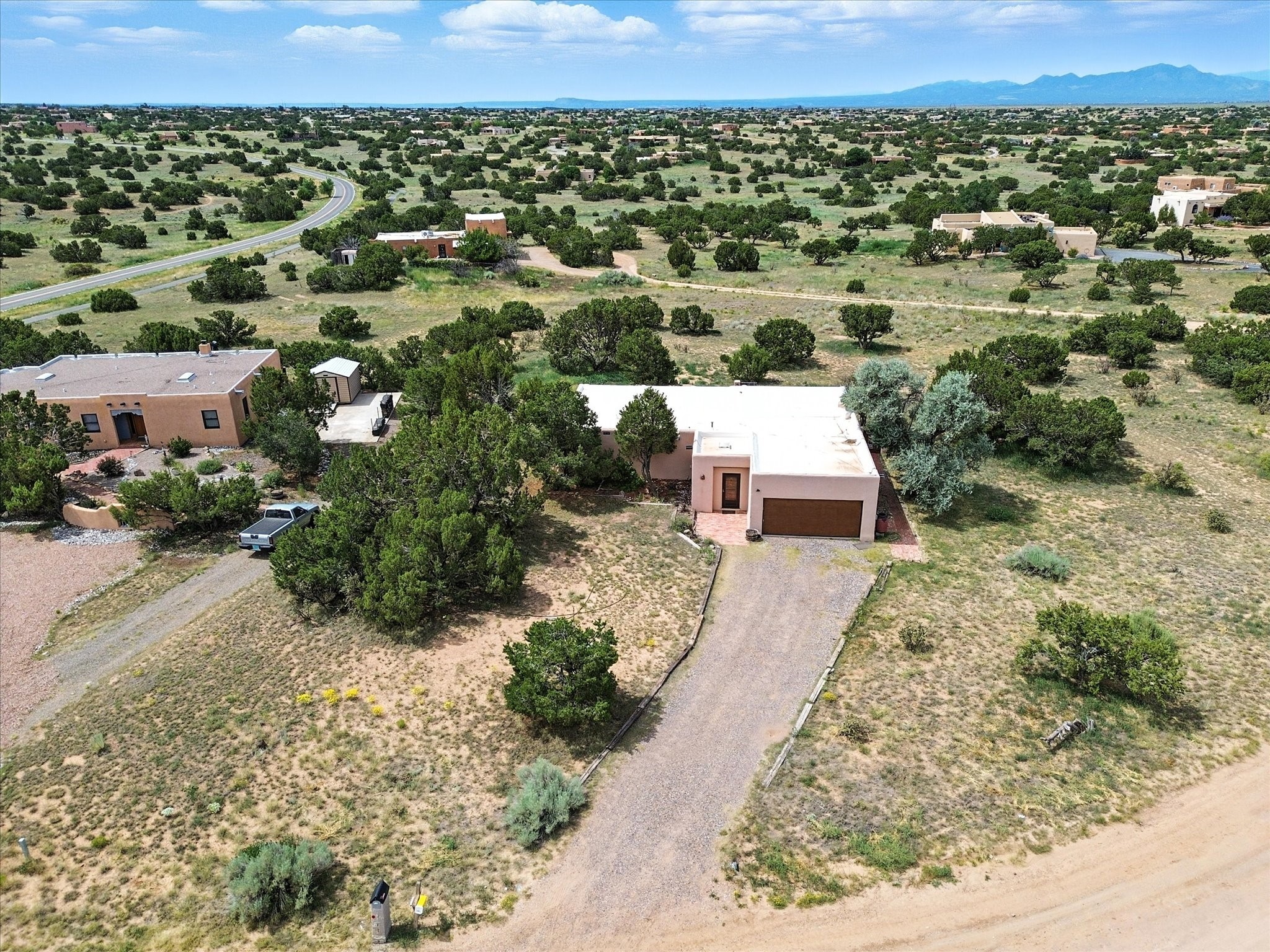 Bright Adobe Home with Southwestern Charm in Peaceful EldoradoNestled on a full acre in the sought-after Eldorado community, this light-filled single-story adobe home offers over 1,600 square feet of comfortable living infused with classic Santa Fe style. Featuring 3 bedrooms and 2 bathrooms, this hidden gem is thoughtfully designed with warm Southwestern details, including a charming kiva fireplace that sets the tone for cozy gatherings.Each bedroom offers direct access to the private, fenced backyard--perfect for enjoying the serene views or creating your own outdoor retreat. The spacious primary suite includes a full bath and built-in cabinetry for added convenience. Large glass windows flood the home with natural light, while the separate laundry room and attached garage provide everyday functionality.Whether you're relaxing in the sunlit interior, cultivating a garden, or exploring nearby walking trails, this property offers both comfort and connection to nature. Located just minutes from downtown Santa Fe via paved roads, and with access to Eldorado's incredible amenities--pool, clubhouse, and scenic trails--you'll experience the best of peaceful living and community charm.