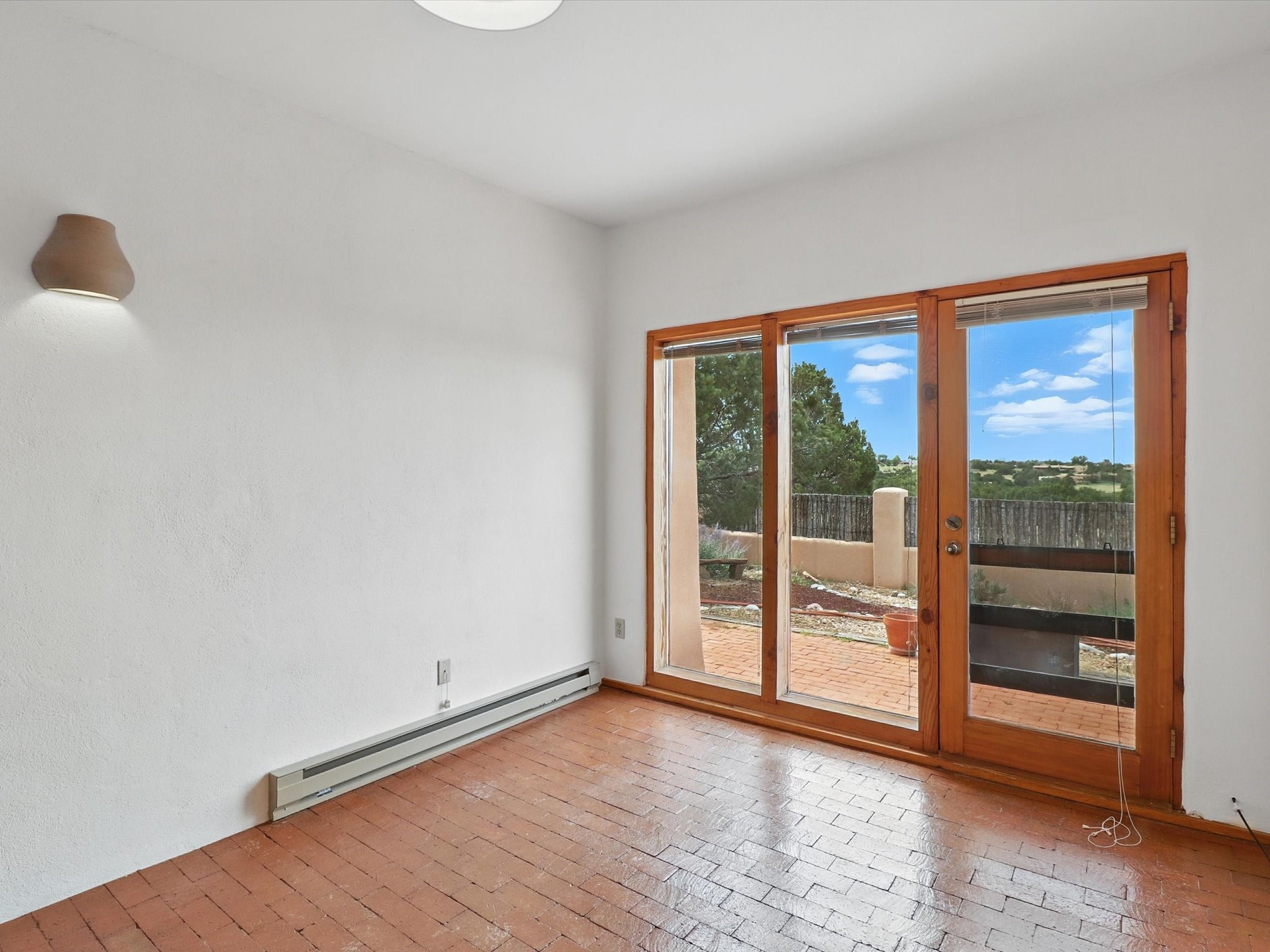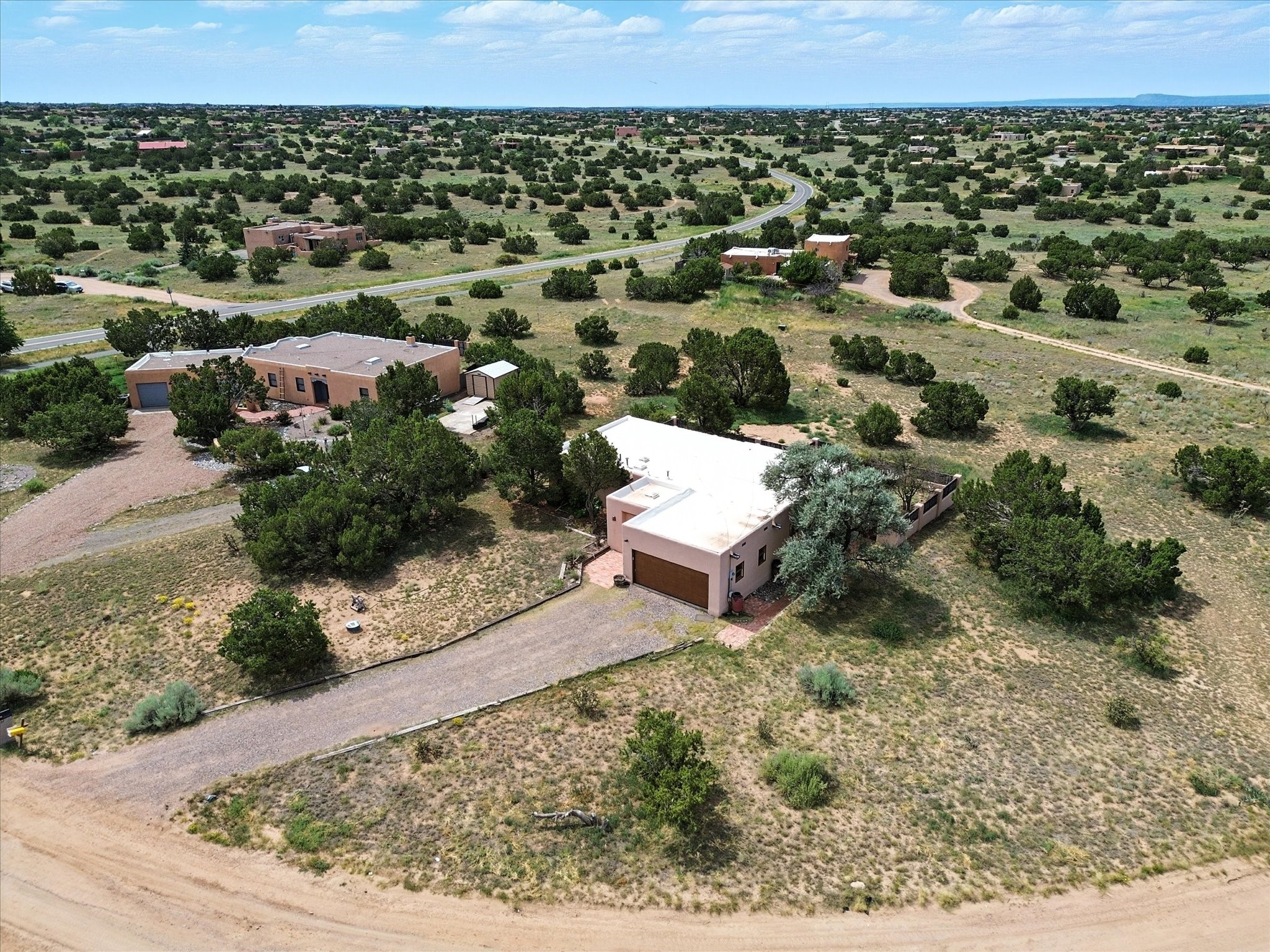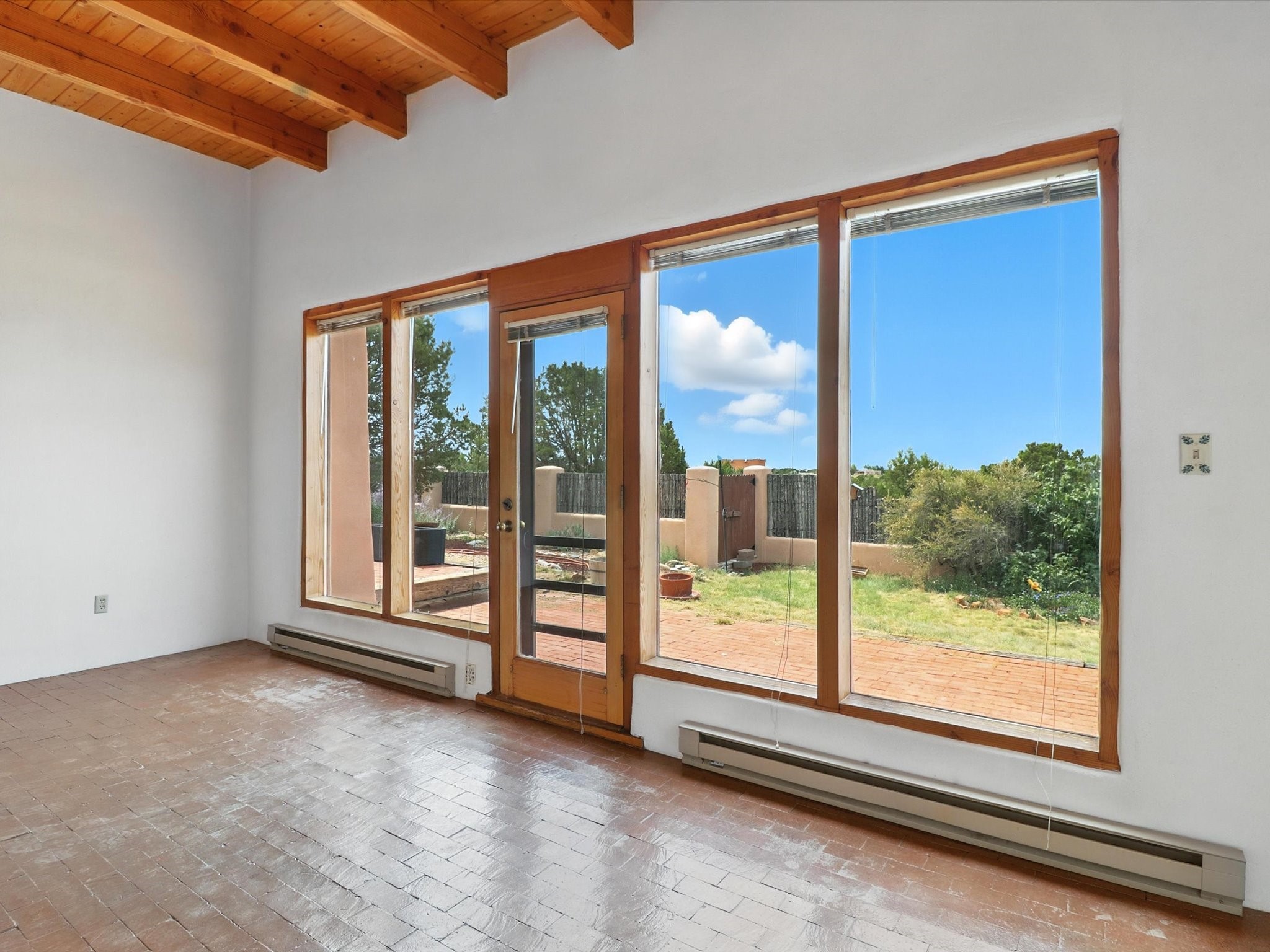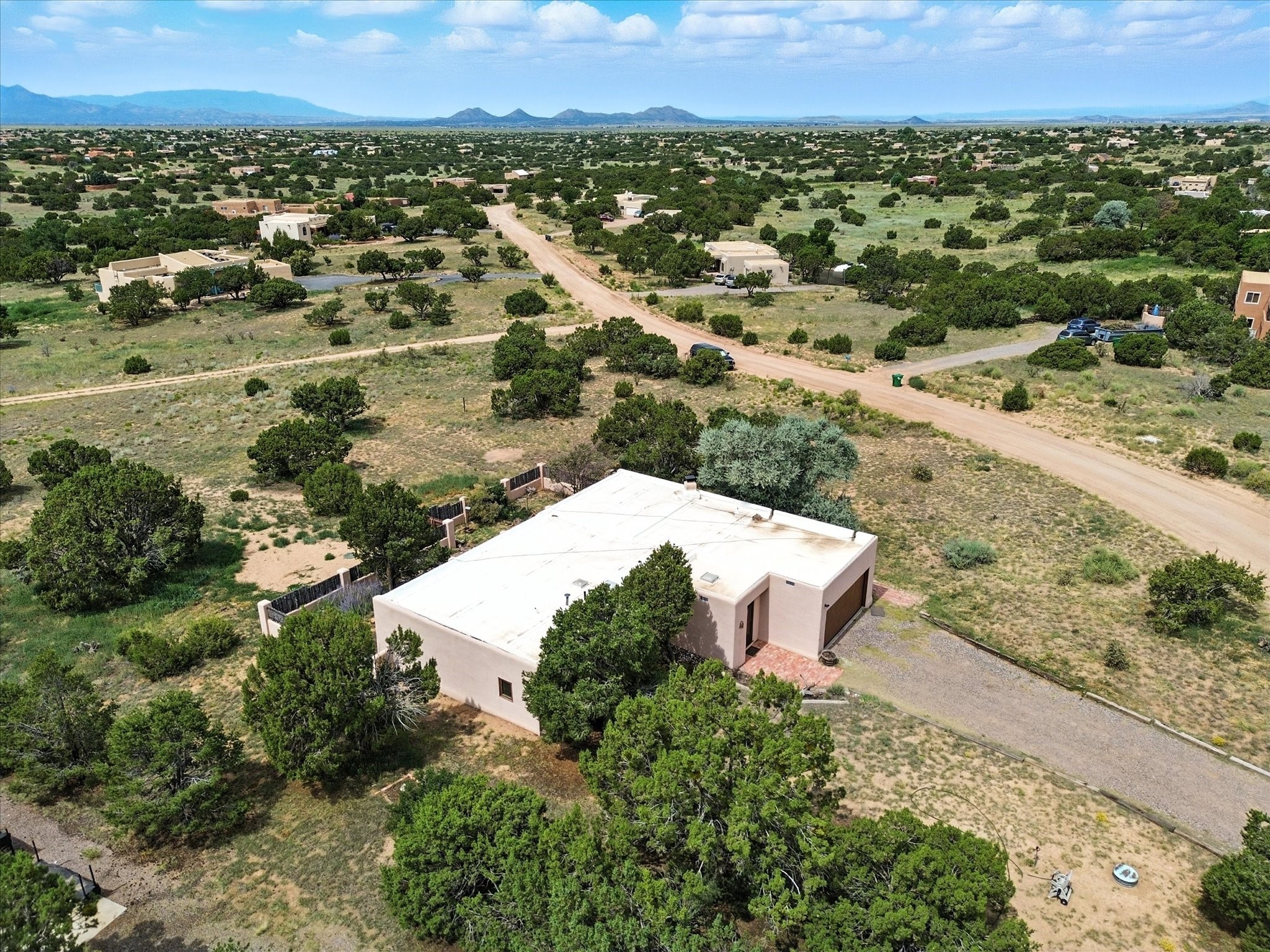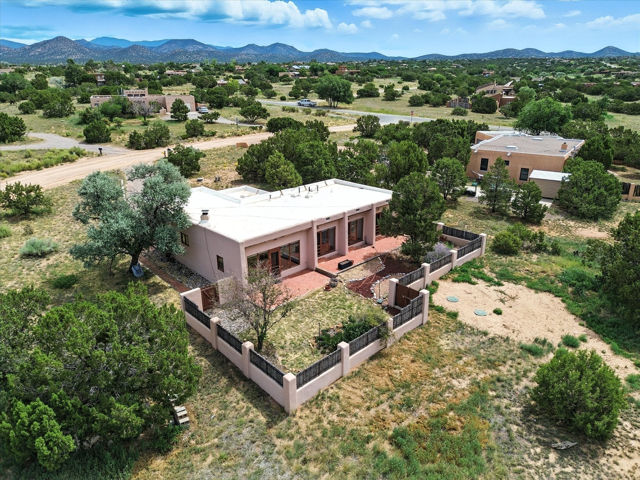 Bright Adobe Home with Southwestern Charm in Peaceful EldoradoNestled on a full acre in the sought-after Eldorado community, this light-filled single-story adobe home offers over 1,600 square feet of comfortable living infused with classic Santa Fe style. Featuring 3 bedrooms and 2 bathrooms, this hidden gem is thoughtfully designed with warm Southwestern details, including a charming kiva fireplace that sets the tone for cozy gatherings.Each bedroom offers direct access to the private, fenced backyard--perfect for enjoying the serene views or creating your own outdoor retreat. The spacious primary suite includes a full bath and built-in cabinetry for added convenience. Large glass windows flood the home with natural light, while the separate laundry room and attached garage provide everyday functionality.Whether you're relaxing in the sunlit interior, cultivating a garden, or exploring nearby walking trails, this property offers both comfort and connection to nature. Located just minutes from downtown Santa Fe via paved roads, and with access to Eldorado's incredible amenities--pool, clubhouse, and scenic trails--you'll experience the best of peaceful living and community charm.