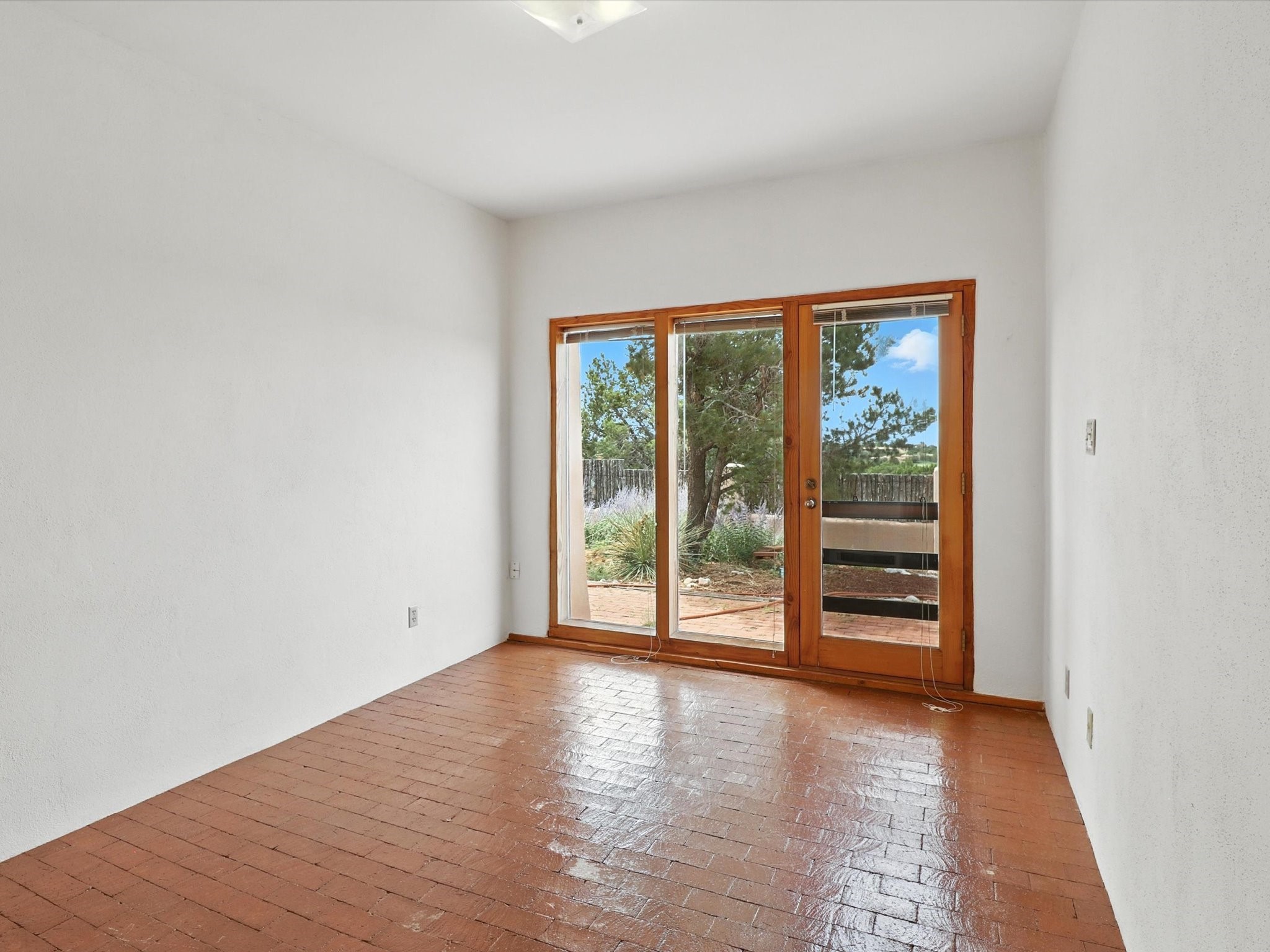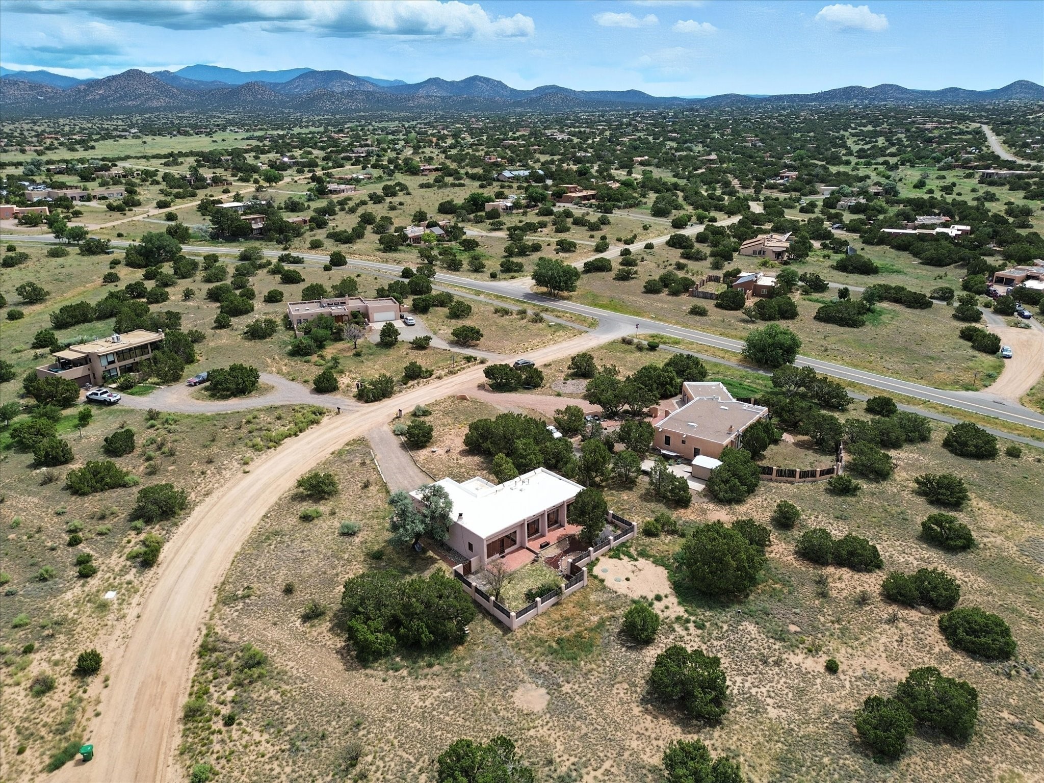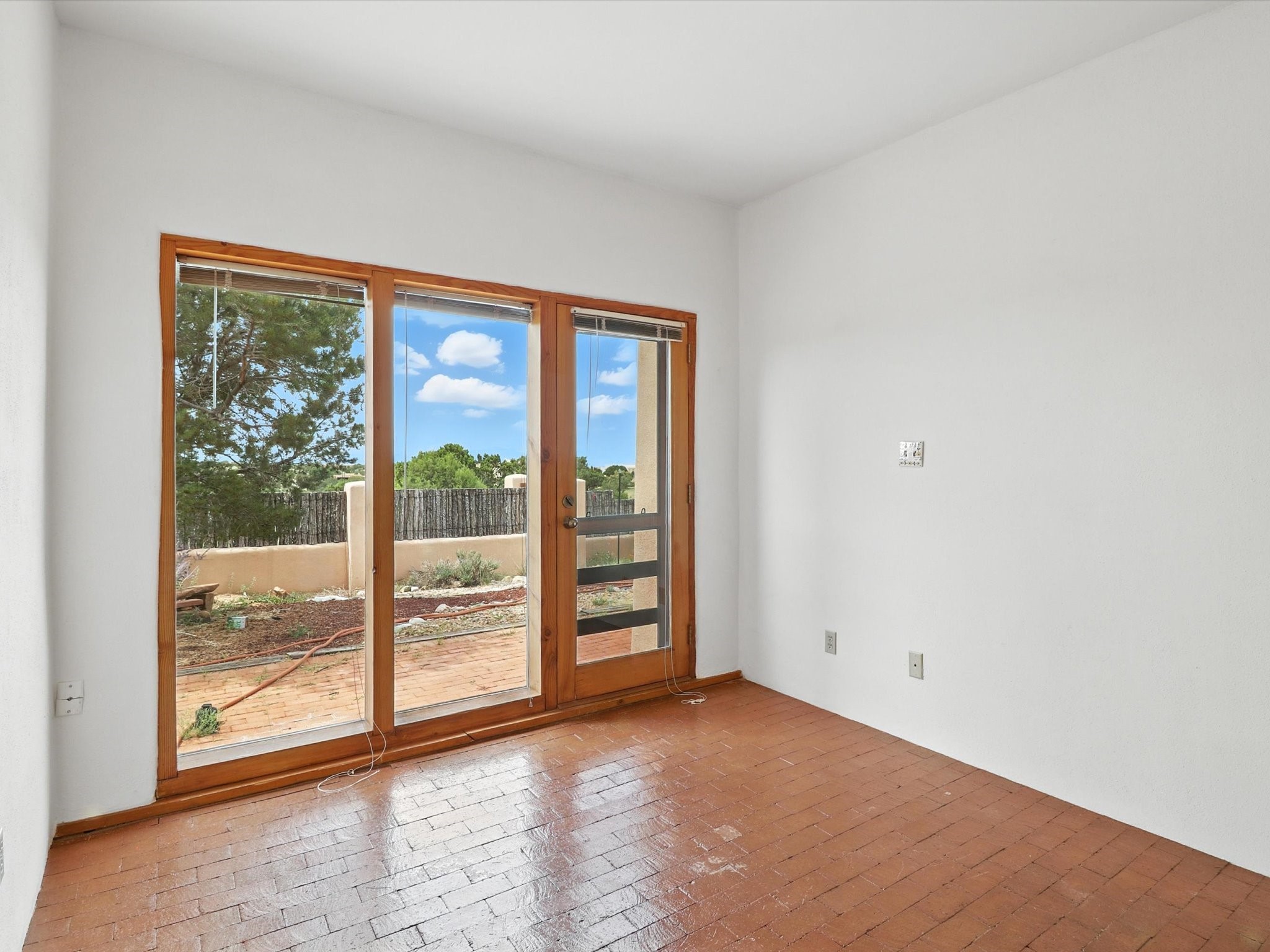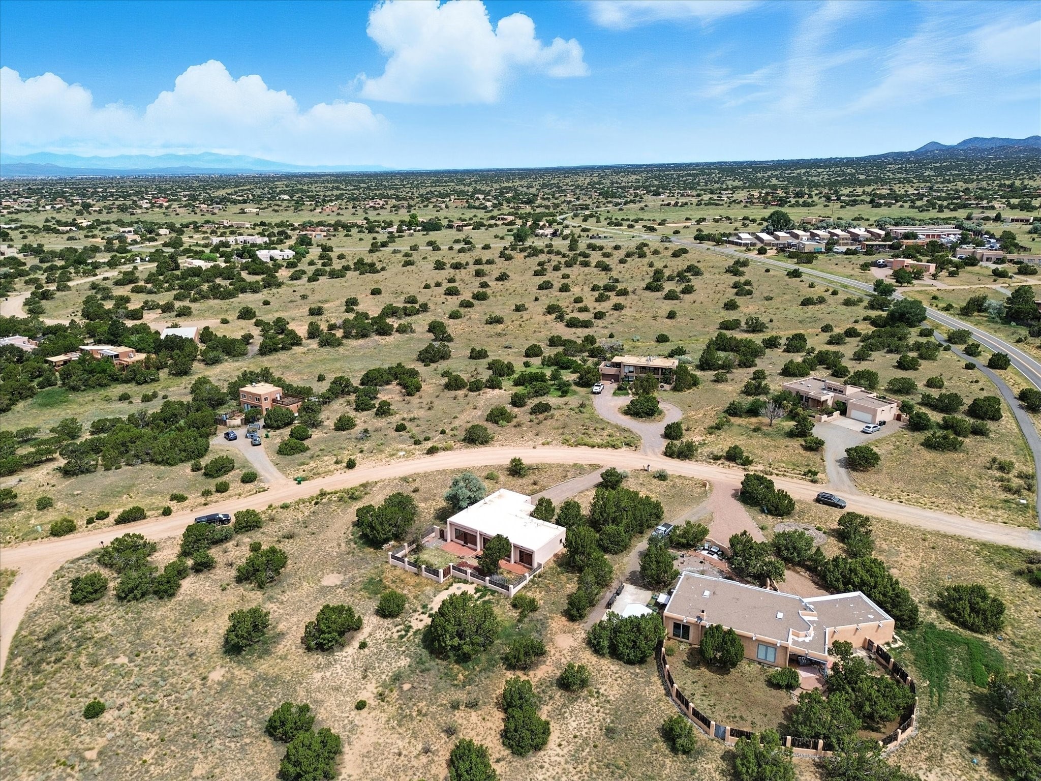 Bright Adobe Home with Southwestern Charm in Peaceful EldoradoNestled on a full acre in the sought-after Eldorado community, this light-filled single-story adobe home offers over 1,600 square feet of comfortable living infused with classic Santa Fe style. Featuring 3 bedrooms and 2 bathrooms, this hidden gem is thoughtfully designed with warm Southwestern details, including a charming kiva fireplace that sets the tone for cozy gatherings.Each bedroom offers direct access to the private, fenced backyard--perfect for enjoying the serene views or creating your own outdoor retreat. The spacious primary suite includes a full bath and built-in cabinetry for added convenience. Large glass windows flood the home with natural light, while the separate laundry room and attached garage provide everyday functionality.Whether you're relaxing in the sunlit interior, cultivating a garden, or exploring nearby walking trails, this property offers both comfort and connection to nature. Located just minutes from downtown Santa Fe via paved roads, and with access to Eldorado's incredible amenities--pool, clubhouse, and scenic trails--you'll experience the best of peaceful living and community charm.