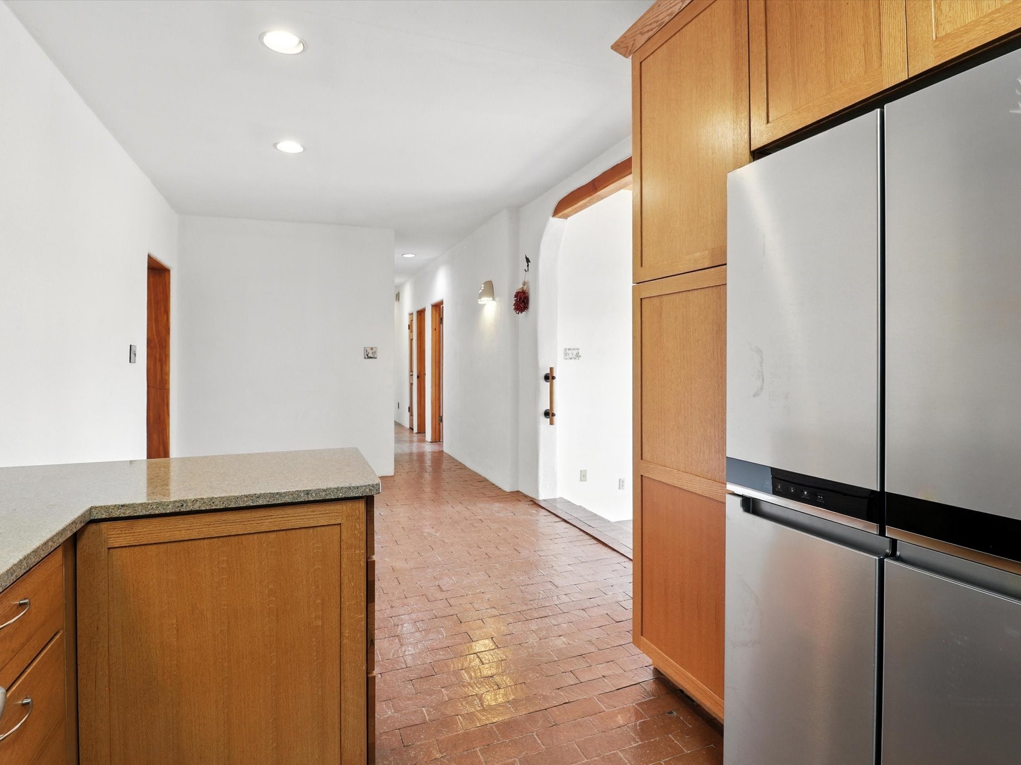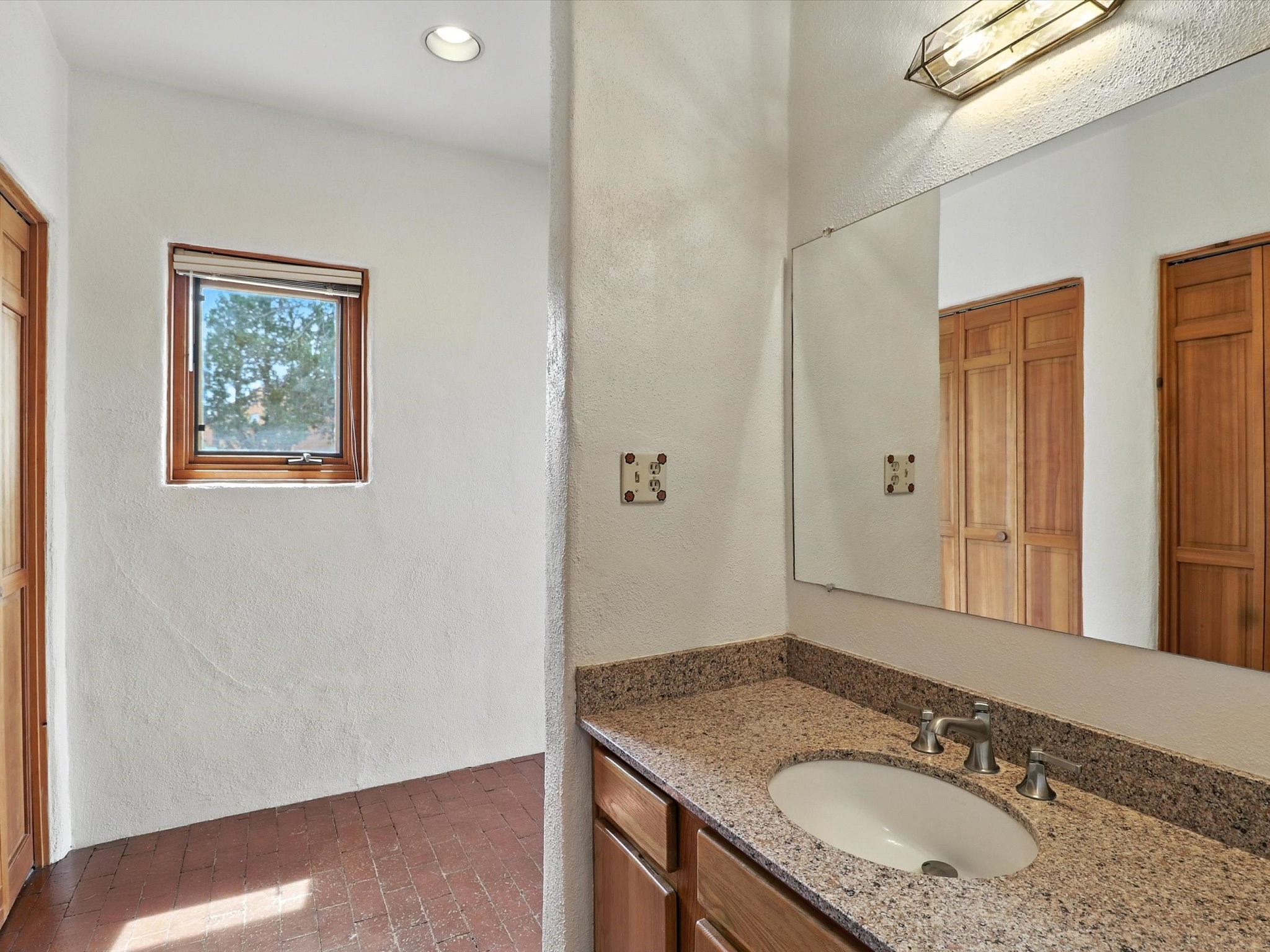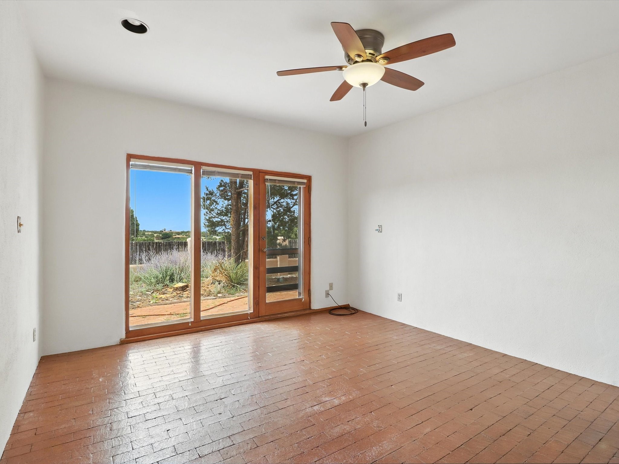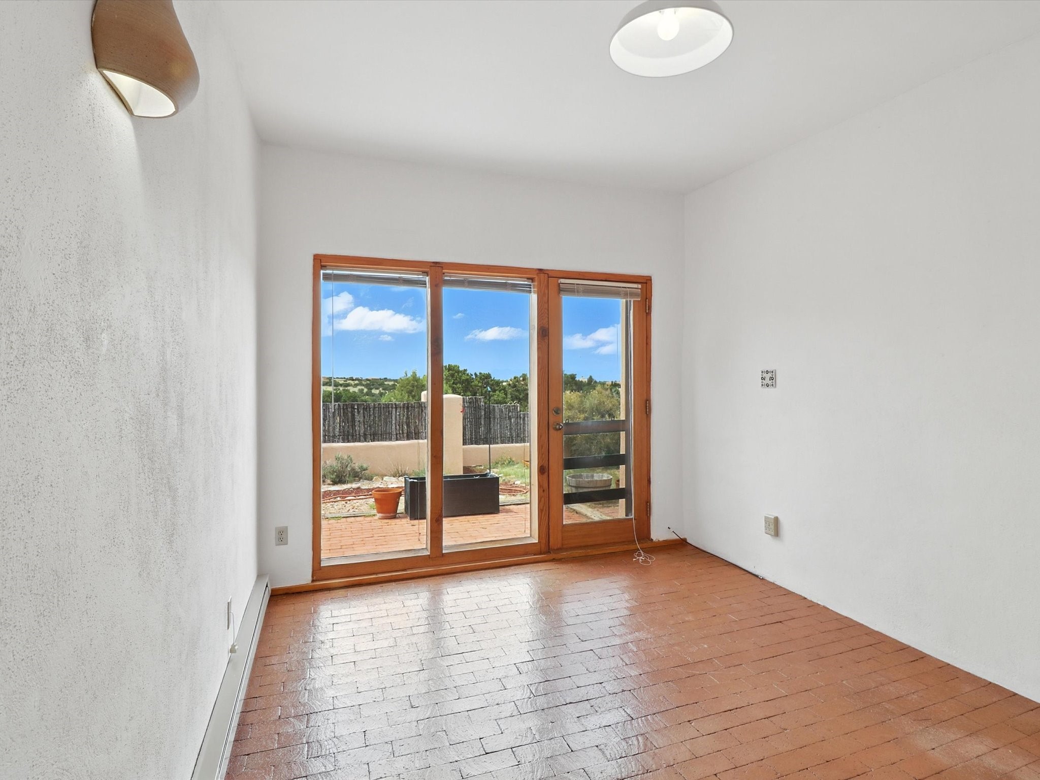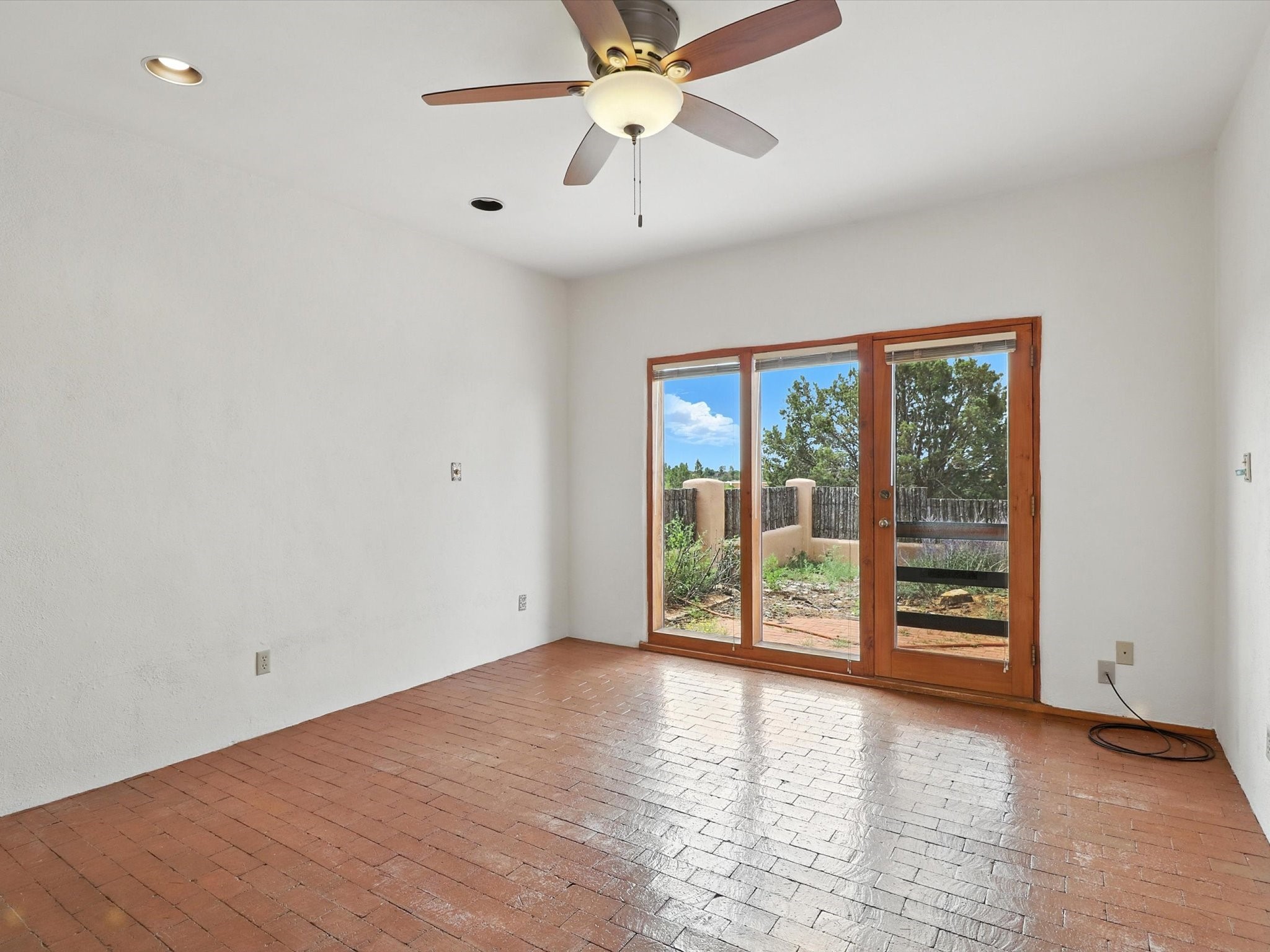 Bright Adobe Home with Southwestern Charm in Peaceful EldoradoNestled on a full acre in the sought-after Eldorado community, this light-filled single-story adobe home offers over 1,600 square feet of comfortable living infused with classic Santa Fe style. Featuring 3 bedrooms and 2 bathrooms, this hidden gem is thoughtfully designed with warm Southwestern details, including a charming kiva fireplace that sets the tone for cozy gatherings.Each bedroom offers direct access to the private, fenced backyard--perfect for enjoying the serene views or creating your own outdoor retreat. The spacious primary suite includes a full bath and built-in cabinetry for added convenience. Large glass windows flood the home with natural light, while the separate laundry room and attached garage provide everyday functionality.Whether you're relaxing in the sunlit interior, cultivating a garden, or exploring nearby walking trails, this property offers both comfort and connection to nature. Located just minutes from downtown Santa Fe via paved roads, and with access to Eldorado's incredible amenities--pool, clubhouse, and scenic trails--you'll experience the best of peaceful living and community charm.