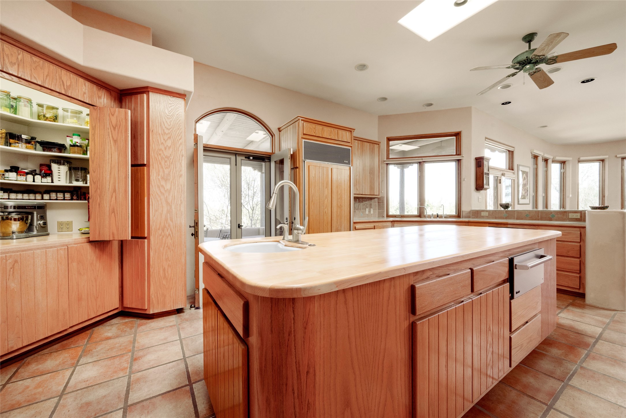 Nestled in a private & beautifully landscaped setting, this 3-bedroom, 2.5-bath custom home offers 3,500 square feet of thoughtfully designed living space. Built with both comfort & style in mind, the residence is set within a master gardener's haven--lushly planted & fully irrigated to maintain the vibrant landscape.You'll appreciate the sense of seclusion & tranquility. This home is essentially single-level, with just 3- interior steps leading to the kitchen & dining area. Inside, Southwest-inspired design elements abound--arched passages & classic kiva fireplaces add character & charm. 9-exterior doors invite natural light & seamless indoor-outdoor living, while Hurd windows frame picturesque garden views from nearly every room.Designed for both everyday living & entertaining, the home features multiple outdoor portals--ideal for gatherings in any season. One portal includes a built-in kiva fireplace & offers a built-in BBQ station--perfect for alfresco dining & sunset cocktails.The spacious kitchen opens to the dining area & includes ample cabinetry, & easy access to outdoor entertaining spaces. A wet bar enhances the flow for hosting, & a dedicated yoga room--complete with direct patio access--invites wellness & retreat.The primary suite & secondary bedrooms offer comfort & privacy, while the two-car garage provides not only vehicle storage but also direct access to mechanicals and additional storage space--ideal for tools, or seasonal items. The home also boasts a fantastic laundry room, built-in cabinetry & counters--yet another area where storage is well-considered.Homeowners enjoy the added benefit of an HOA that includes septic system inspections & scheduled cleanouts.Elegant yet functional, private yet accessible--this timeless home blends Southwestern charm with custom quality, all wrapped in an oasis-like landscape cultivated with care. A rare find for discerning buyers who appreciate craftsmanship, thoughtful details, and the art of outdoor living.