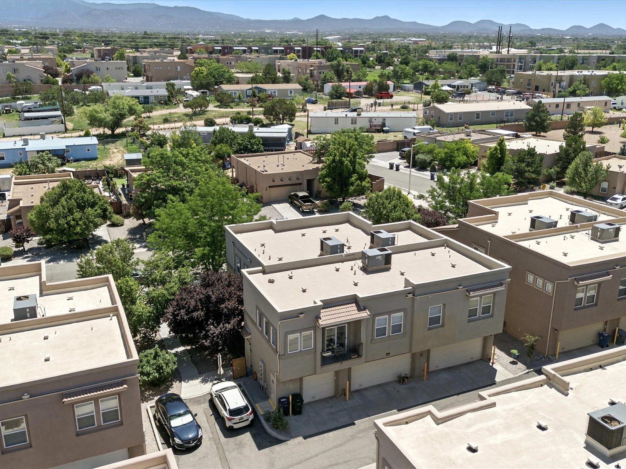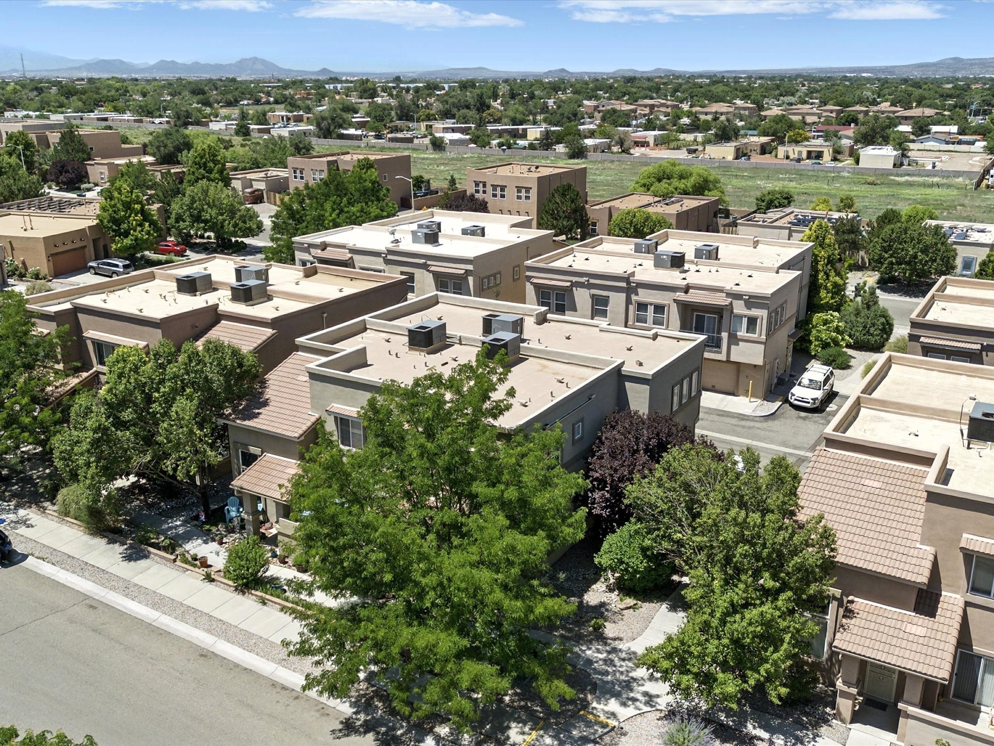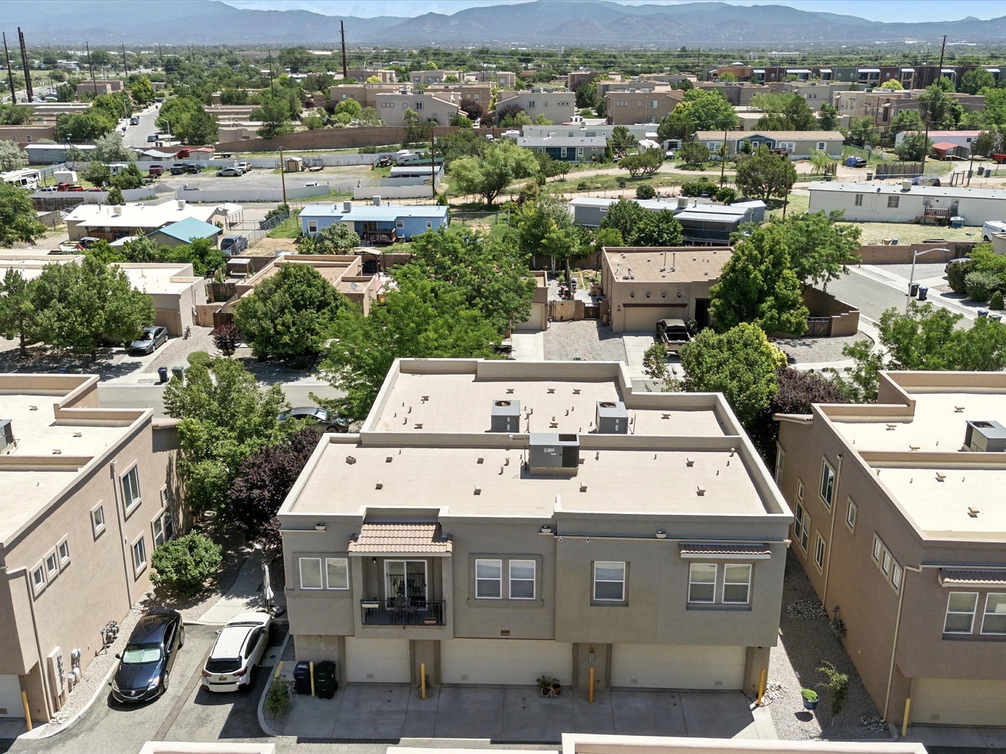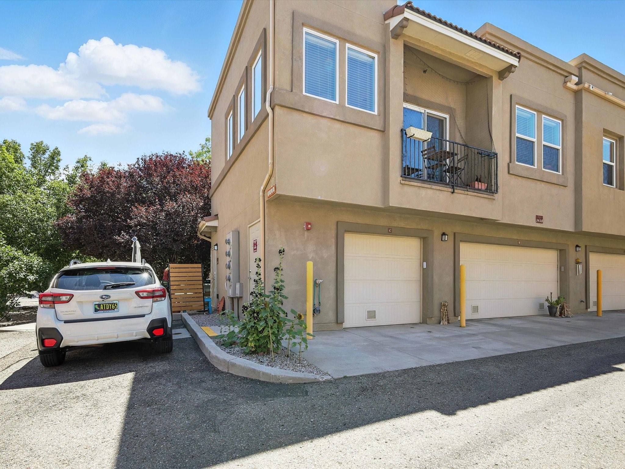 Bright, Spacious Condo with Mountain Views.Welcome to this beautifully maintained second-story condo that blends style, functionality, and comfort. Featuring a bright and open floor plan, this home invites natural light into every corner. The spacious kitchen is a true highlight with its island counter, walk-in pantry, new garbage disposal, and a separate laundry room equipped with a nearly new washer (just 6 months old).The primary bedroom has a spacious walk-in closet and a dual vanities. One of the bathrooms features a low-flush water-saving toilet, adding to the home's smart and eco-conscious features. The bedrooms, bathrooms, and hallway all have newer laminate tile flooring, installed just a couple of years ago--both stylish and easy to maintain.Step out onto the private balcony off the dining room and enjoy beautiful views of the Jemez Mountain Range--perfect for morning coffee or evening sunsets. For added peace of mind, the HVAC system was recently checked with parts replaced. You'll also enjoy central air, a one-car garage below, and friendly neighbors in a welcoming community.This condo is move-in ready with thoughtful updates and a comfortable layout that feels like home the moment you walk in.