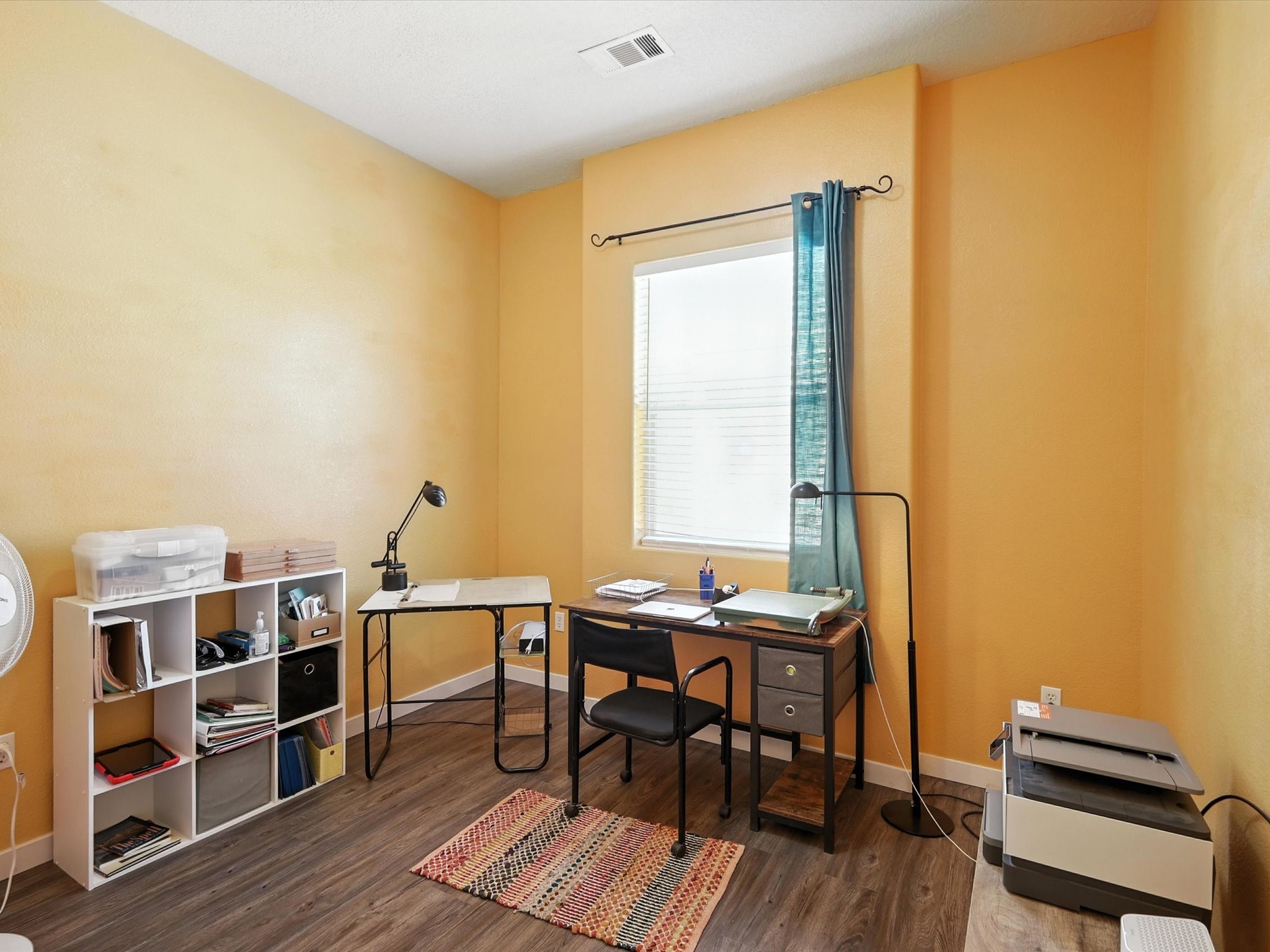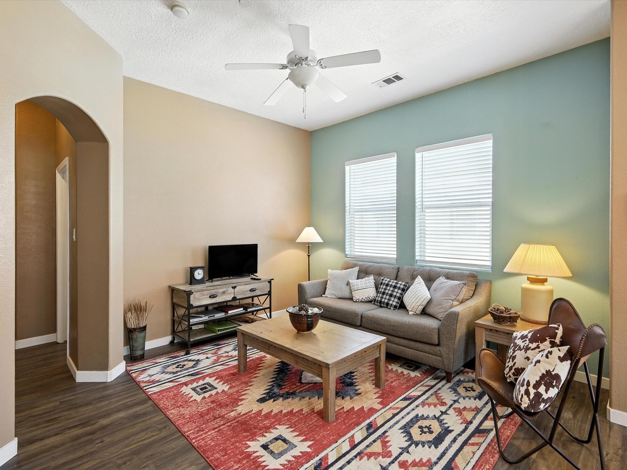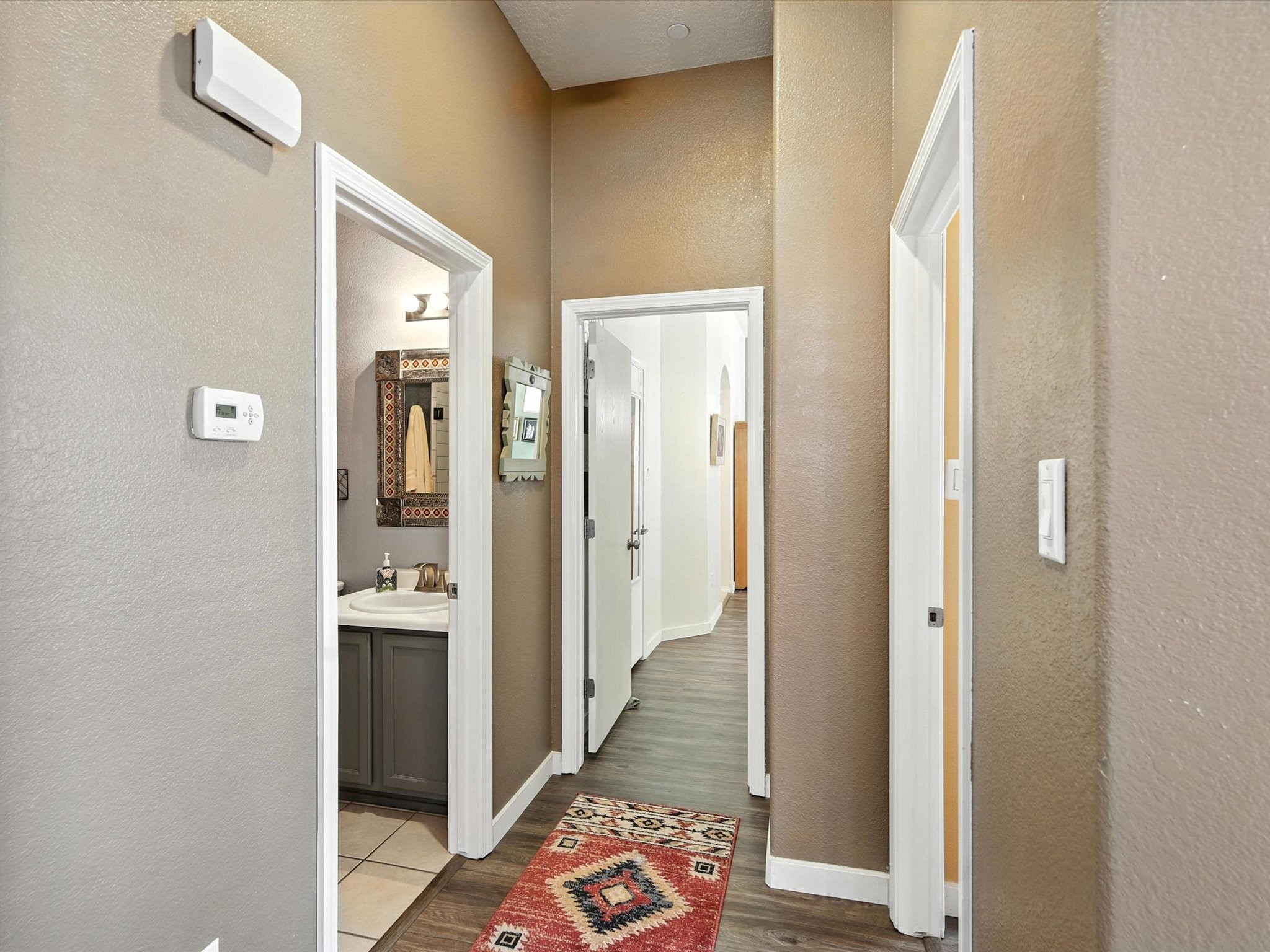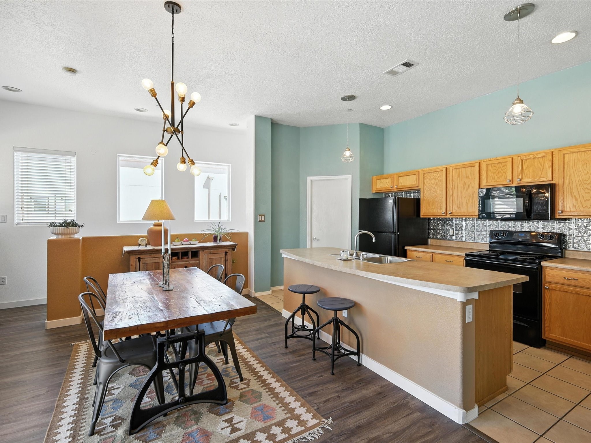Bright, Spacious Condo with Mountain Views.Welcome to this beautifully maintained second-story condo that blends style, functionality, and comfort. Featuring a bright and open floor plan, this home invites natural light into every corner. The spacious kitchen is a true highlight with its island counter, walk-in pantry, new garbage disposal, and a separate laundry room equipped with a nearly new washer (just 6 months old).The primary bedroom has a spacious walk-in closet and a dual vanities. One of the bathrooms features a low-flush water-saving toilet, adding to the home's smart and eco-conscious features. The bedrooms, bathrooms, and hallway all have newer laminate tile flooring, installed just a couple of years ago--both stylish and easy to maintain.Step out onto the private balcony off the dining room and enjoy beautiful views of the Jemez Mountain Range--perfect for morning coffee or evening sunsets. For added peace of mind, the HVAC system was recently checked with parts replaced. You'll also enjoy central air, a one-car garage below, and friendly neighbors in a welcoming community.This condo is move-in ready with thoughtful updates and a comfortable layout that feels like home the moment you walk in.
