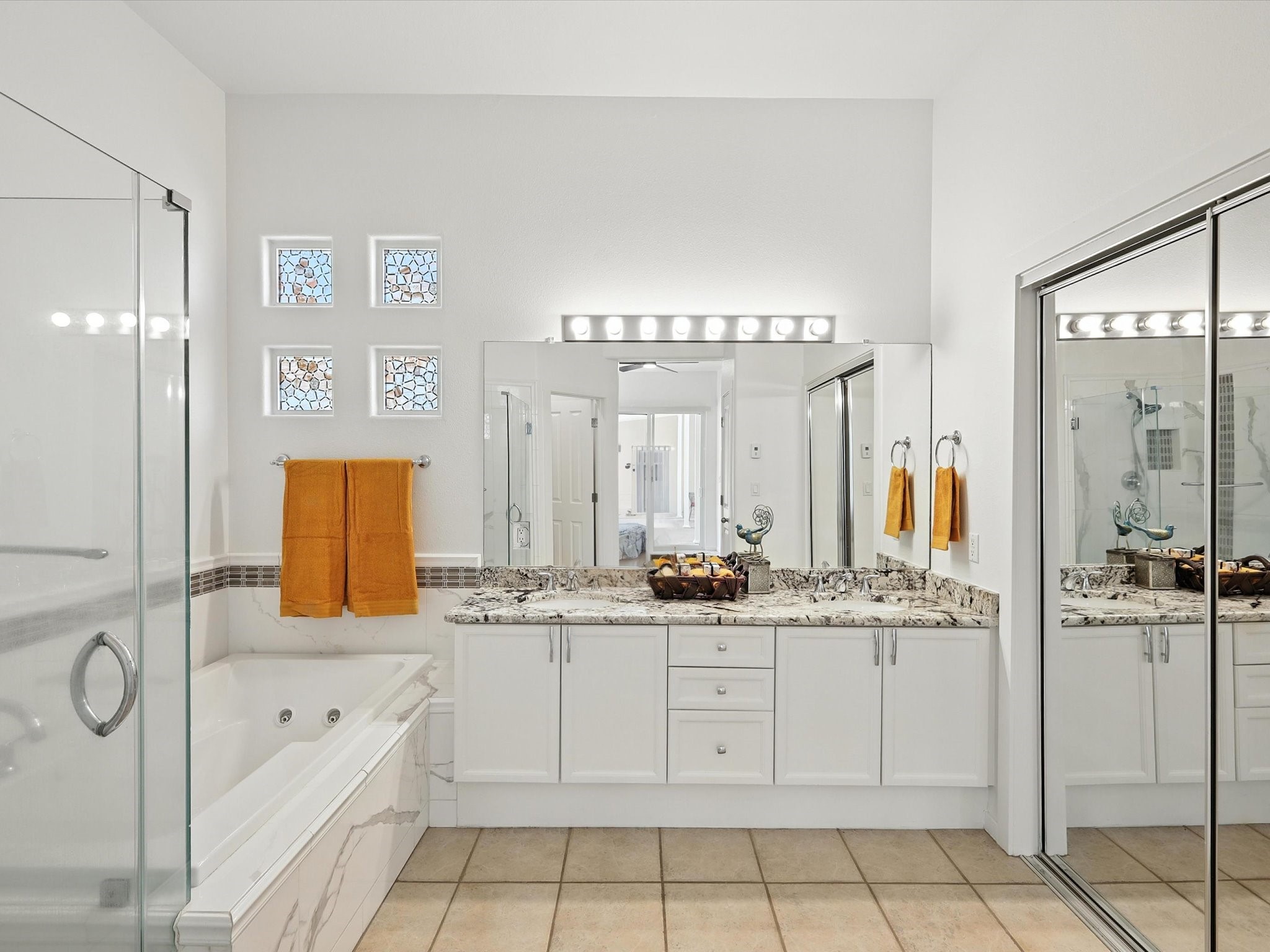 Newly staged and great new price, take another look! Exceptional property in Rancho Viejo, near trail access! Meticulously cared-for home greets you with Santa Fe charm, showcased by the stunning exposed Vigas & expansive ceilings in the living room. The seamless flow from the living room to the formal dining area boasts picturesque windows that overlook a beautifully landscaped backyard, inviting an abundance of natural light. Retreat to the primary suite, conveniently located off the living room, where you'll find direct access to a covered patio & the serene backyard. The luxurious primary bathroom features a separate jetted tub, a stylish shower, granite countertops with dual sinks, & a spacious walk-in closet. Discover a gorgeous kitchen that is both spacious & functional - highlighted by granite countertops, undermount lighting, stainless steel appliances, & a large island. This culinary haven opens to a generous family room, exposed Vigas & a cozy corner gas fireplace, creating the perfect setting for gatherings. Sliding doors from the family room lead to the expansive covered patio, ideal for entertaining. The other wing has a guest bathroom with granite countertops and a custom tub/shower, along with two well-appointed guest bedrooms that provide excellent separation from the primary suite. There is also a versatile bonus room suitable for an office, gym, theater, or other uses. The laundry room boasts upper cabinets & a utility sink, with direct access to both the garage & a secondary walled-in yard. The outdoor space of this property is truly a highlight, featuring a custom covered patio spanning over 600 sq. ft., perfect for entertaining, seamlessly flowing into a beautifully landscaped yard complete with artificial turf, lush shrubs, & an aspen tree. NEW ROOF IN 2024! Located within the Rancho Viejo community, enjoy access to parks, miles of scenic walking trails, and breathtaking views. Come experience the beauty of this Santa Fe gem today!