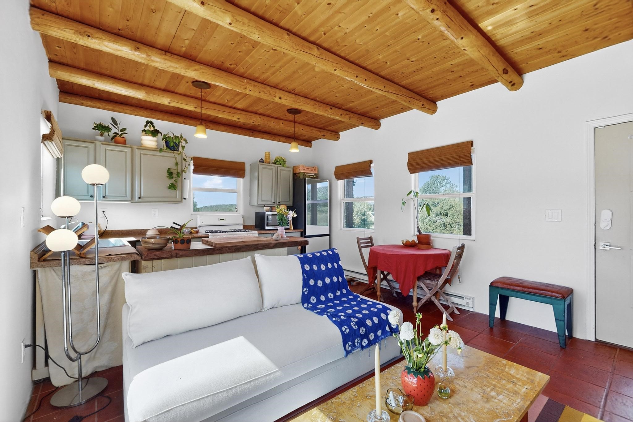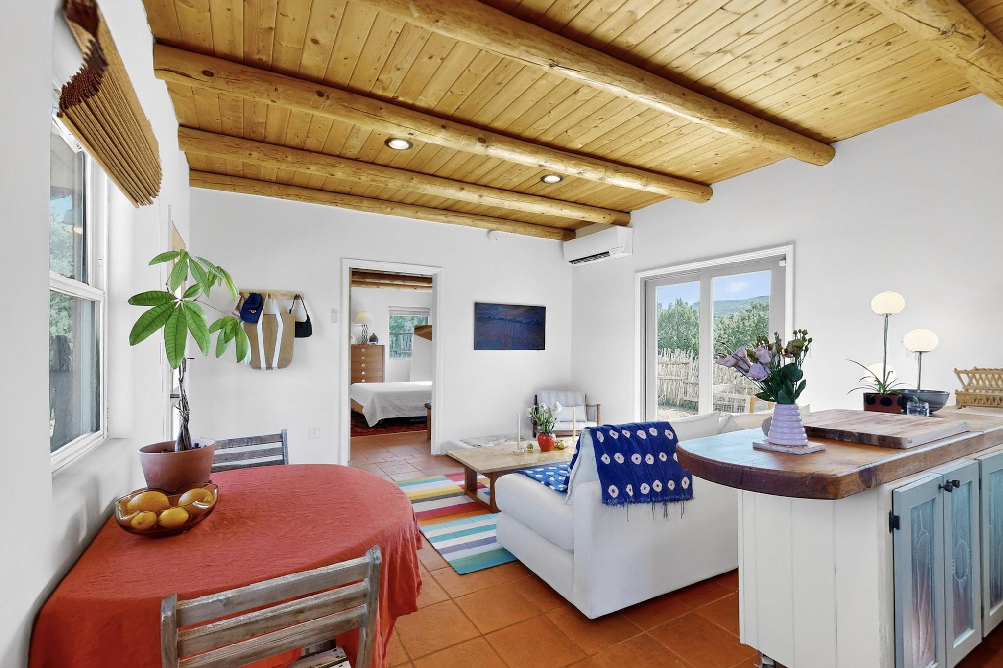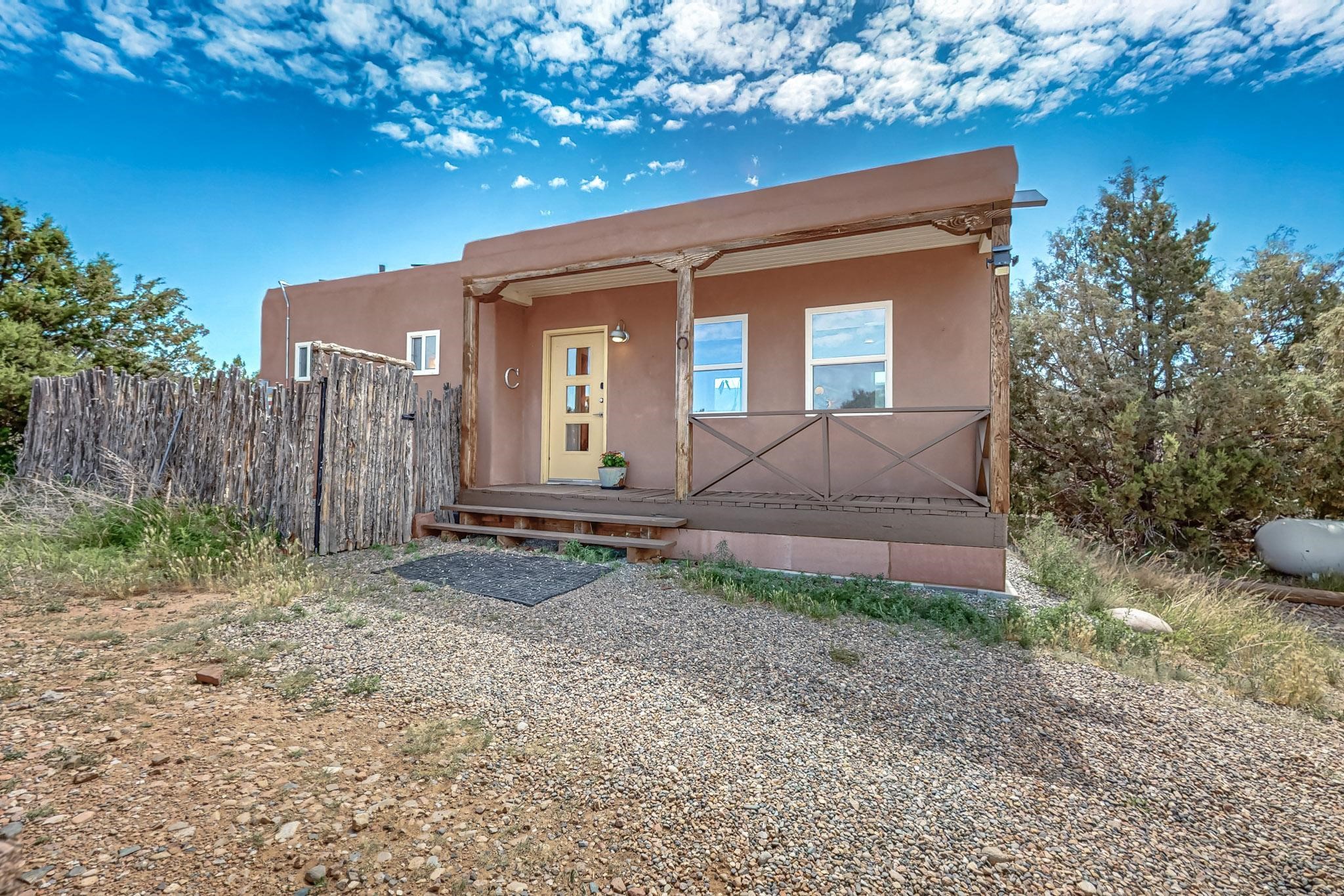 This charming Casita sits on 5 acres with stunning views! You'll enjoy miles of hiking trails in the Eldorado Community Preserve, as well as easy access to the National Forest. Bring your horses and chickens; you're allowed to have both. No HOA. Fenced backyard with garden. There are also two storage sheds included. The Solar System is owned. There is an Artesian well that is shared with two neighbors. You are only 10 minutes from Restaurants, a Grocery, and a Hardware store. Come out and enjoy this beautiful, peaceful home and its lovely property. Make this your forever home or live in it while you build, and have the Casita for family or as an income property.