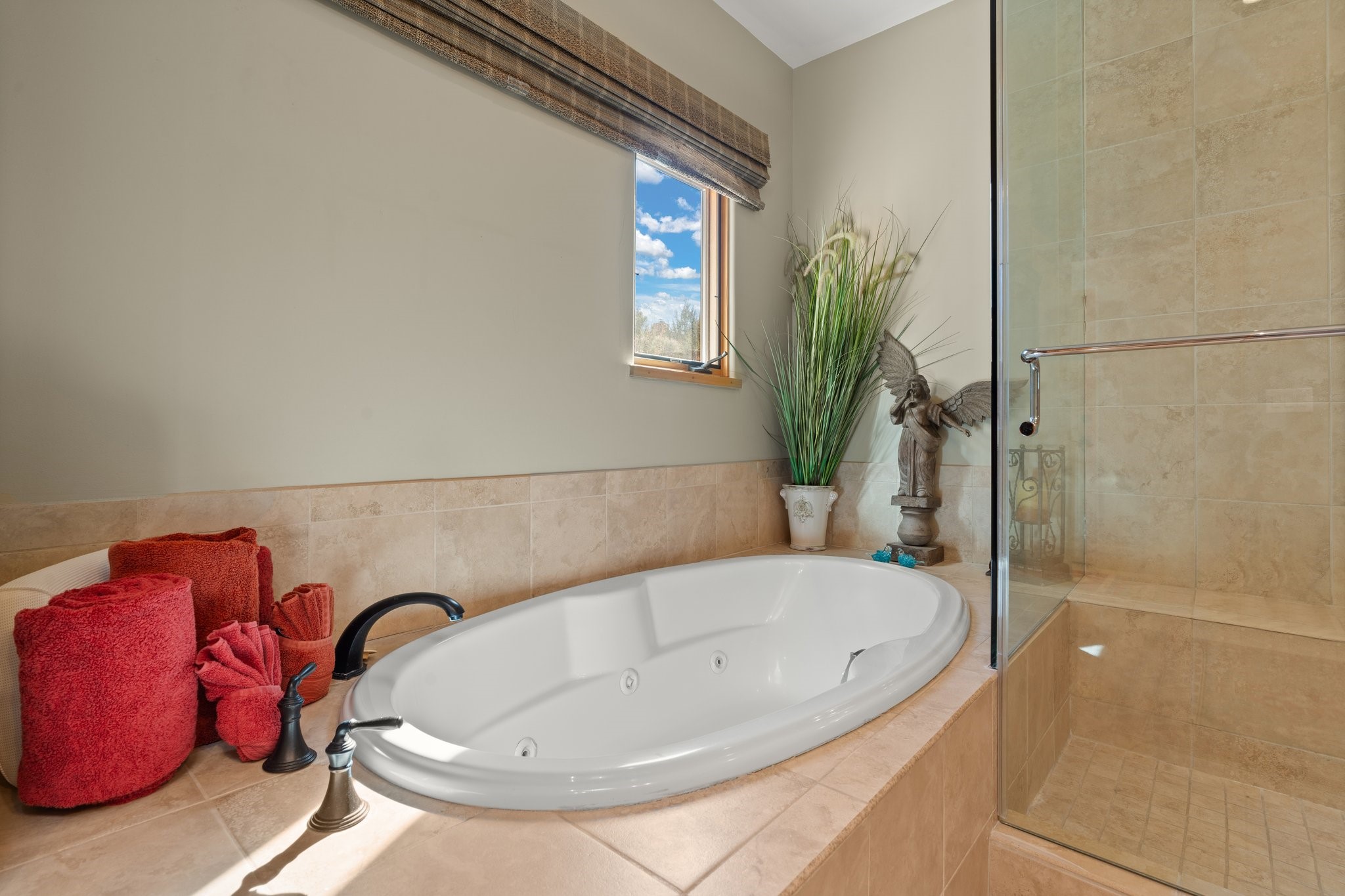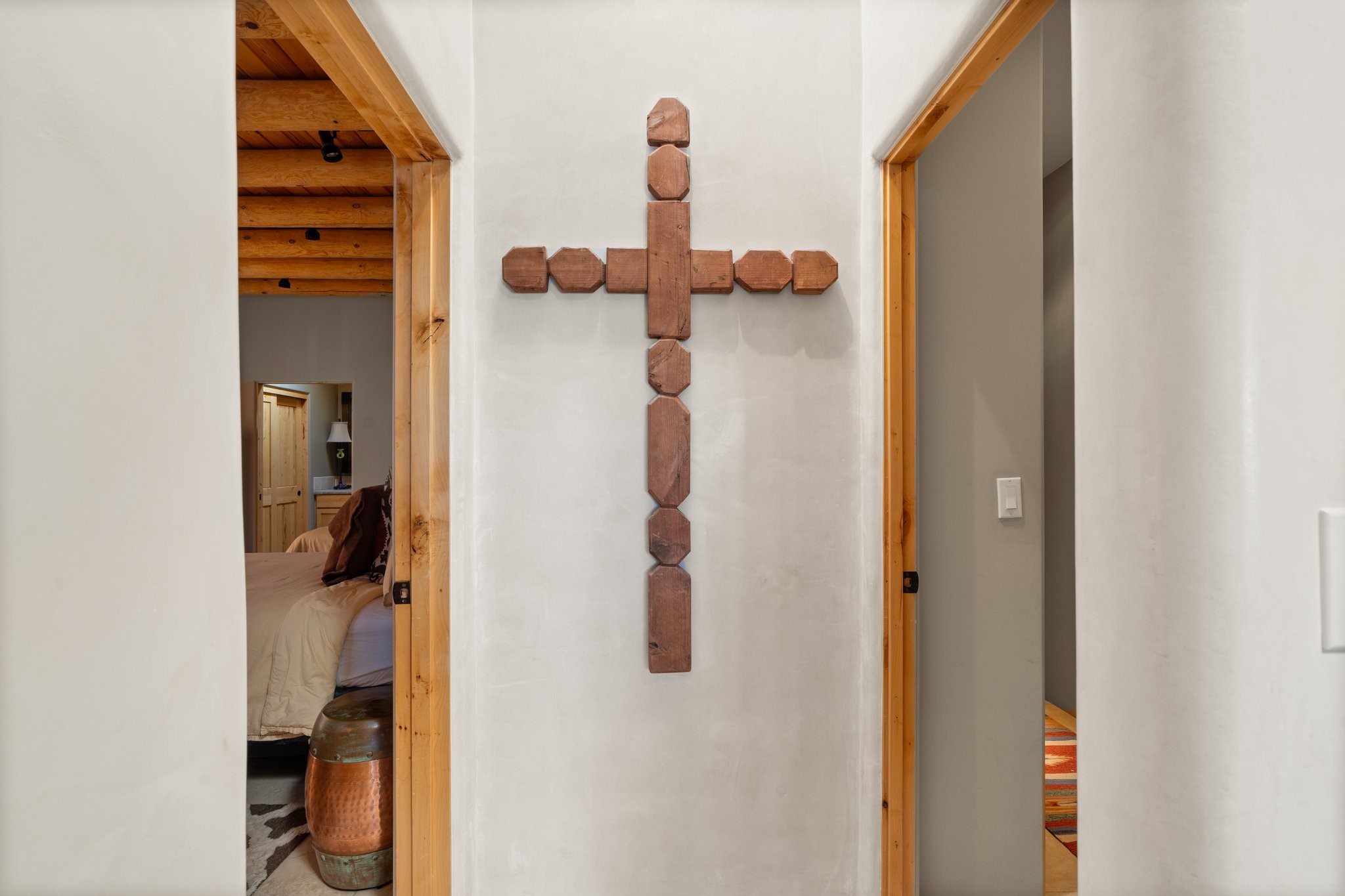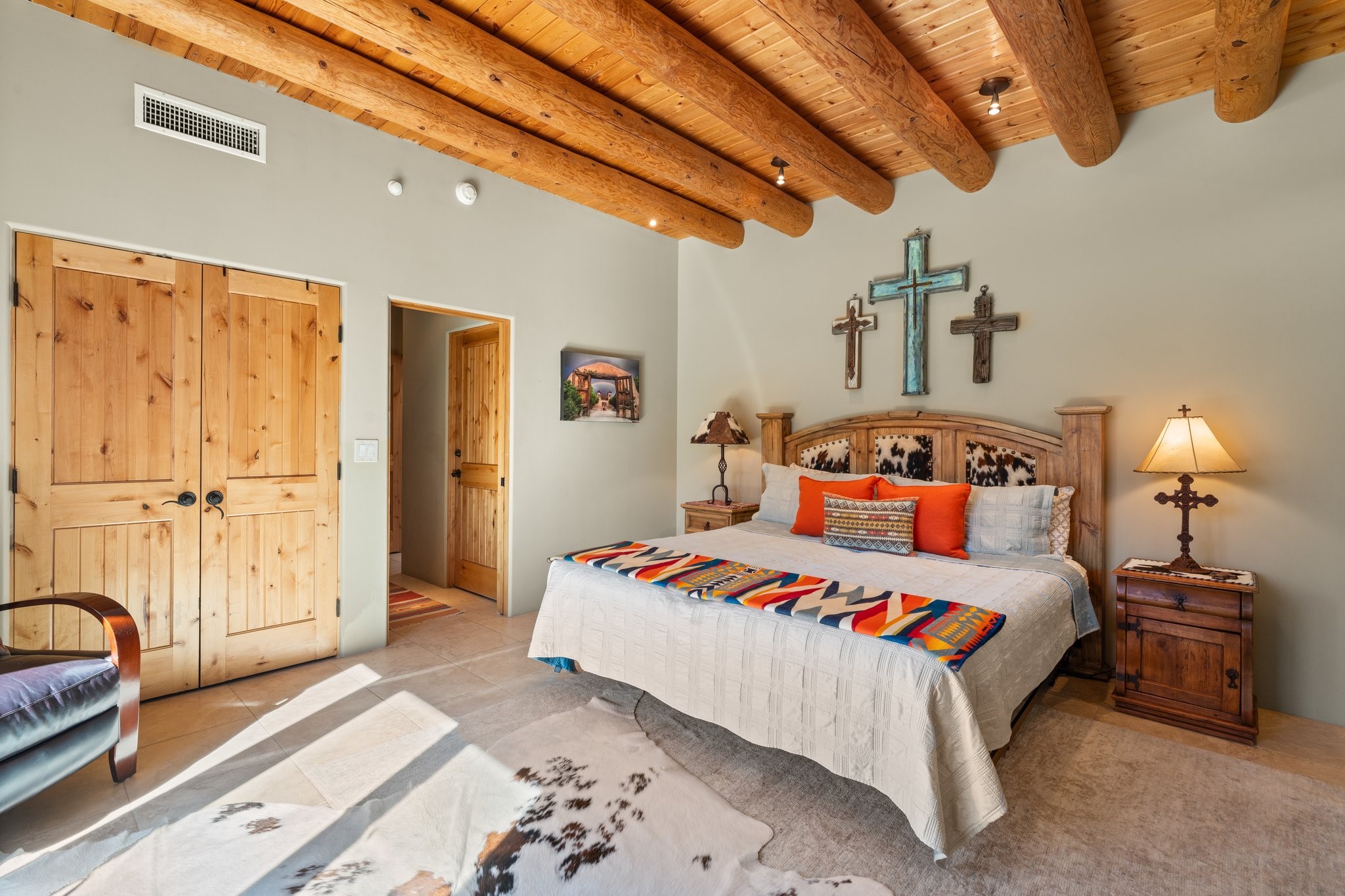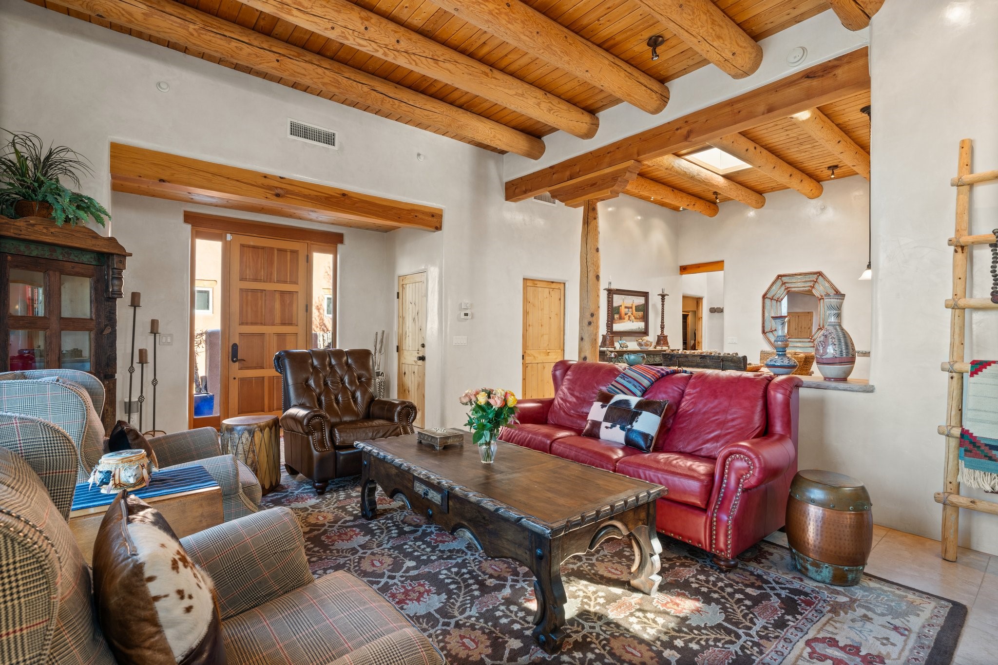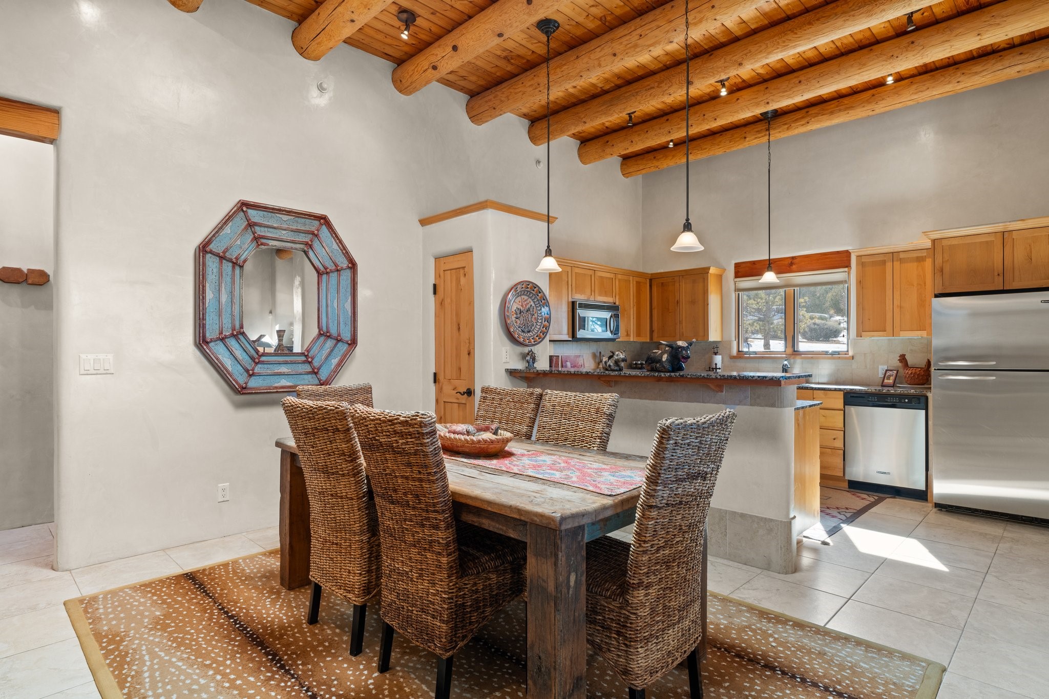 Experience breathtaking vistas of the Jemez mountains and stunning sunsets from this freestanding, 2 bedroom, 2 bath, single level villa. Just a few short minutes north of the historic Santa Fe Plaza, fine art galleries, museums, and world-class dining. Nestled at the base of the Sangre de Cristo Mountains in the exclusive Bishops Lodge Villas gated community, adjacent to the Santa Fe National Forest, offering abundant hiking, biking and walking trails and endless other four-season recreational activities. Featuring an open concept floor plan with high ceilings, traditional vigas, hand-troweled plaster walls, and central a/c, the villa includes two spacious suites, each with a kiva fireplace and private outdoor patio. One of the suites also has a steam shower and jetted tub. Meticulously maintained including new stucco and a 9-year roof warranty. Residents enjoy access to two shared villas pools and can make arrangements to utilize the unparalleled amenities of the world-renowned Bishops Lodge Resort by Auberge, making it an ideal retreat to entertain family and friends. Furnishings package is available.