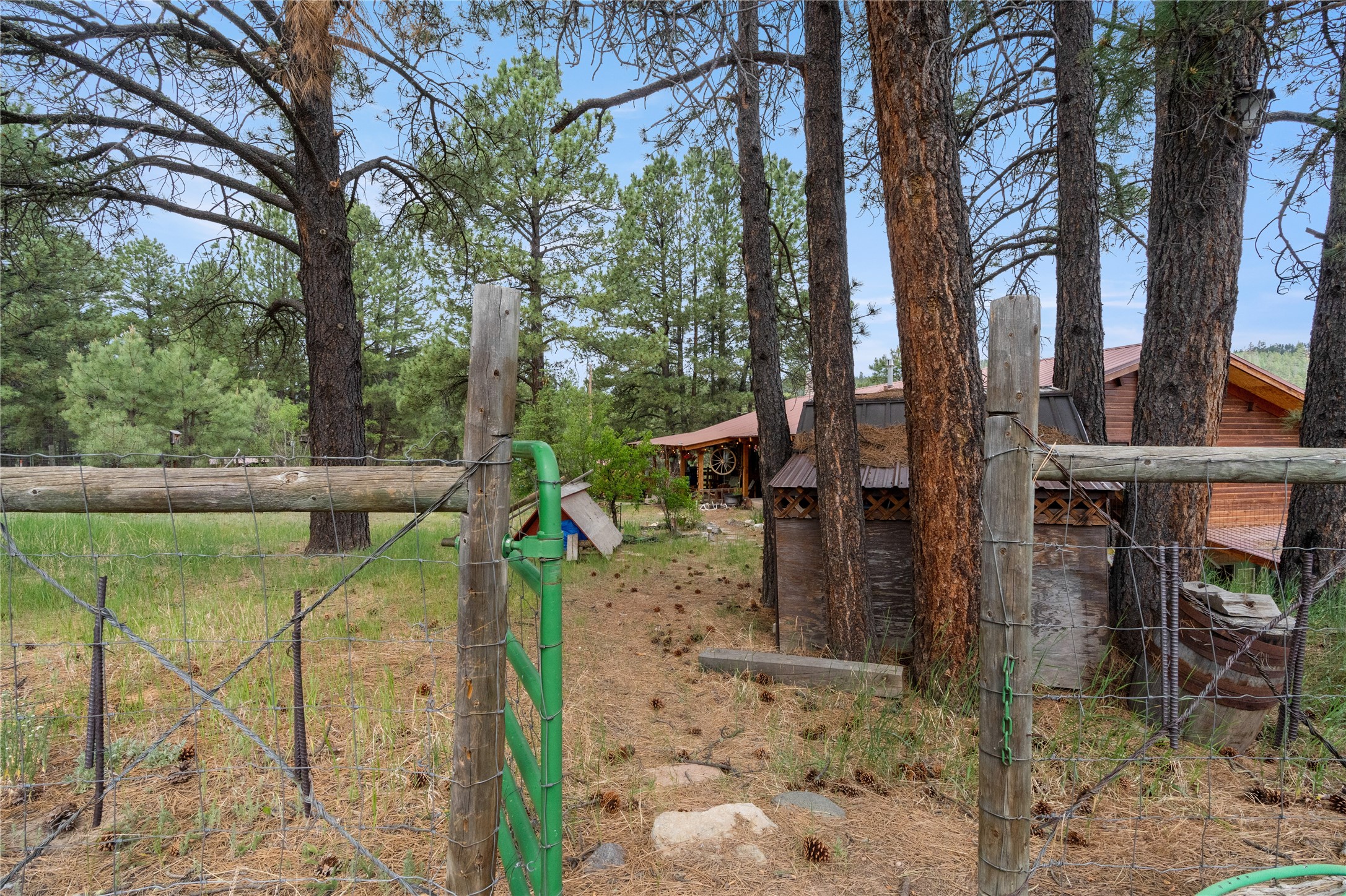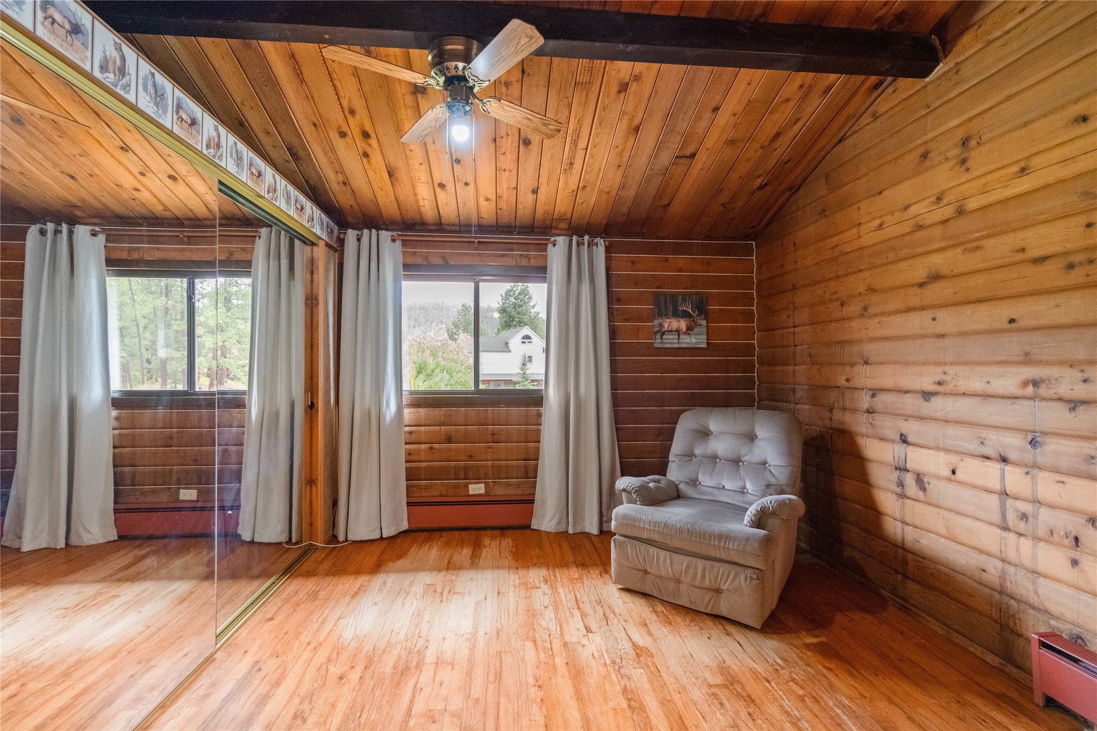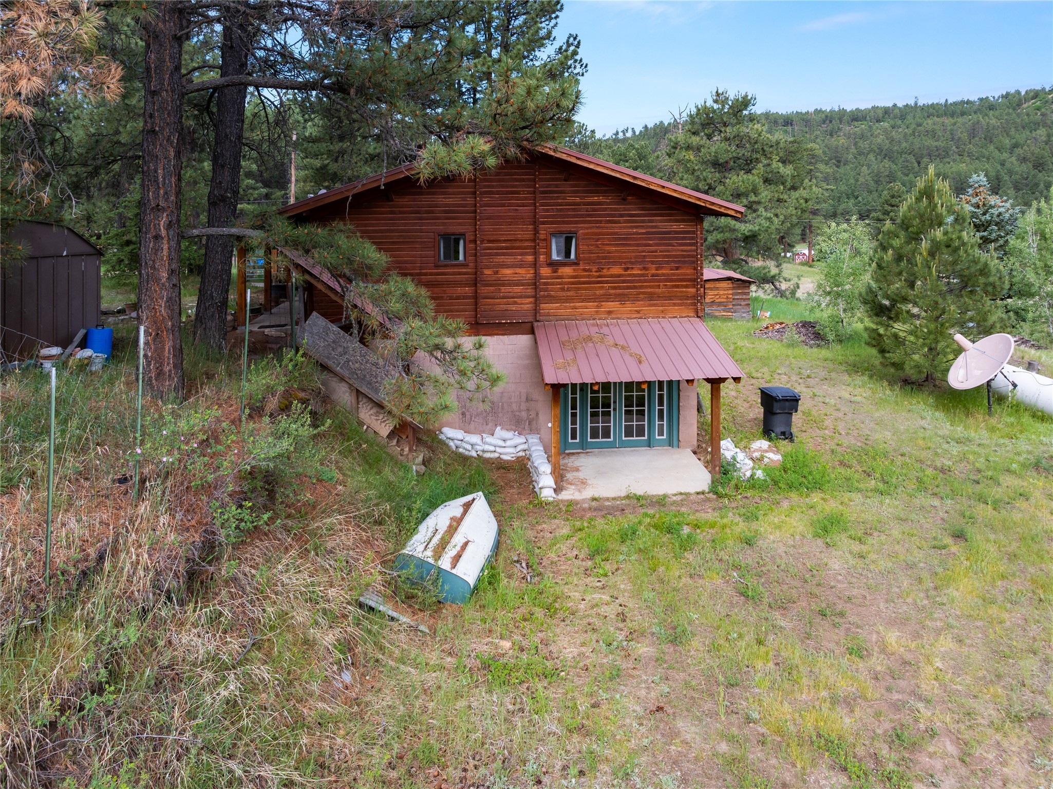 Lucky enough to live in the mountains...then you're lucky enough! This 2-bedroom, 1-bath 2,219 sq ft log cabin on 1.2 acres in La Cueva is the perfect spot! Originally a 3-bedroom, one room was opened up to expand the primary suite--but it could easily be converted back. The fabulous Panabode cabin with its interlocking log design blends modern living with traditional. From the wagon wheel-antler chandelier to the arched doorways & rustic warm interiors, the cedar tongue-&-groove cathedral wood ceiling, & the inviting rocking chair wrap-around covered porch, every detail enhances the home's irresistible charm! The spacious main bedroom is perfect to add in a cozy reading nook or office. Walk-out basement offers endless possibilities--finish it for extra bedrooms or a rec room or keep it as a workshop. You won't find a better location for a sweet weekend getaway or a full-time residence!