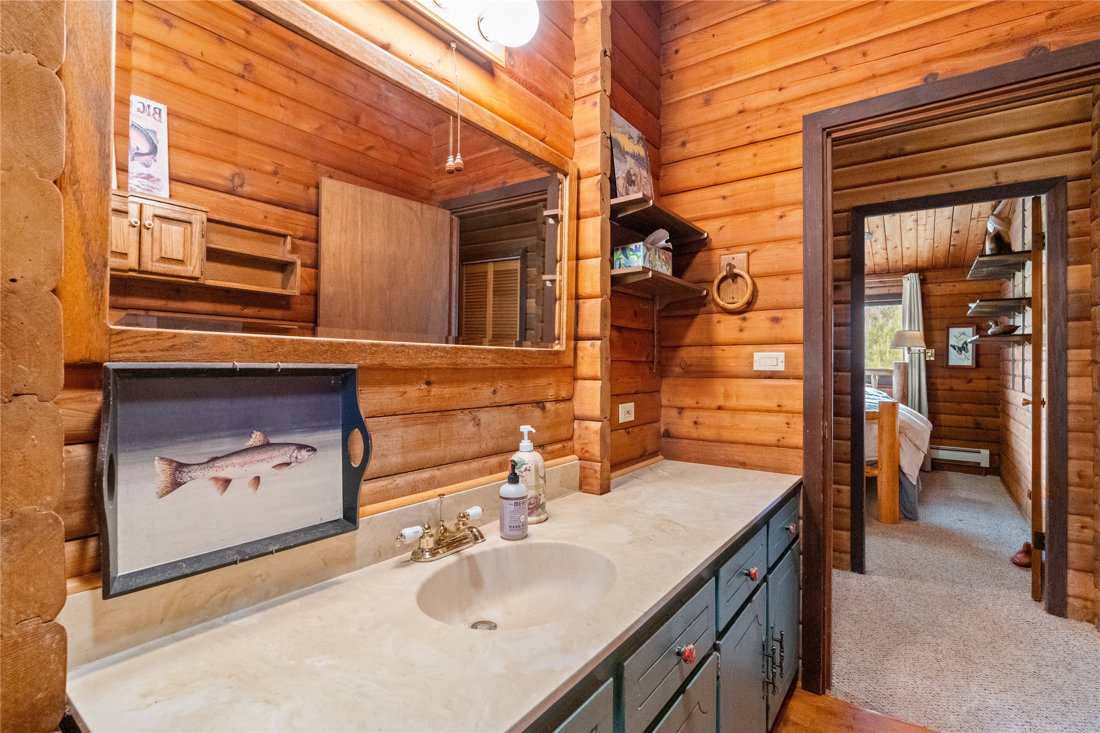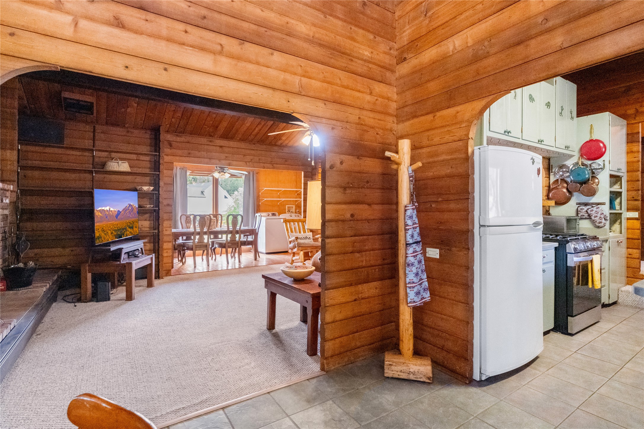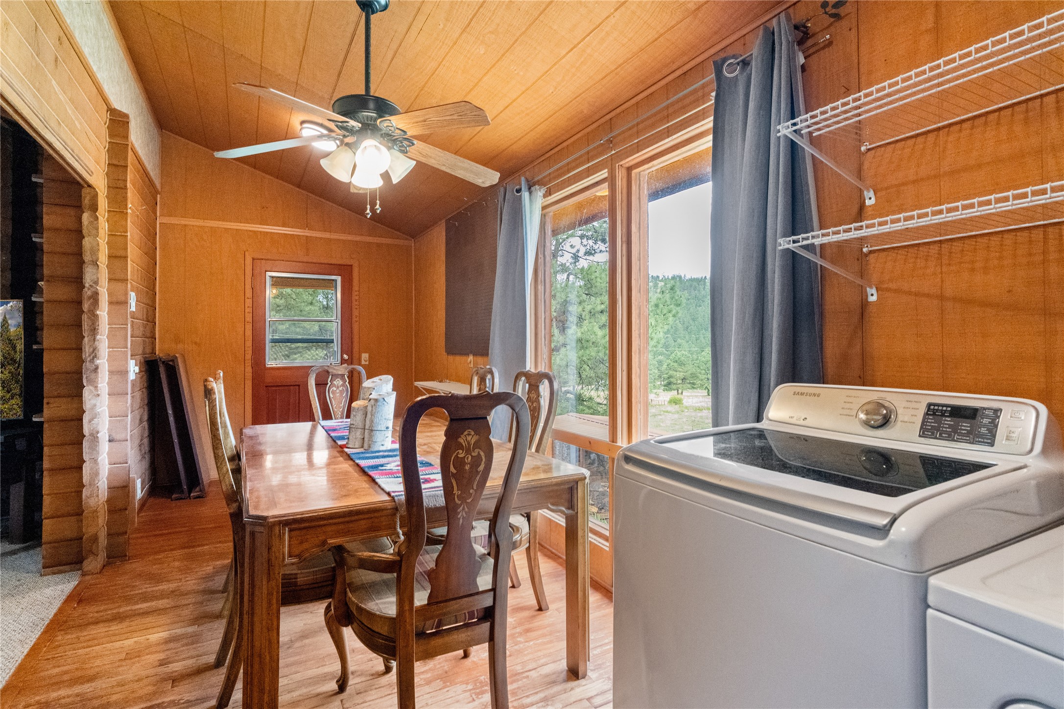 Lucky enough to live in the mountains...then you're lucky enough! This 2-bedroom, 1-bath 2,219 sq ft log cabin on 1.2 acres in La Cueva is the perfect spot! Originally a 3-bedroom, one room was opened up to expand the primary suite--but it could easily be converted back. The fabulous Panabode cabin with its interlocking log design blends modern living with traditional. From the wagon wheel-antler chandelier to the arched doorways & rustic warm interiors, the cedar tongue-&-groove cathedral wood ceiling, & the inviting rocking chair wrap-around covered porch, every detail enhances the home's irresistible charm! The spacious main bedroom is perfect to add in a cozy reading nook or office. Walk-out basement offers endless possibilities--finish it for extra bedrooms or a rec room or keep it as a workshop. You won't find a better location for a sweet weekend getaway or a full-time residence!