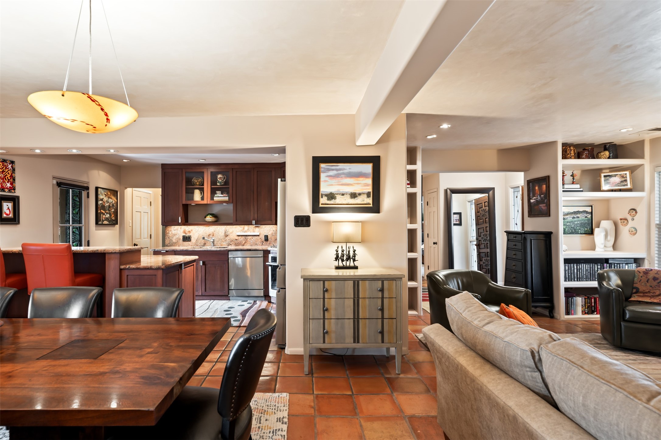 Welcome to this beautifully remodeled & meticulously maintained property featuring a 1,568-square-foot main home & a spacious 780-square-foot studio/casita. Recently re-stuccoed & there is a silicone roof upgrade with a warranty until 2027. This property offers style & peace of mind.The 3-bedroom, 2-bath main home is a delight. The kitchen is efficient--complete with stainless steel appliances, a gas stove, electric oven, pantry, and well designed pull-out drawers. Two completely updated bathrooms include luxe finishes such as Brazilian granite, a deep soaking tub with sliding glass doors, & a primary suite bath with granite counters, a generous glass-enclosed shower, & ample cabinet and closet space.Enjoy the Saltillo tile floors and the hand-troweled plaster ceilings. The living room features a cozy fireplace with an electric insert and flows into a lovely dining room with inset lighting and abundant natural light. The guest bedroom is inviting & well-appointed, while the third bedroom/office features built-in shelving for function & flexibility.Step outside to find front & back portals with handcrafted gates & light fixtures designed by artist Frank Seckler with lush landscaping--ideal for relaxing or entertaining. Don't miss the private hot tub between the main house & casita.The studio is a gem of its own--built with rastra construction, featuring radiant in-floor heat, stained concrete floors, a coved ceiling with vigas, hand-troweled plaster walls, a bathroom, & great natural light. It's equipped with its own septic, boiler, water heater, and a window A/C unit. With forced air heat & refrigerated A/C in the main house, as well as a generator which activates, should the power go out. Every detail is cared for in this truly exceptional property--beautiful, functional, & ready to enjoy. Eldorado has a Community Center, pool, tennis, pickle ball, playgrounds, miles of trails & a large nature preserveThis is an opportunity you don't want to miss!