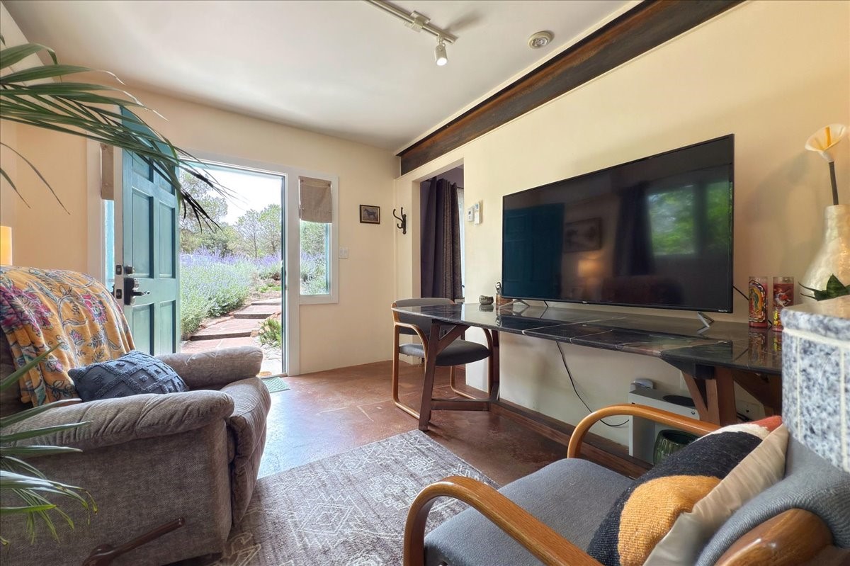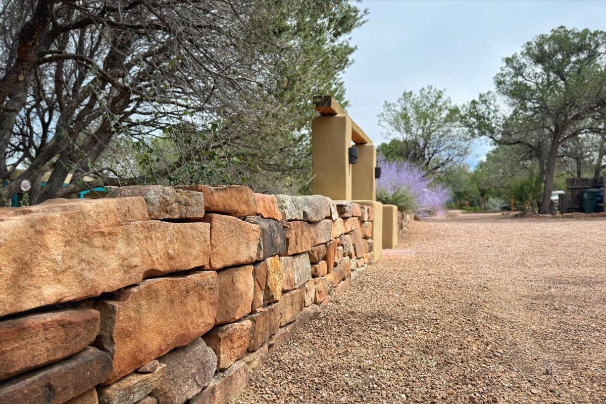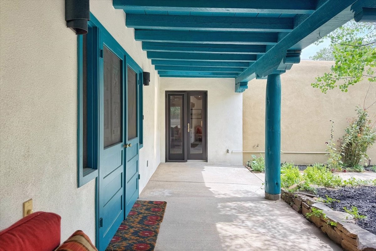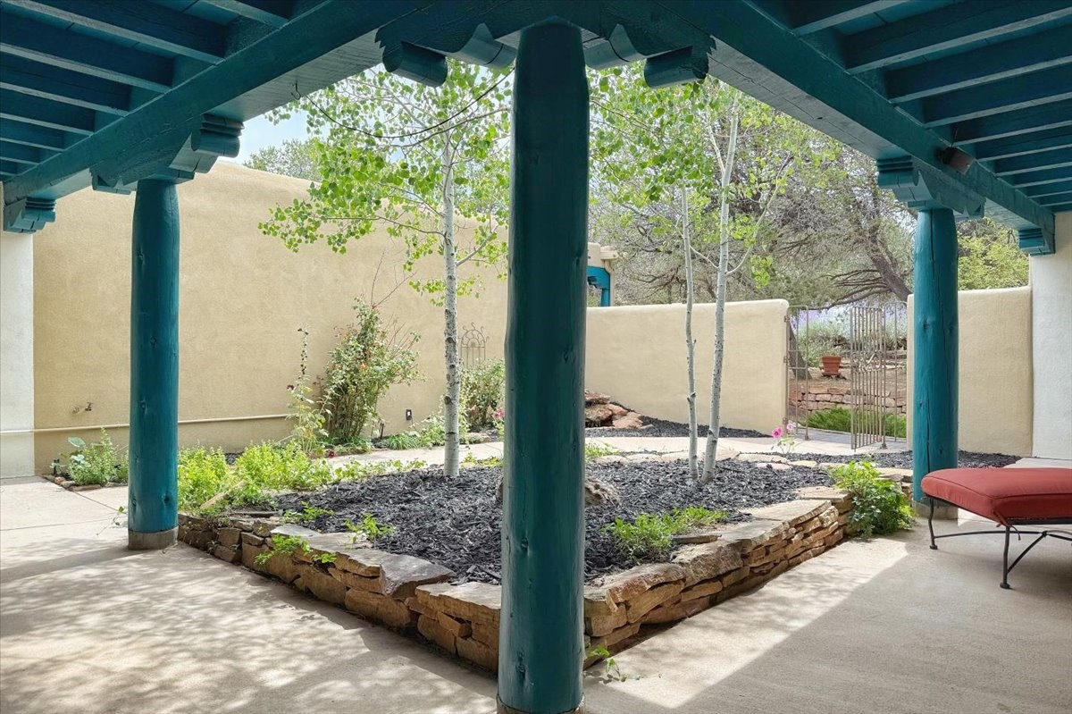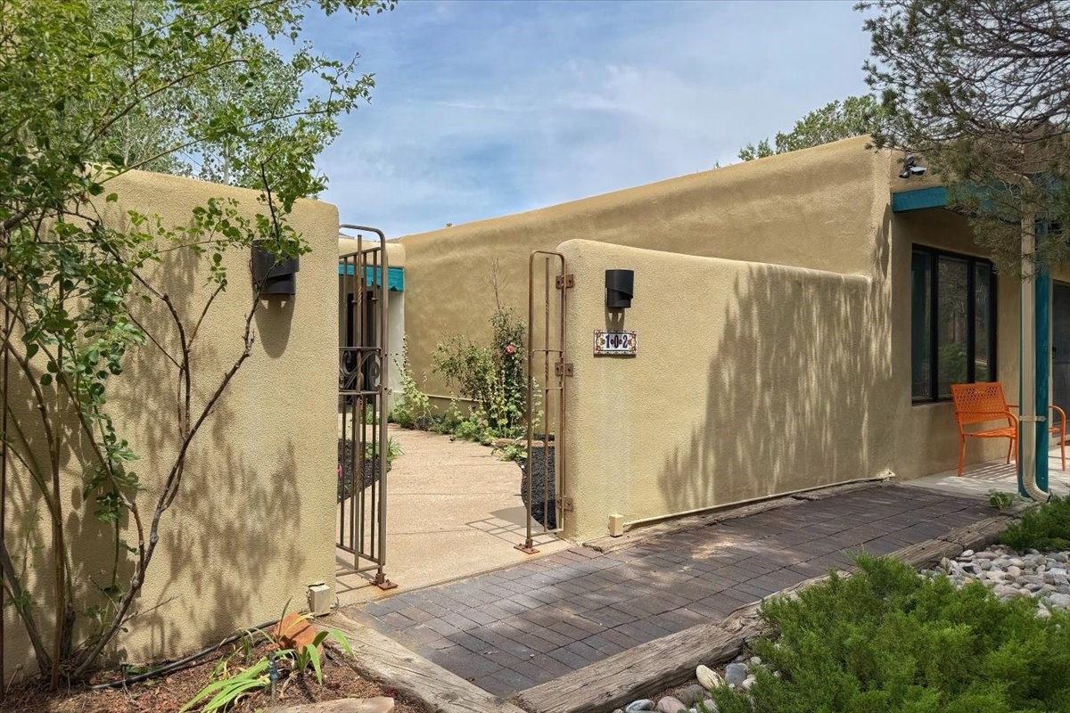 Tucked away in the highly sought-after Sol Y Lomas neighborhood, this peaceful property with mature landscaping on over an acre of land with a fenced-in backyard offers flexible living, exceptional privacy, and a sense of serenity--minutes from the Plaza, restaurants, and I-25.The 3 bed / 2.5 bath main house features a spacious living room with a fireplace and an excellent view of old-growth trees in your fenced-in backyard, an additional sitting room or lounge off the kitchen, and a generous primary suite with a large walk-in closet, soaking tub, and private patio. Nearly every window offers beautiful views of mature trees, giving the home a tranquil, retreat-like feel.Ideal for multigenerational living, rental income, or a home office, the 1 bed / 1 bath casita, with a separate entrance, includes its own washer and dryer, kitchenette, and sits adjacent to a charming courtyard framed by aspens. There is also a separate studio/flex space/arts and crafts room in the back of the main home with its own entrance. And a storage shed! Entertain with ease both indoors and out--whether you're gathering in the inviting living spaces or unwinding in one of the many outdoor areas perfect for gardening, dining, or soaking in the natural beauty. Additional features include a newer all-in-one on-demand hot water heater and boiler(c. 2023), new lighting in the kitchen and primary bedroom walk-in closet. An unbeatable location on a dead-end street just off Old Pecos Trail with quick access to all that Santa Fe has to offer such as Canyon Road, the Historic Plaza, Fine Dining, World-Class Galleries, Museum Hill, and so much more.