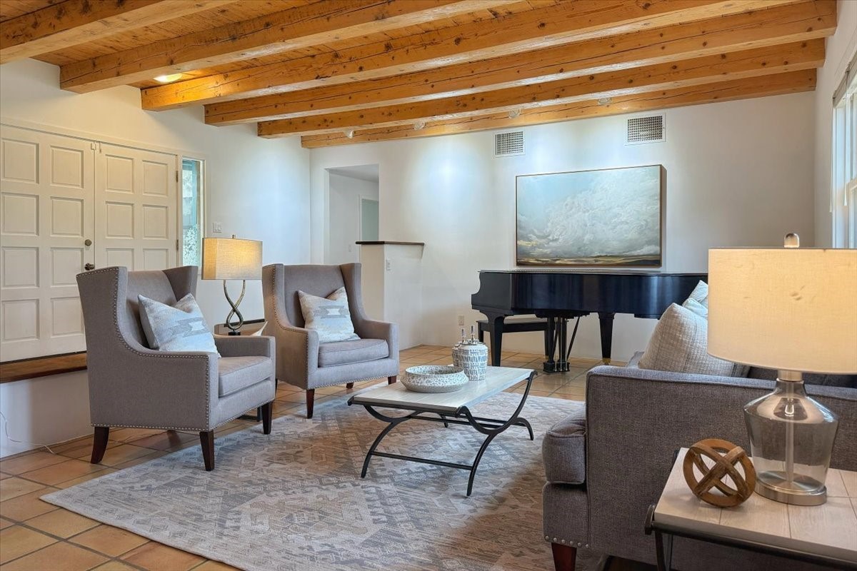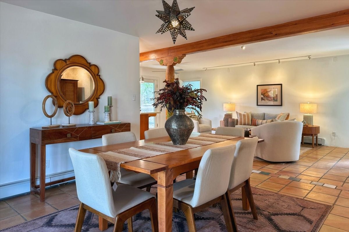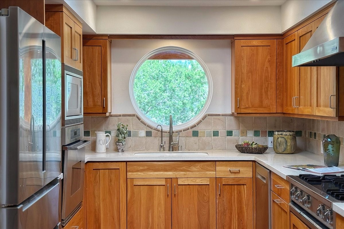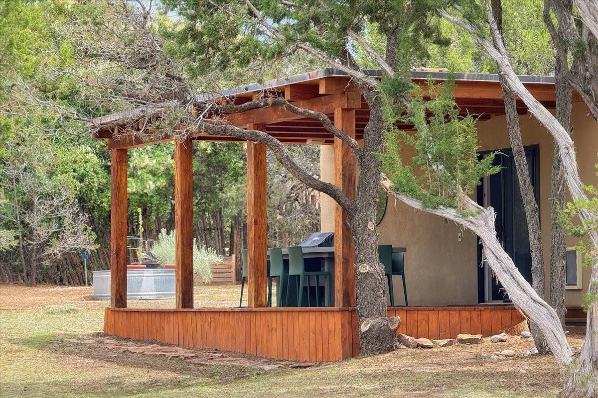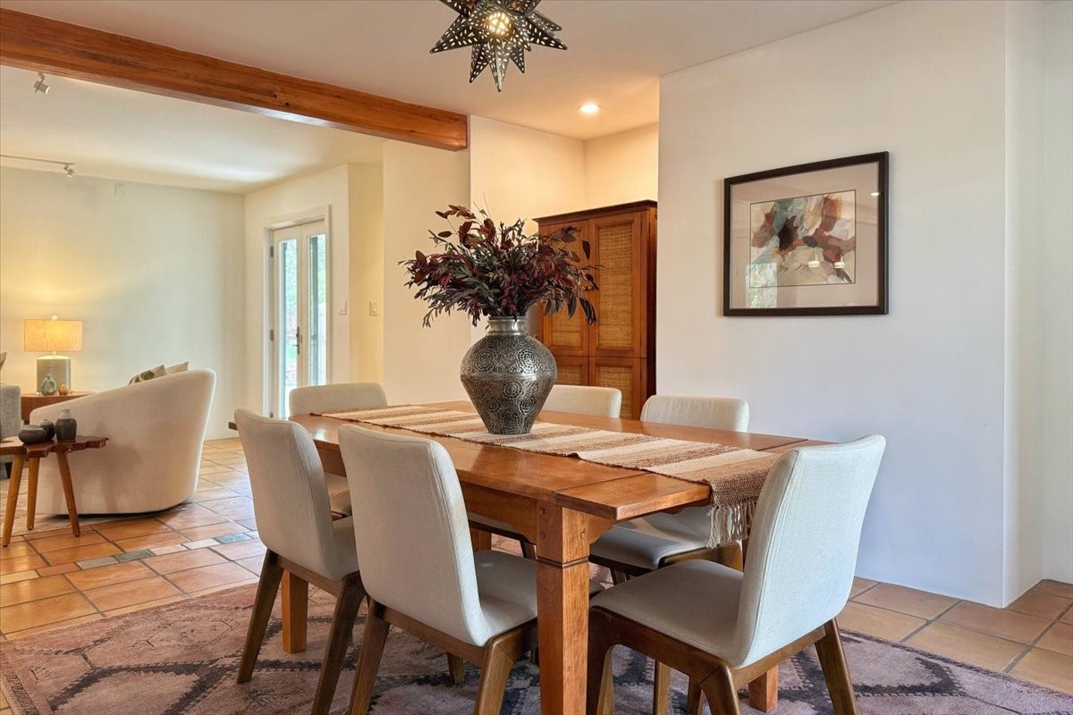 Tucked away in the highly sought-after Sol Y Lomas neighborhood, this peaceful property with mature landscaping on over an acre of land with a fenced-in backyard offers flexible living, exceptional privacy, and a sense of serenity--minutes from the Plaza, restaurants, and I-25.The 3 bed / 2.5 bath main house features a spacious living room with a fireplace and an excellent view of old-growth trees in your fenced-in backyard, an additional sitting room or lounge off the kitchen, and a generous primary suite with a large walk-in closet, soaking tub, and private patio. Nearly every window offers beautiful views of mature trees, giving the home a tranquil, retreat-like feel.Ideal for multigenerational living, rental income, or a home office, the 1 bed / 1 bath casita, with a separate entrance, includes its own washer and dryer, kitchenette, and sits adjacent to a charming courtyard framed by aspens. There is also a separate studio/flex space/arts and crafts room in the back of the main home with its own entrance. And a storage shed! Entertain with ease both indoors and out--whether you're gathering in the inviting living spaces or unwinding in one of the many outdoor areas perfect for gardening, dining, or soaking in the natural beauty. Additional features include a newer all-in-one on-demand hot water heater and boiler(c. 2023), new lighting in the kitchen and primary bedroom walk-in closet. An unbeatable location on a dead-end street just off Old Pecos Trail with quick access to all that Santa Fe has to offer such as Canyon Road, the Historic Plaza, Fine Dining, World-Class Galleries, Museum Hill, and so much more.