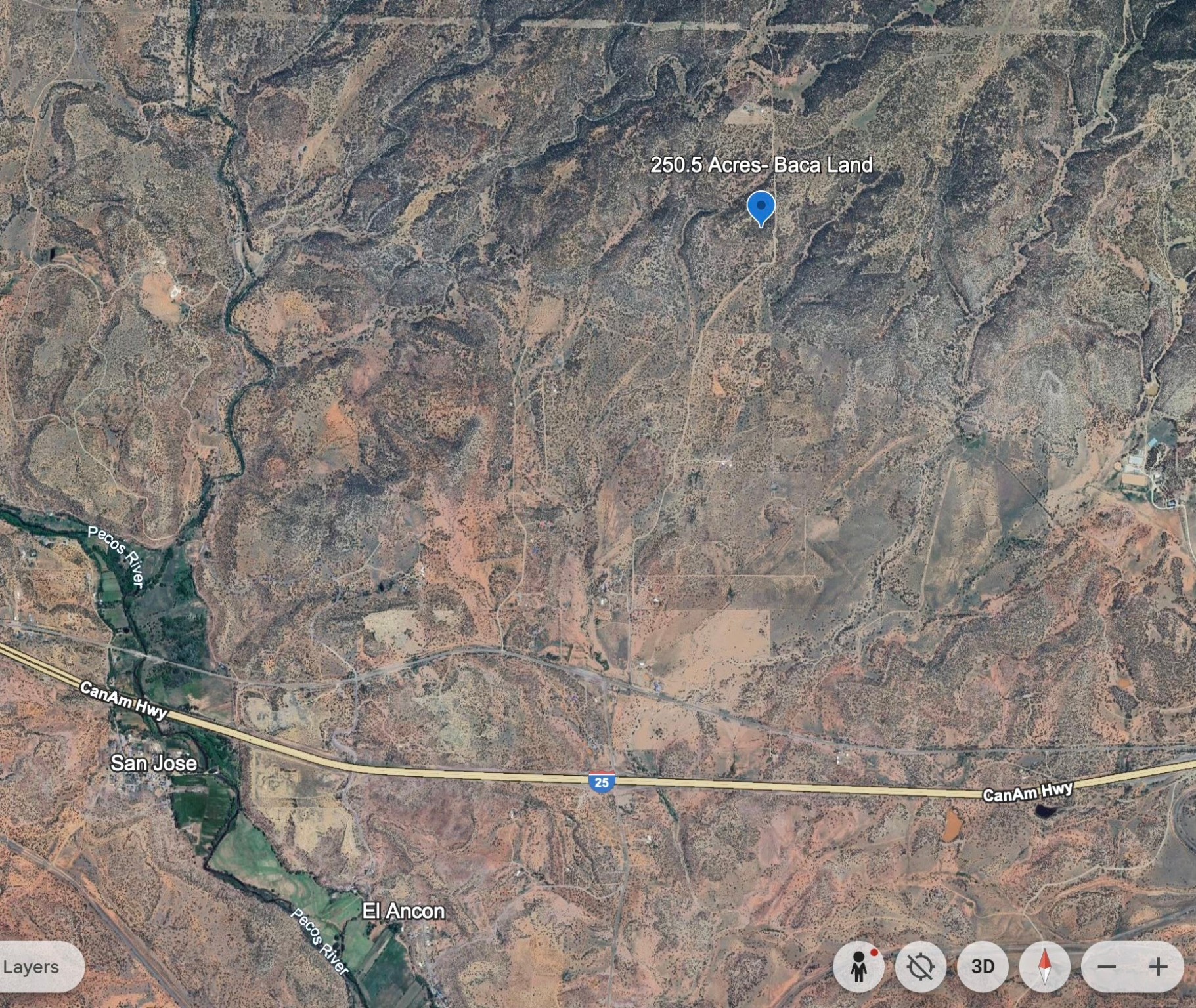 250.5 acres near San Jose, NMhttps://earth.google.com/web/@35.42540986,-105.43661633,1991.70456683a,399.04145041d,35y,0h,0t,0r/data=CgRCAggBMikKJwolCiExNDJTVmpOeVBscGxobDJGbDducmdZMHh2VlJWVjJwTWcgAToDCgEwQgIIAEoICKWHntwDEAE
