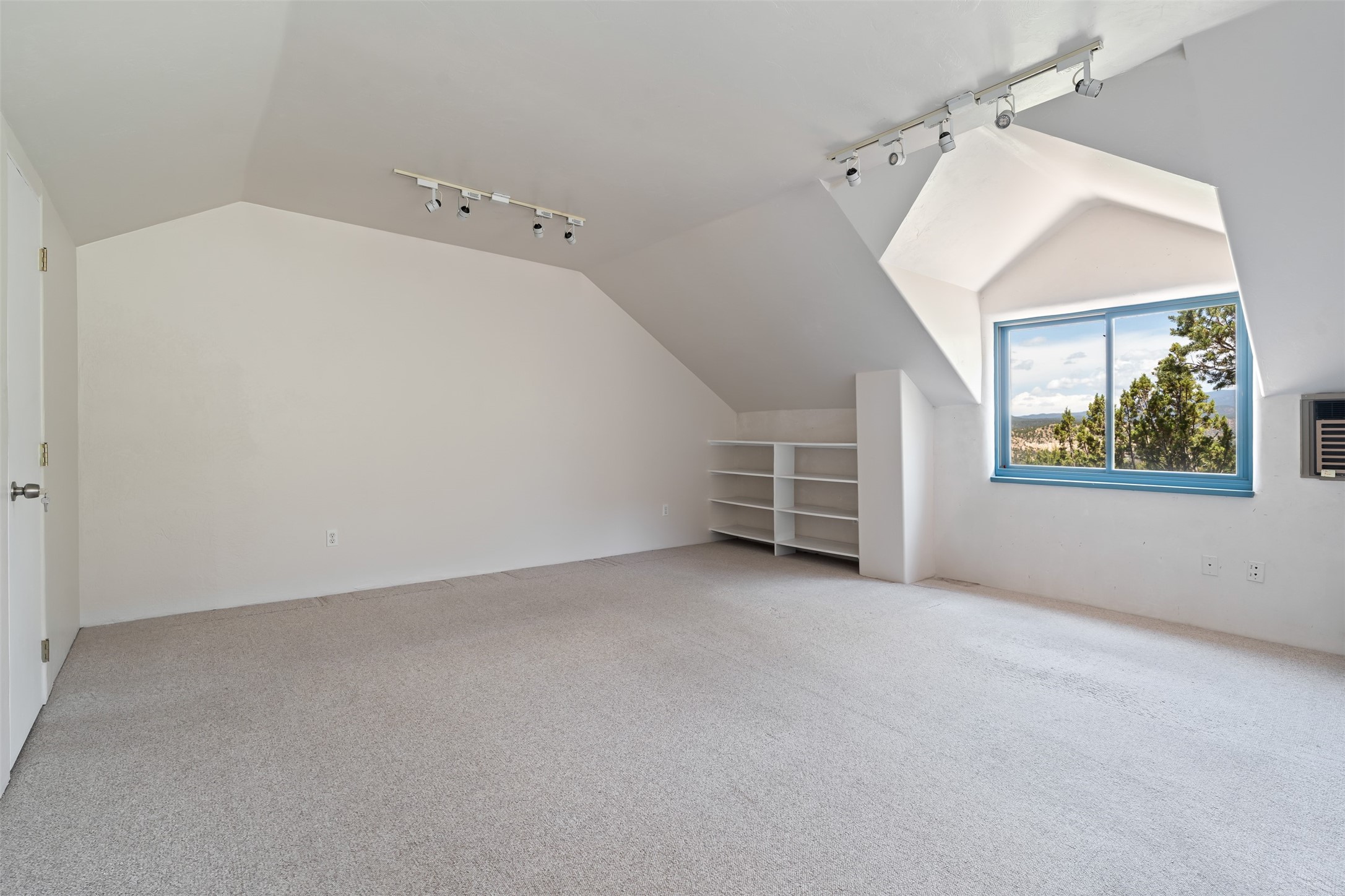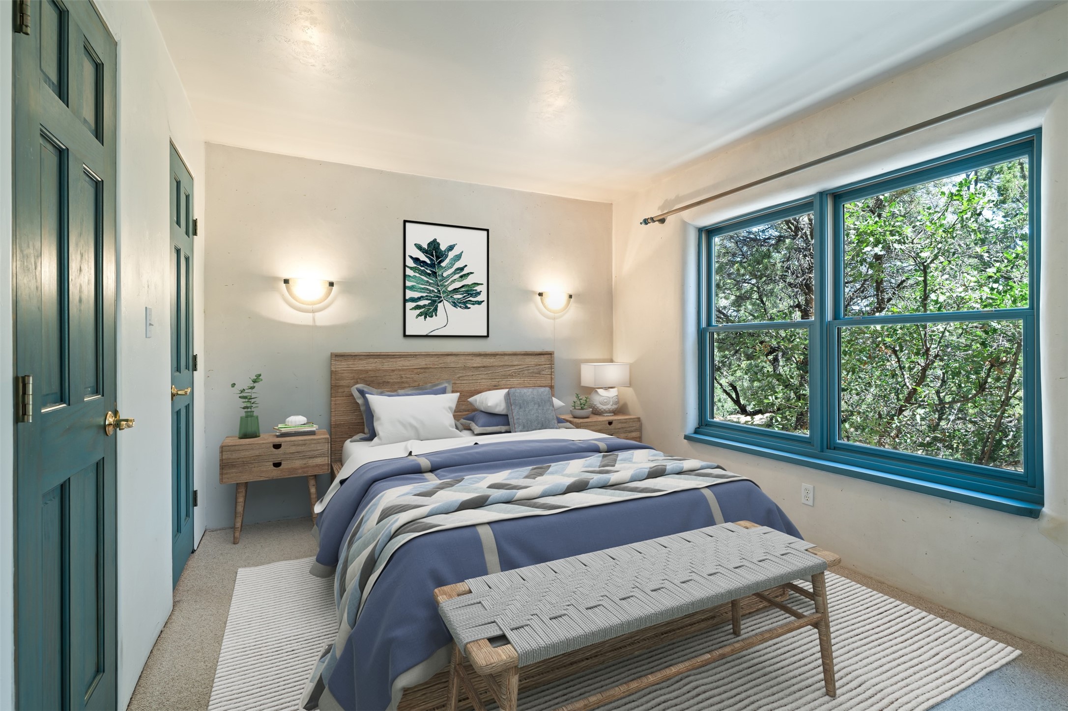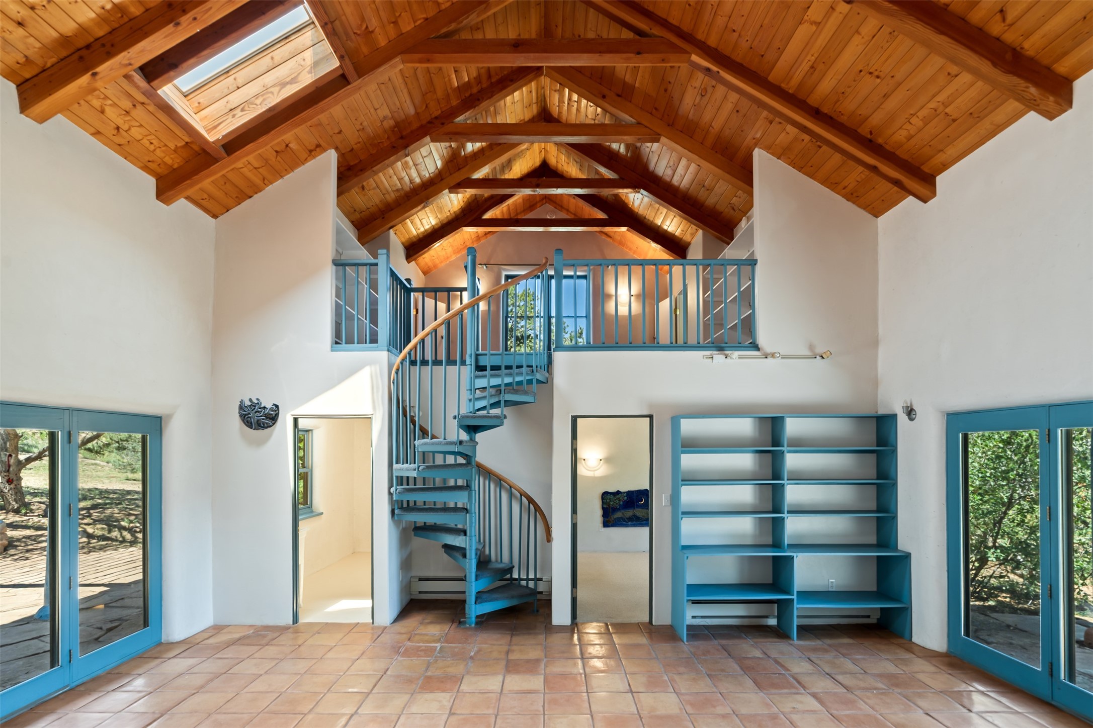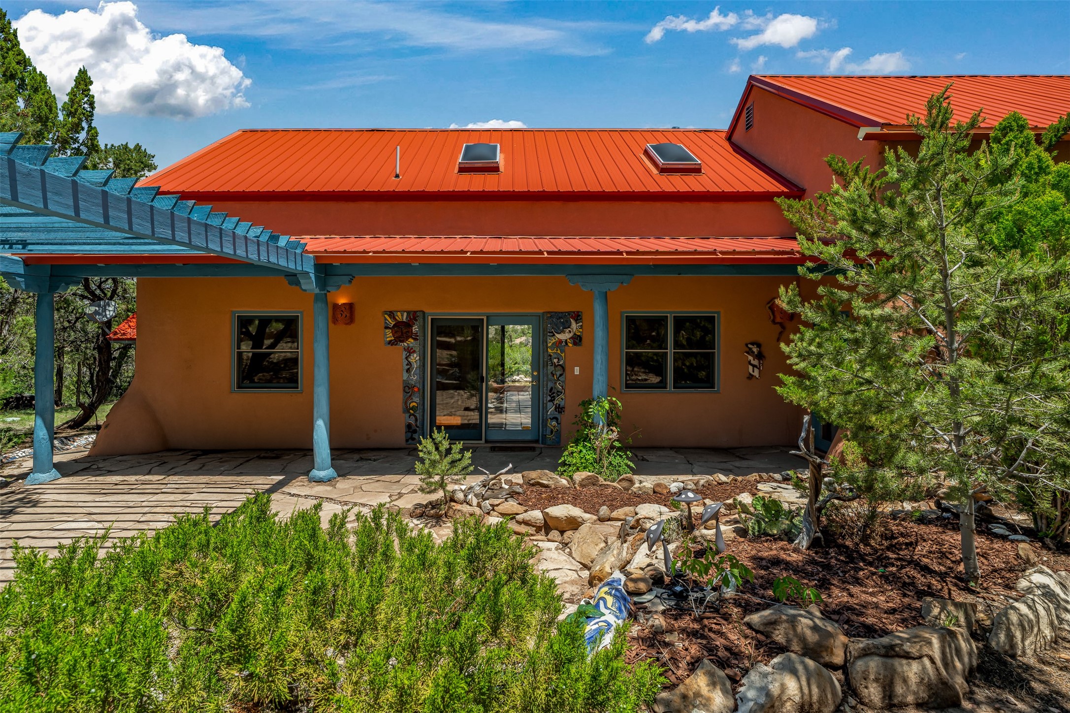 Nestled in the serene hills of Caoncito, this 3-bed, 2-bath Rastra home sits on 5.99 private wooded acres with a thriving koi pond, private well, and sweeping Sangre de Cristo views -- offering a rare value-add opportunity.Owner-built and on the market for the first time since 1998, this home blends craftsmanship and artistic detail throughout. Soaring ceilings, a striking fireplace, and expansive windows define the main living space, while a lofted study/library offers a quiet retreat. The home was intentionally designed to be divided into two living areas, with pre-installed utility connections ready to support the setup.A workroom with slop sink, two storage sheds -- including one with an electrical backup generator -- add functionality. With a new septic system recently installed and an updated well system, this property offers a strong infrastructure base to build upon.Just 10 minutes to Eldorado and 25 to downtown Santa Fe, with nearby trails and 100 mbps internet available. A peaceful retreat and a rare chance to add real value.