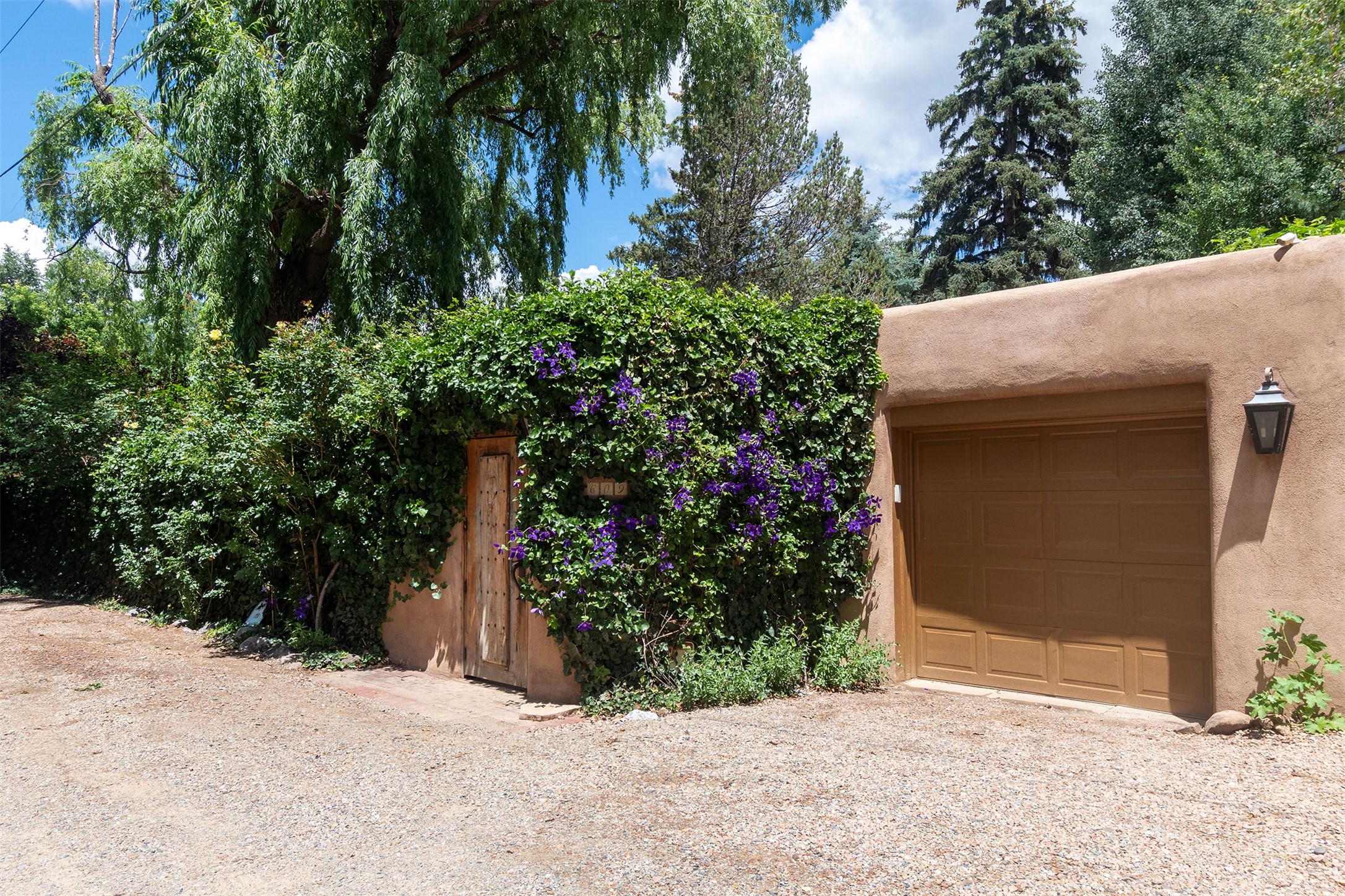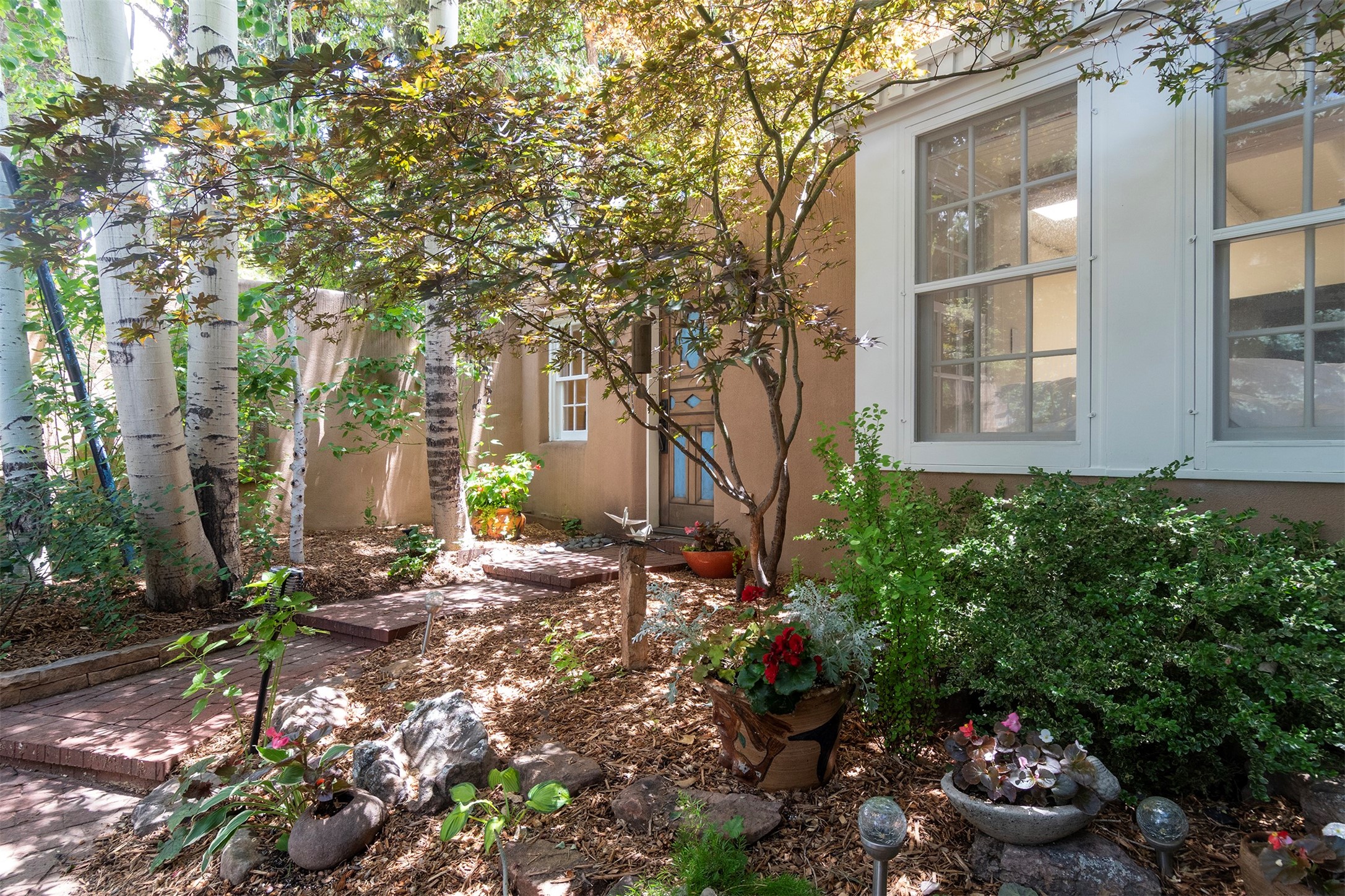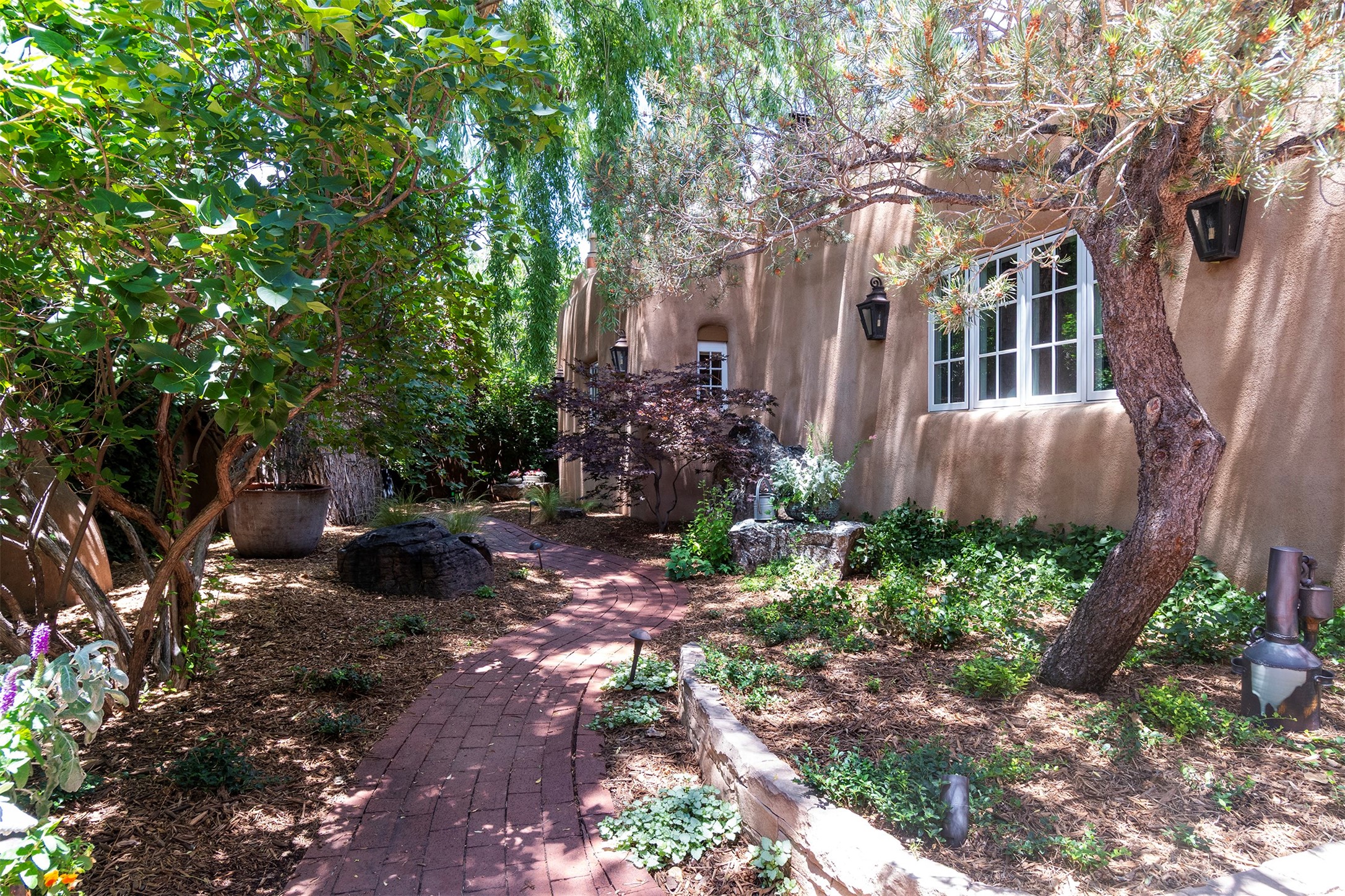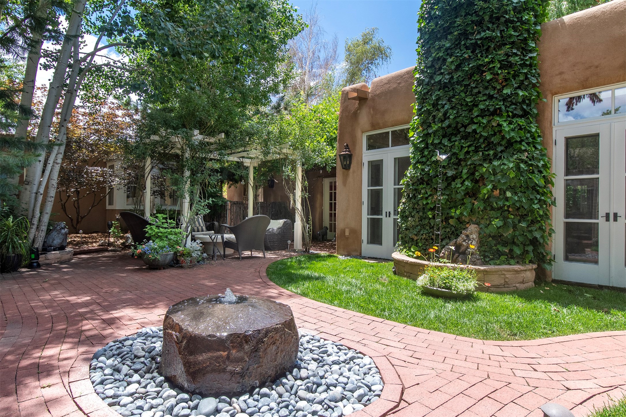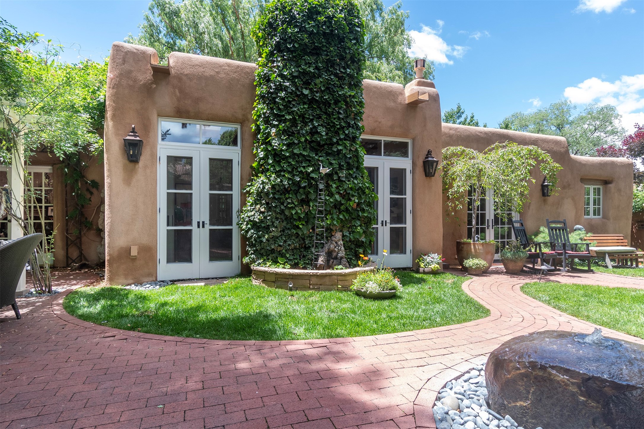 3 BED, 3 BATH ADOBE CASA W/ GUEST CASITA | 2,699 SQFT | 1 CARG | HISTORIC EASTSIDE -As Santa Fe authentic as it gets! Award winning Prull Construction & Hoopes Architects Historic 'Remodel of the Year 2015' with finishes brought to life by David Naylor Interiors. Be transported through the vine wrapped oldworld iron tacked door into a secret garden behind private adobe walls, off the famous 'Street of Souls.' Enter the welcoming foyer and into the Double Parlor with gracious Living and Drawing Rooms, featuring Vigas, Beams, Skylights, Original Restored Hardwood Floors, Diamond FinishedHard Troweled Plaster, & Solid Core Doors. Beautiful Mullion Windows & French Doors let in the bounty of the garden. This 2 Bedroom 2 Bath Adobe Home with 1 Bed, 1 Bath Guest Casita is surrounded by history, and is lovingly restored and updated for the most comfortable of pied-a-terre living.Near the Plaza, Canyon Road, and Museum Hill, and a gentle walk or ride to Kaunes, Downtown Subscription, or local shops and restaurants. The completely enclosed yard has anenchantingwrap-around garden including 2 wonderful fountains, a rose trellised pergola perfect for lounging or eating al fresco, mature landscaping with multiplevarietals, 100 year old growth trees, and lovely pathwaysand respites. The Cooks Kitchen is wonderfully appointed and boasts a Breakfast Nook & Central Island seating, Wolf Gas Range, Dual Wolf Ovens, Subzero Refrigerator, Quartzite Countertops, Solid Wood Soft Close Cabinetry, Dual Dishwashers, and a Countertop Kiva Fireplace.A Formal Dining Room enhances daily meals as well as entertaining. Chic Ancient meets Modern bathrooms are given rich character with beautiful ChocolateWalnut Travertine Tile, Petroglyphinspired inset designs, Beautiful Faux Bois Bronze Hardware, Robern Illuminating Medicine cabinets and great storage. Painted decorative Peasco Streebe doors pepper the home, amplifying the cultural richness of this classic adobe pueblo with a twist.