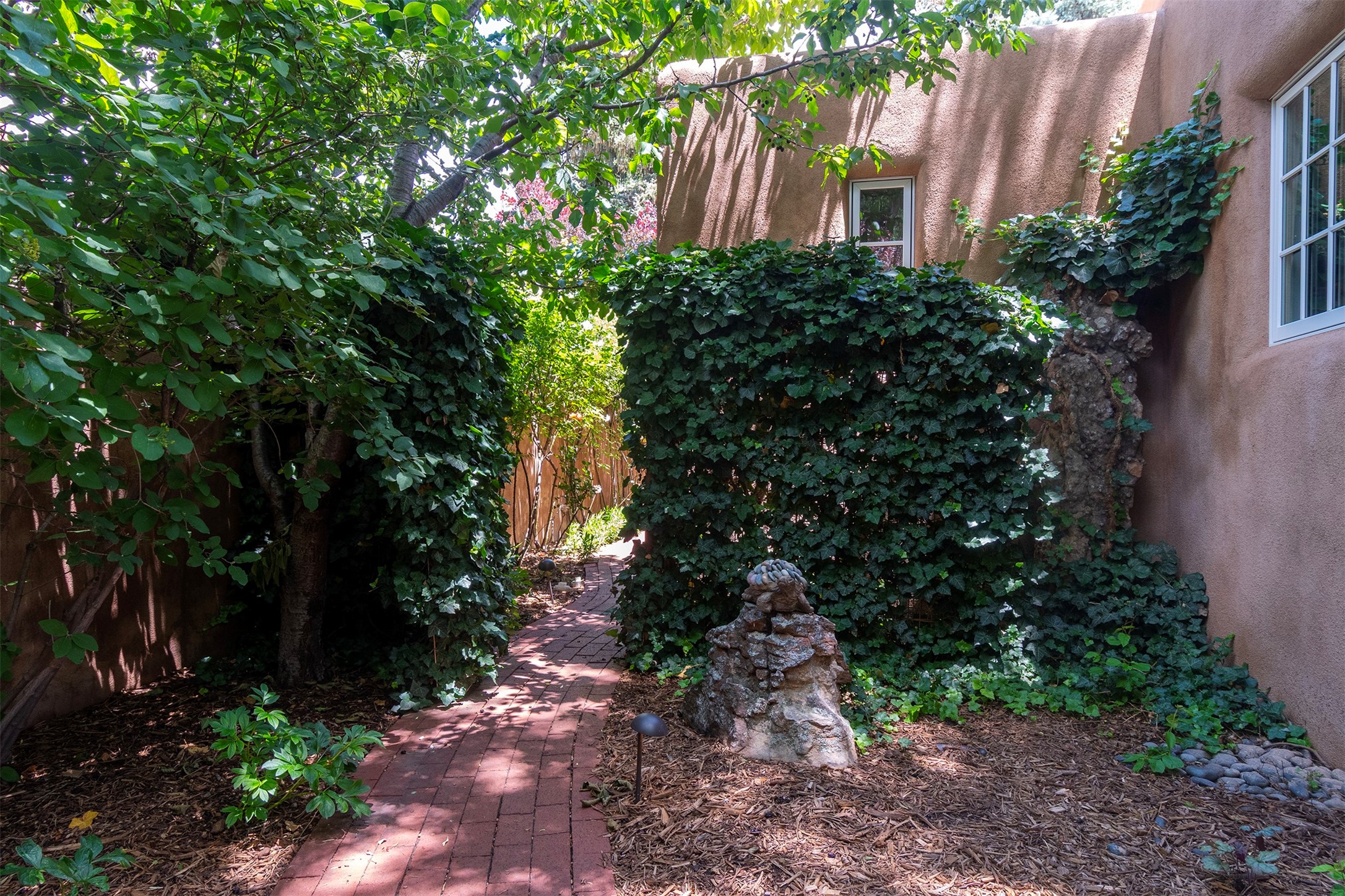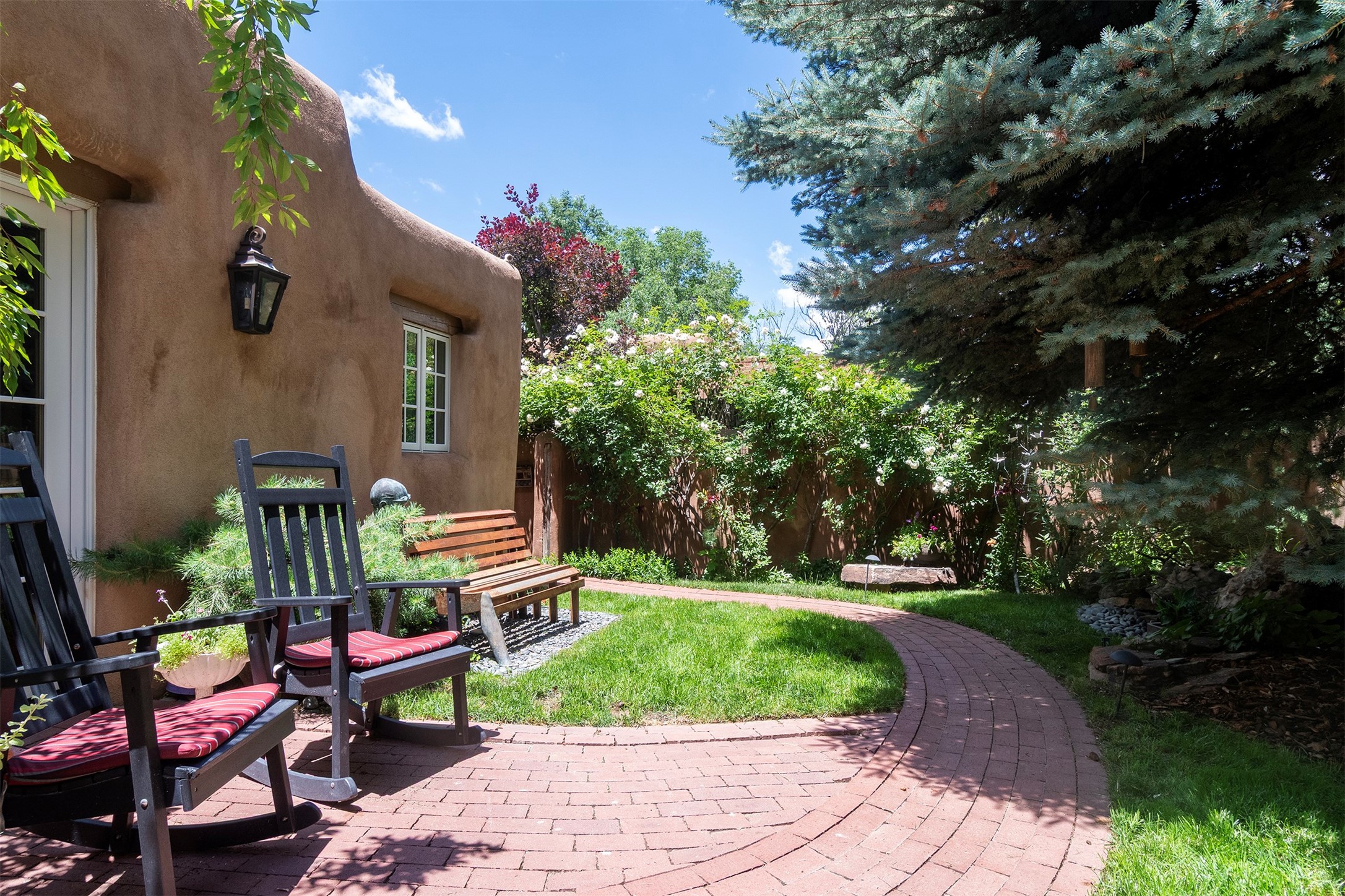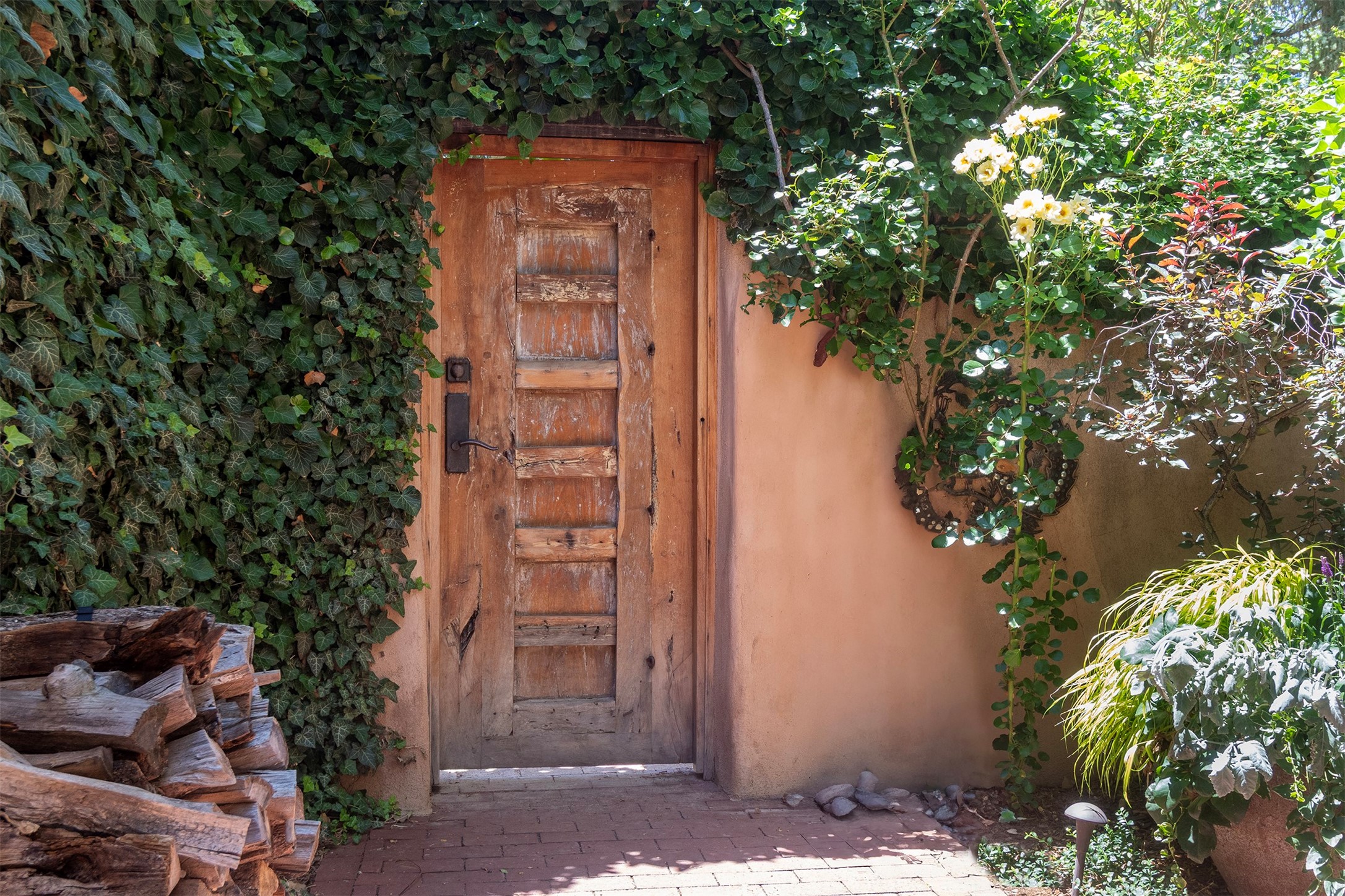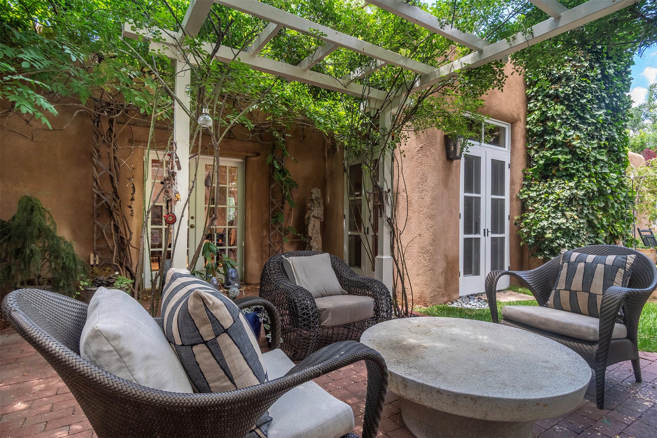 3 BED, 3 BATH ADOBE CASA W/ GUEST CASITA | 2,699 SQFT | 1 CARG | HISTORIC EASTSIDE -As Santa Fe authentic as it gets! Award winning Prull Construction & Hoopes Architects Historic 'Remodel of the Year 2015' with finishes brought to life by David Naylor Interiors. Be transported through the vine wrapped oldworld iron tacked door into a secret garden behind private adobe walls, off the famous 'Street of Souls.' Enter the welcoming foyer and into the Double Parlor with gracious Living and Drawing Rooms, featuring Vigas, Beams, Skylights, Original Restored Hardwood Floors, Diamond FinishedHard Troweled Plaster, & Solid Core Doors. Beautiful Mullion Windows & French Doors let in the bounty of the garden. This 2 Bedroom 2 Bath Adobe Home with 1 Bed, 1 Bath Guest Casita is surrounded by history, and is lovingly restored and updated for the most comfortable of pied-a-terre living.Near the Plaza, Canyon Road, and Museum Hill, and a gentle walk or ride to Kaunes, Downtown Subscription, or local shops and restaurants. The completely enclosed yard has anenchantingwrap-around garden including 2 wonderful fountains, a rose trellised pergola perfect for lounging or eating al fresco, mature landscaping with multiplevarietals, 100 year old growth trees, and lovely pathwaysand respites. The Cooks Kitchen is wonderfully appointed and boasts a Breakfast Nook & Central Island seating, Wolf Gas Range, Dual Wolf Ovens, Subzero Refrigerator, Quartzite Countertops, Solid Wood Soft Close Cabinetry, Dual Dishwashers, and a Countertop Kiva Fireplace.A Formal Dining Room enhances daily meals as well as entertaining. Chic Ancient meets Modern bathrooms are given rich character with beautiful ChocolateWalnut Travertine Tile, Petroglyphinspired inset designs, Beautiful Faux Bois Bronze Hardware, Robern Illuminating Medicine cabinets and great storage. Painted decorative Peasco Streebe doors pepper the home, amplifying the cultural richness of this classic adobe pueblo with a twist.