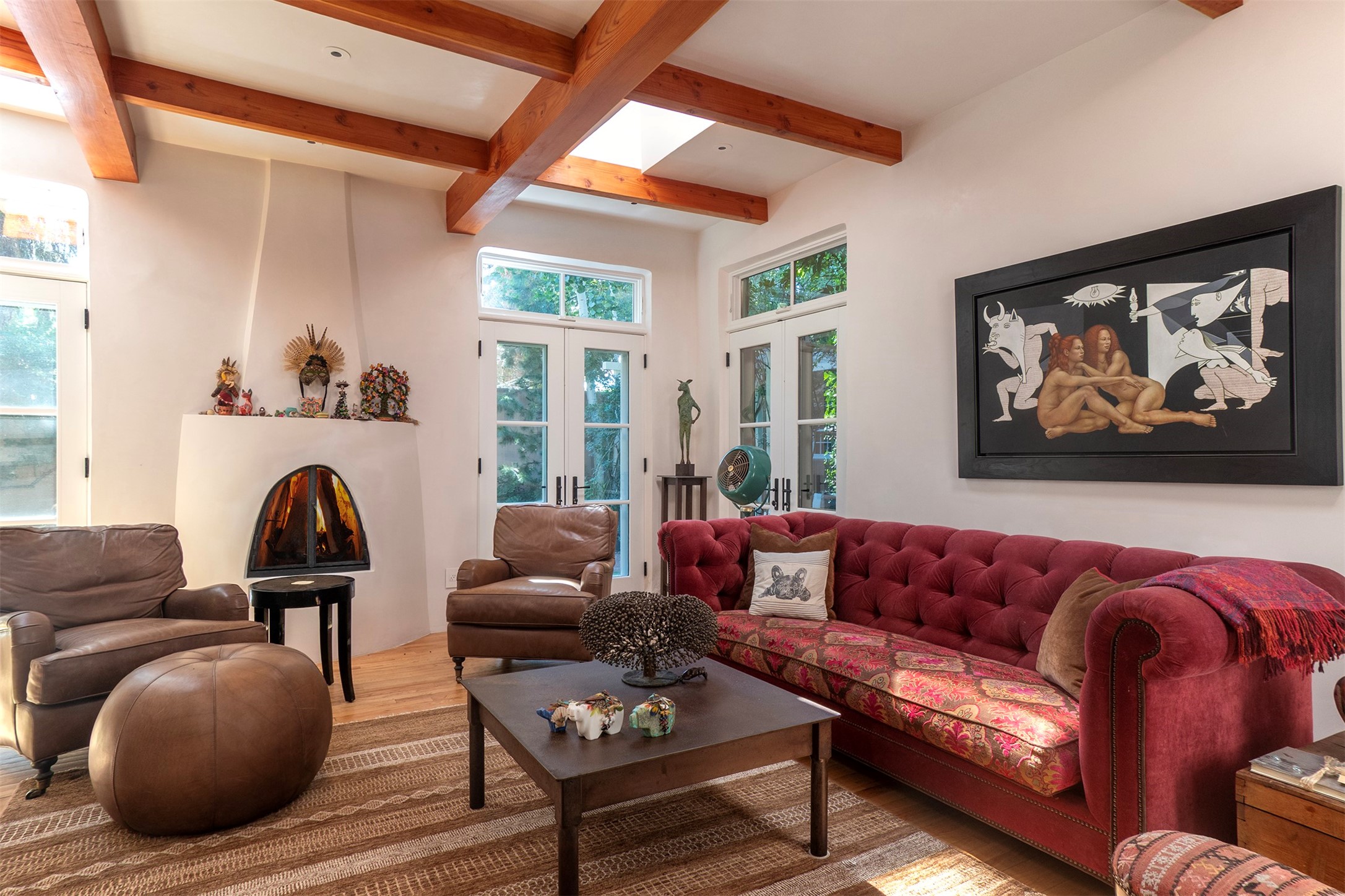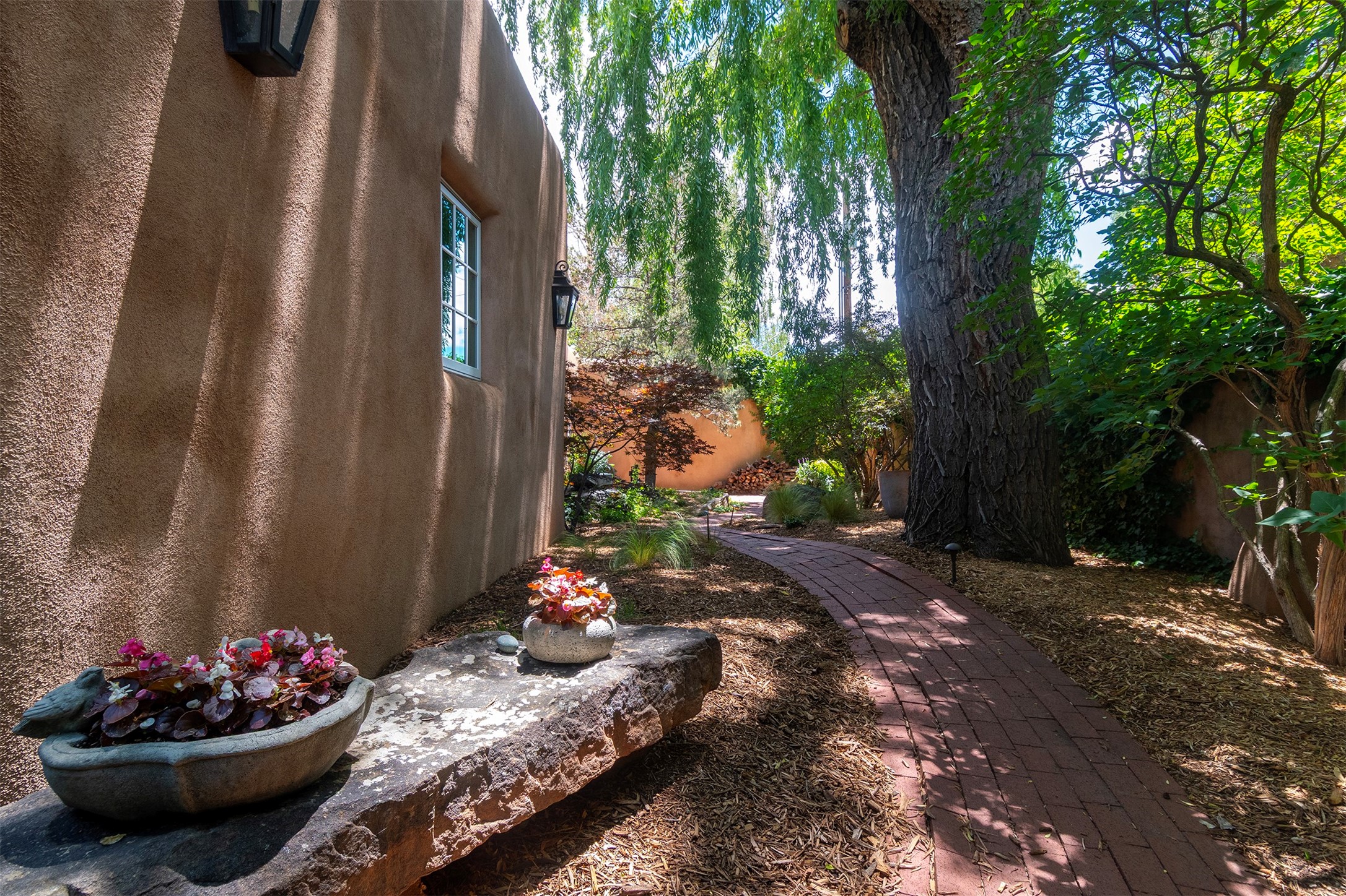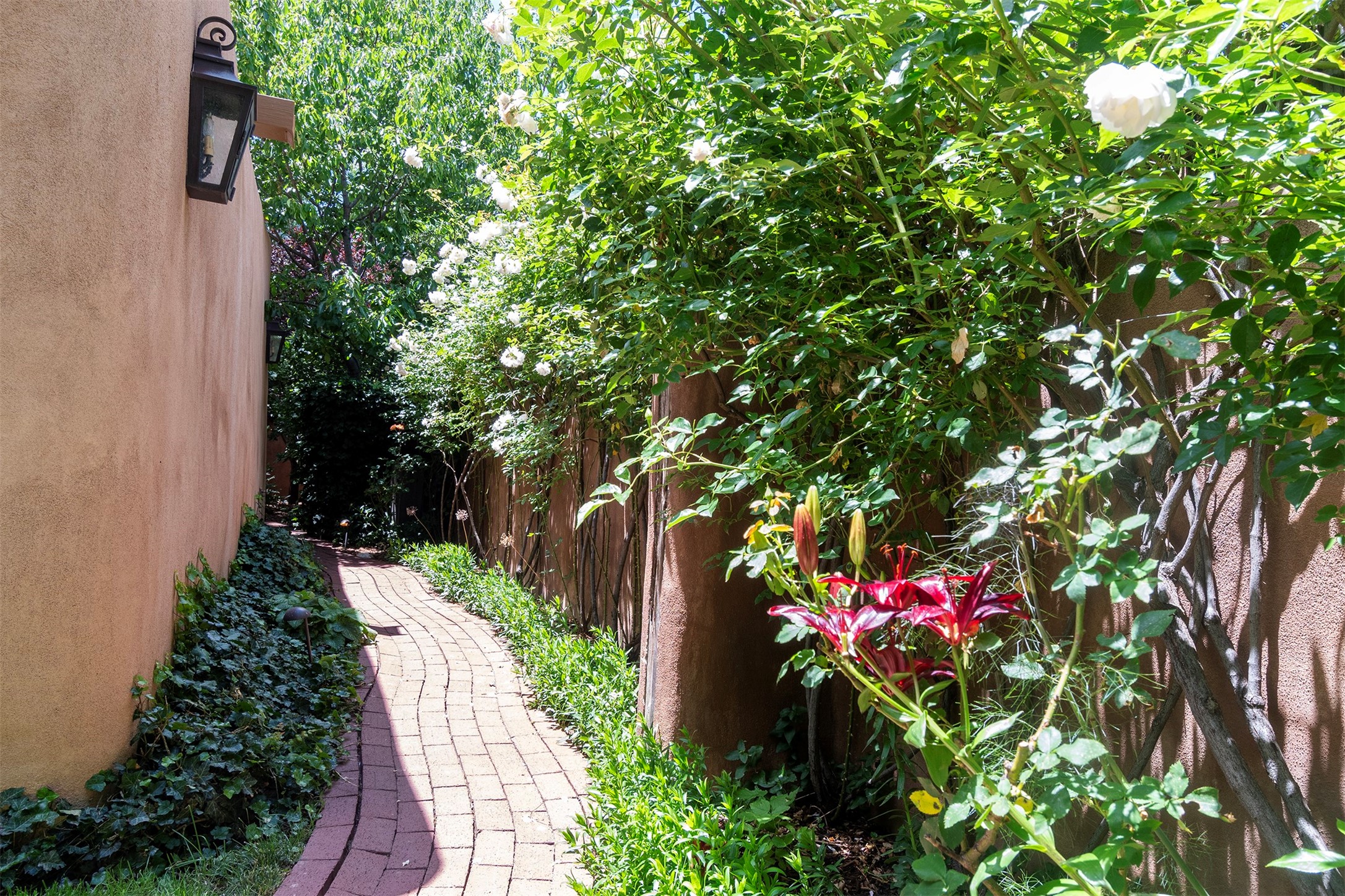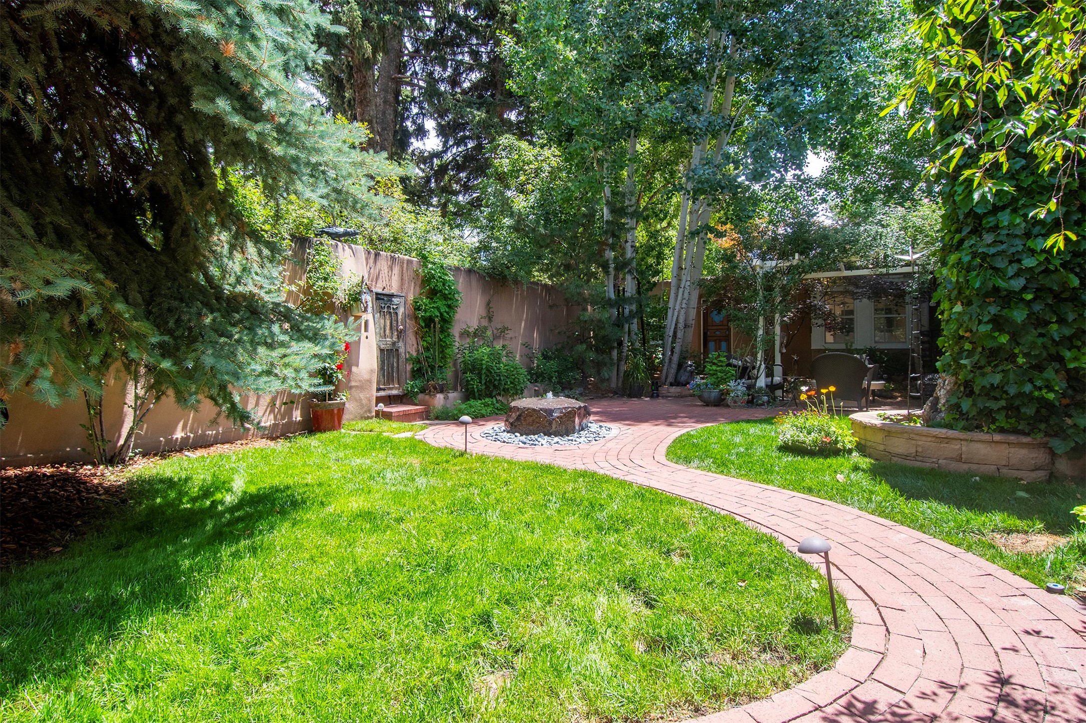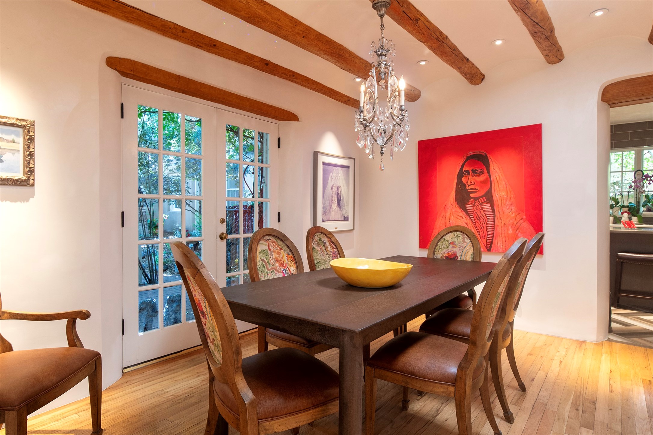 3 BED, 3 BATH ADOBE CASA W/ GUEST CASITA | 2,699 SQFT | 1 CARG | HISTORIC EASTSIDE -As Santa Fe authentic as it gets! Award winning Prull Construction & Hoopes Architects Historic 'Remodel of the Year 2015' with finishes brought to life by David Naylor Interiors. Be transported through the vine wrapped oldworld iron tacked door into a secret garden behind private adobe walls, off the famous 'Street of Souls.' Enter the welcoming foyer and into the Double Parlor with gracious Living and Drawing Rooms, featuring Vigas, Beams, Skylights, Original Restored Hardwood Floors, Diamond FinishedHard Troweled Plaster, & Solid Core Doors. Beautiful Mullion Windows & French Doors let in the bounty of the garden. This 2 Bedroom 2 Bath Adobe Home with 1 Bed, 1 Bath Guest Casita is surrounded by history, and is lovingly restored and updated for the most comfortable of pied-a-terre living.Near the Plaza, Canyon Road, and Museum Hill, and a gentle walk or ride to Kaunes, Downtown Subscription, or local shops and restaurants. The completely enclosed yard has anenchantingwrap-around garden including 2 wonderful fountains, a rose trellised pergola perfect for lounging or eating al fresco, mature landscaping with multiplevarietals, 100 year old growth trees, and lovely pathwaysand respites. The Cooks Kitchen is wonderfully appointed and boasts a Breakfast Nook & Central Island seating, Wolf Gas Range, Dual Wolf Ovens, Subzero Refrigerator, Quartzite Countertops, Solid Wood Soft Close Cabinetry, Dual Dishwashers, and a Countertop Kiva Fireplace.A Formal Dining Room enhances daily meals as well as entertaining. Chic Ancient meets Modern bathrooms are given rich character with beautiful ChocolateWalnut Travertine Tile, Petroglyphinspired inset designs, Beautiful Faux Bois Bronze Hardware, Robern Illuminating Medicine cabinets and great storage. Painted decorative Peasco Streebe doors pepper the home, amplifying the cultural richness of this classic adobe pueblo with a twist.