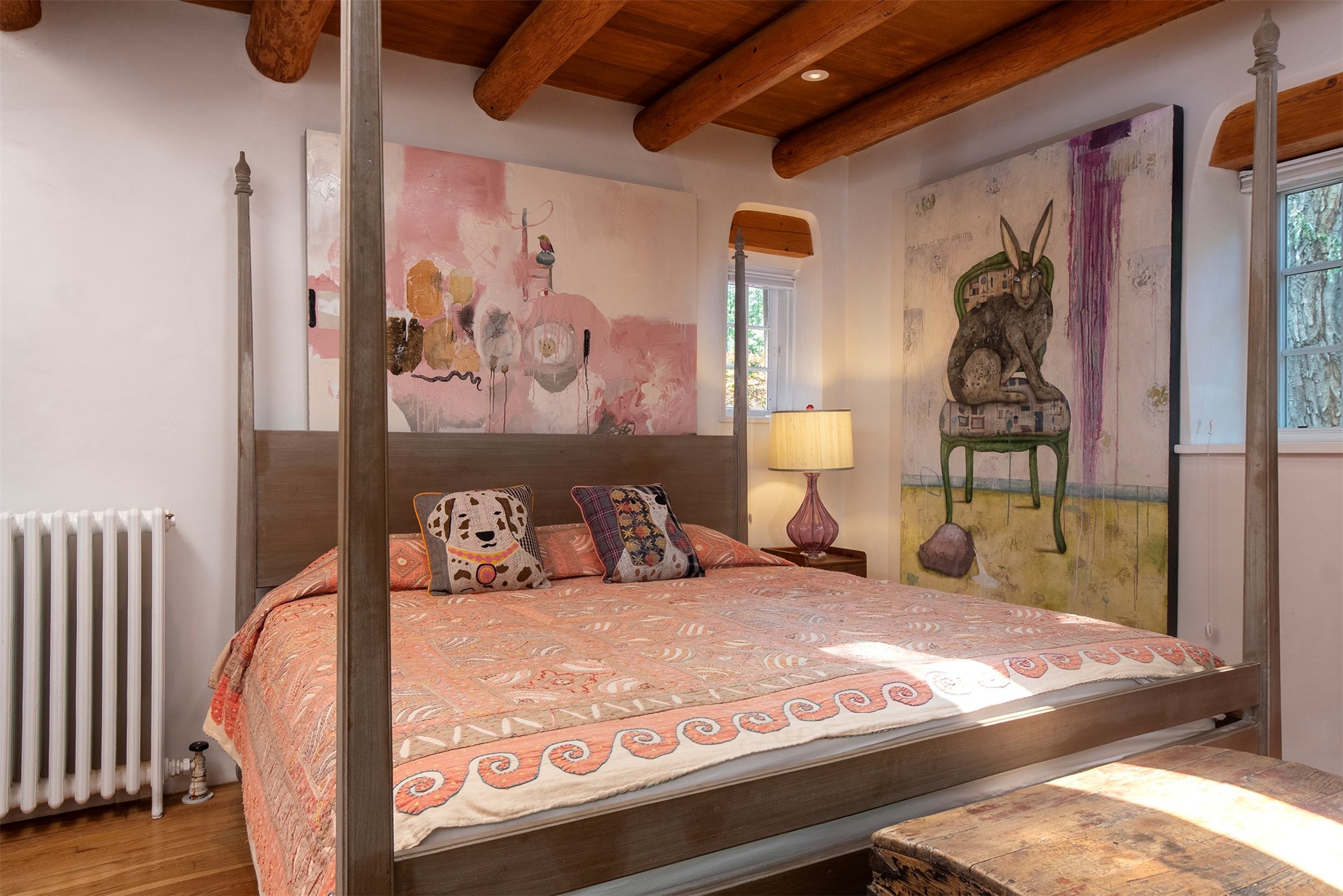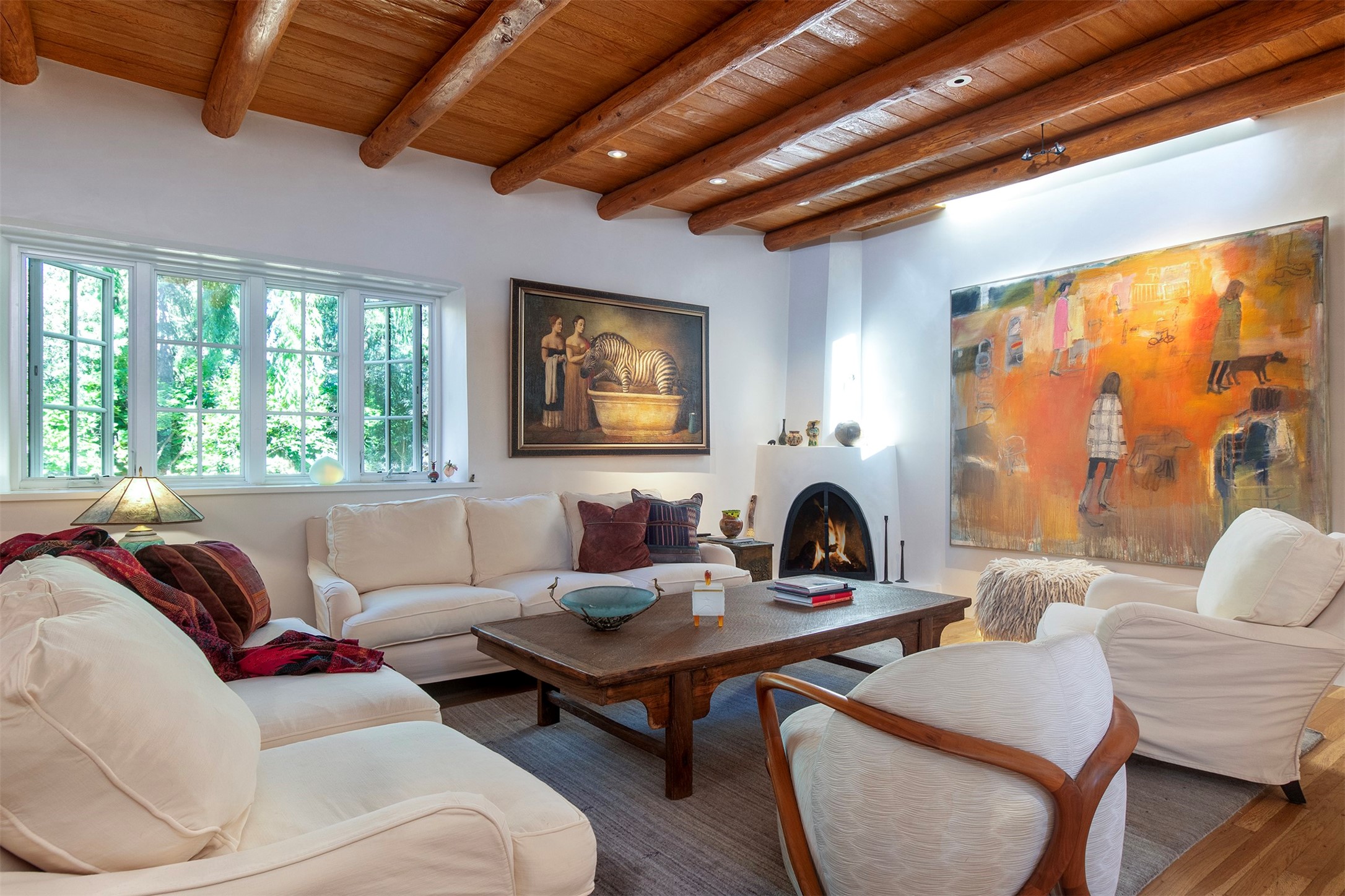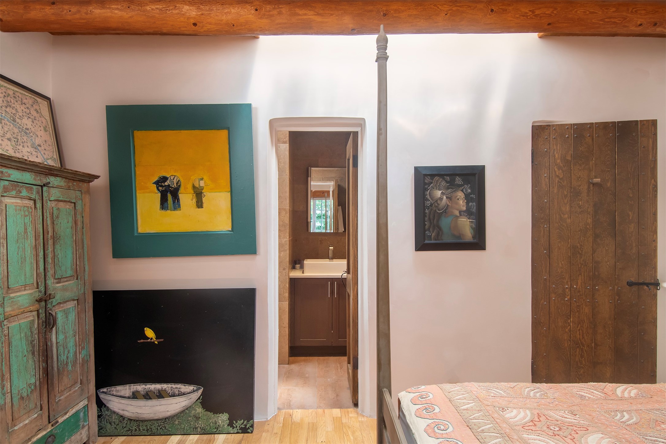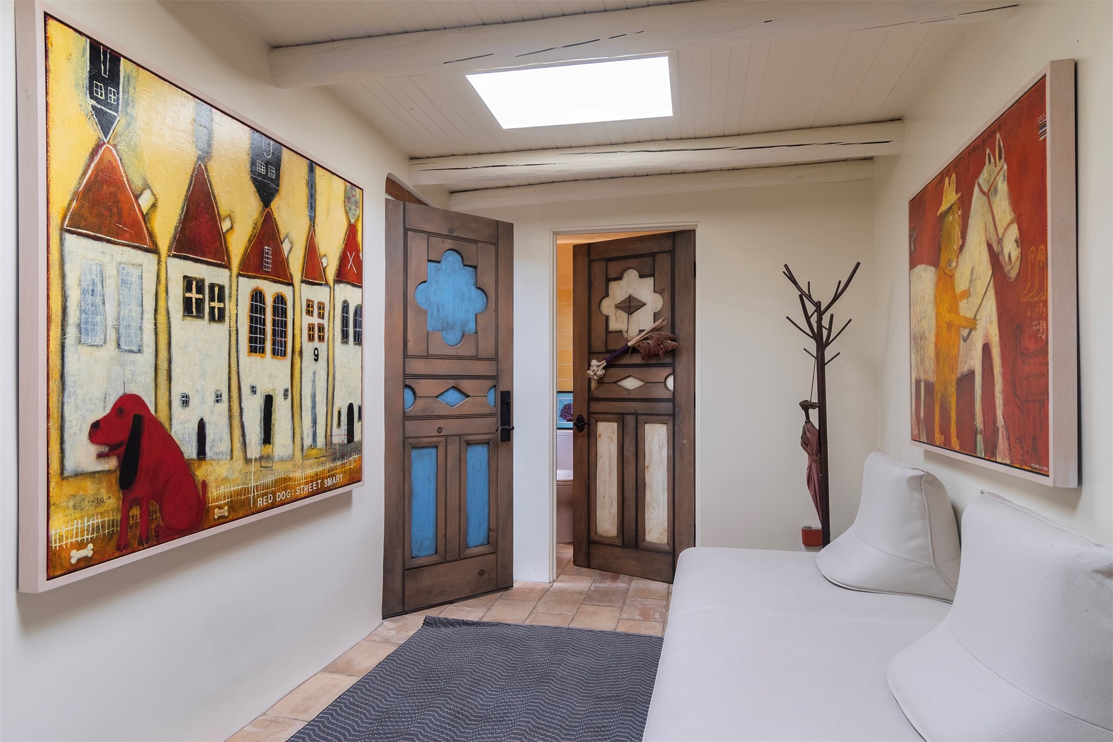 3 BED, 3 BATH ADOBE CASA W/ GUEST CASITA | 2,699 SQFT | 1 CARG | HISTORIC EASTSIDE -As Santa Fe authentic as it gets! Award winning Prull Construction & Hoopes Architects Historic 'Remodel of the Year 2015' with finishes brought to life by David Naylor Interiors. Be transported through the vine wrapped oldworld iron tacked door into a secret garden behind private adobe walls, off the famous 'Street of Souls.' Enter the welcoming foyer and into the Double Parlor with gracious Living and Drawing Rooms, featuring Vigas, Beams, Skylights, Original Restored Hardwood Floors, Diamond FinishedHard Troweled Plaster, & Solid Core Doors. Beautiful Mullion Windows & French Doors let in the bounty of the garden. This 2 Bedroom 2 Bath Adobe Home with 1 Bed, 1 Bath Guest Casita is surrounded by history, and is lovingly restored and updated for the most comfortable of pied-a-terre living.Near the Plaza, Canyon Road, and Museum Hill, and a gentle walk or ride to Kaunes, Downtown Subscription, or local shops and restaurants. The completely enclosed yard has anenchantingwrap-around garden including 2 wonderful fountains, a rose trellised pergola perfect for lounging or eating al fresco, mature landscaping with multiplevarietals, 100 year old growth trees, and lovely pathwaysand respites. The Cooks Kitchen is wonderfully appointed and boasts a Breakfast Nook & Central Island seating, Wolf Gas Range, Dual Wolf Ovens, Subzero Refrigerator, Quartzite Countertops, Solid Wood Soft Close Cabinetry, Dual Dishwashers, and a Countertop Kiva Fireplace.A Formal Dining Room enhances daily meals as well as entertaining. Chic Ancient meets Modern bathrooms are given rich character with beautiful ChocolateWalnut Travertine Tile, Petroglyphinspired inset designs, Beautiful Faux Bois Bronze Hardware, Robern Illuminating Medicine cabinets and great storage. Painted decorative Peasco Streebe doors pepper the home, amplifying the cultural richness of this classic adobe pueblo with a twist.