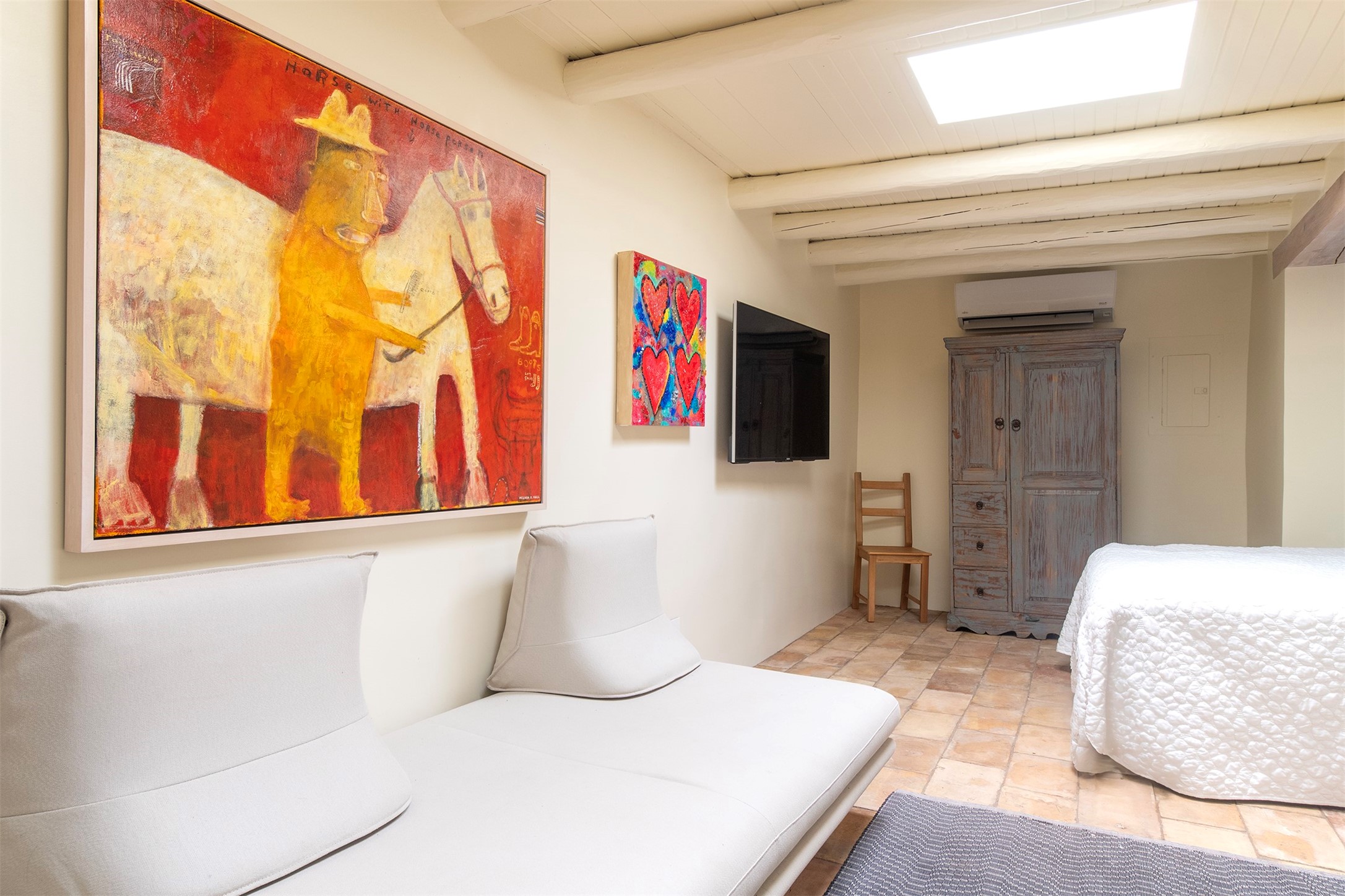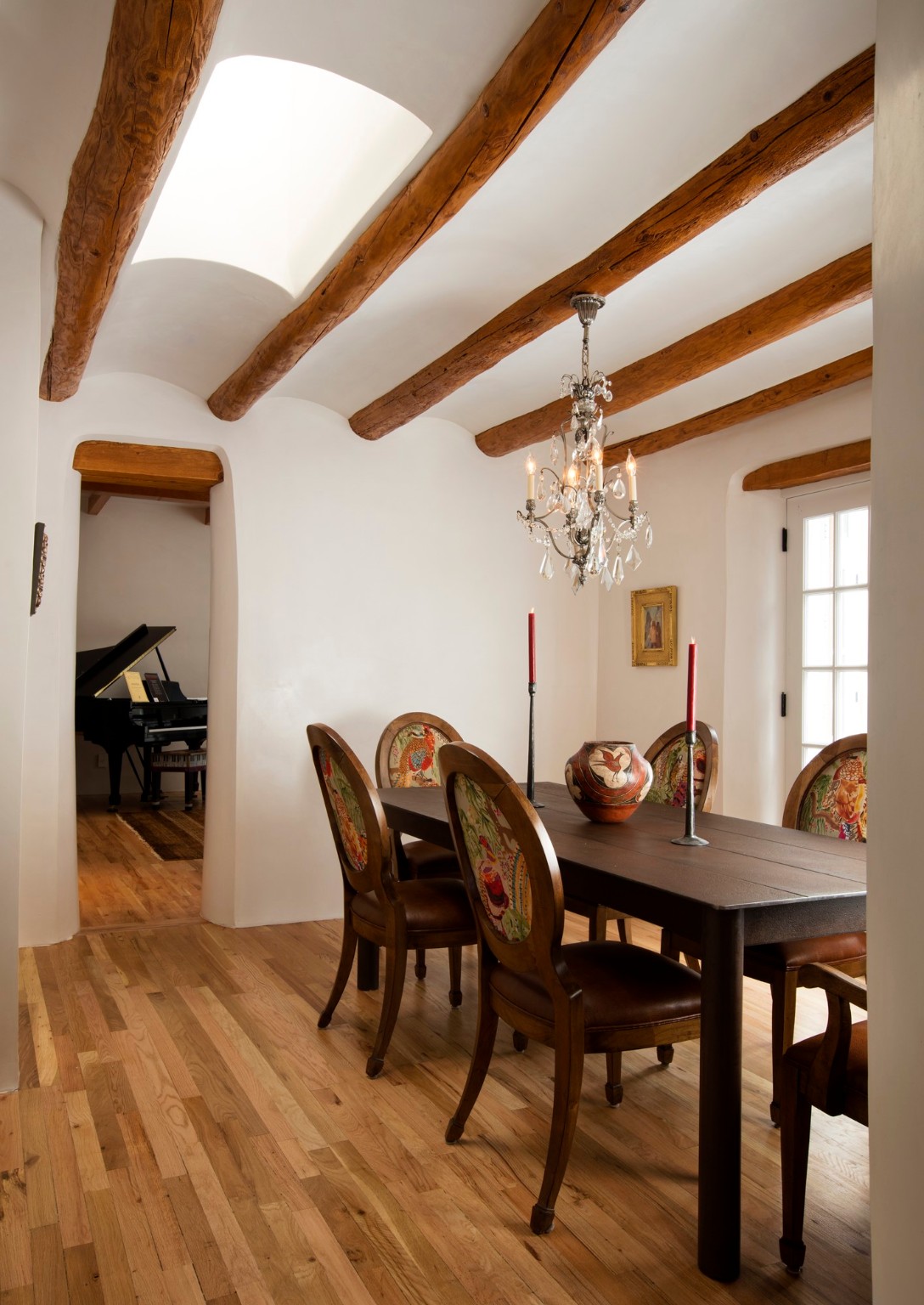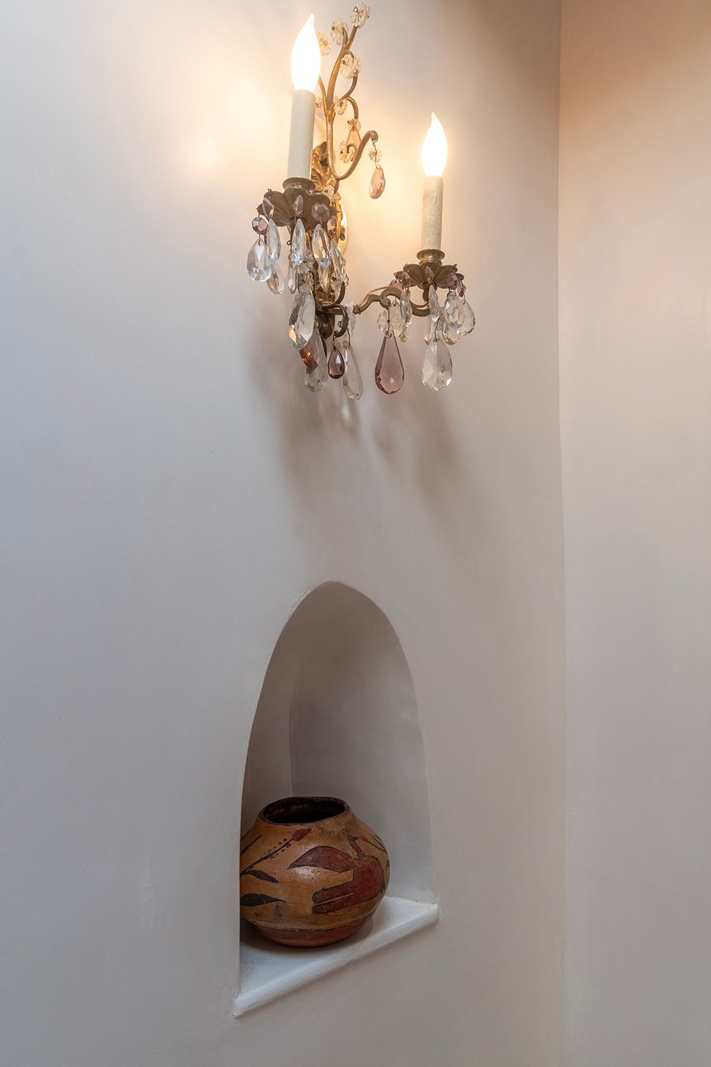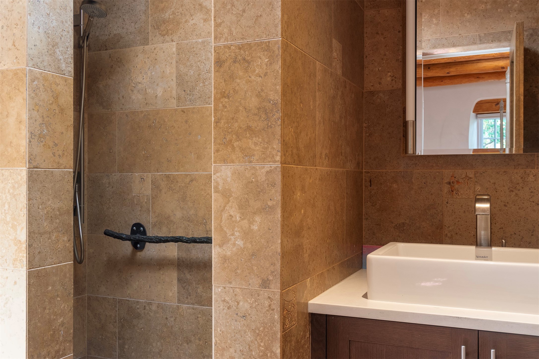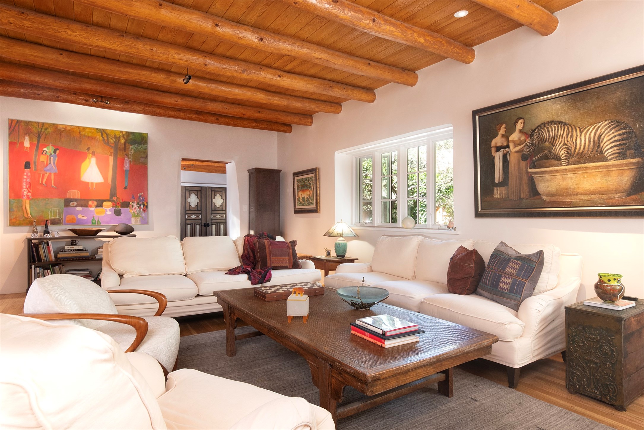 3 BED, 3 BATH ADOBE CASA W/ GUEST CASITA | 2,699 SQFT | 1 CARG | HISTORIC EASTSIDE -As Santa Fe authentic as it gets! Award winning Prull Construction & Hoopes Architects Historic 'Remodel of the Year 2015' with finishes brought to life by David Naylor Interiors. Be transported through the vine wrapped oldworld iron tacked door into a secret garden behind private adobe walls, off the famous 'Street of Souls.' Enter the welcoming foyer and into the Double Parlor with gracious Living and Drawing Rooms, featuring Vigas, Beams, Skylights, Original Restored Hardwood Floors, Diamond FinishedHard Troweled Plaster, & Solid Core Doors. Beautiful Mullion Windows & French Doors let in the bounty of the garden. This 2 Bedroom 2 Bath Adobe Home with 1 Bed, 1 Bath Guest Casita is surrounded by history, and is lovingly restored and updated for the most comfortable of pied-a-terre living.Near the Plaza, Canyon Road, and Museum Hill, and a gentle walk or ride to Kaunes, Downtown Subscription, or local shops and restaurants. The completely enclosed yard has anenchantingwrap-around garden including 2 wonderful fountains, a rose trellised pergola perfect for lounging or eating al fresco, mature landscaping with multiplevarietals, 100 year old growth trees, and lovely pathwaysand respites. The Cooks Kitchen is wonderfully appointed and boasts a Breakfast Nook & Central Island seating, Wolf Gas Range, Dual Wolf Ovens, Subzero Refrigerator, Quartzite Countertops, Solid Wood Soft Close Cabinetry, Dual Dishwashers, and a Countertop Kiva Fireplace.A Formal Dining Room enhances daily meals as well as entertaining. Chic Ancient meets Modern bathrooms are given rich character with beautiful ChocolateWalnut Travertine Tile, Petroglyphinspired inset designs, Beautiful Faux Bois Bronze Hardware, Robern Illuminating Medicine cabinets and great storage. Painted decorative Peasco Streebe doors pepper the home, amplifying the cultural richness of this classic adobe pueblo with a twist.