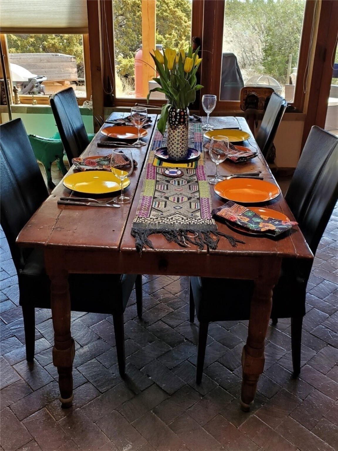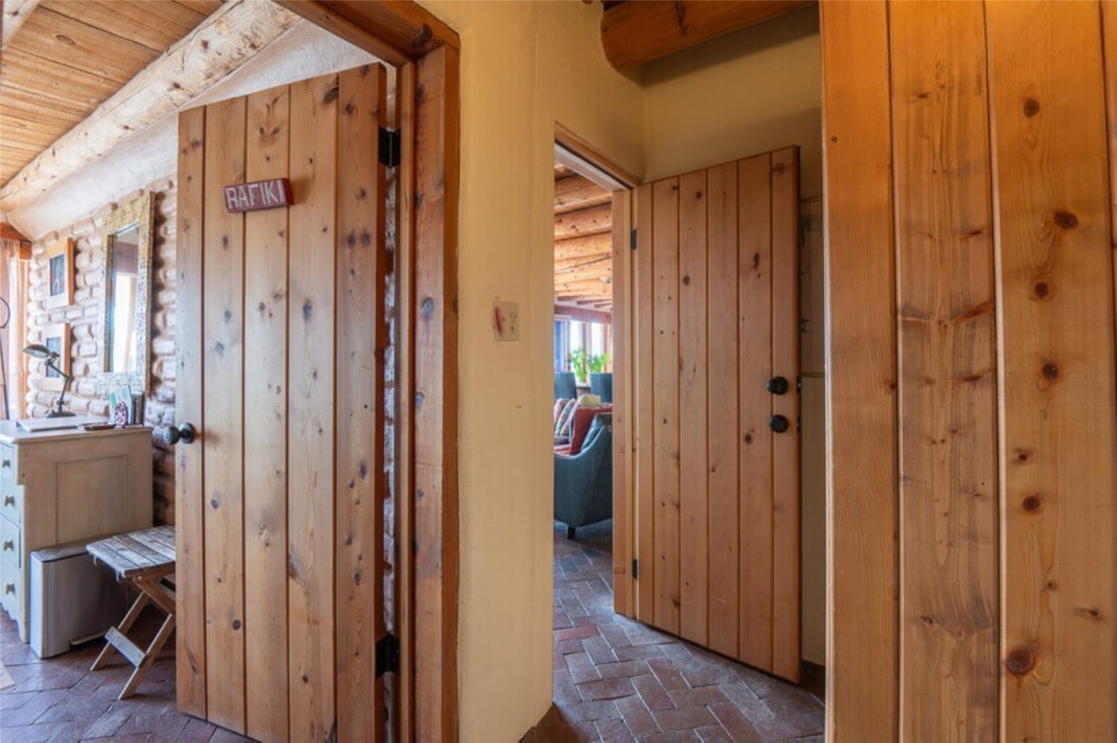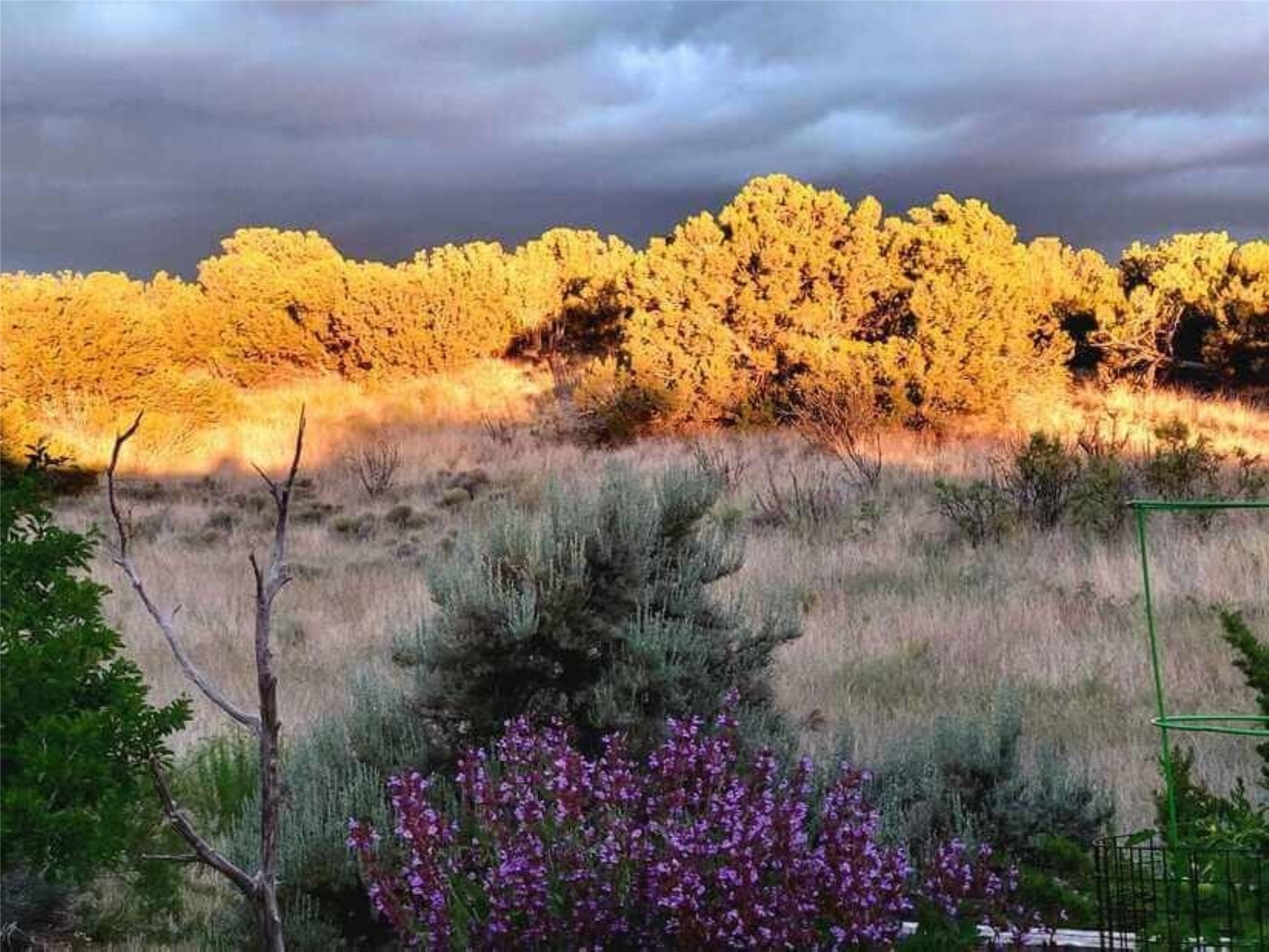 This Eldorado retreat features Santa Fe style and charm with beautiful outdoor living spaces that back directly onto a greenbelt with miles of trails, perfect for hiking and doggies. The home offers a passive solar design with an open split floor plan. The main living area, featuring a shepherd's fireplace, flows seamlessly into the kitchen and dining areas, and extends to a private portal with sweeping mountain views, perfect for entertaining. The primary suite includes its own kiva fireplace, large walk in closet and ensuite bath. For chilly evenings there's a hot tub, ideal for stargazing just off the owner's suite. Both the primary and second rear bedroom have direct access to the terrace as well. Beyond the garage, there's a separate studio perfect for a home office or creative endeavors. The sellers have made significant improvements and upgrades. Please see the attached list.
