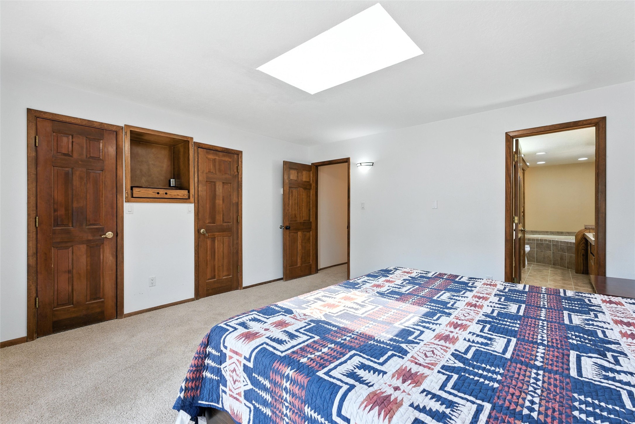 Tucked away on 2.18 peaceful, horse-zoned acres in the heart of White Rock, 123 La Senda is more than a home--it's a private retreat designed for those who value beauty, space, and connection to the land. With graceful portals wrapping three sides, lush gardens, and a tranquil backyard pond, this residence invites you to slow down and savor every season. Beyond the adobe-walled yard, native pion and juniper trees stretch across the landscape, and equine trails wind through the neighborhood--perfect for morning rides, afternoon hikes, or sunset strolls under open skies.A composite-decked pergola creates a shaded outdoor lounge ideal for entertaining or unwinding in the fresh air. Whether dining alfresco or soaking in the hot tub, the outdoor living experience is both refined and serene.Inside, over 3,200 square feet of thoughtfully designed space showcases vaulted rough-hewn viga ceilings , 12 skylights, a classic kiva fireplace, and handcrafted bancos and nichos. Fresh paint in the common areas, new carpet, tile floors, and wood-framed windows enhance the sense of comfort and quality throughout.The custom kitchen features Brookhaven cabinetry, Bosch wall oven and microwave, Wolf 6-burner range, beverage fridge, dual pantries, two islands, and a matching tiled table. A bright sunroom offers additional space to relax year-round and a great greenhouse.The spacious primary suite includes private portal access, generous closet space, and a five-piece bath with jetted tub and dual-head walk-in shower beneath a skylight. Built-ins throughout the home include window seats and a curved living room couch that stays with the home--along with the spa-style hot tub.Additional highlights include a newer septic tank (installed in 2021), a two-car garage, detached RV carport, and direct access to neighborhood trails. Blending timeless style with modern comfort, 123 La Senda is a rare offering in one of White Rock's most peaceful and sought-after settings.
