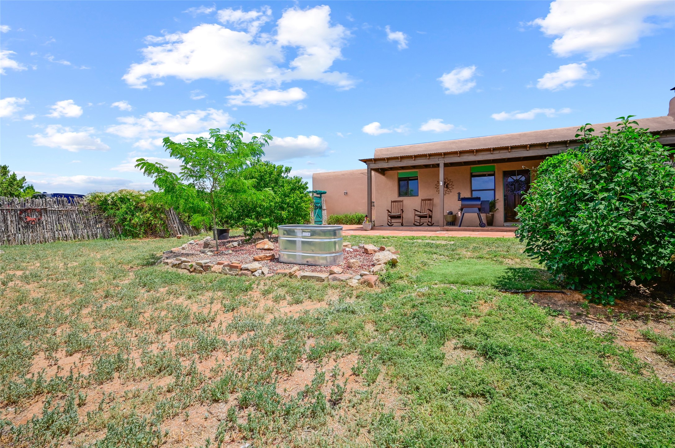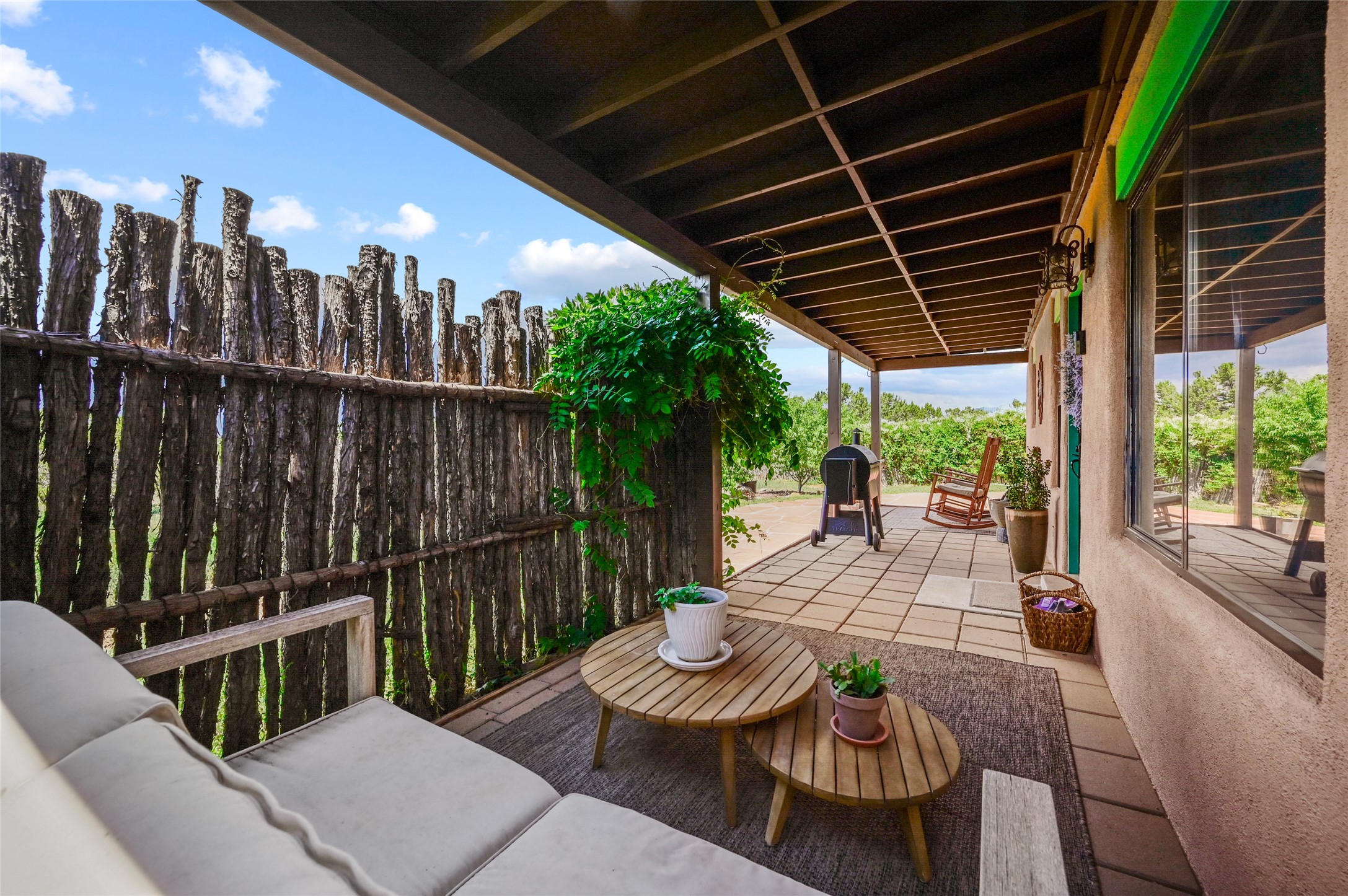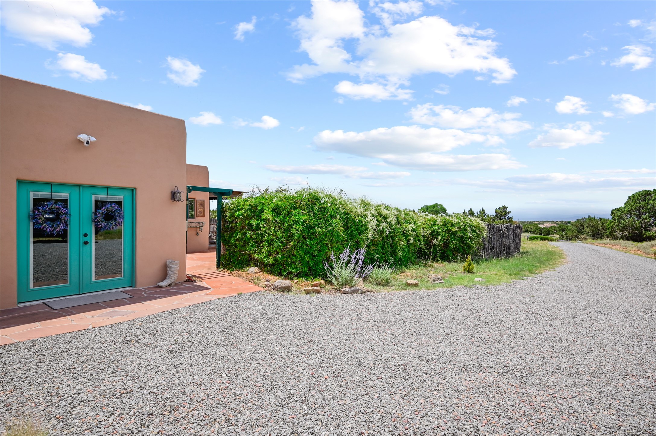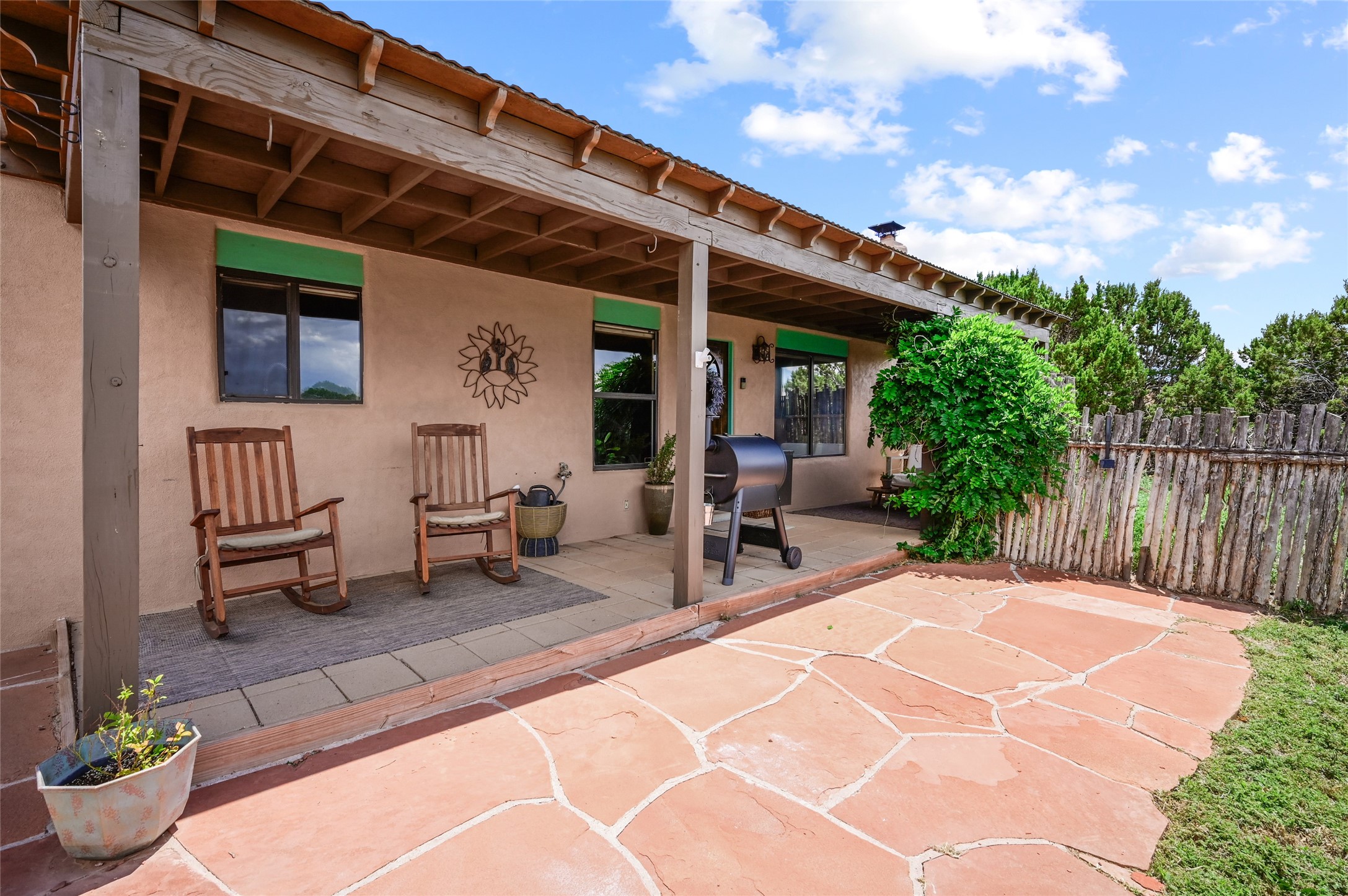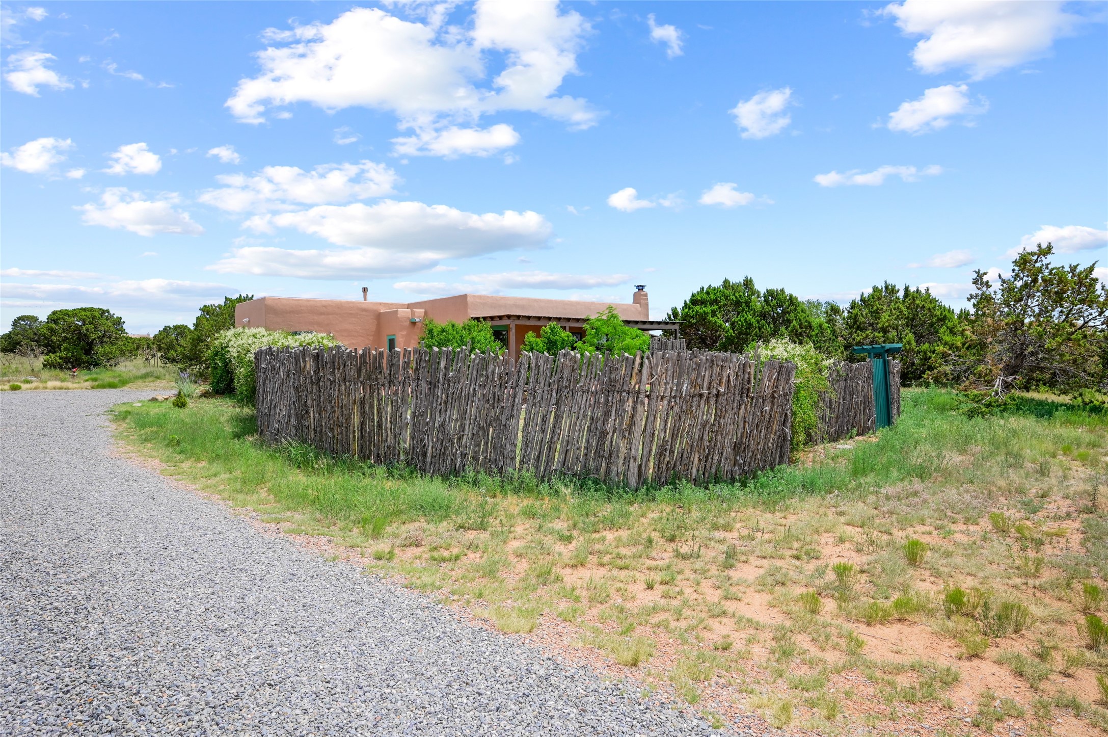 Efficient, Charming, Scenic Views. This delightful Eldorado home is sited on a elevated view lot and features a welcoming front porch and a coyote-fenced courtyard / yard. Inside, the home exudes charm with a cozy kiva fireplace, concrete floors, and a private walled courtyard off the living room. This is an ideal spot for morning coffee or quiet reflection. The main courtyard is fully fenced for dogs or privacy. Comfort meets functionality with efficient in-floor radiant heat and a mini-split unit providing AC and Heat to the primary bedroom. Eldorado offers an array of community amenities including miles of scenic walking trails, greenbelt hiking, a seasonal community pool, community center, tennis and pickleball courts and much more. Don't miss the opportunity to experience this Eldorado charmer for yourself.