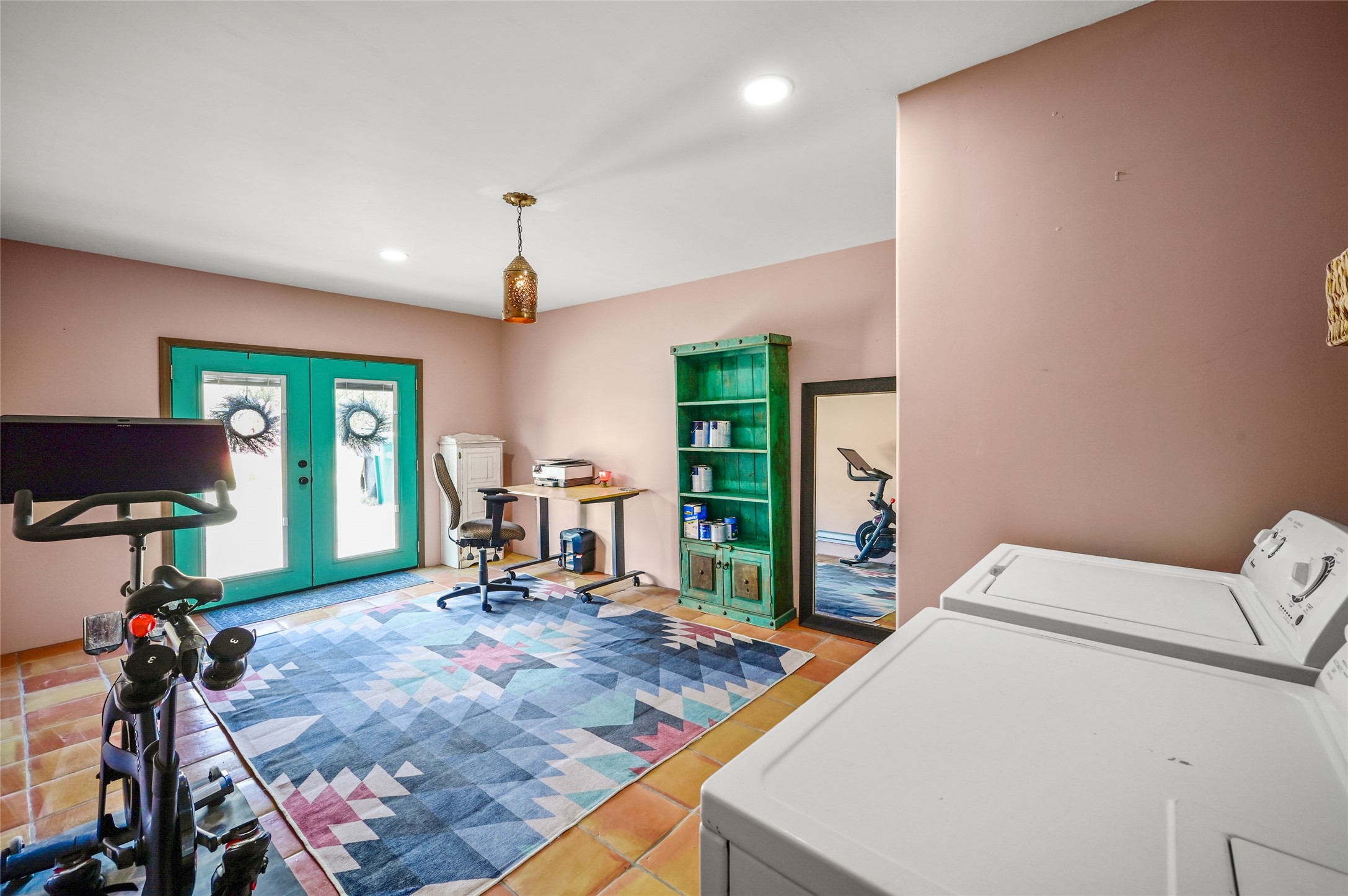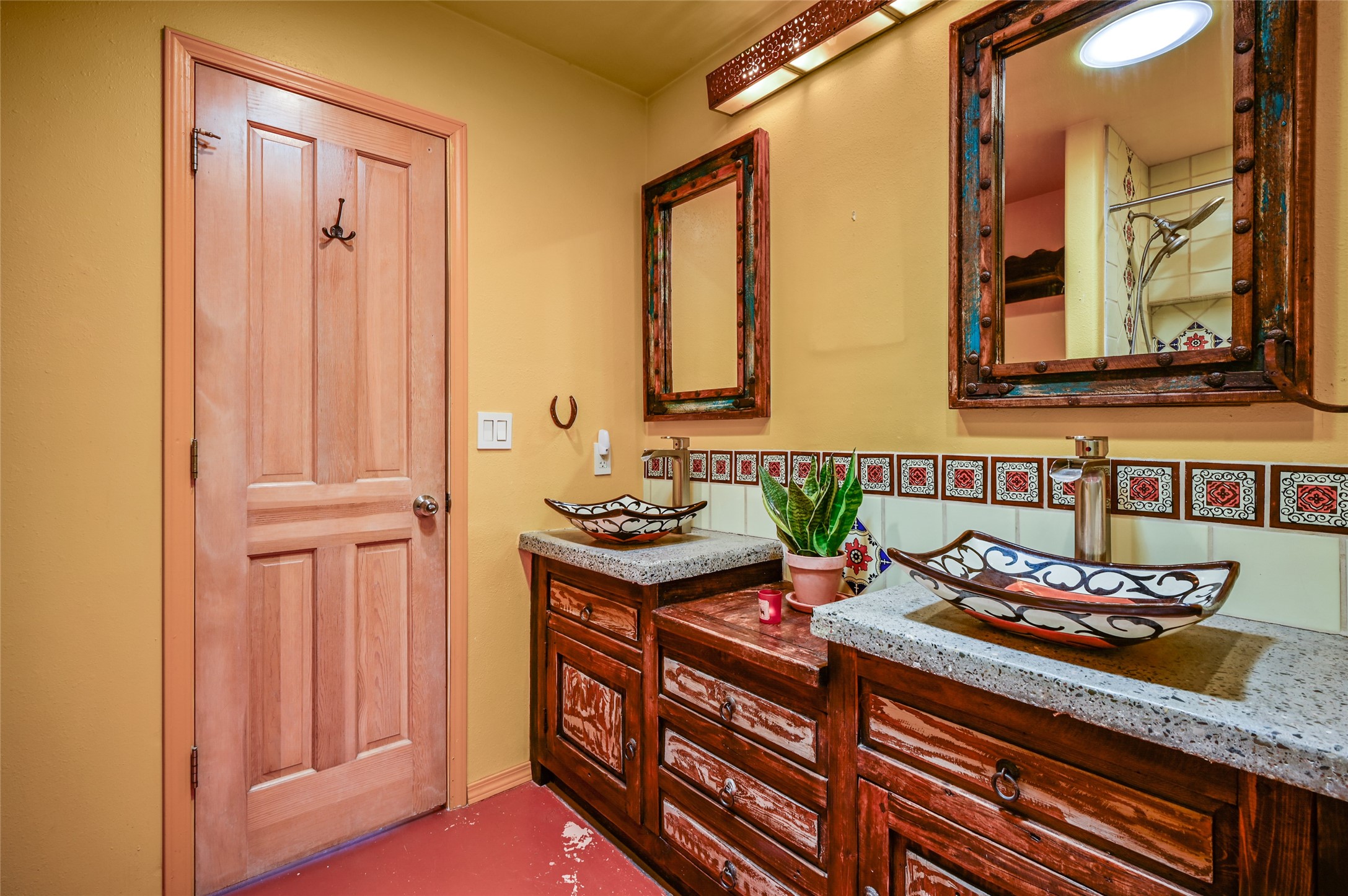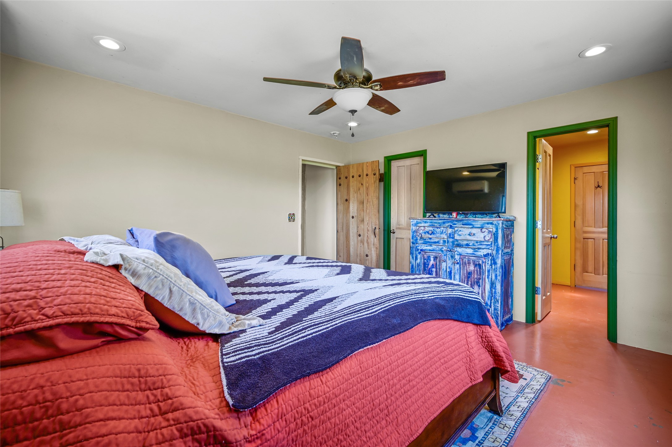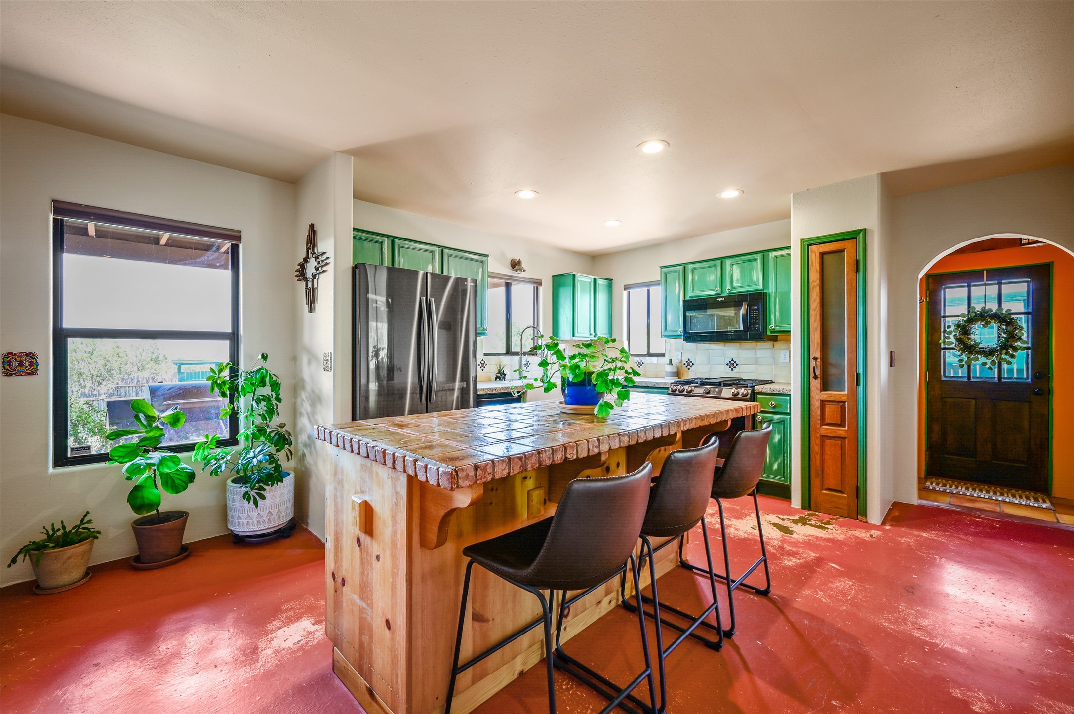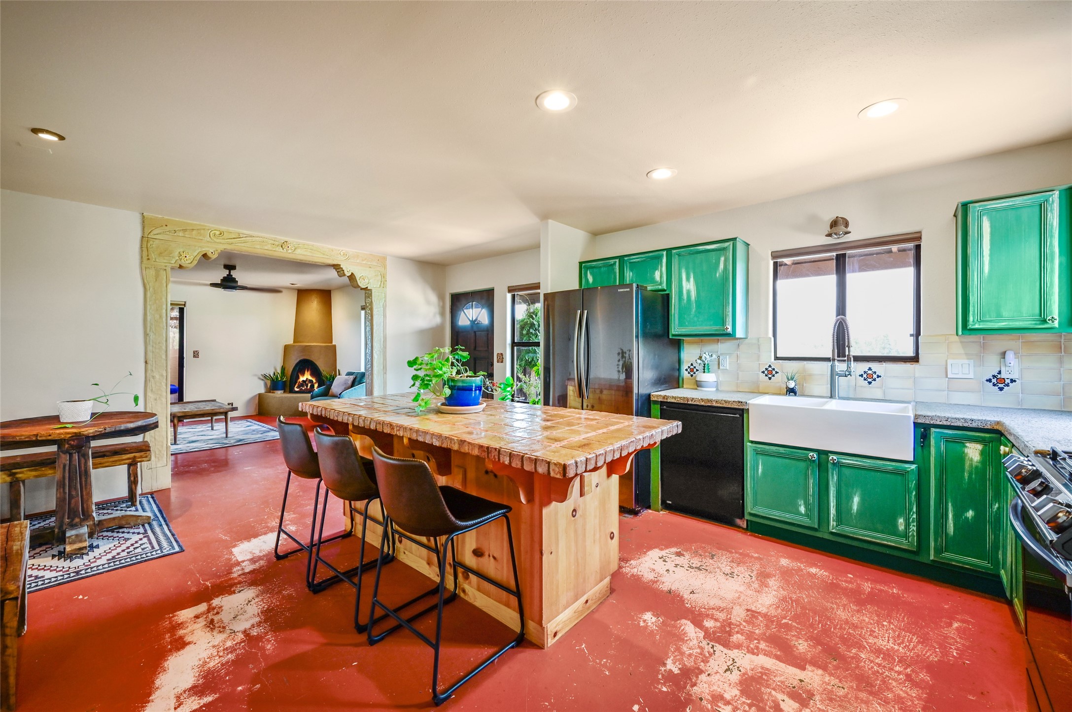Efficient, Charming, Scenic Views. This delightful Eldorado home is sited on a elevated view lot and features a welcoming front porch and a coyote-fenced courtyard / yard. Inside, the home exudes charm with a cozy kiva fireplace, concrete floors, and a private walled courtyard off the living room. This is an ideal spot for morning coffee or quiet reflection. The main courtyard is fully fenced for dogs or privacy. Comfort meets functionality with efficient in-floor radiant heat and a mini-split unit providing AC and Heat to the primary bedroom. Eldorado offers an array of community amenities including miles of scenic walking trails, greenbelt hiking, a seasonal community pool, community center, tennis and pickleball courts and much more. Don't miss the opportunity to experience this Eldorado charmer for yourself.